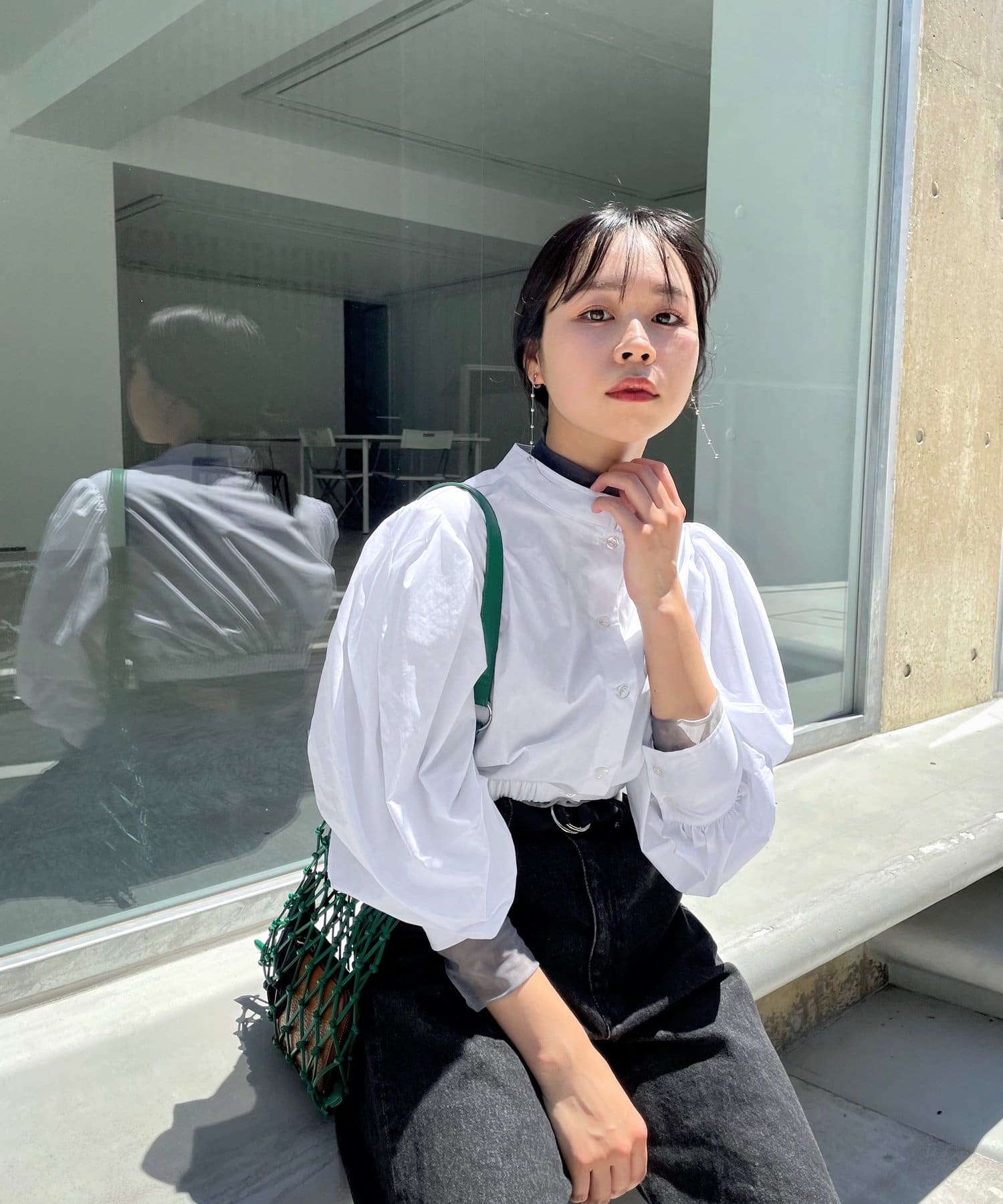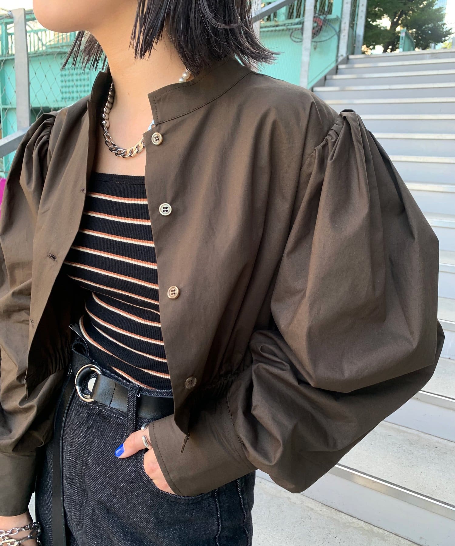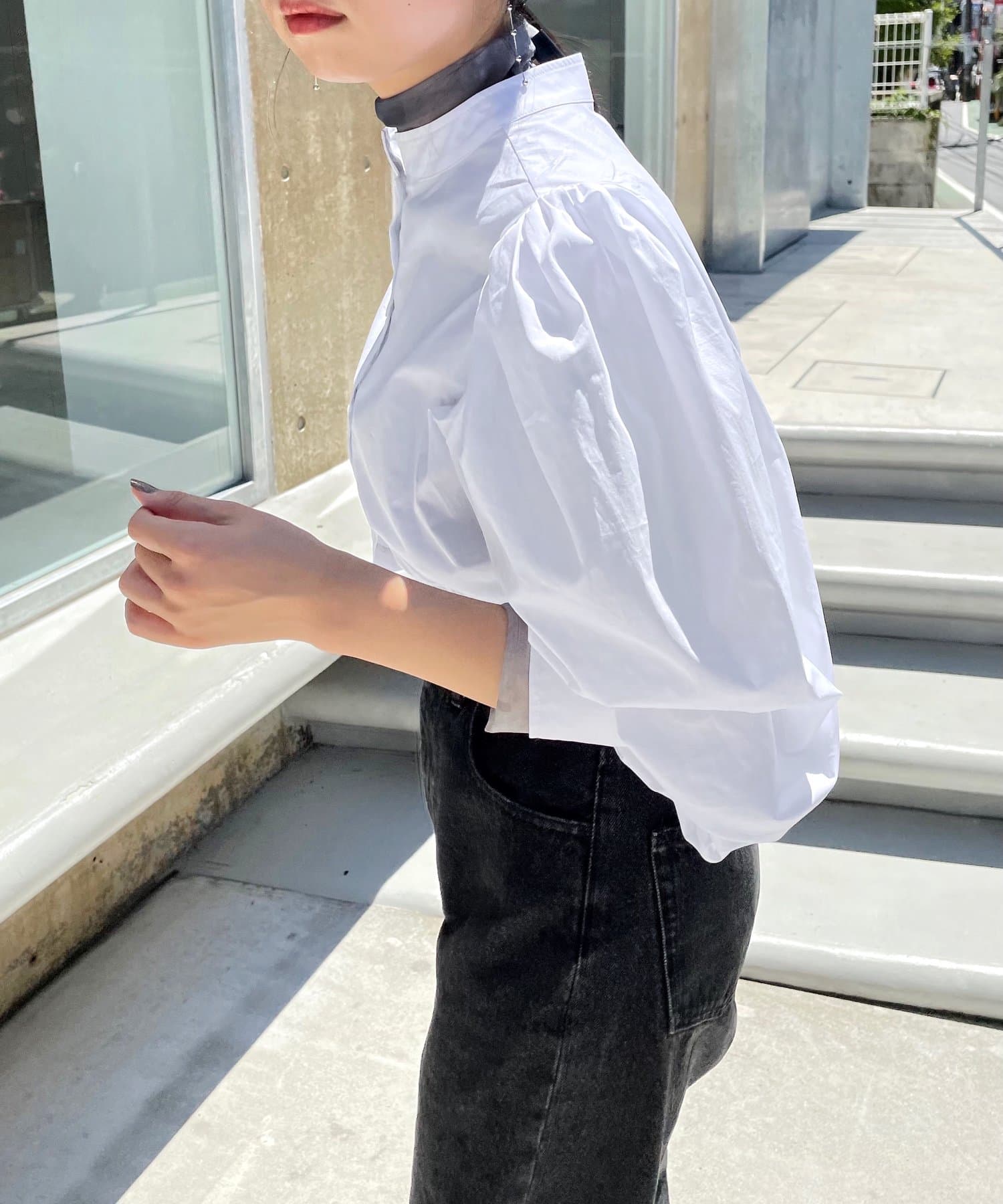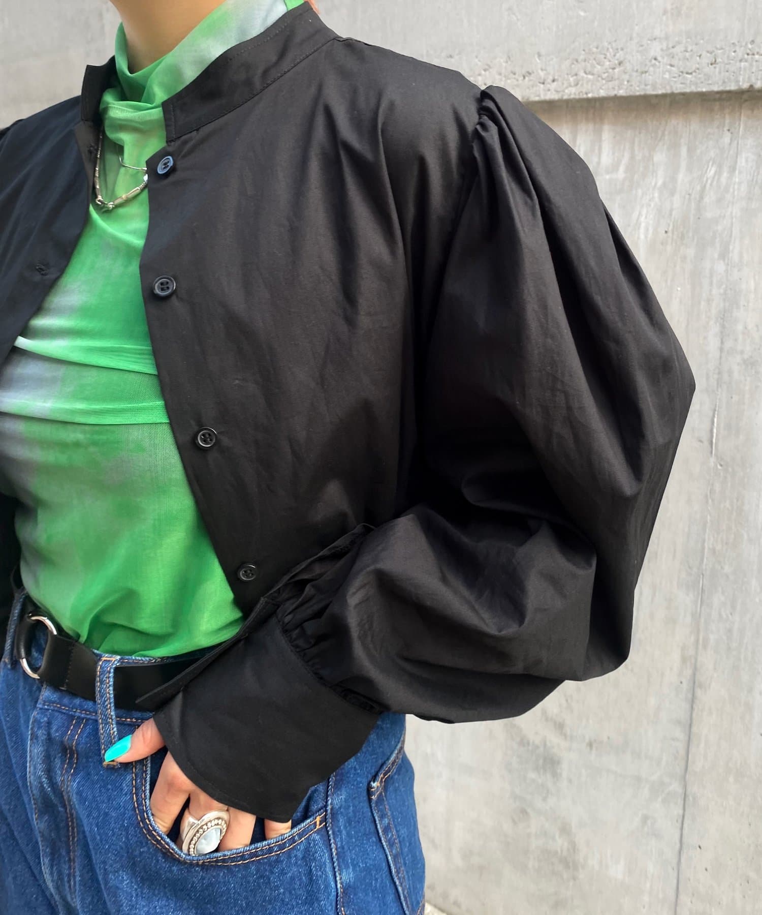 バルーンのようなボリューム感とショート丈の組み合わせがニクい!スタンドカラーブラウス