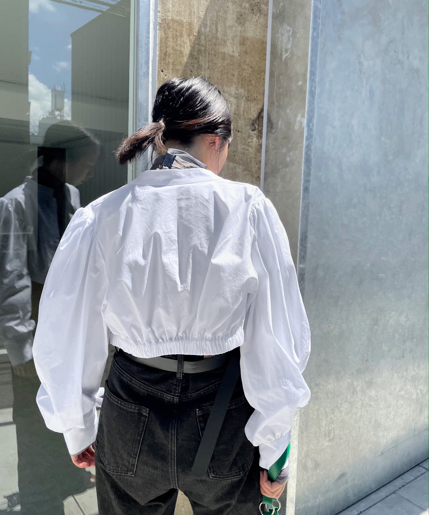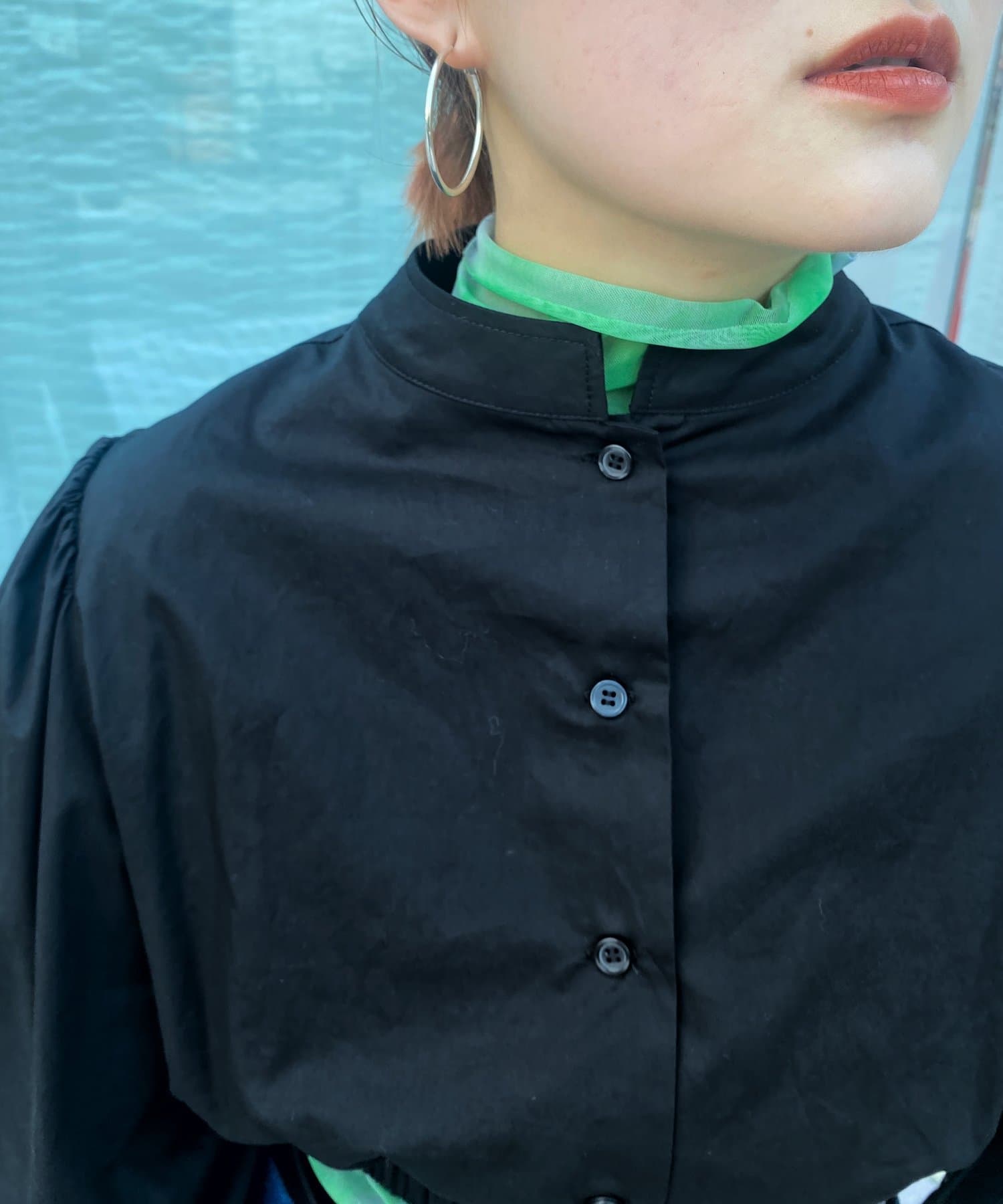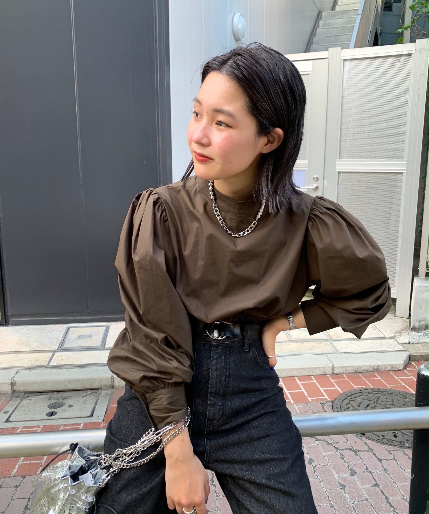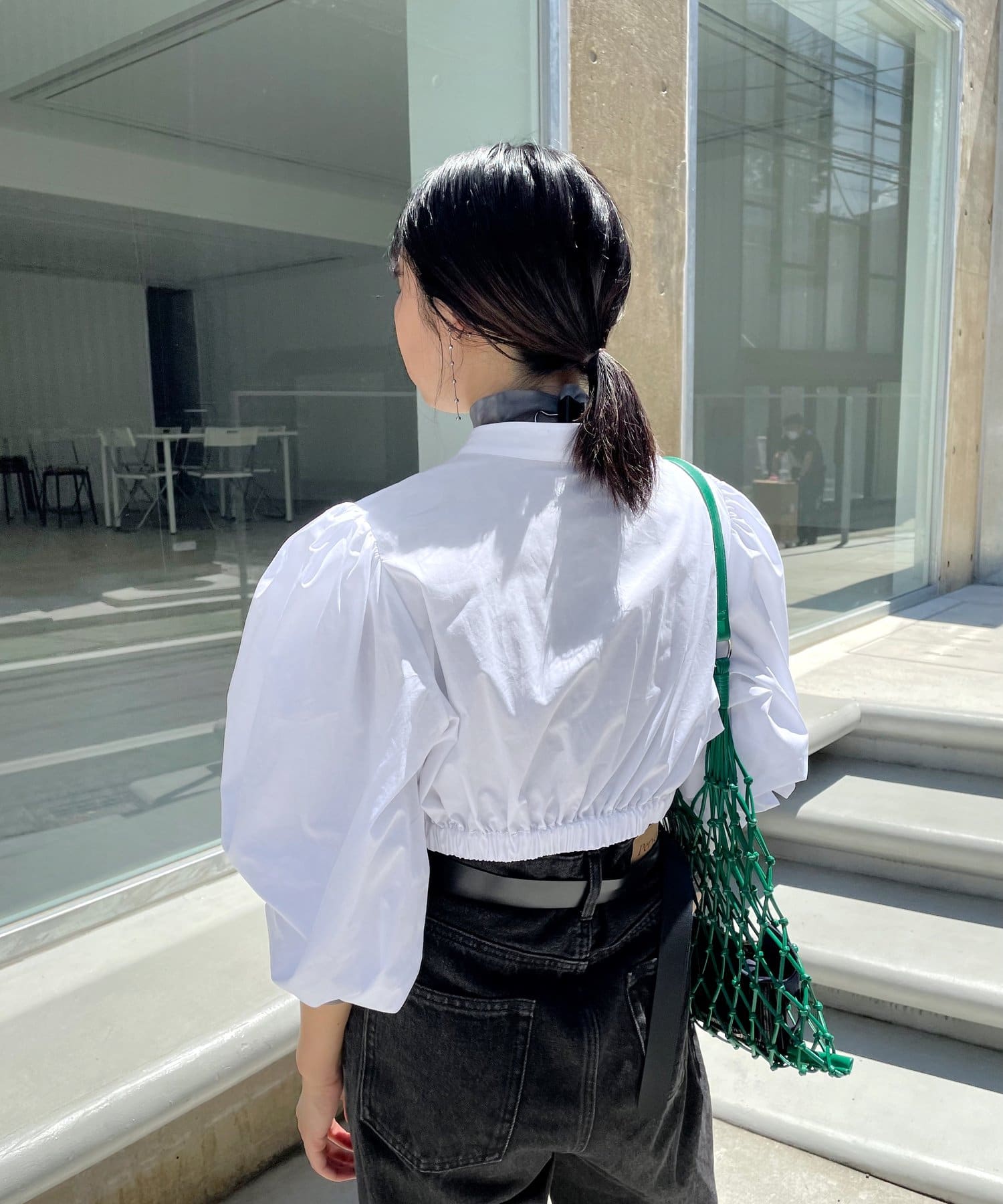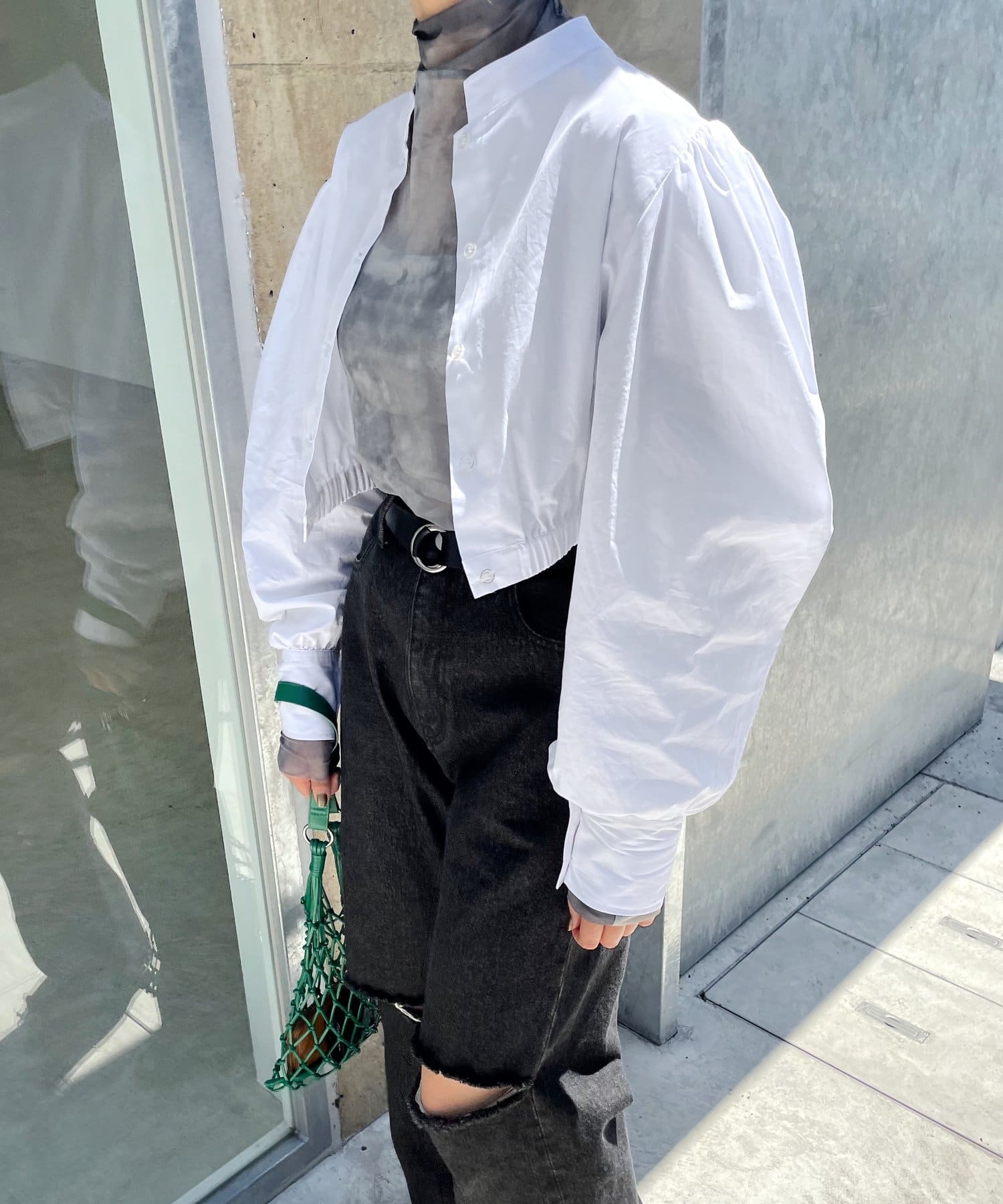 バルーンのようなボリューム感とショート丈の組み合わせがニクい!スタンドカラーブラウス