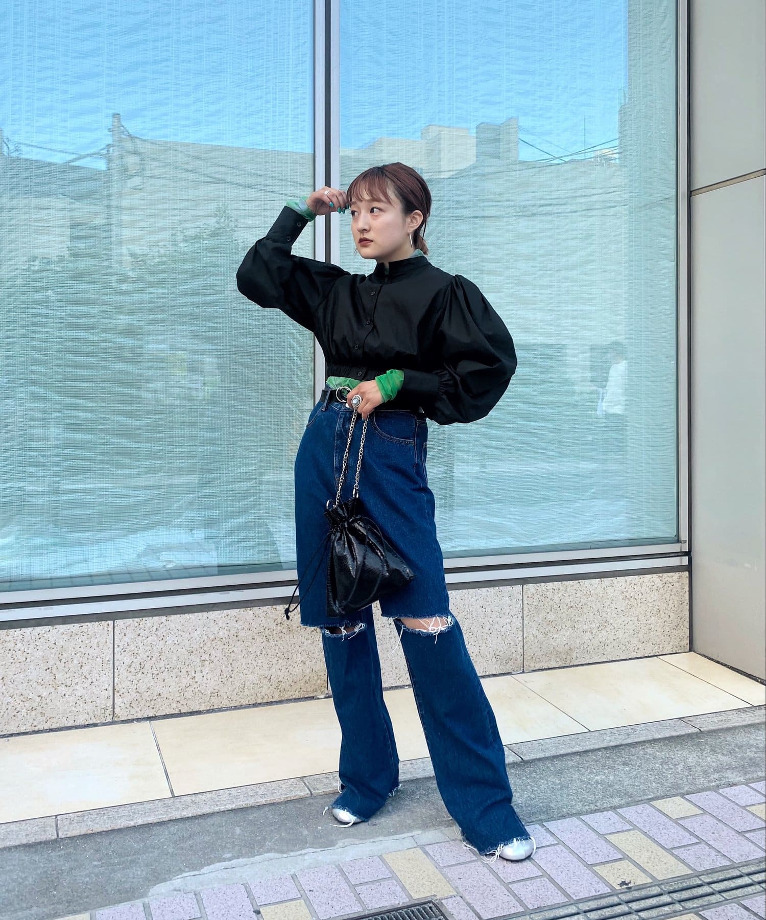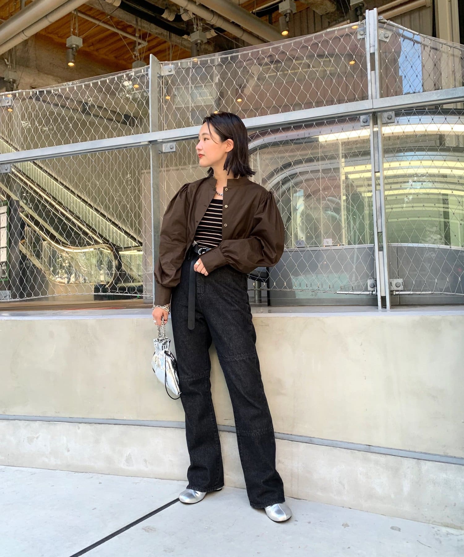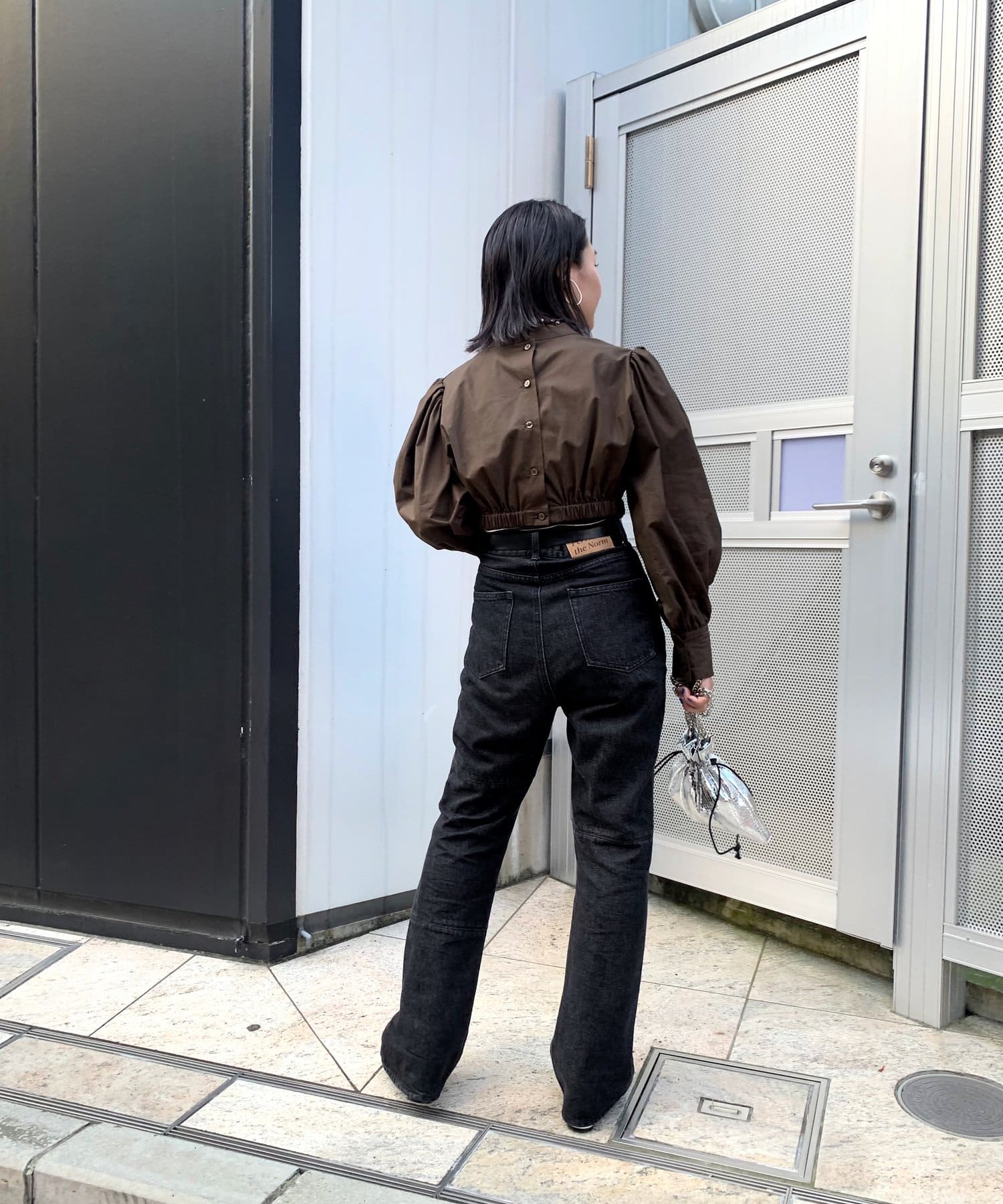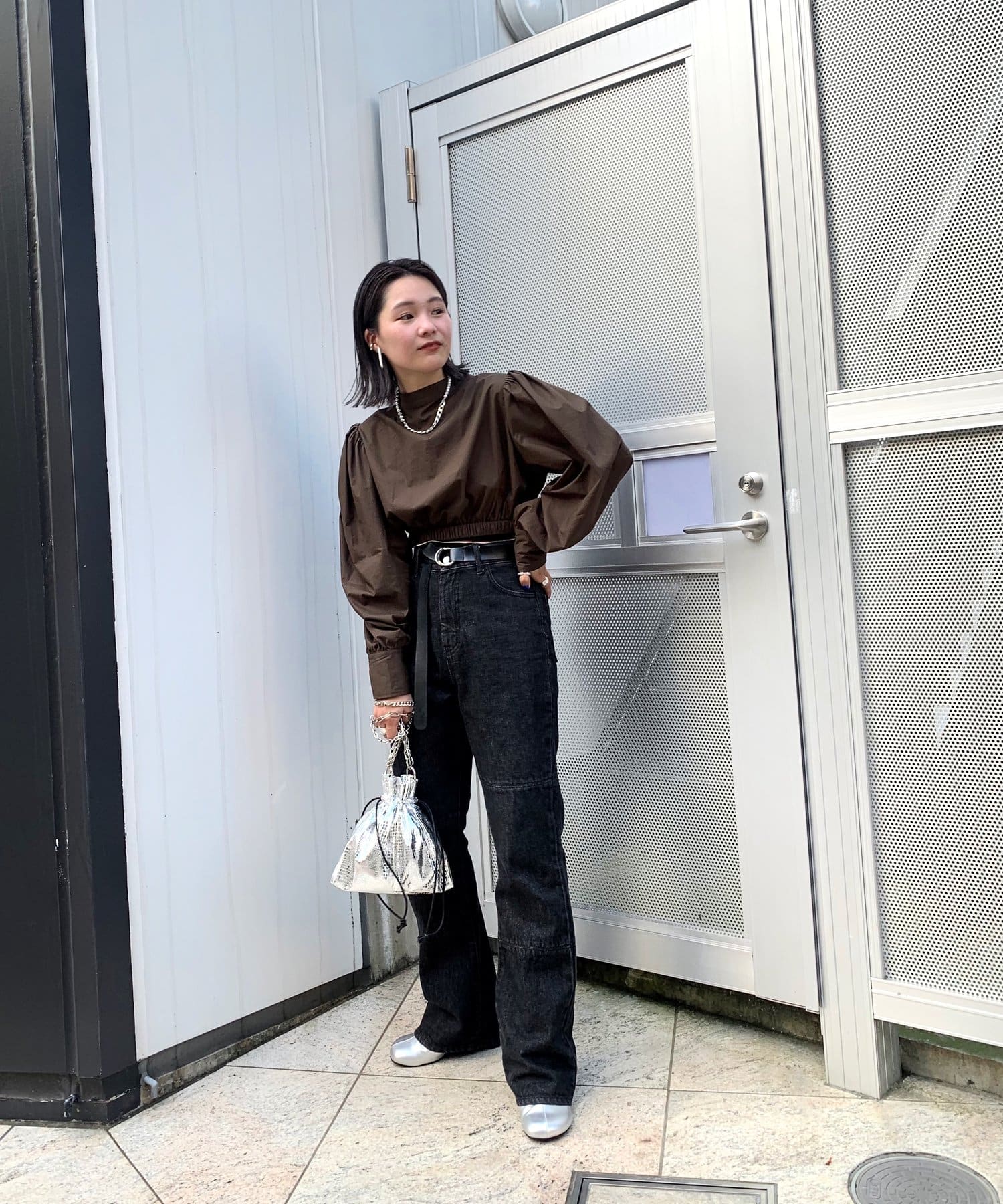 バルーンのようなボリューム感とショート丈の組み合わせがニクい!スタンドカラーブラウス