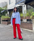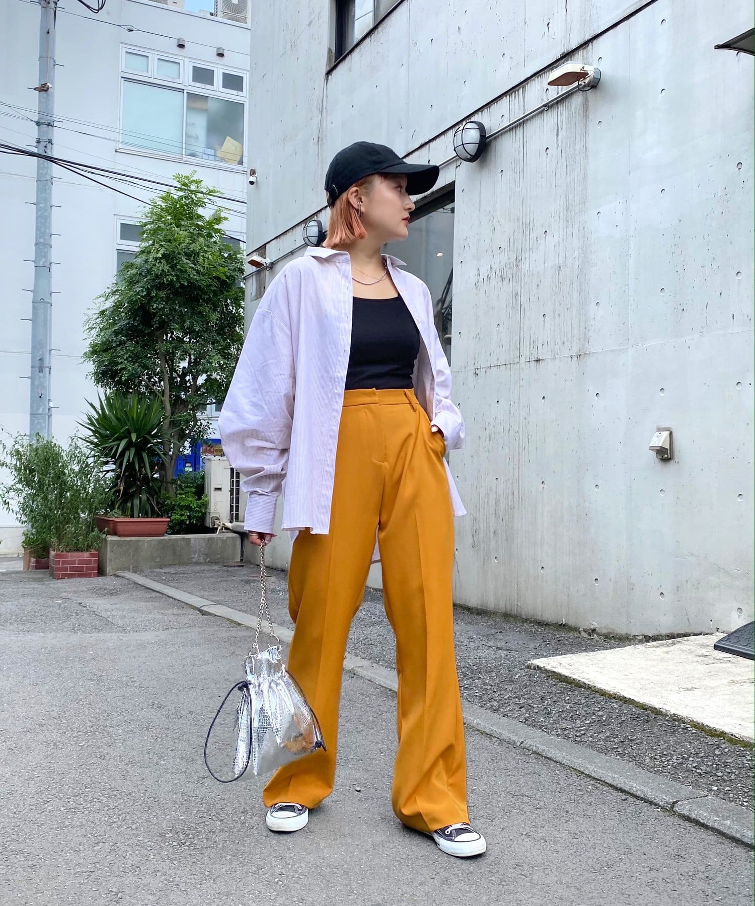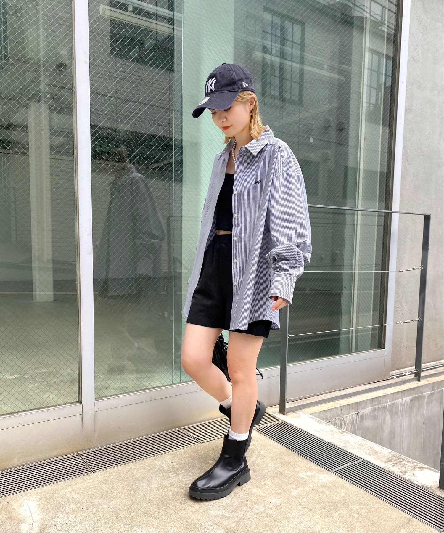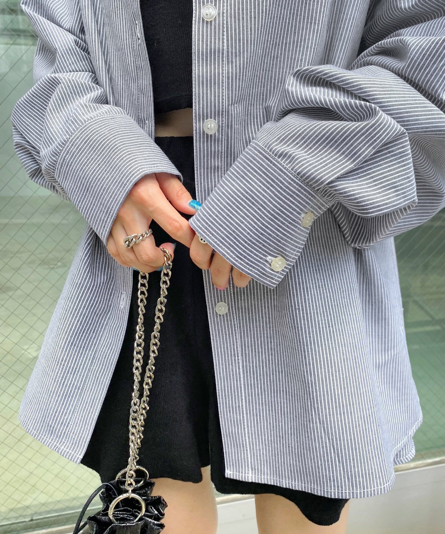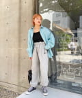 ・ストライプのラインが細く、柄を強調しすぎない為、コーデの雰囲気を損ないません。