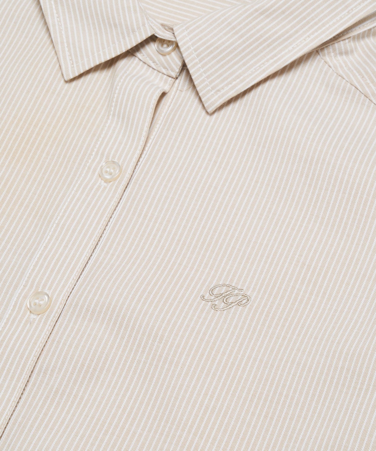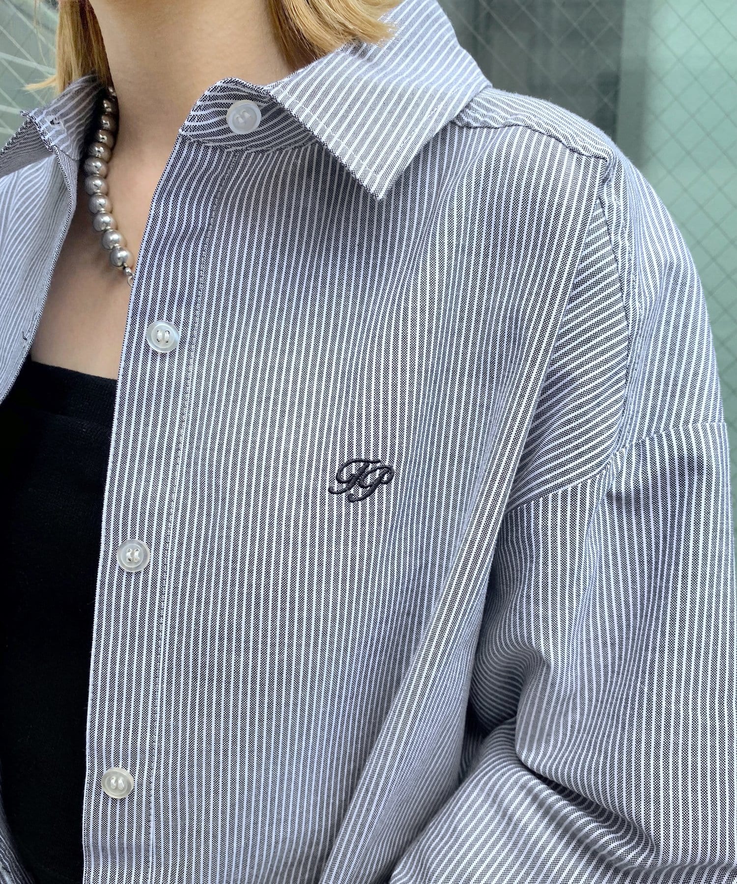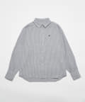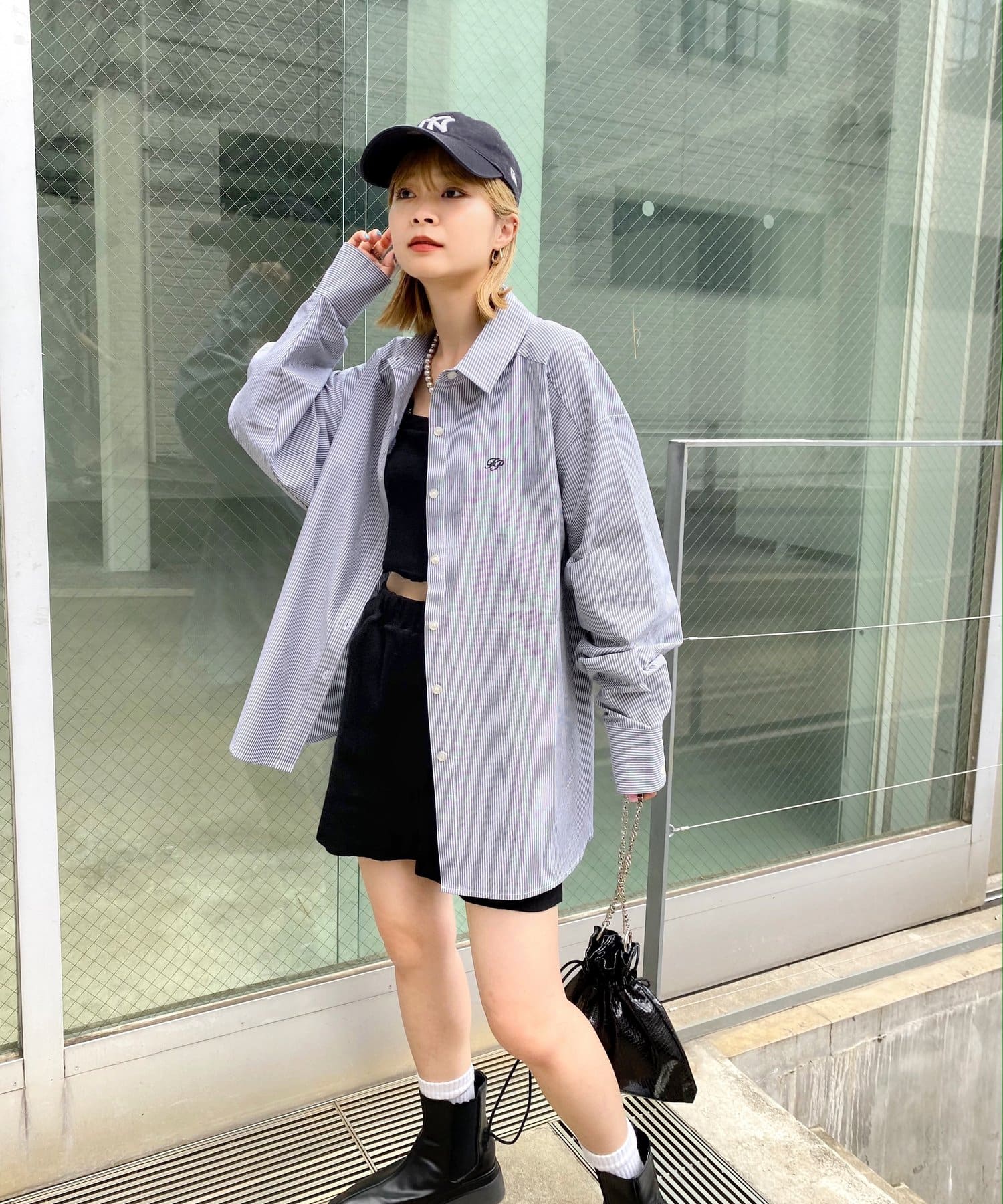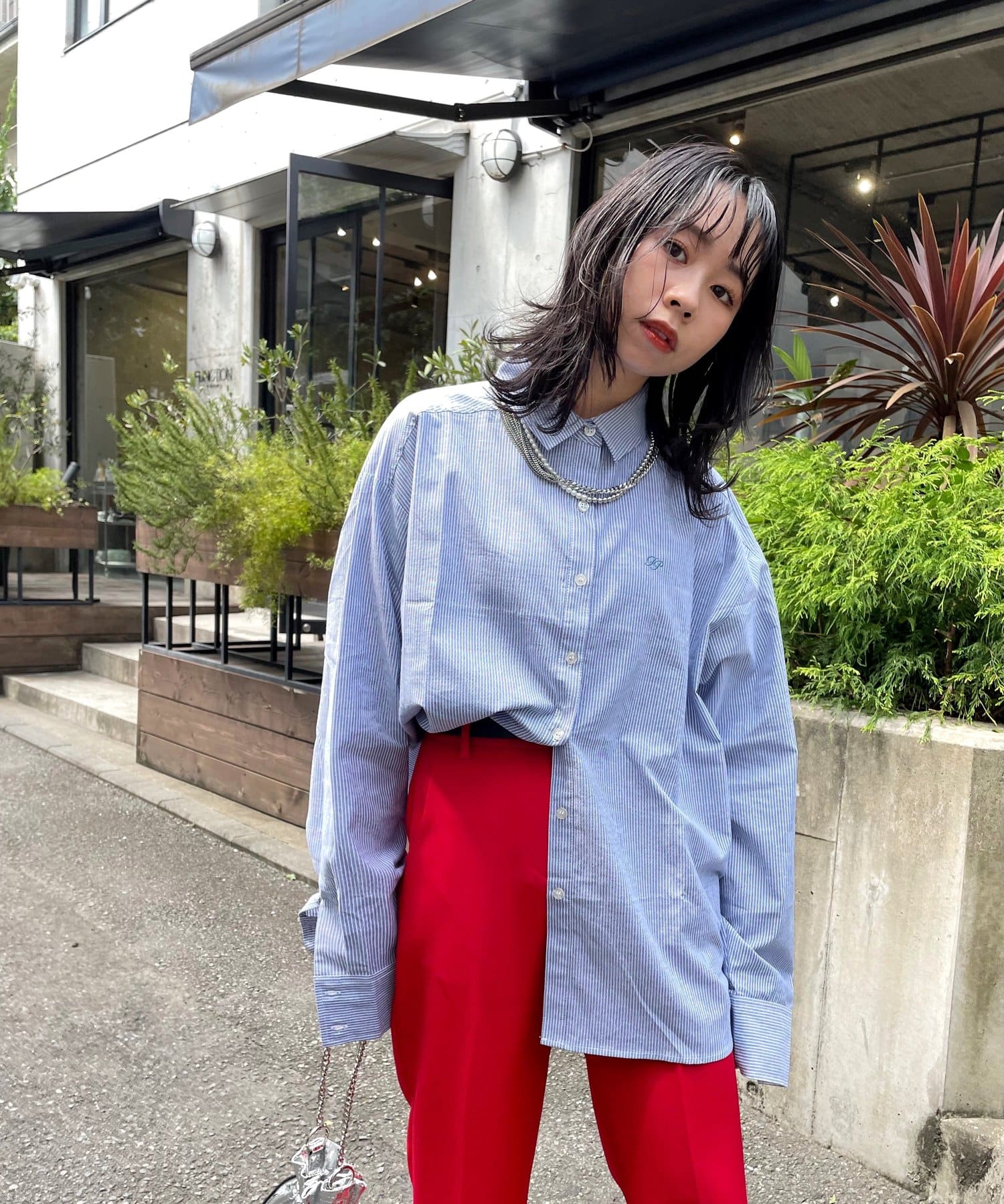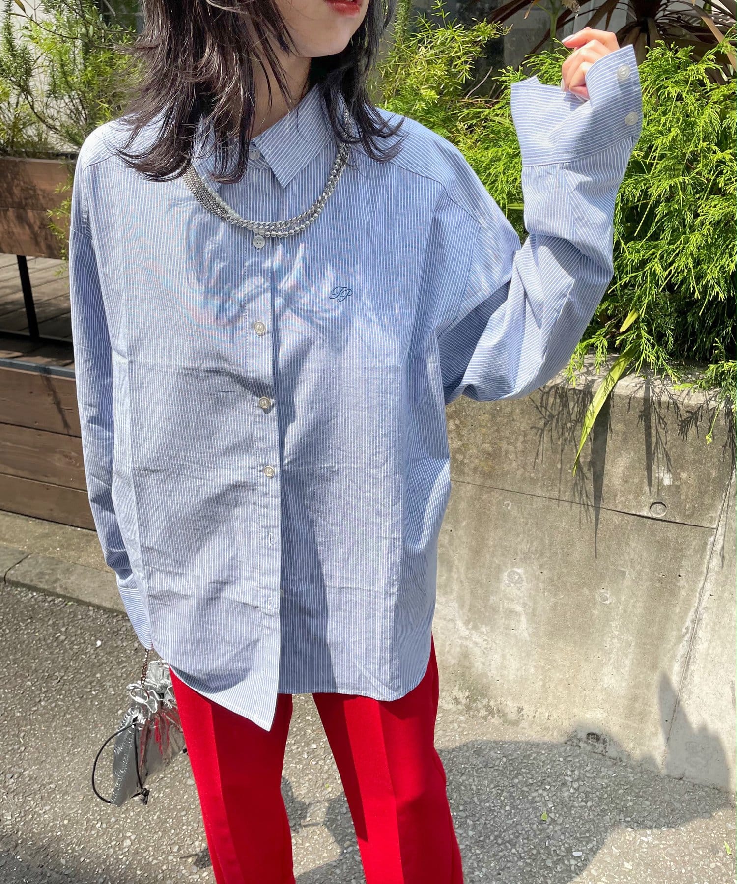 今季テーマ“Flower Punk”の刺繍ロゴが光る、ビッグシルエットなストライプシャツ