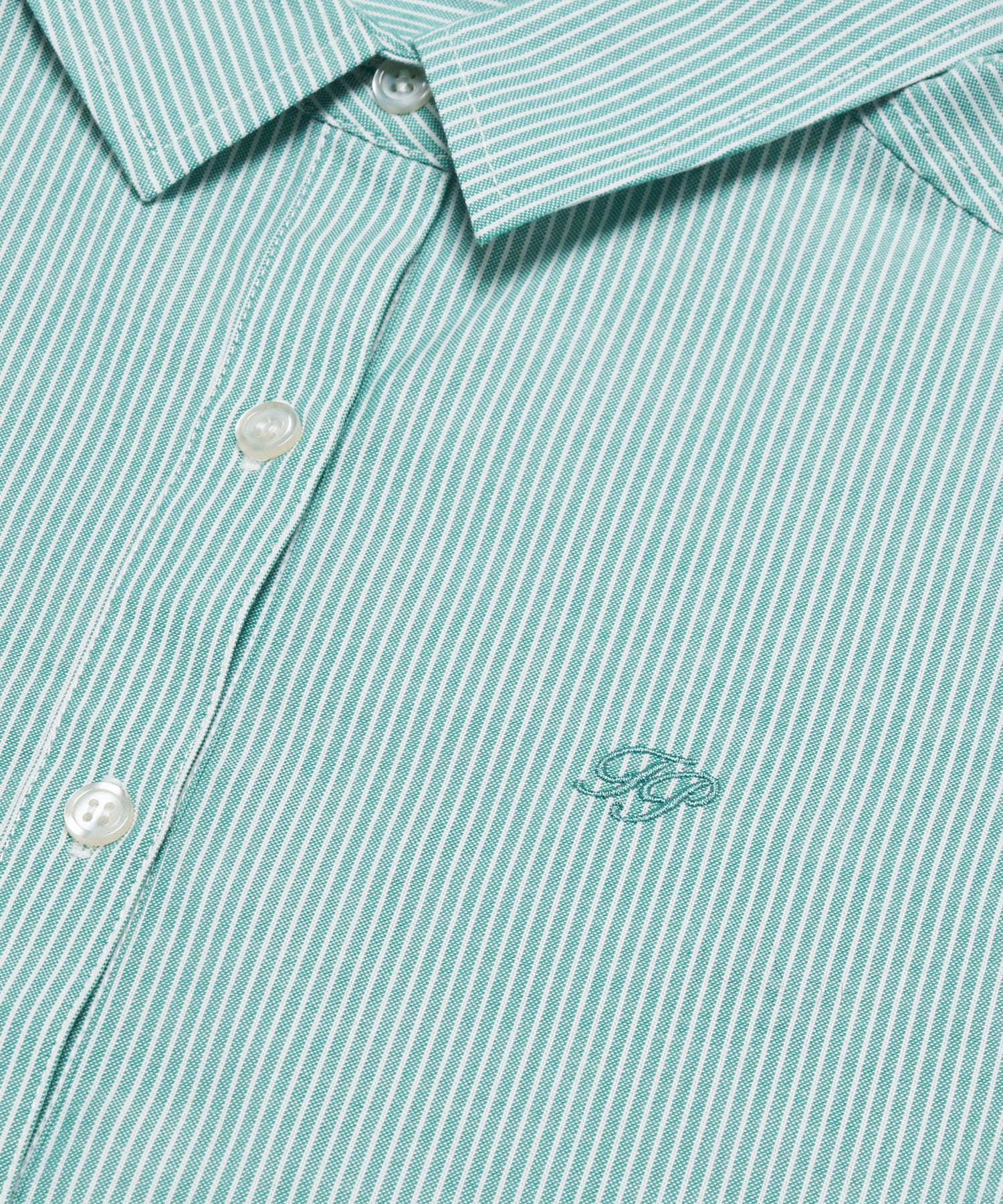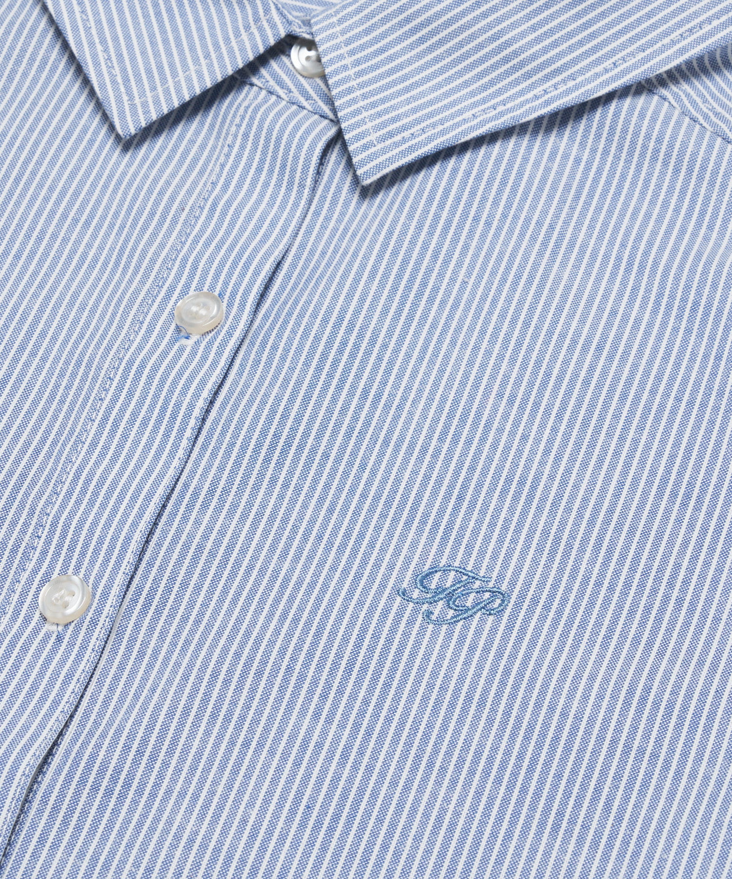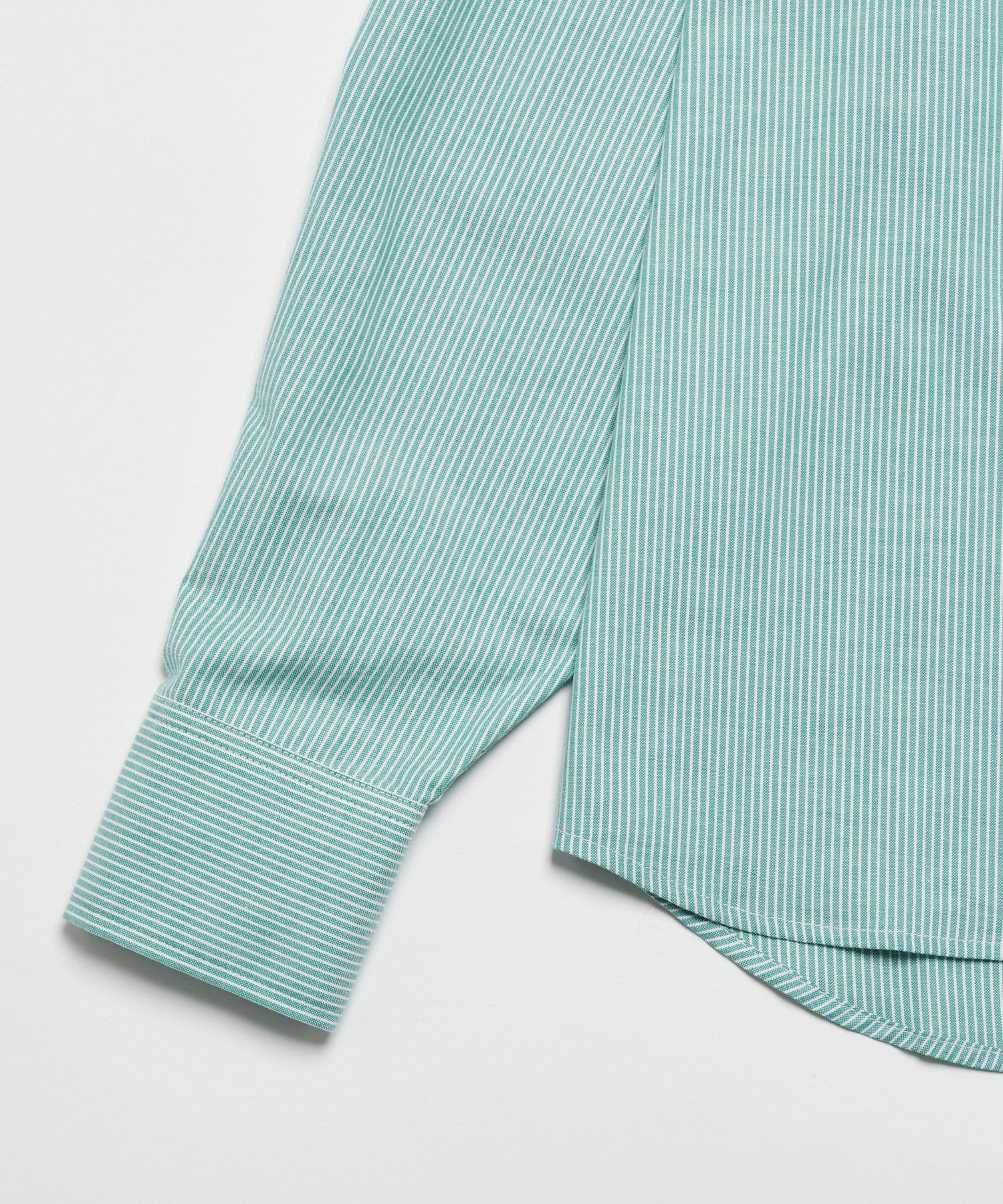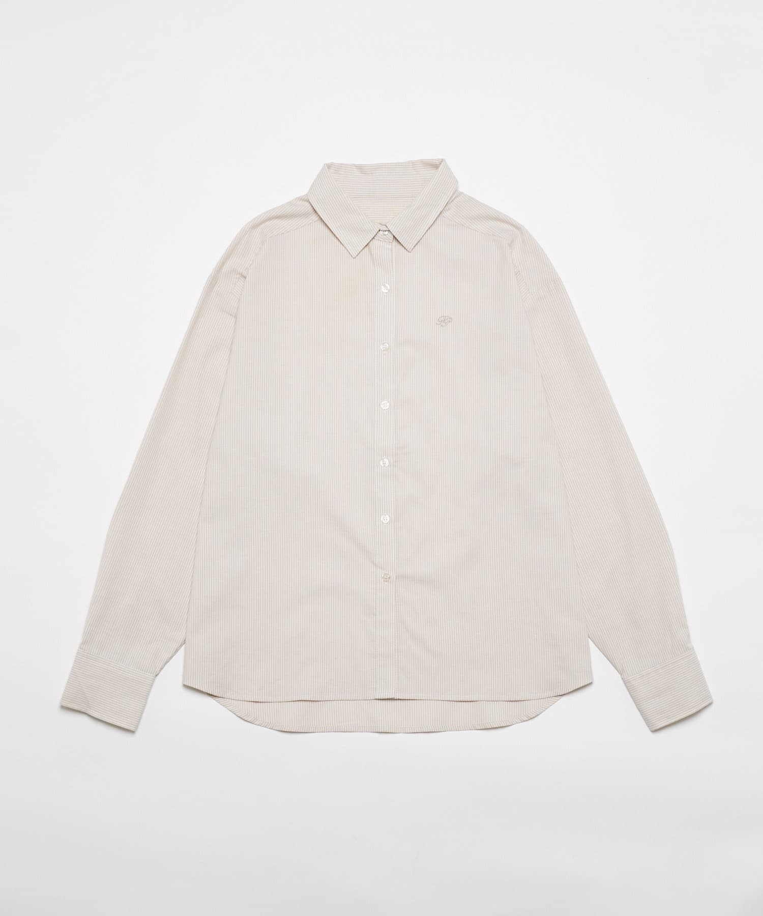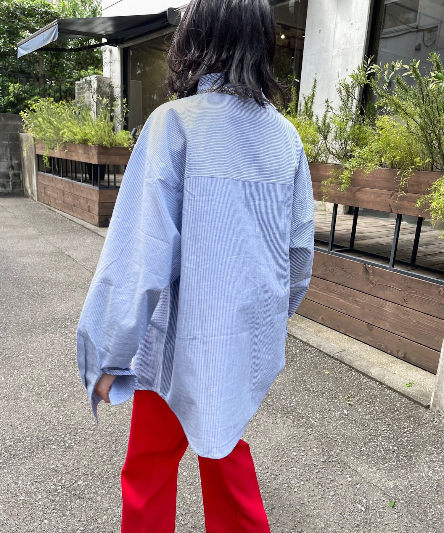 今季テーマ“Flower Punk”の刺繍ロゴが光る、ビッグシルエットなストライプシャツ