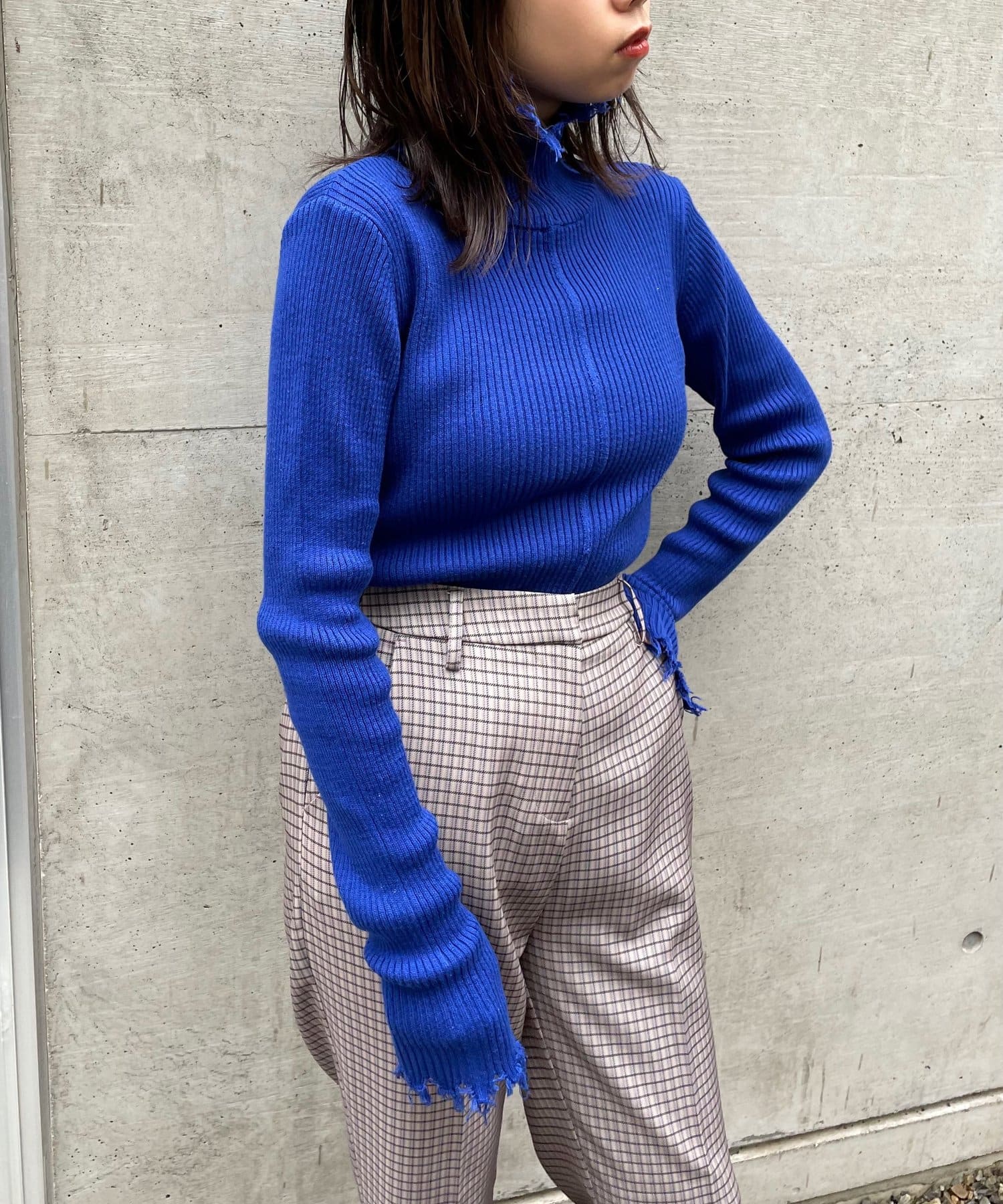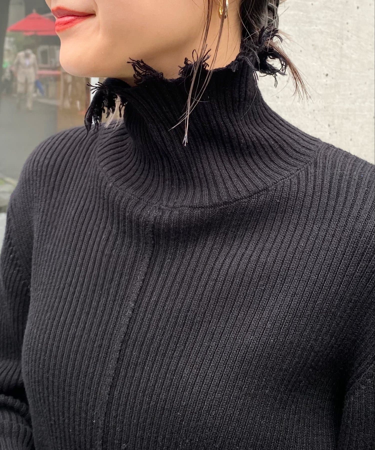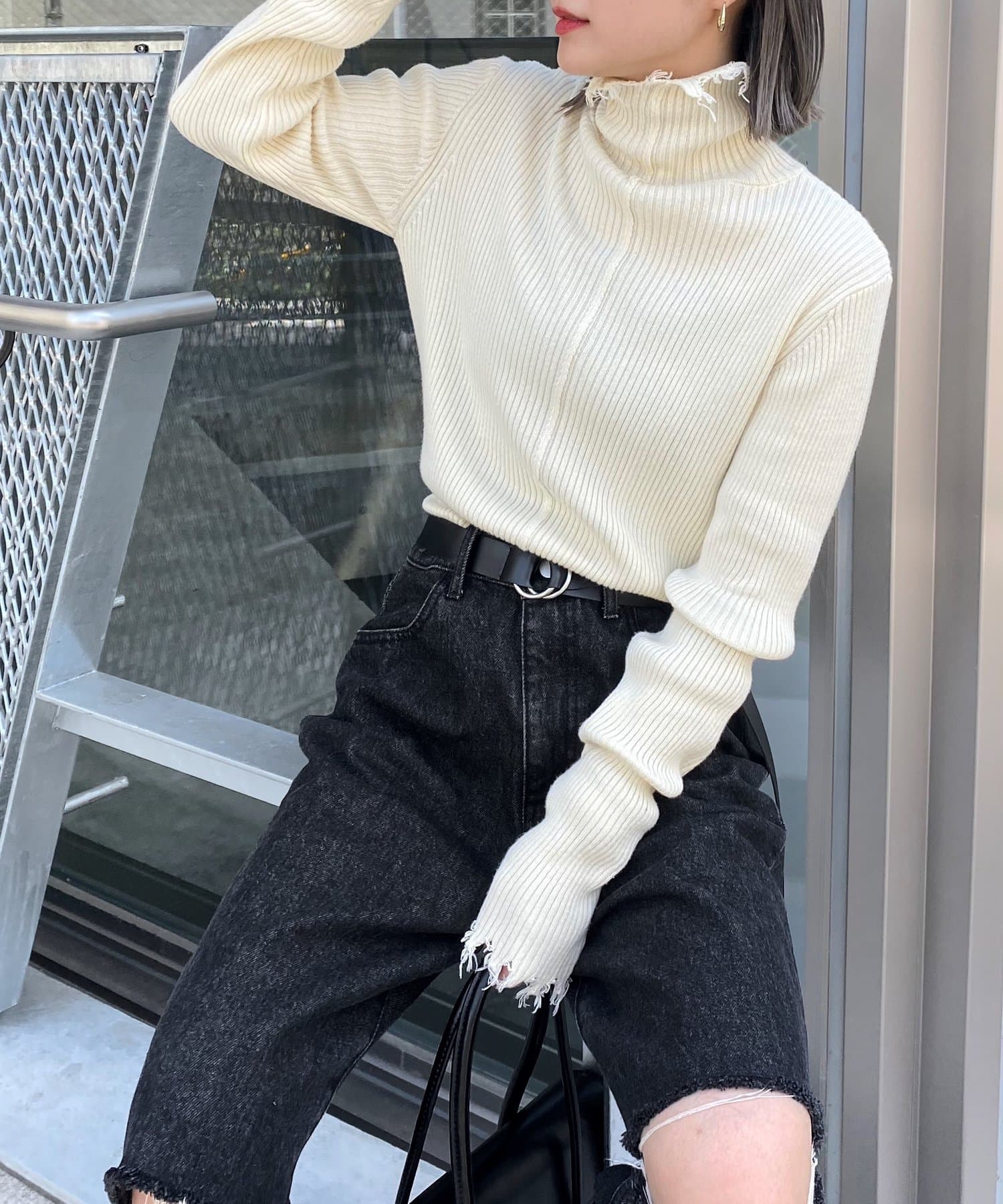 首元のダメージ加工がポイント!インナーにも一枚着にも愛用◎タートルニット