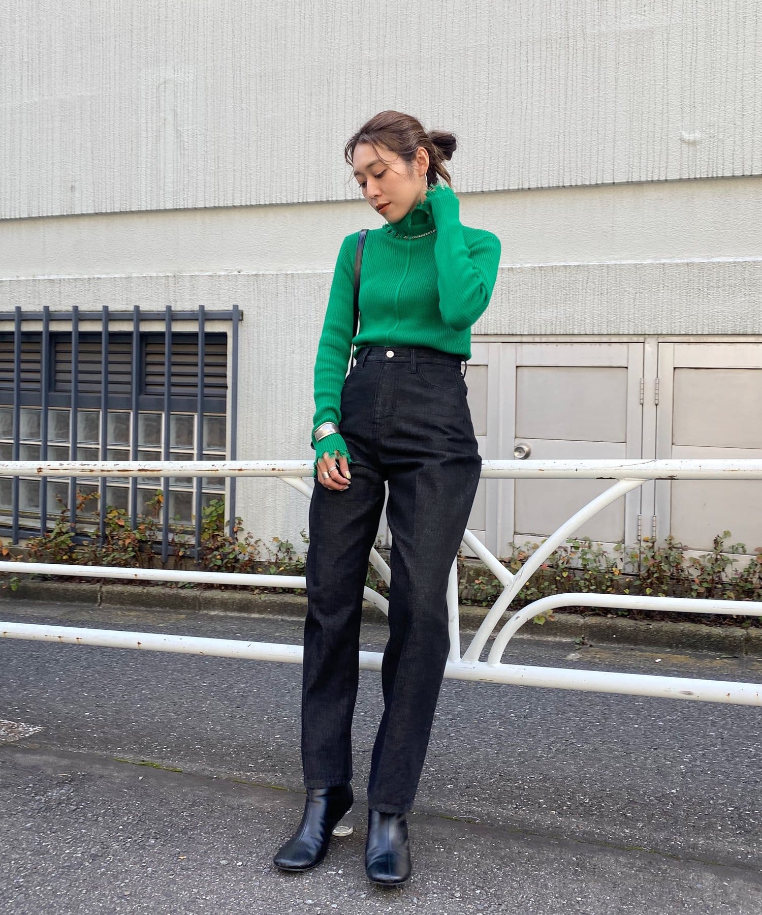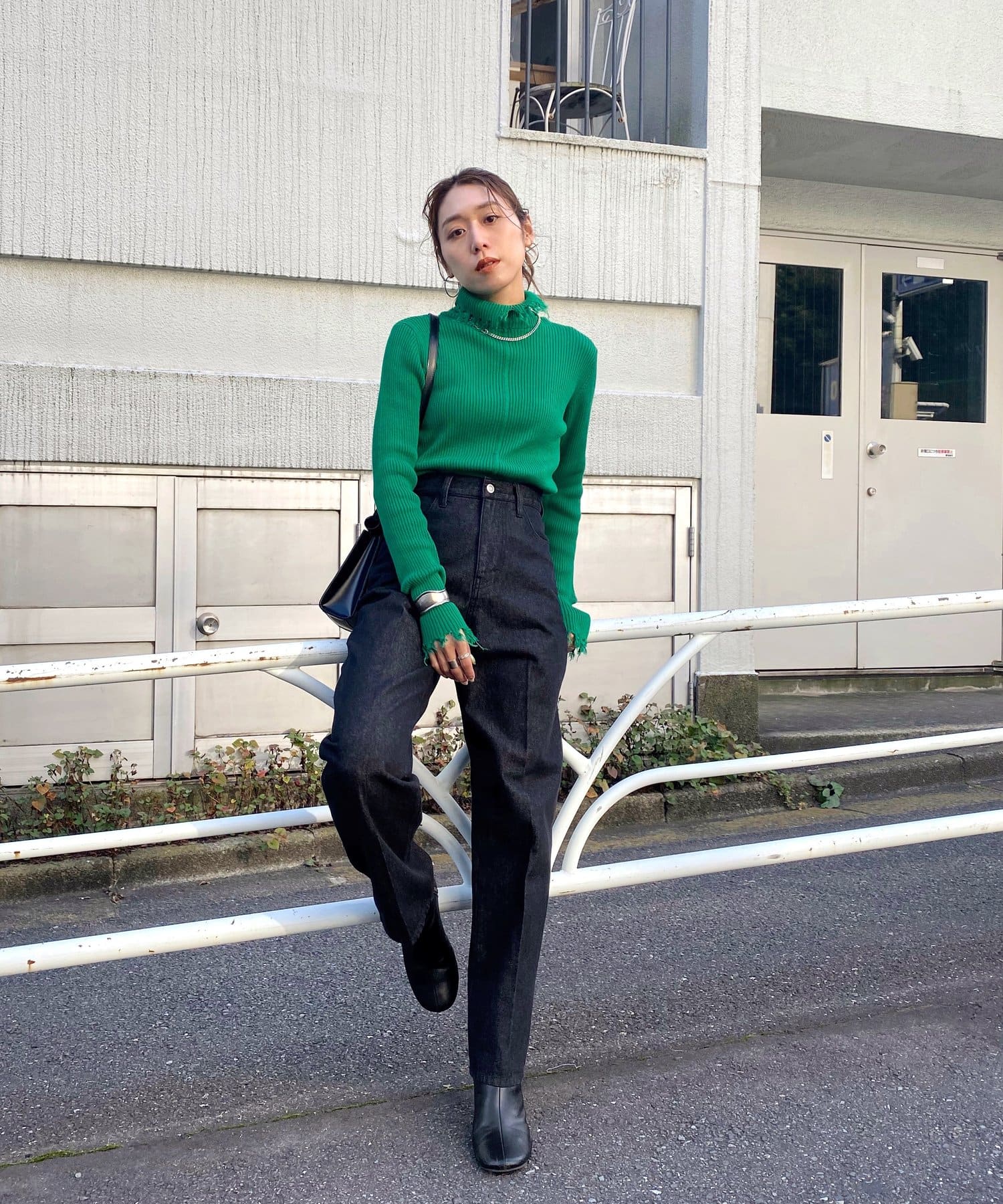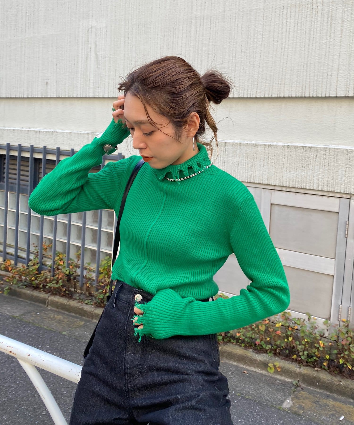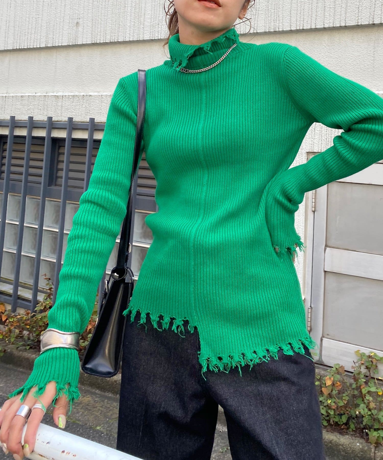 首元のダメージ加工がポイント!インナーにも一枚着にも愛用◎タートルニット