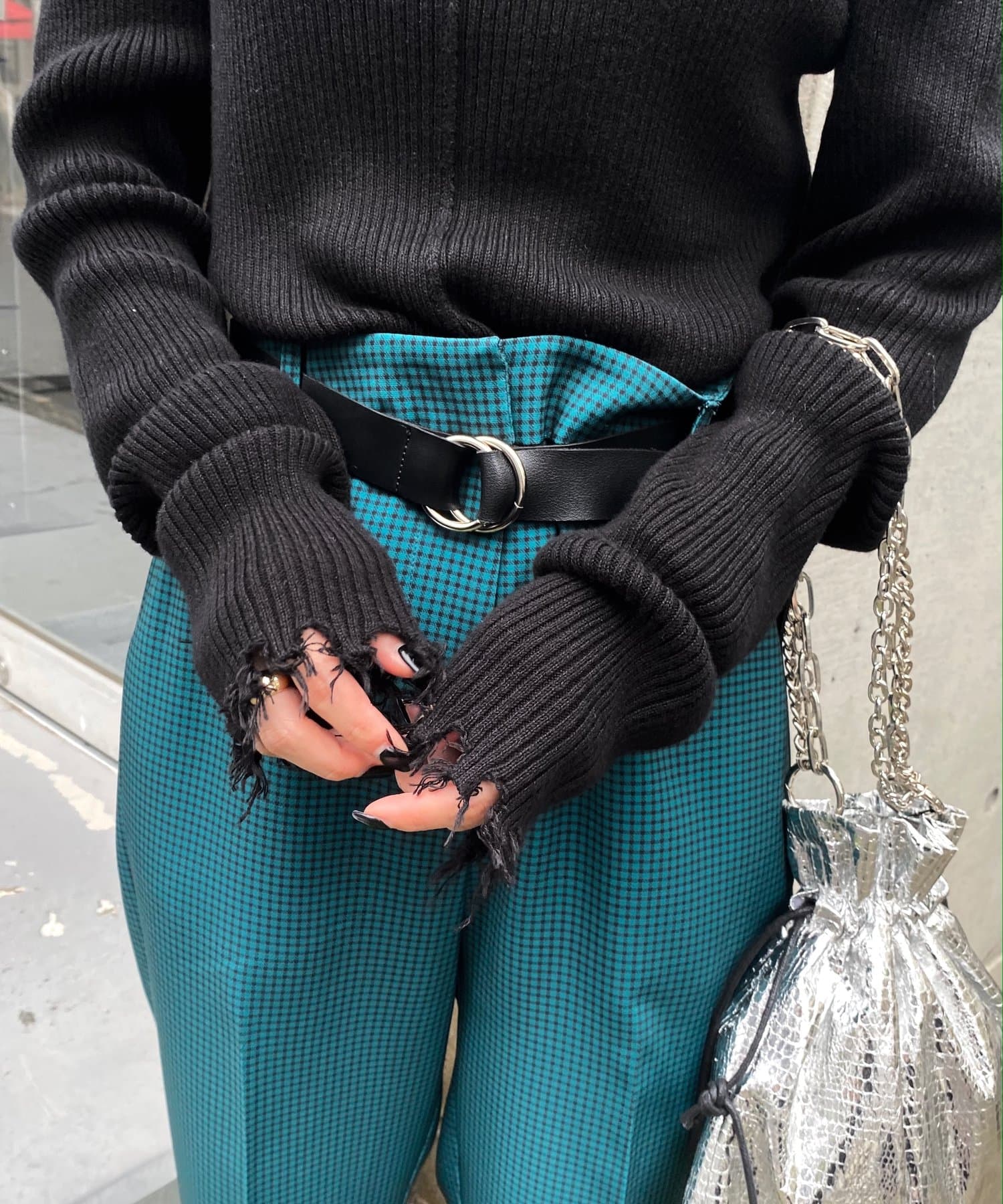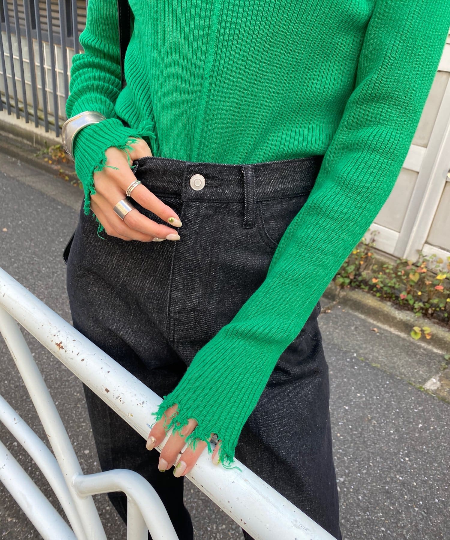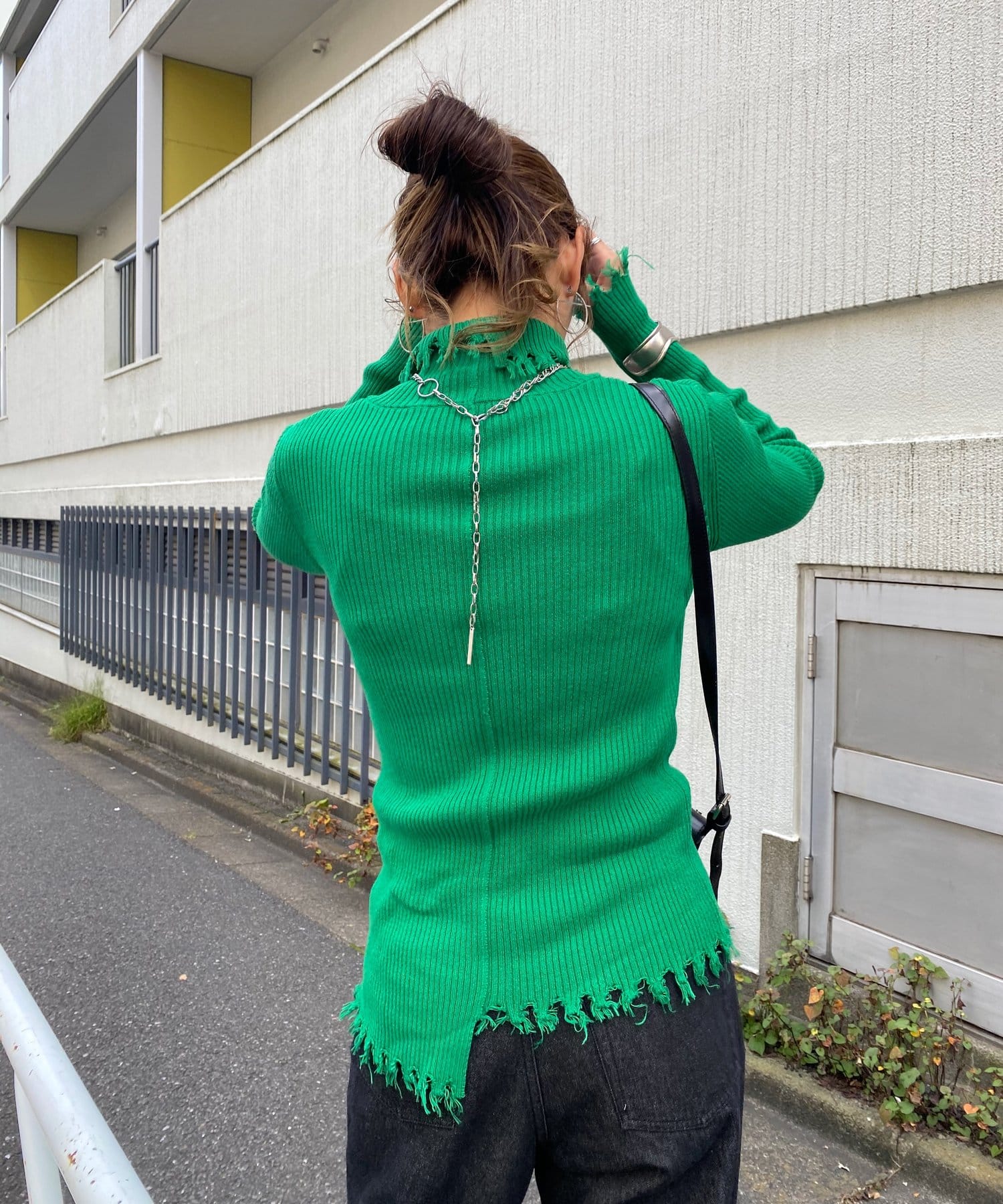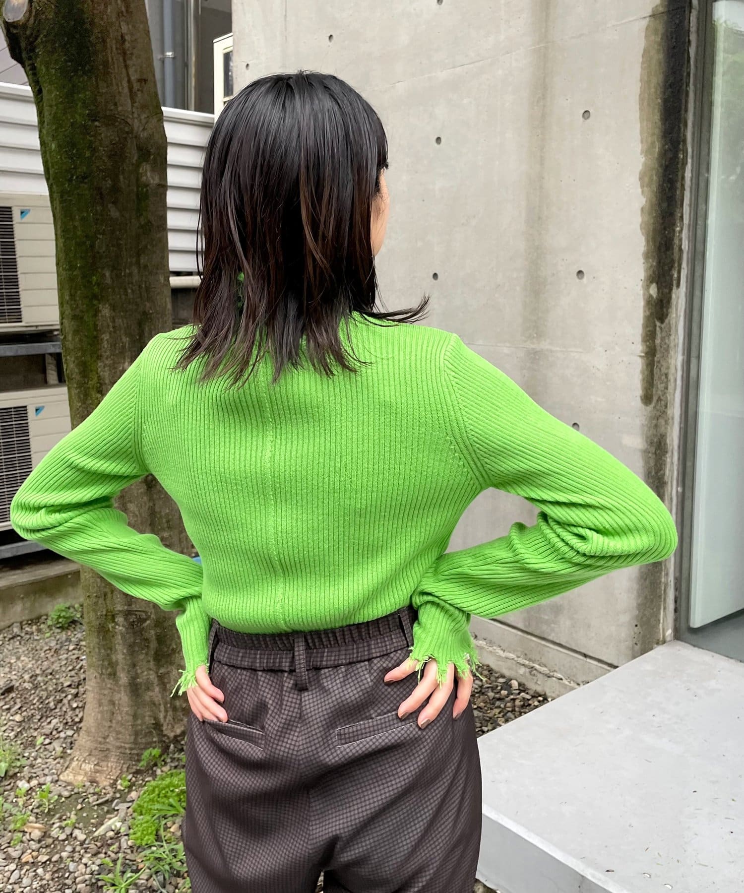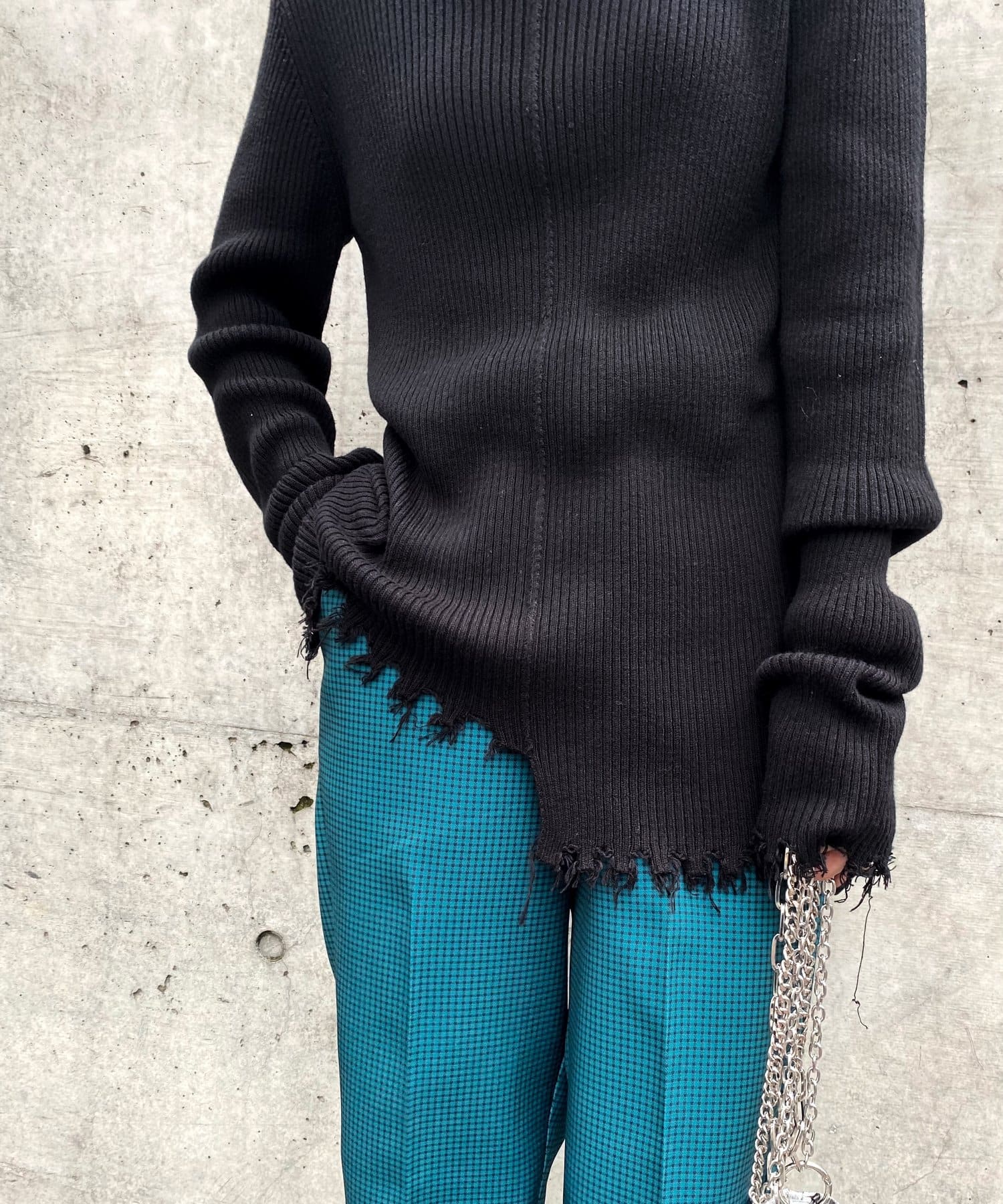 ダメージスライドリブニット
