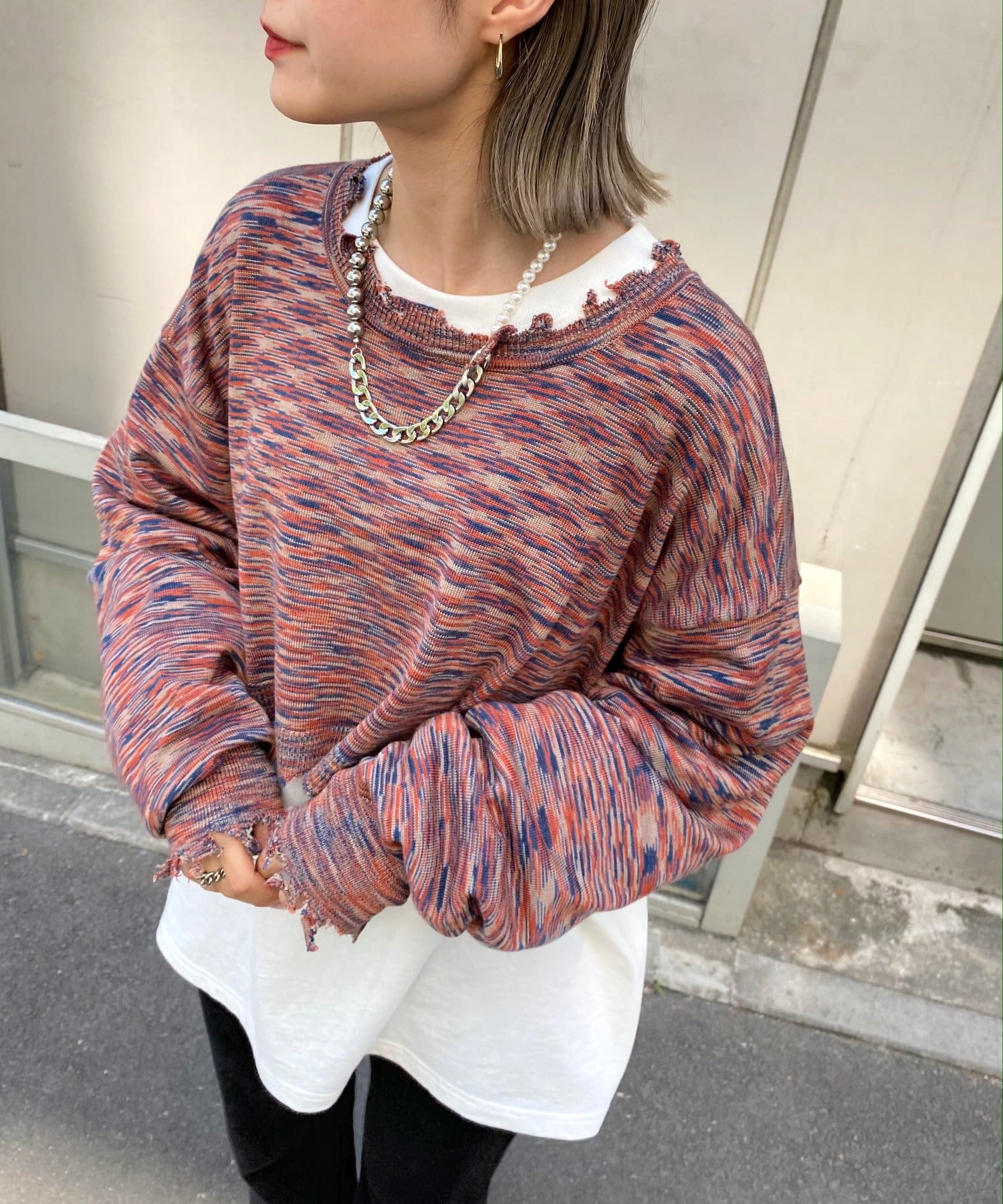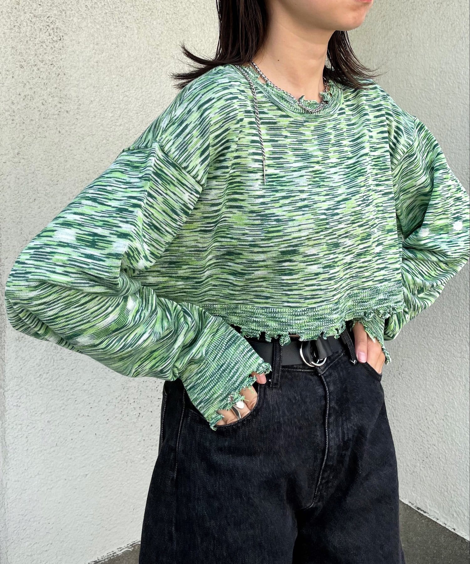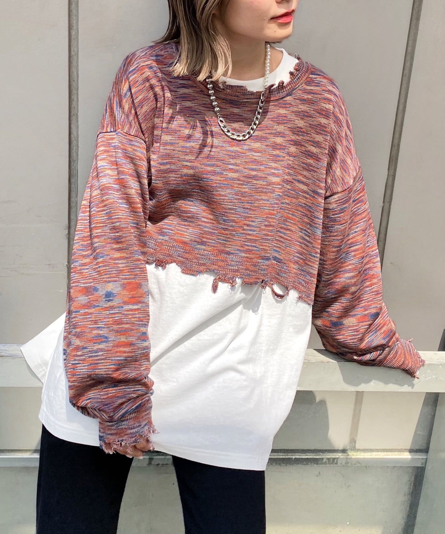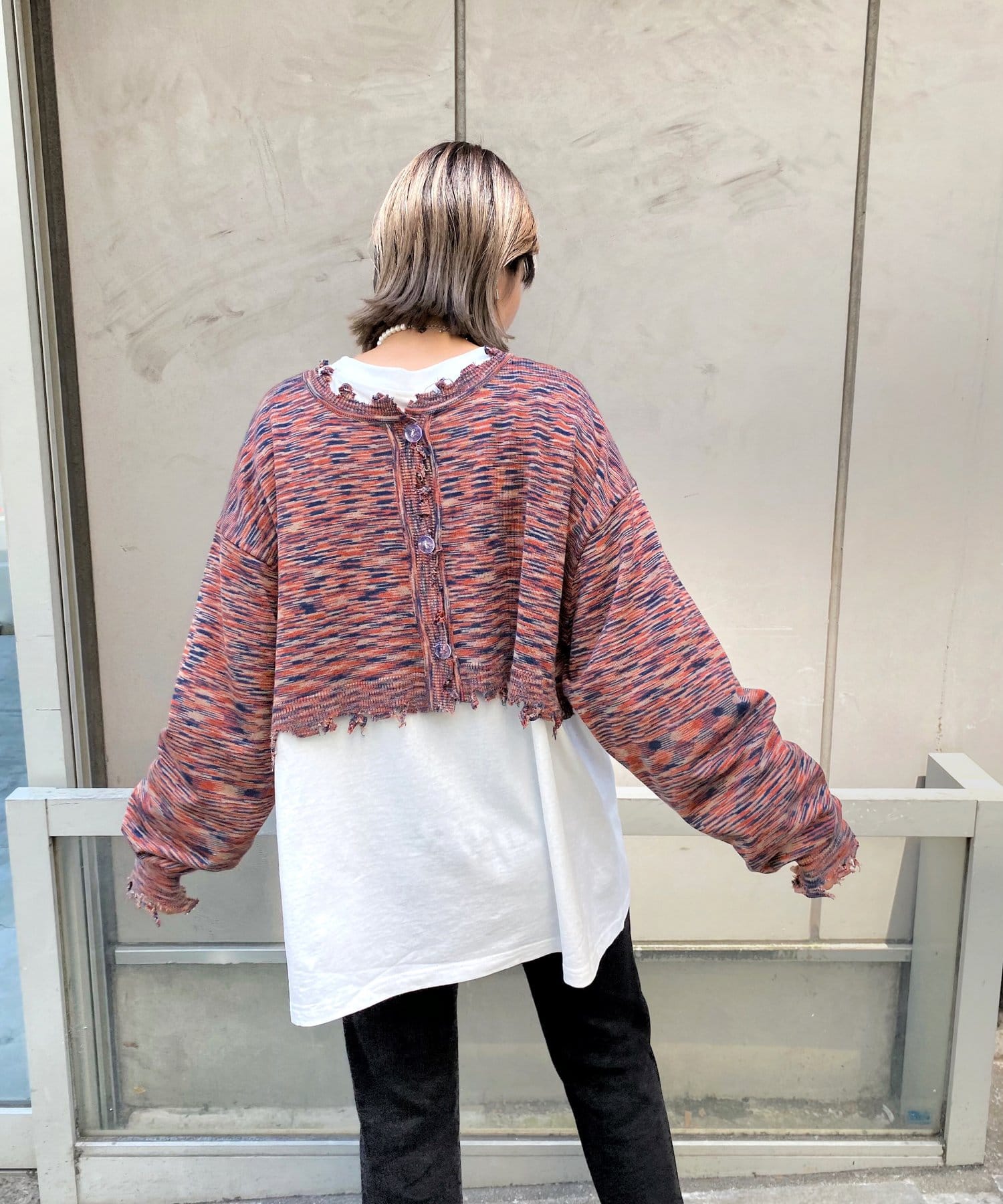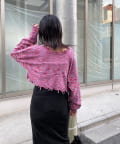 ・首元/裾/袖のダメージがさらにデザイン性を引き立てます。柄×ダメージでコーデの主役に。