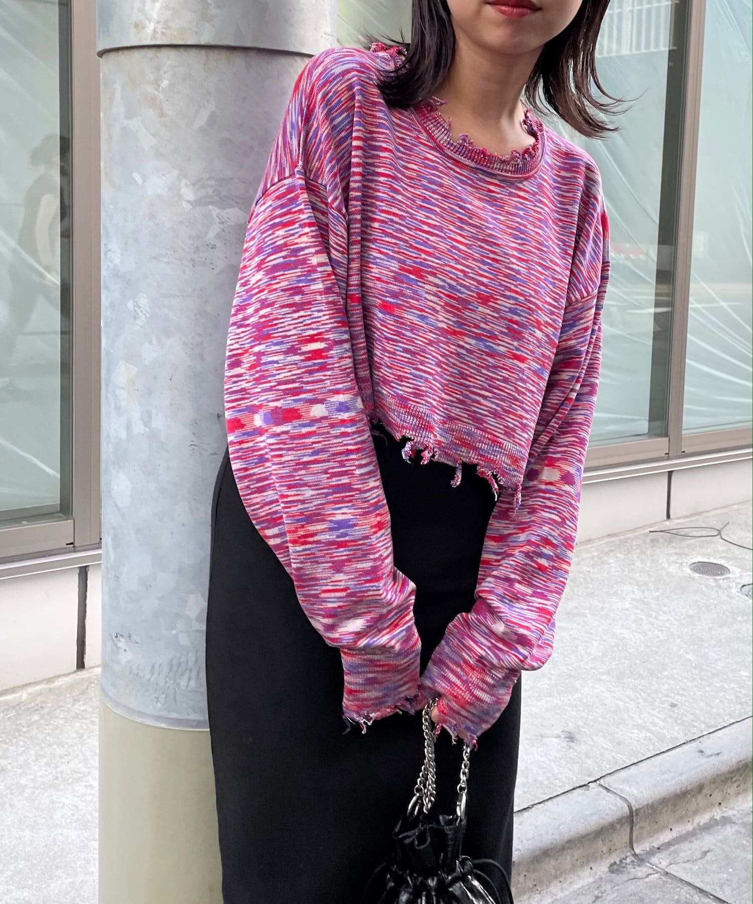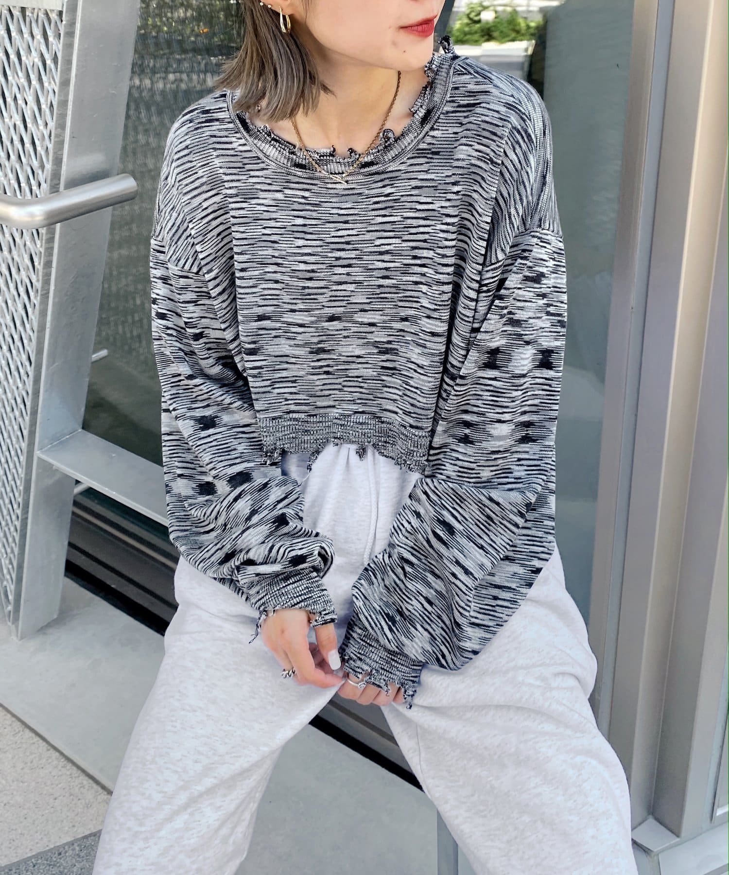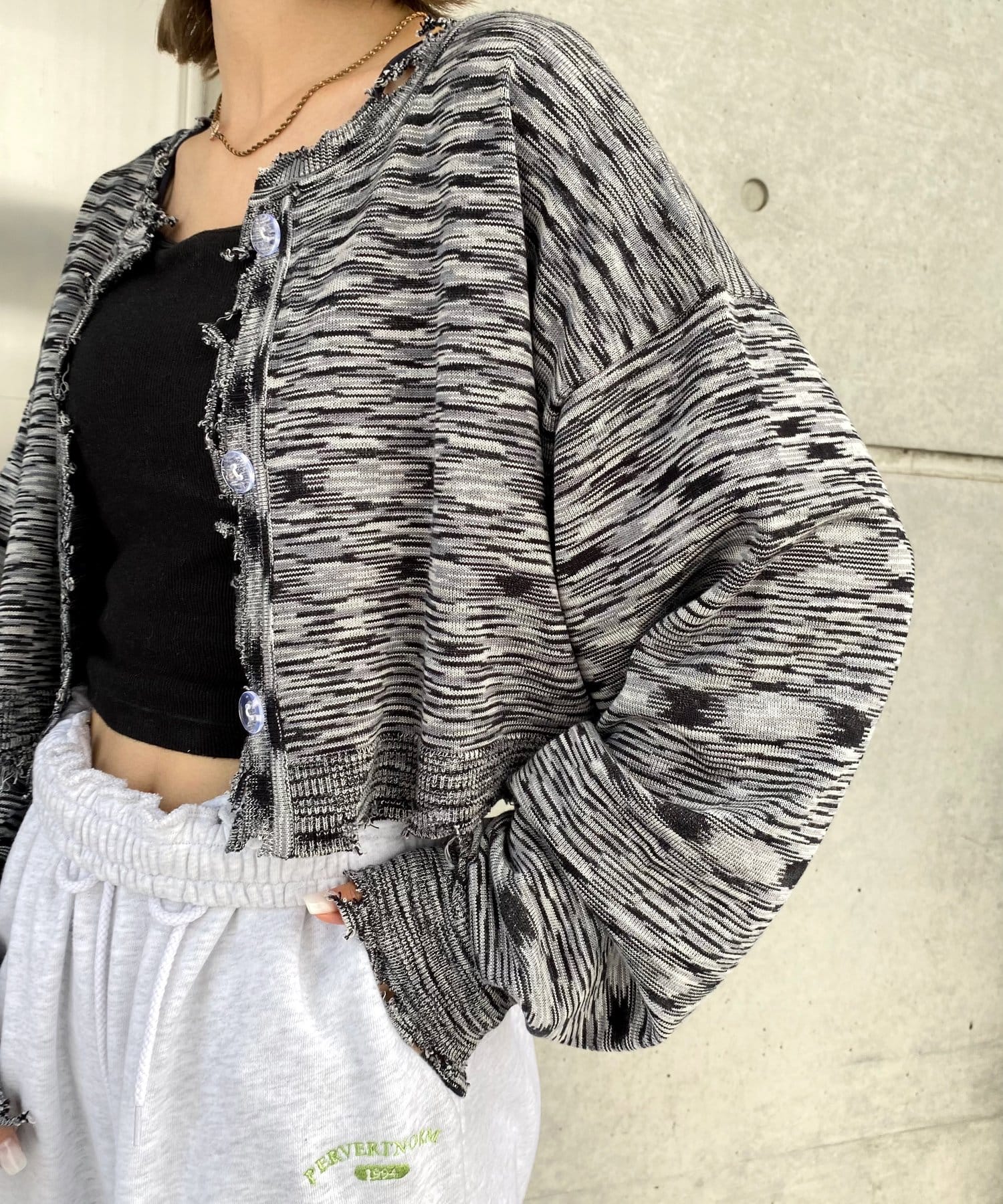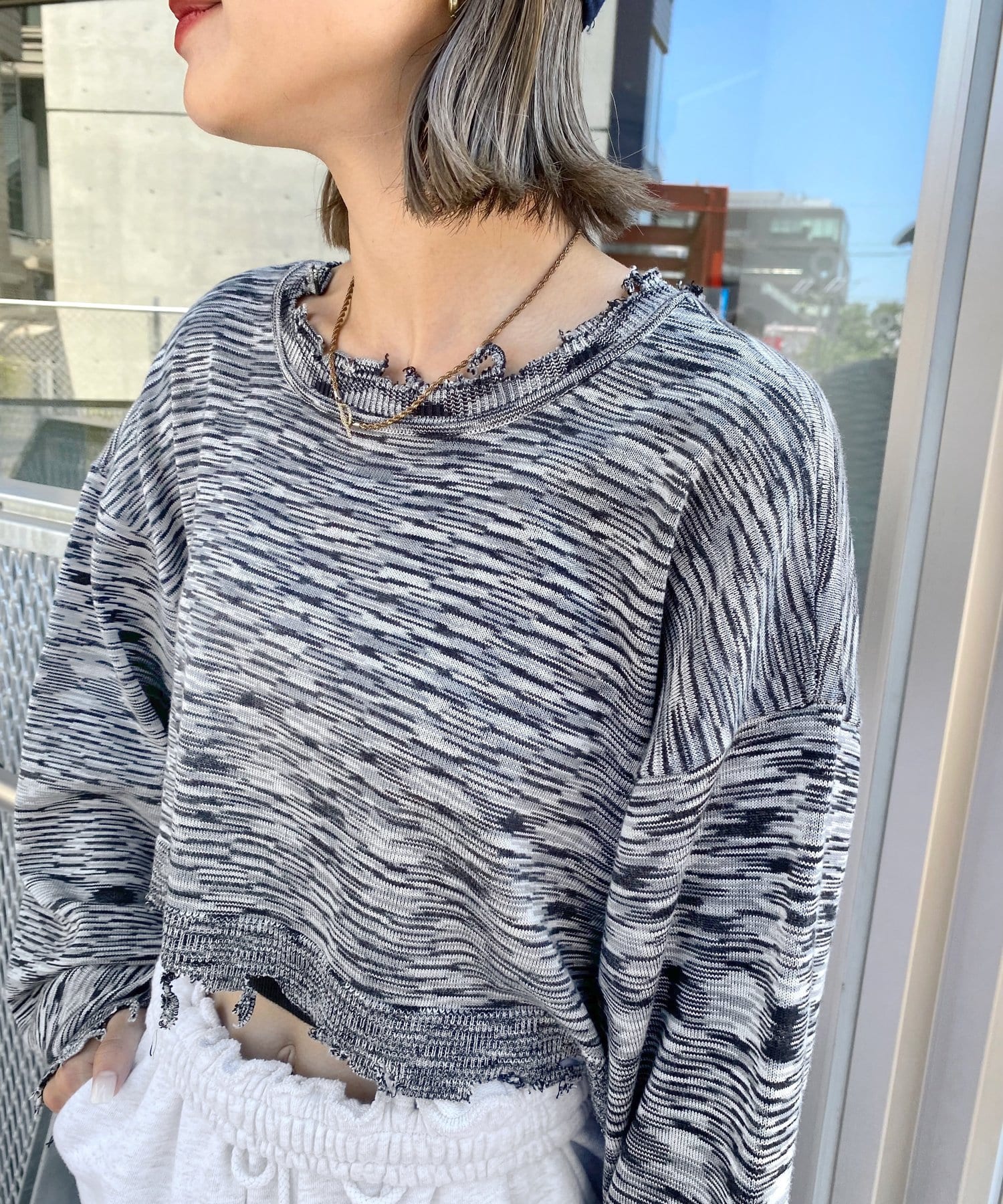 ・首元/裾/袖のダメージがさらにデザイン性を引き立てます。柄×ダメージでコーデの主役に。
