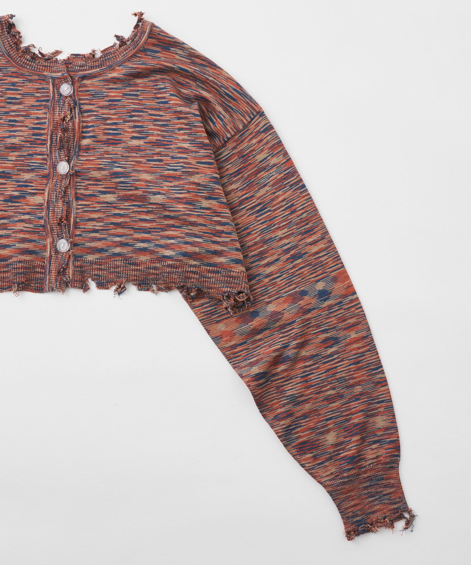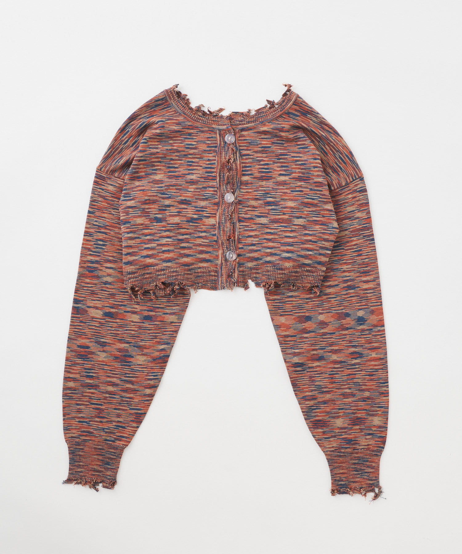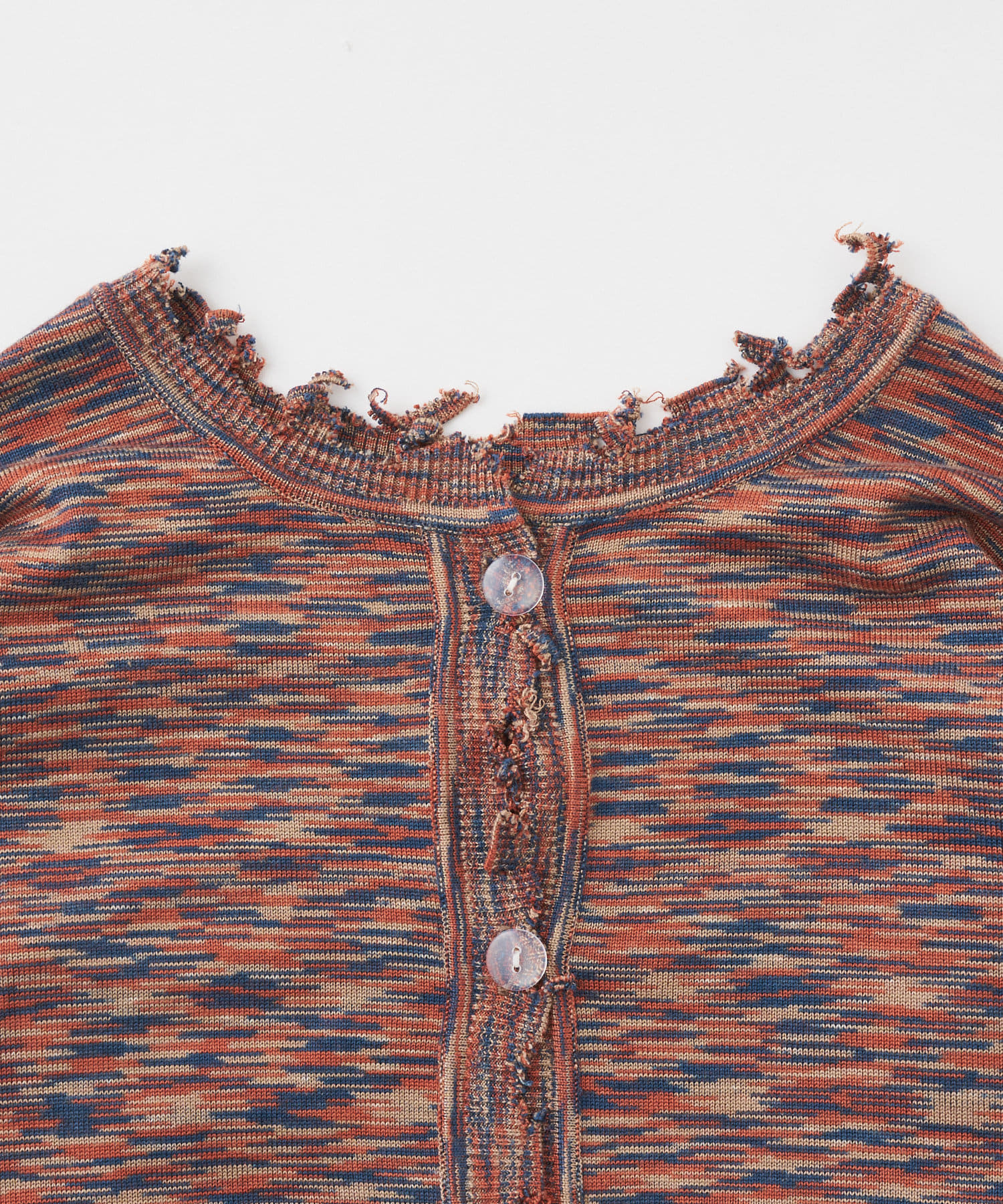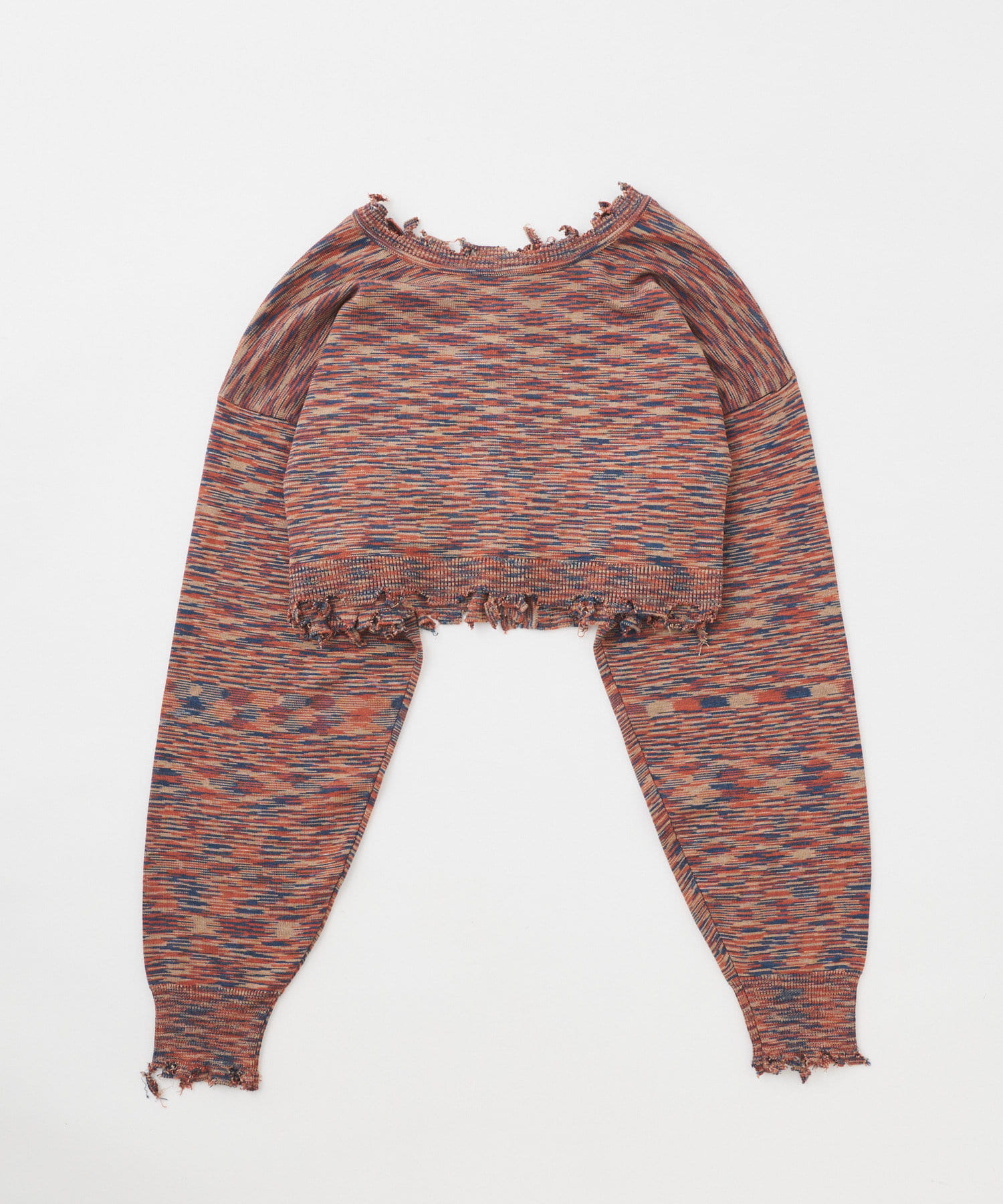 ・首元/裾/袖のダメージがさらにデザイン性を引き立てます。柄×ダメージでコーデの主役に。
