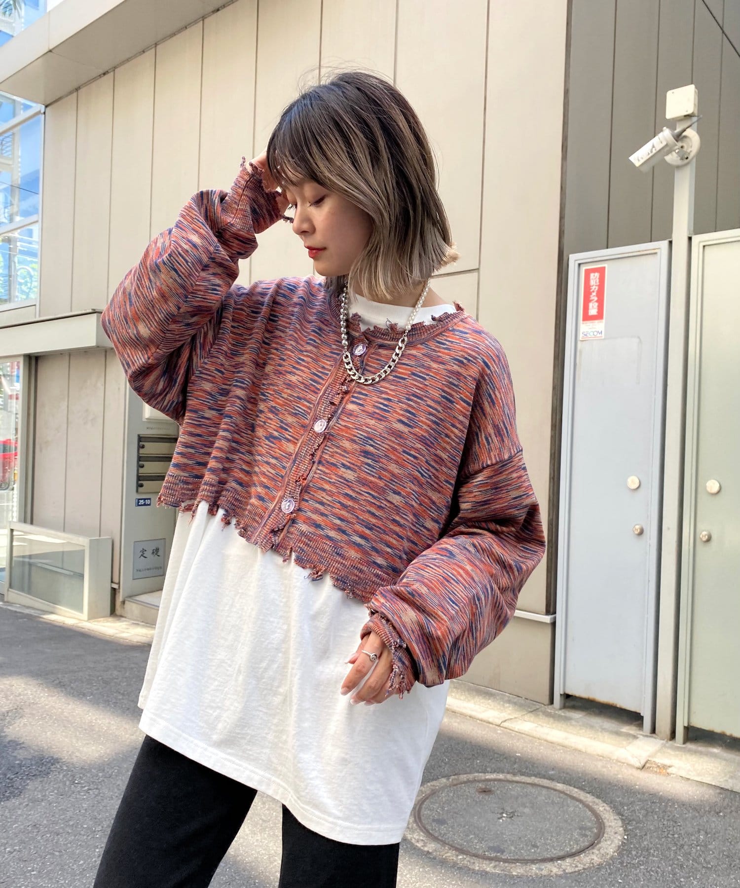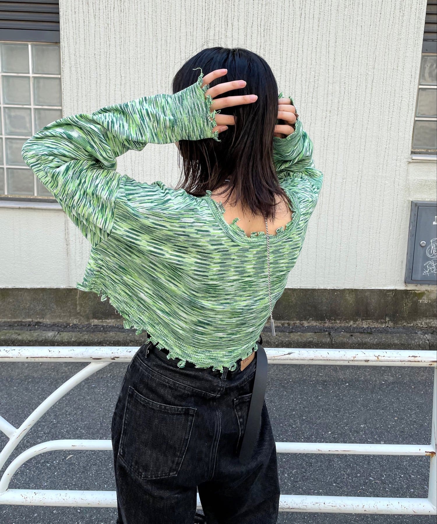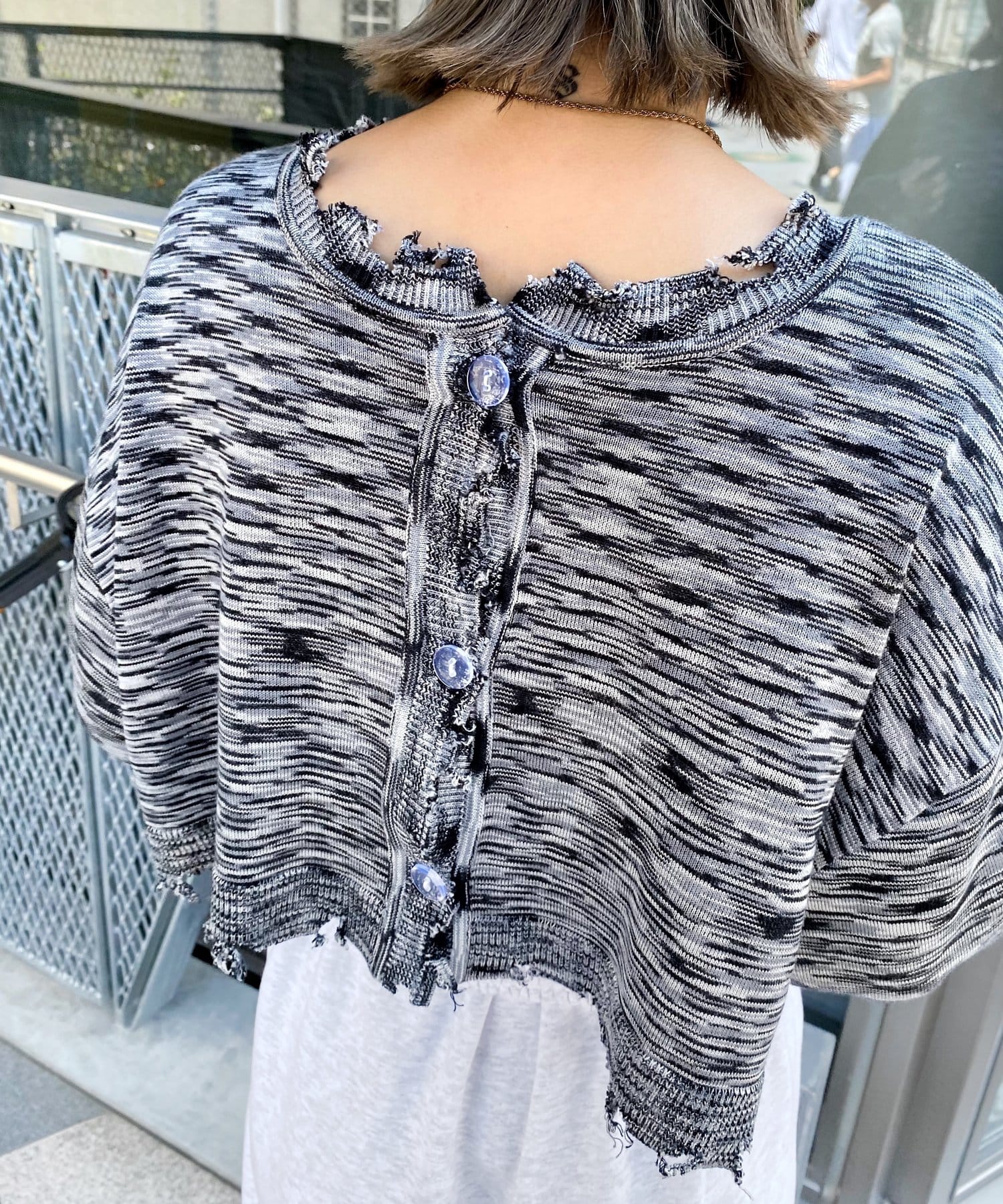・前後2WAYなので、カーディガン or バックボタンスタイルのトップス、気分に合わせて好きな着こなしが出来ます。