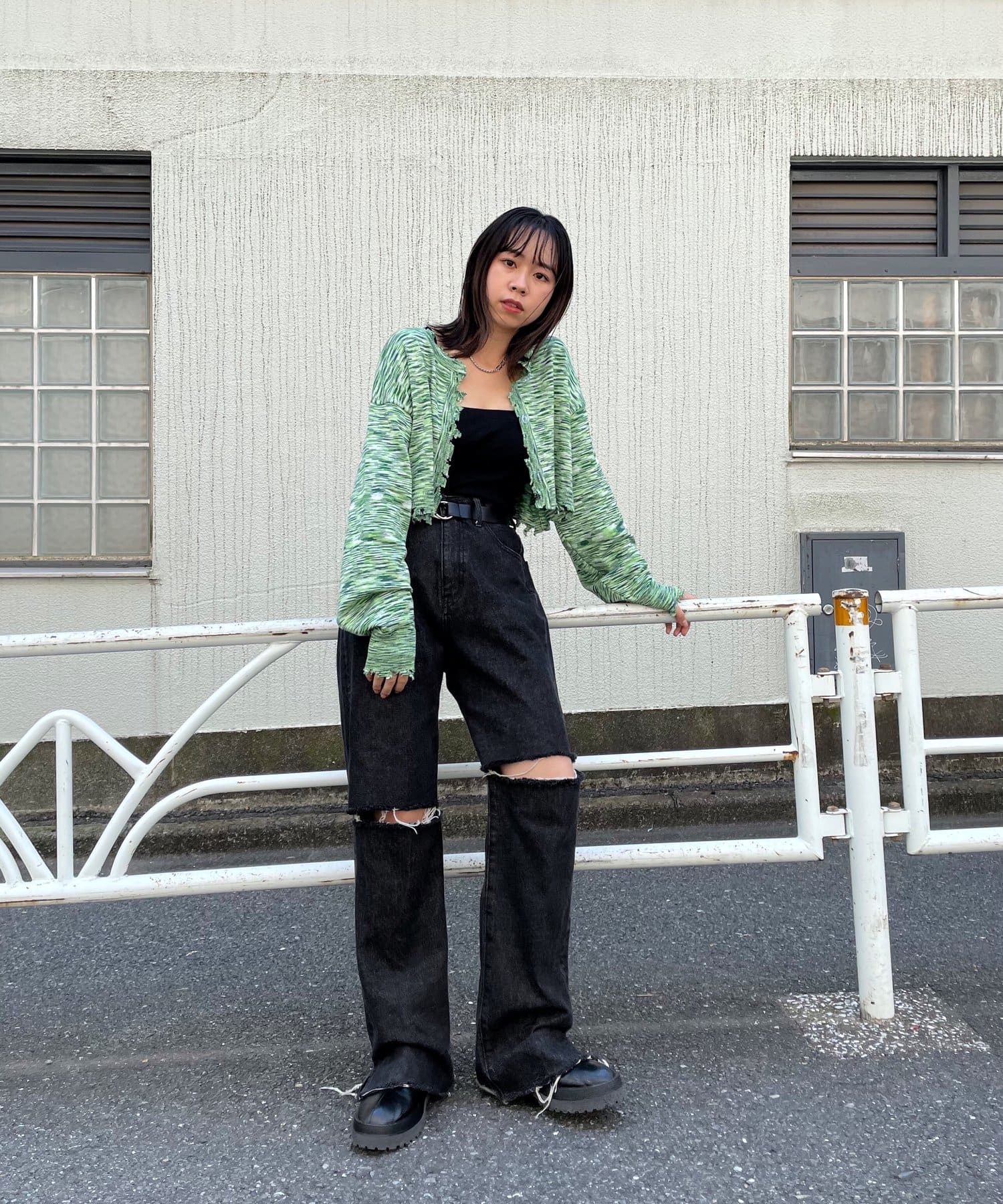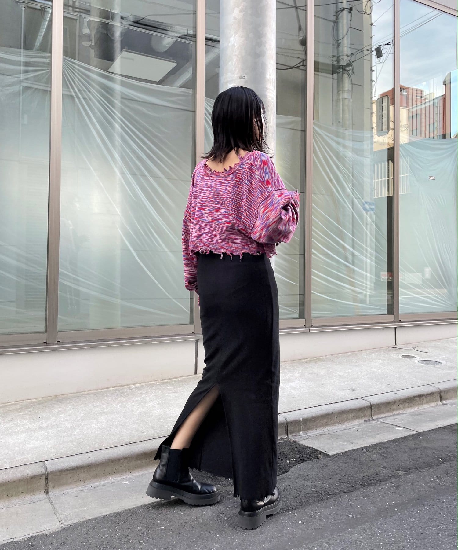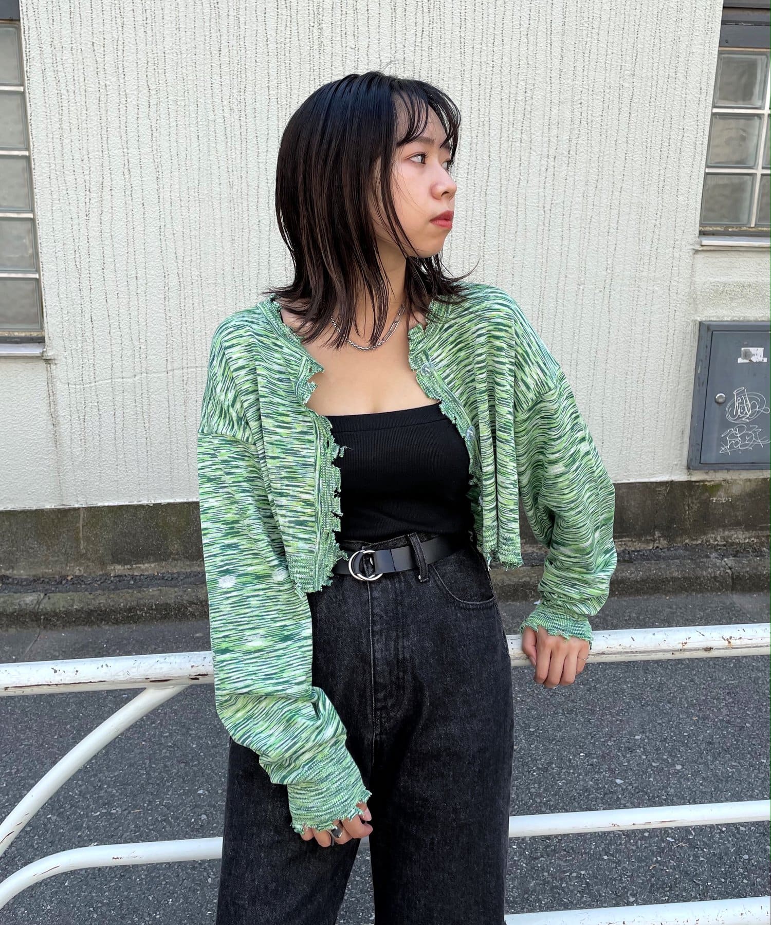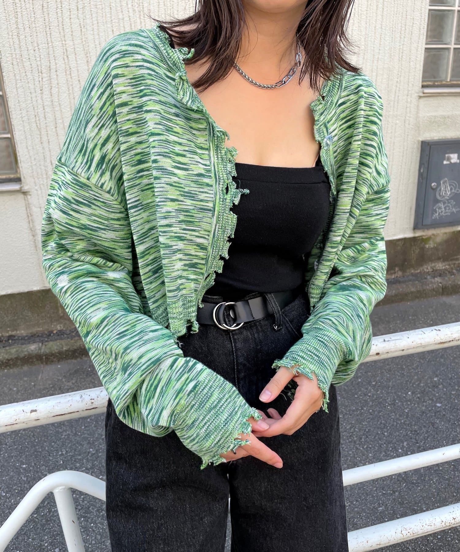 ・前後2WAYなので、カーディガン or バックボタンスタイルのトップス、気分に合わせて好きな着こなしが出来ます。