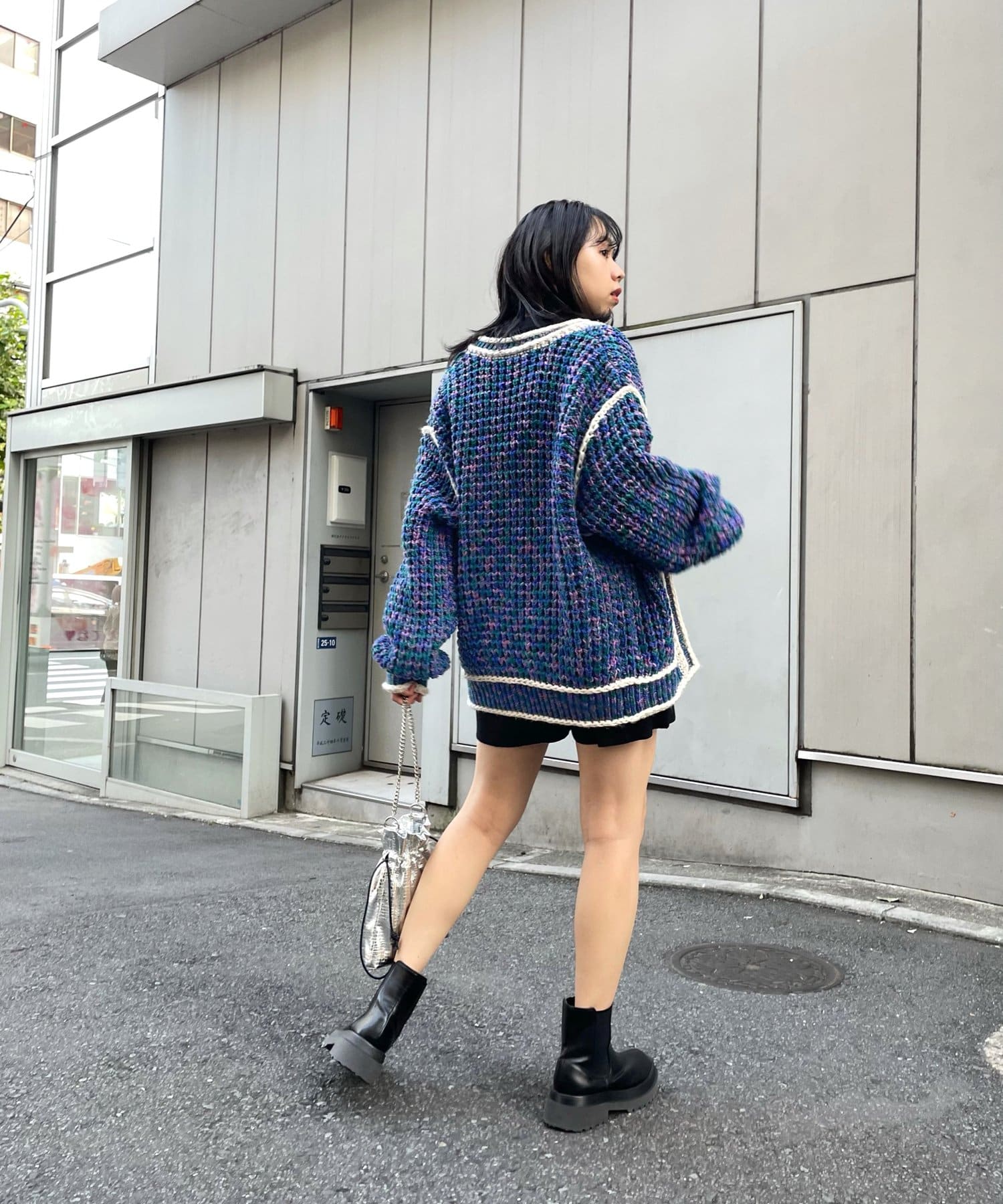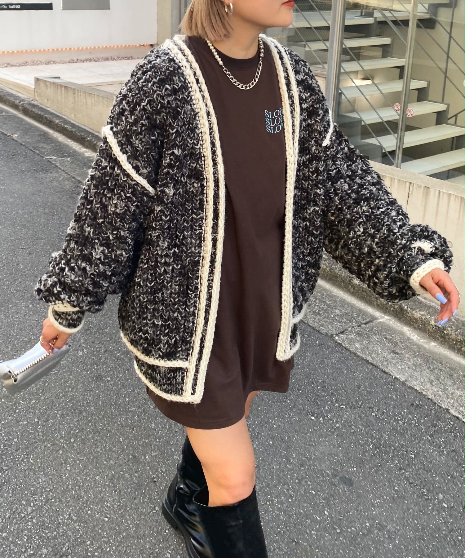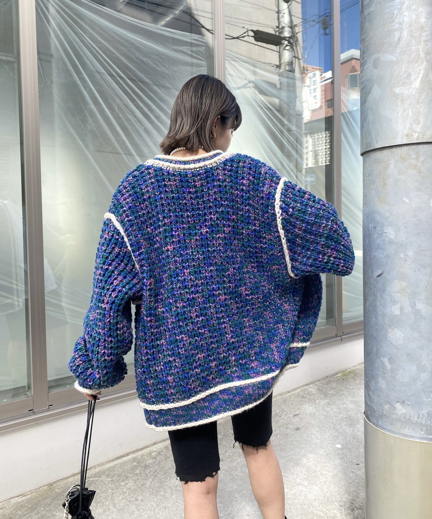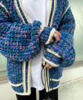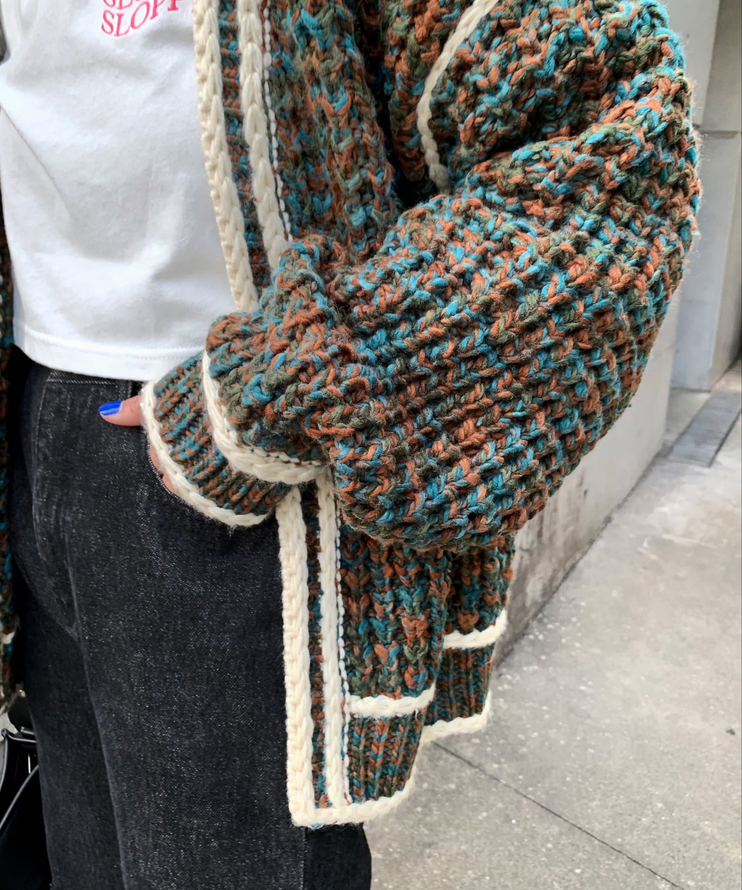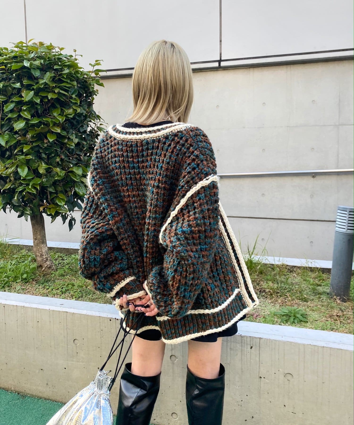 秋冬に映える、混ざりあう様々なカラー×パイピングがポイントのビッグシルエットカーディガン