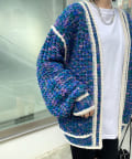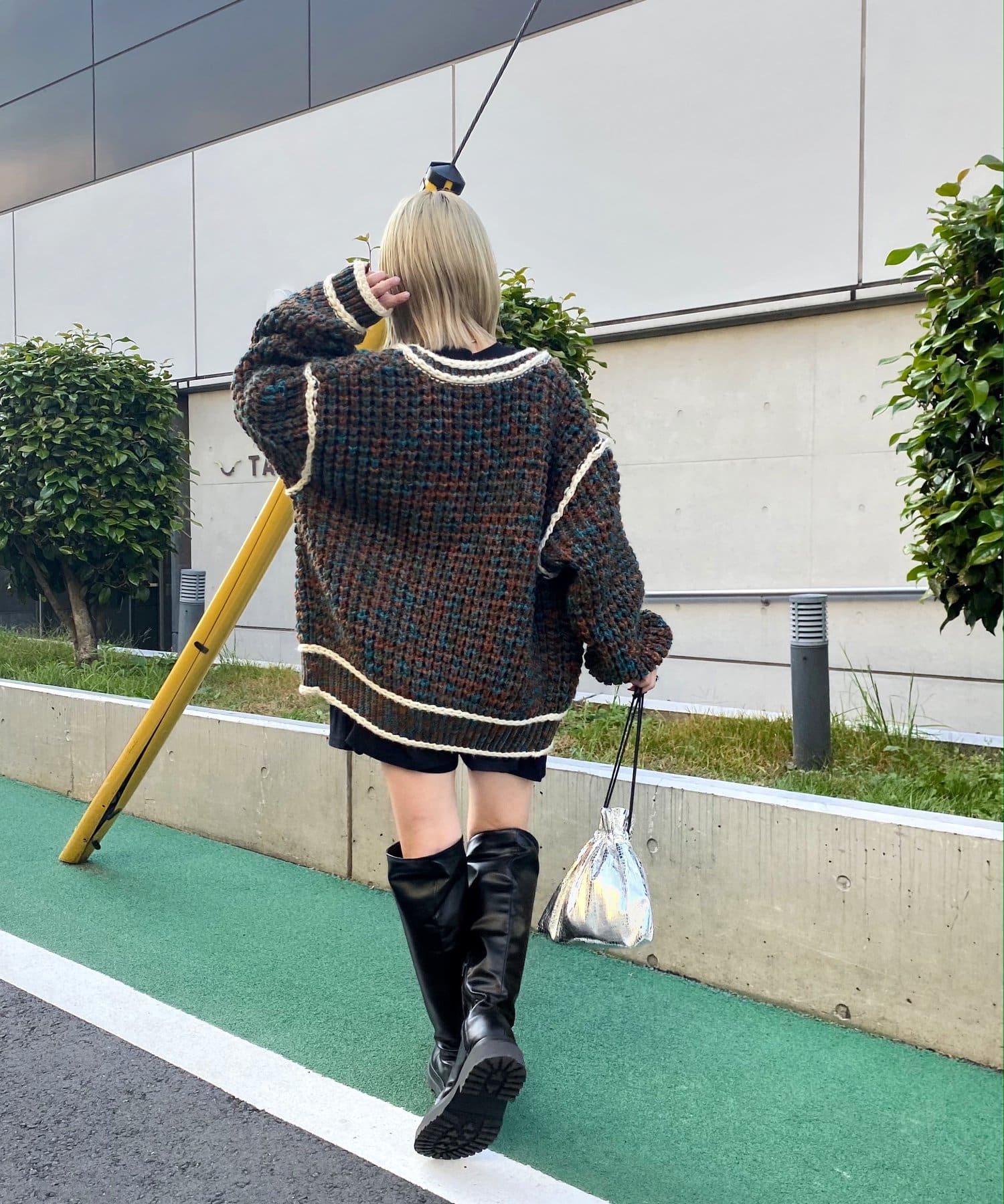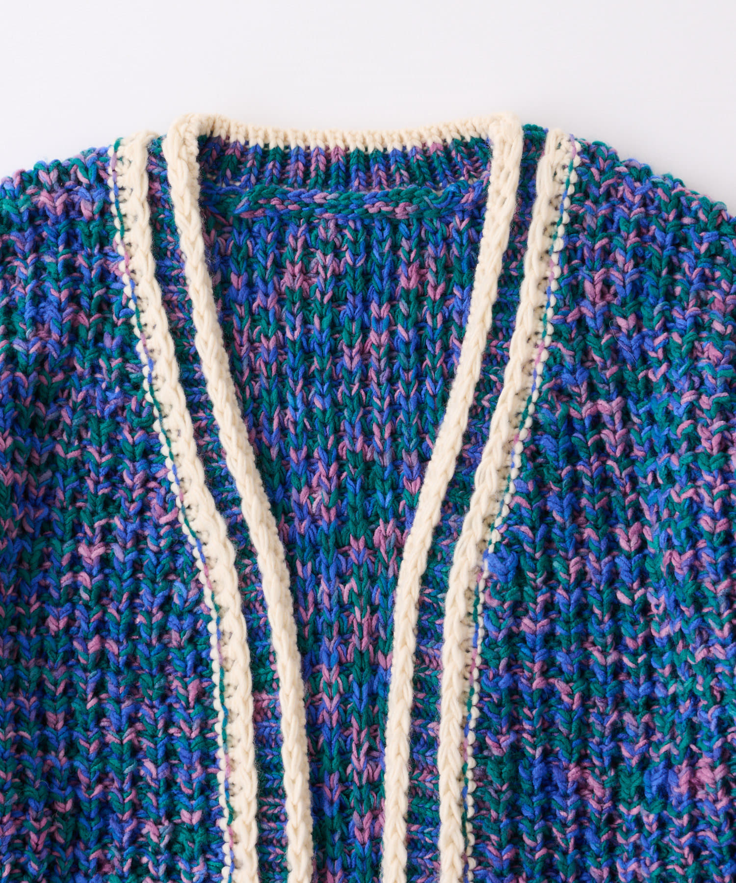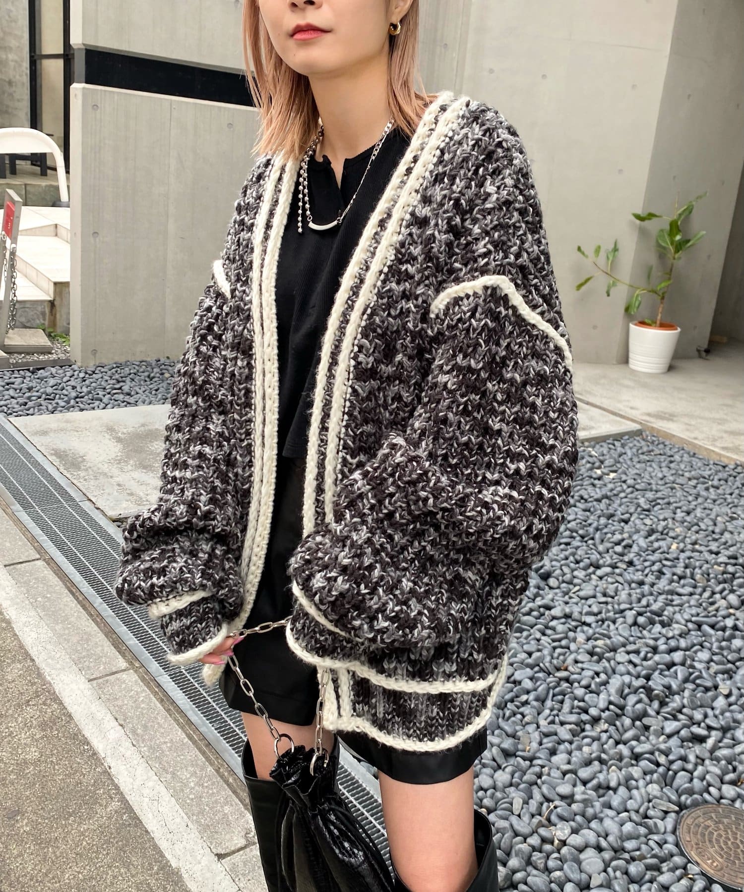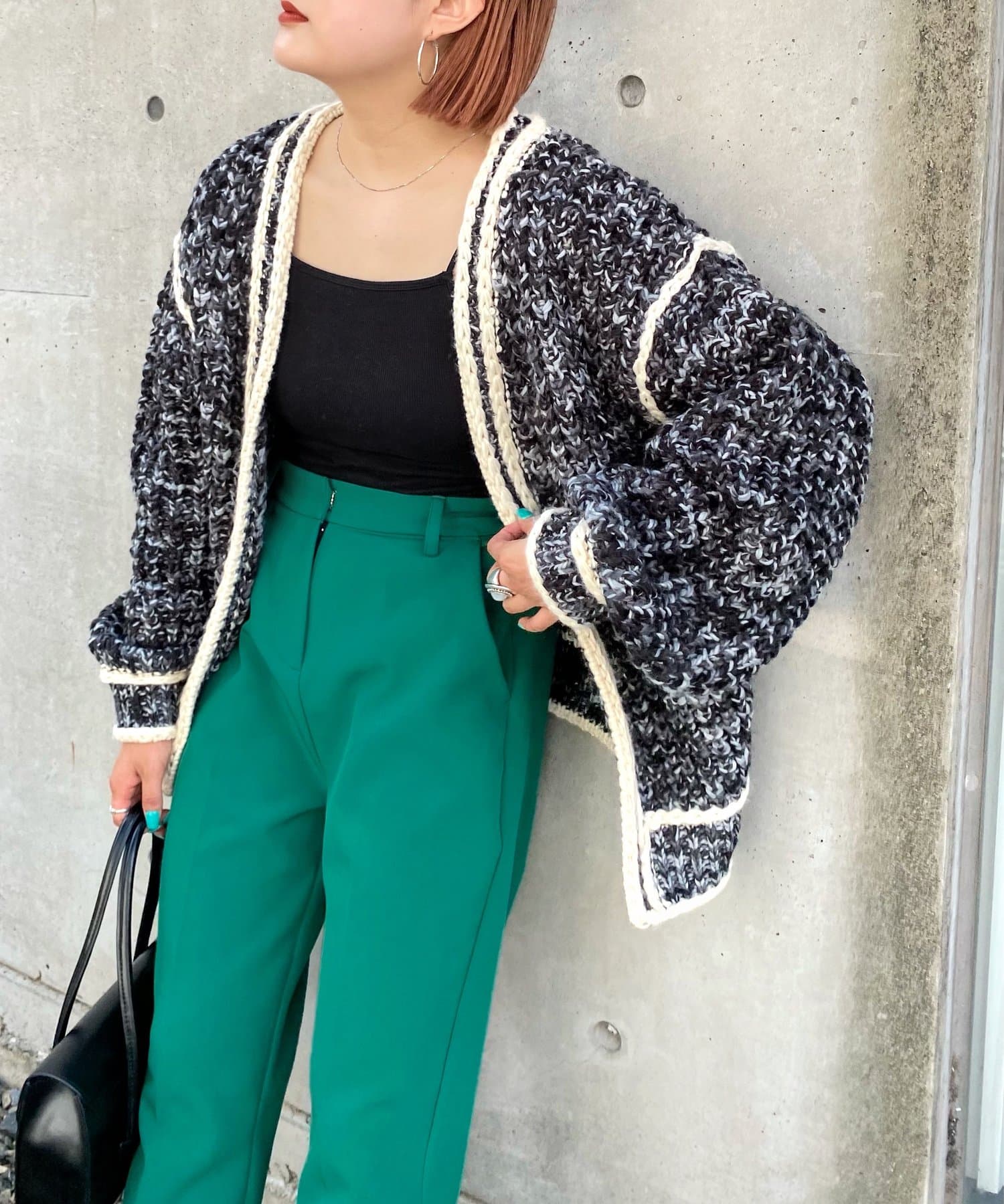 秋冬に映える、混ざりあう様々なカラー×パイピングがポイントのビッグシルエットカーディガン