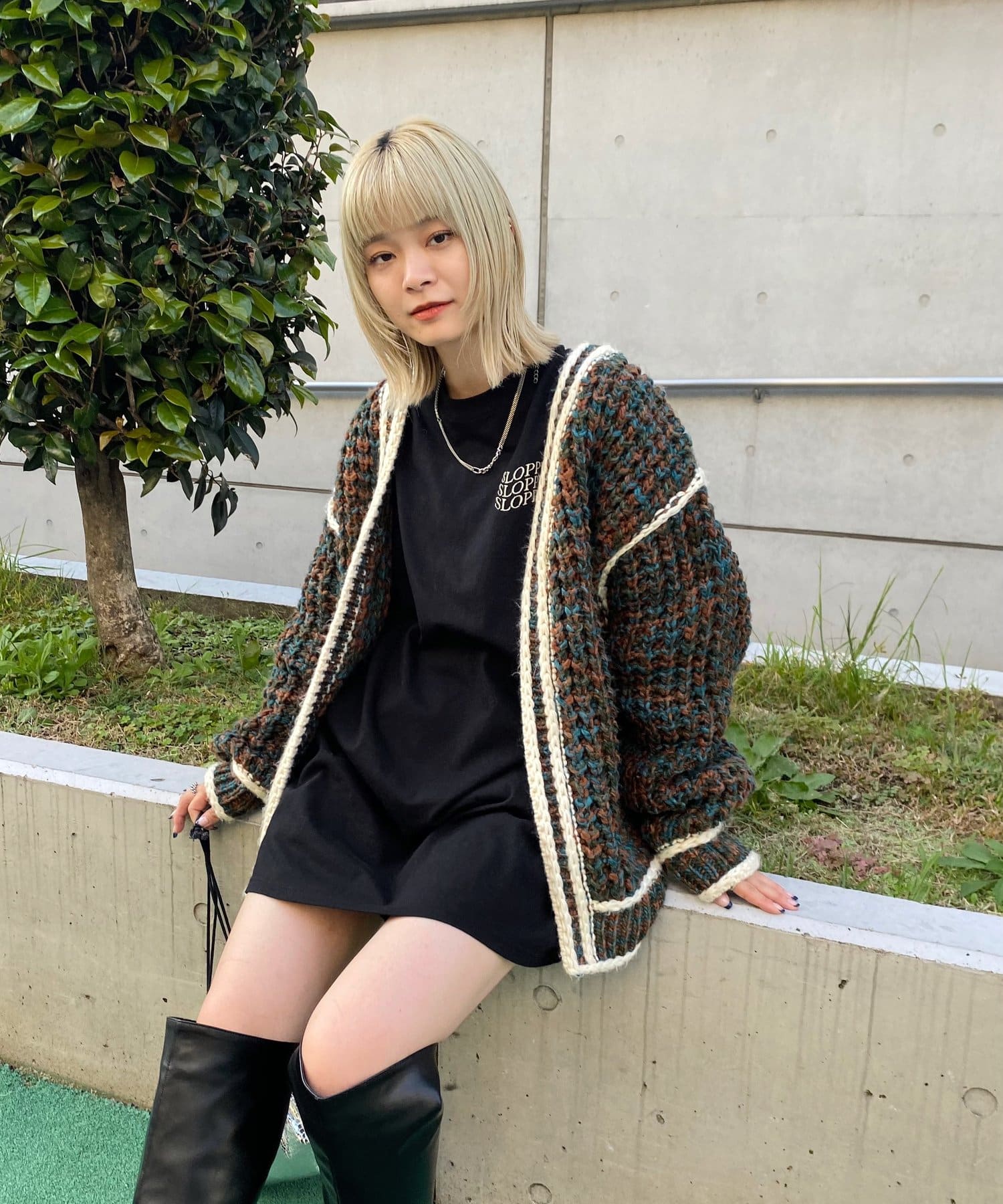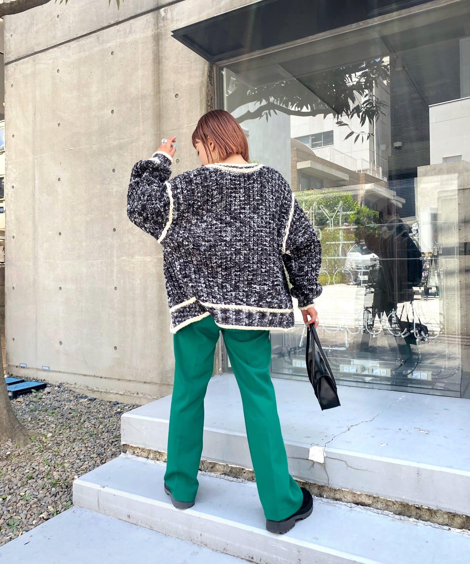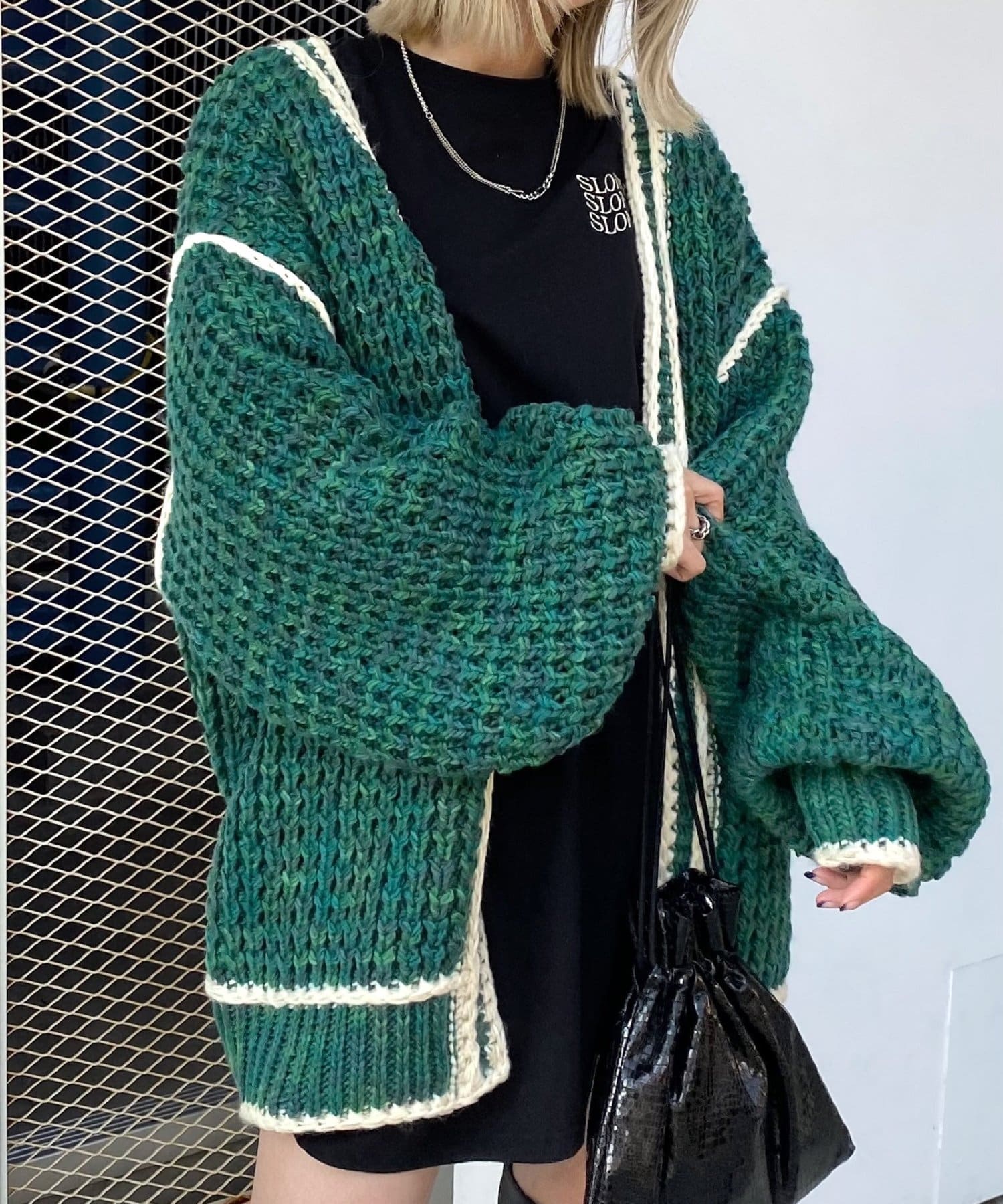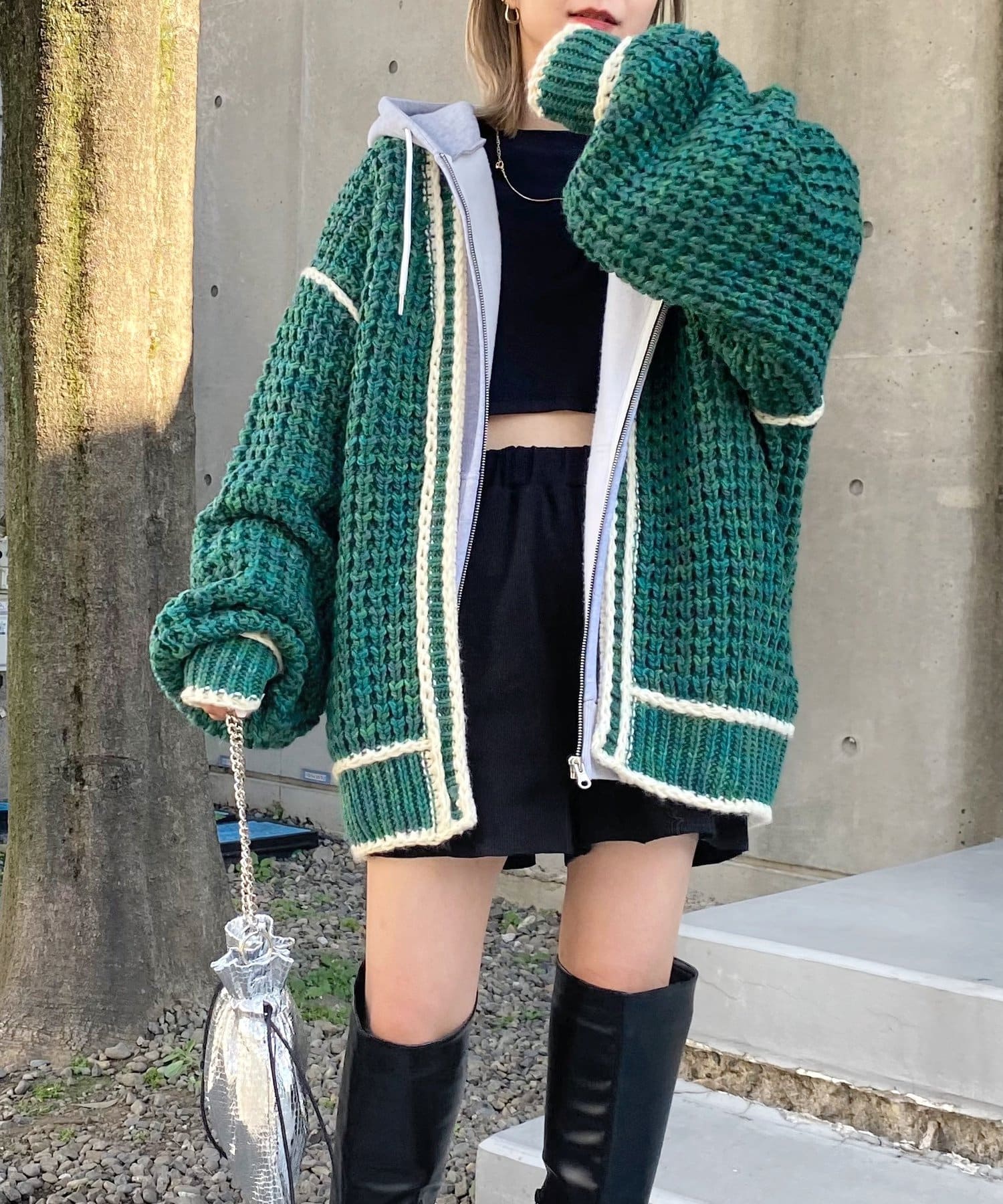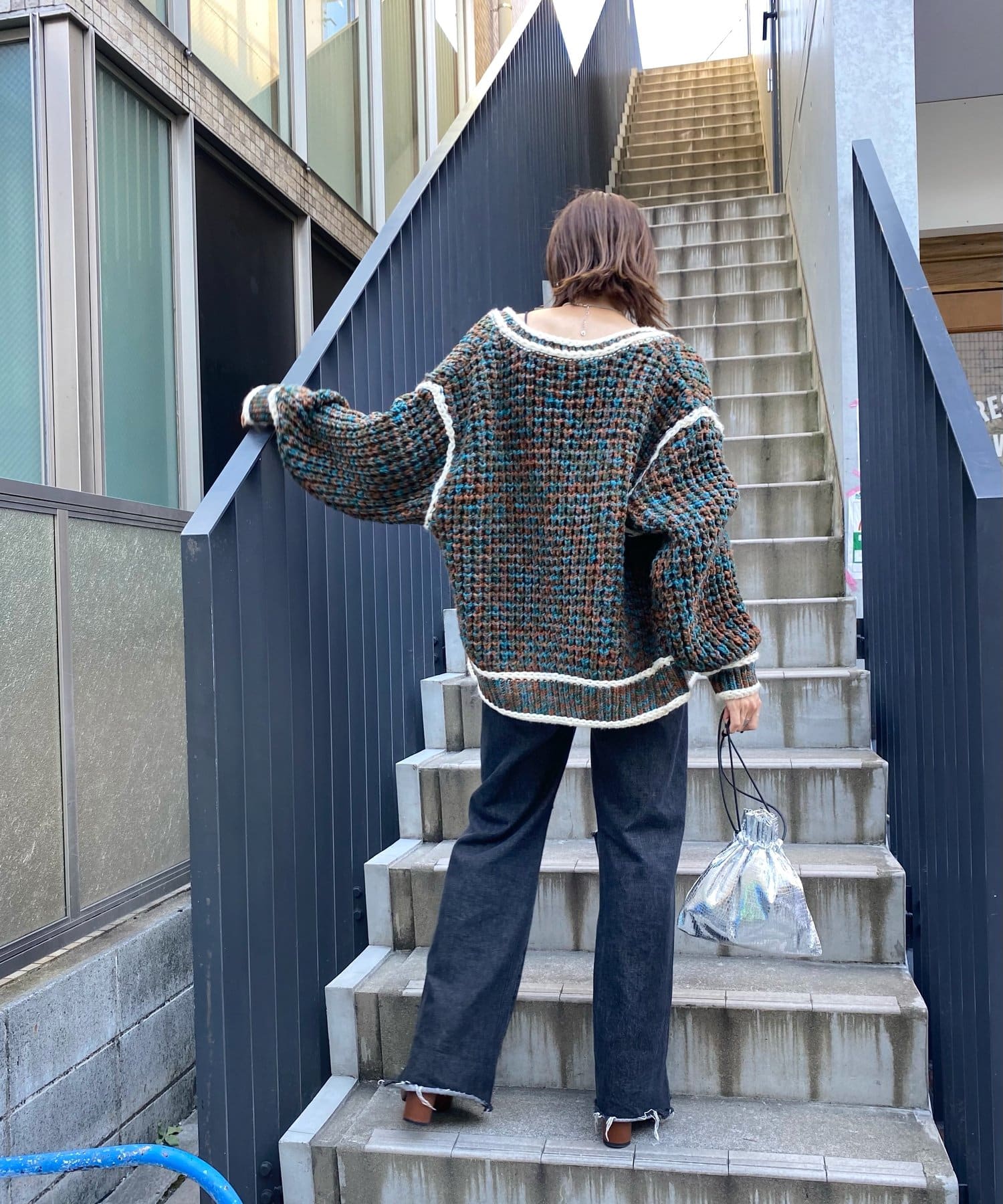 秋冬に映える、混ざりあう様々なカラー×パイピングがポイントのビッグシルエットカーディガン