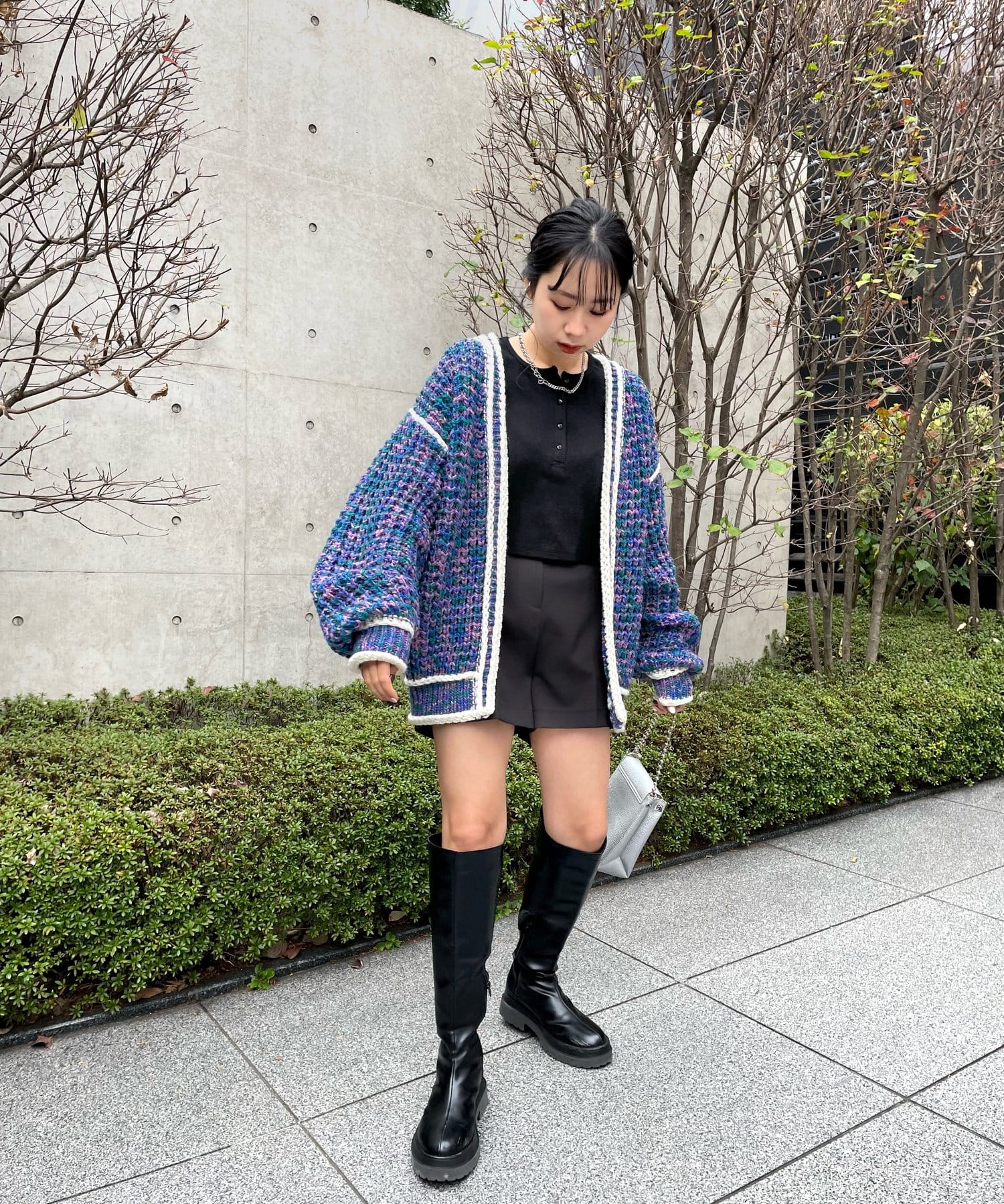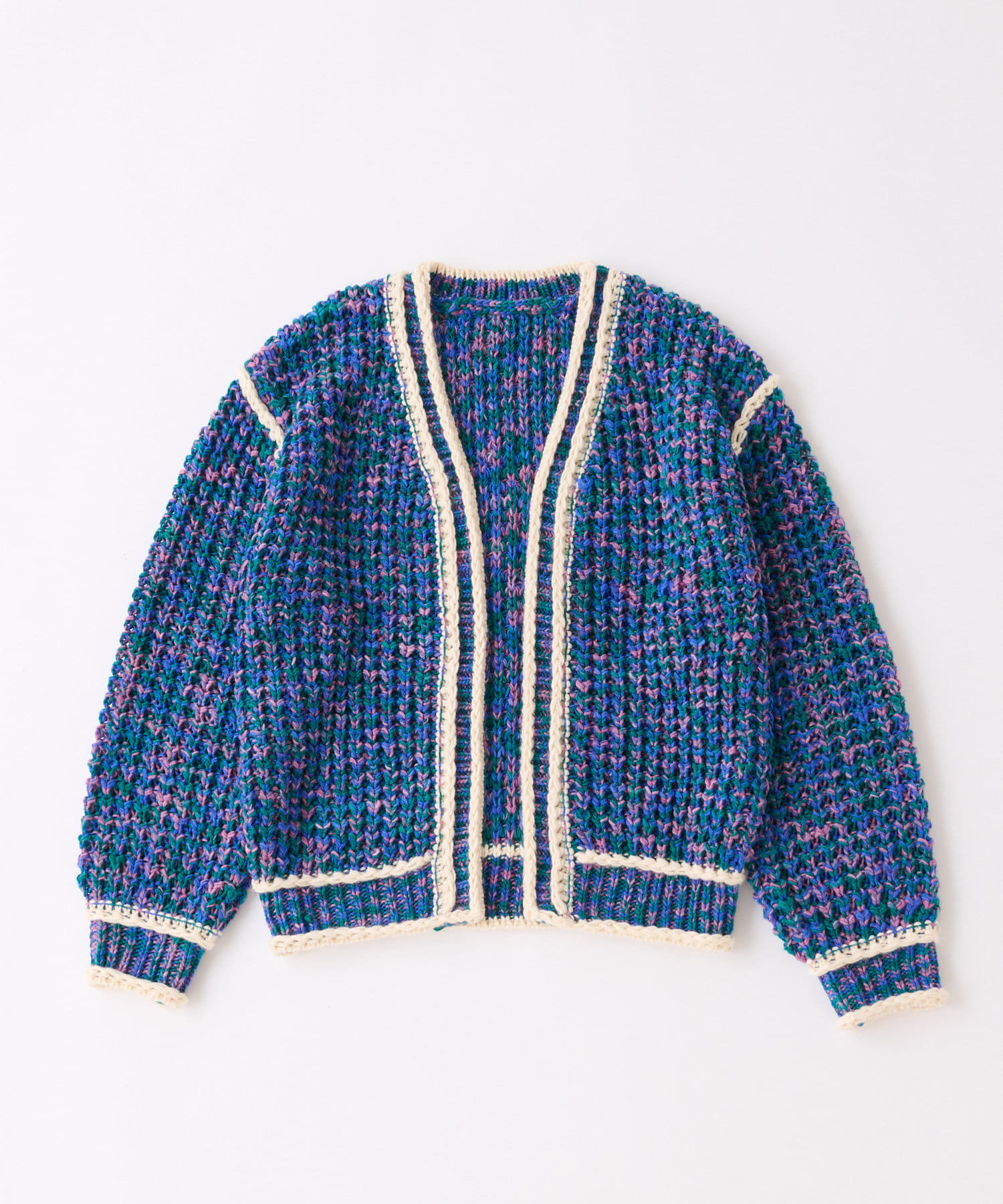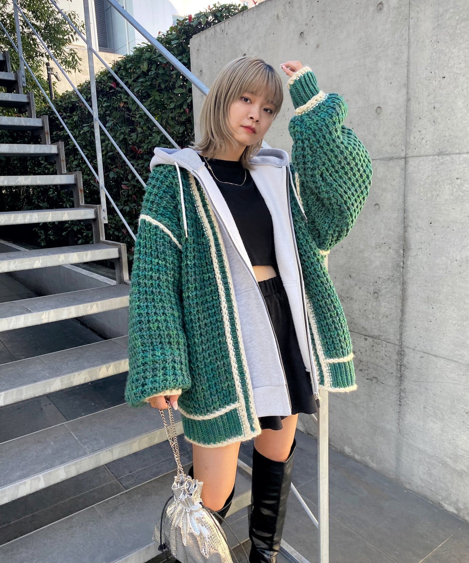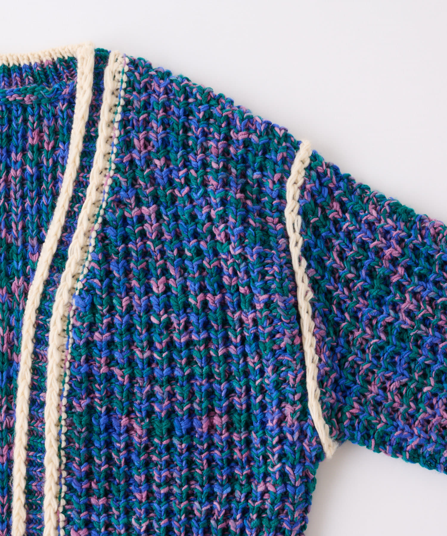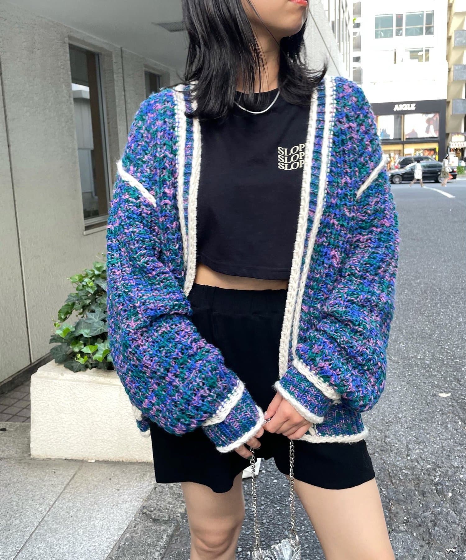 秋冬に映える、混ざりあう様々なカラー×パイピングがポイントのビッグシルエットカーディガン