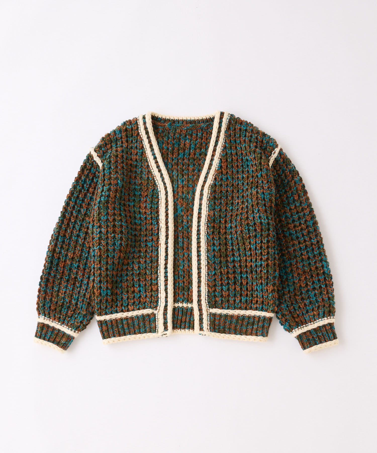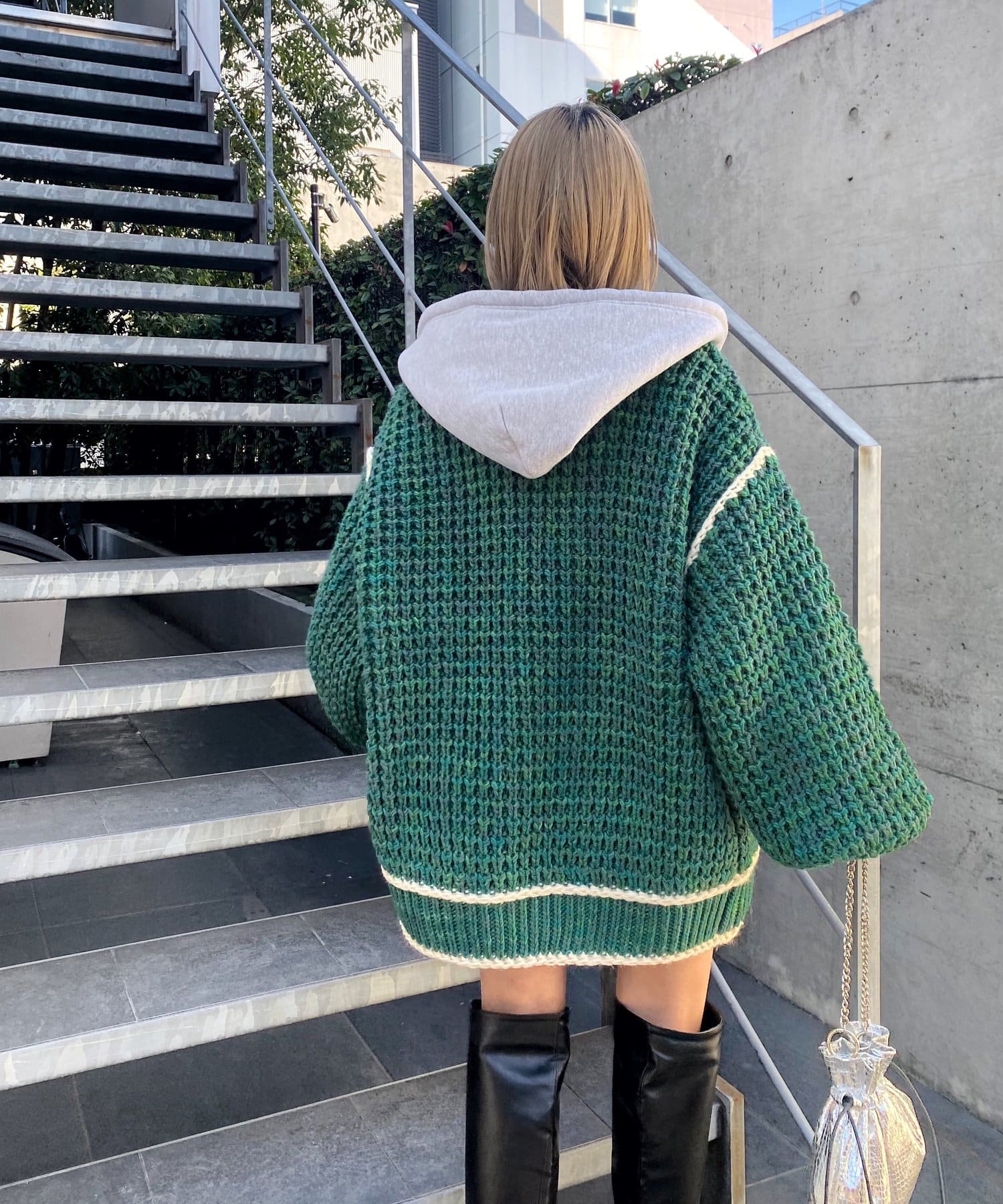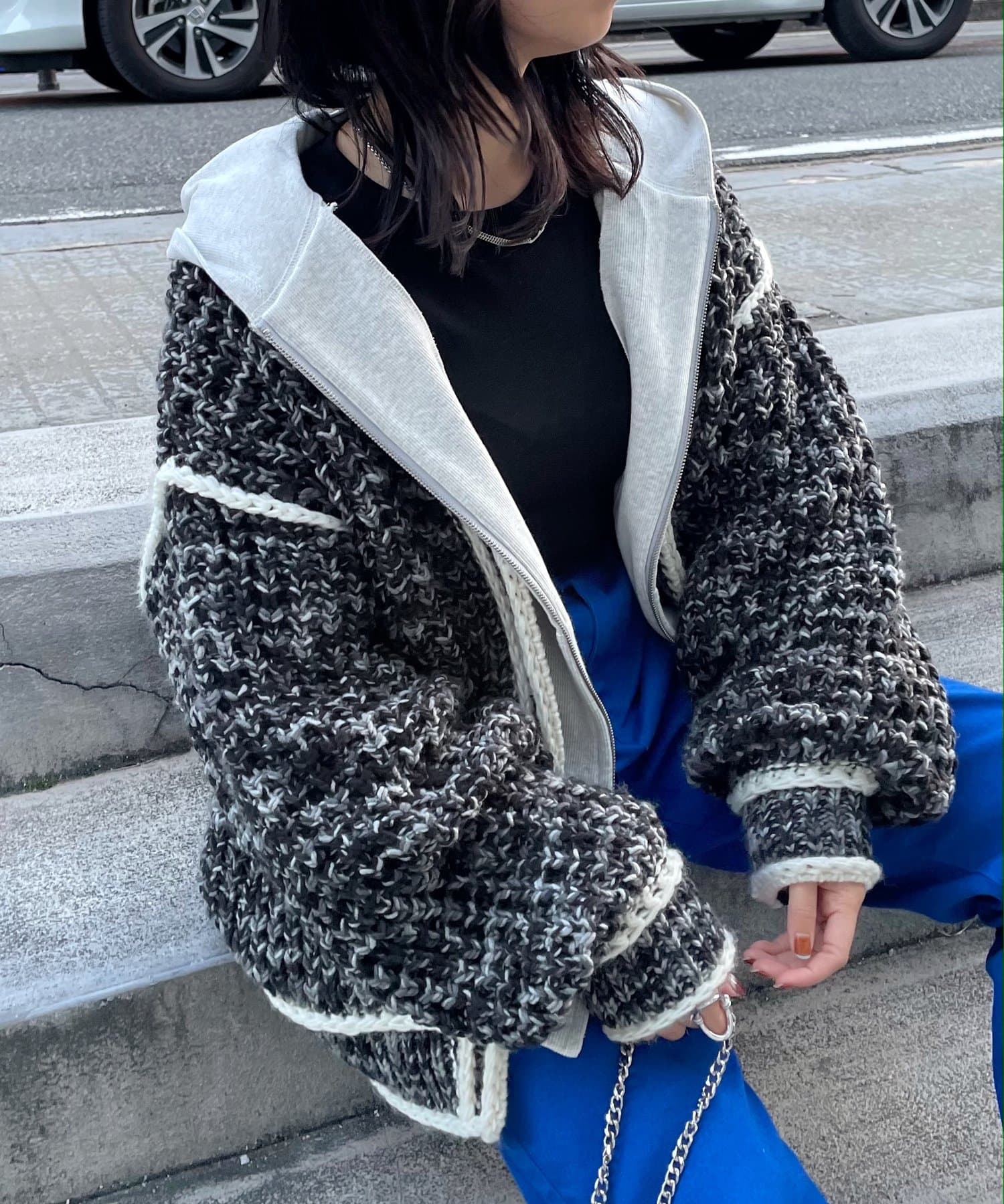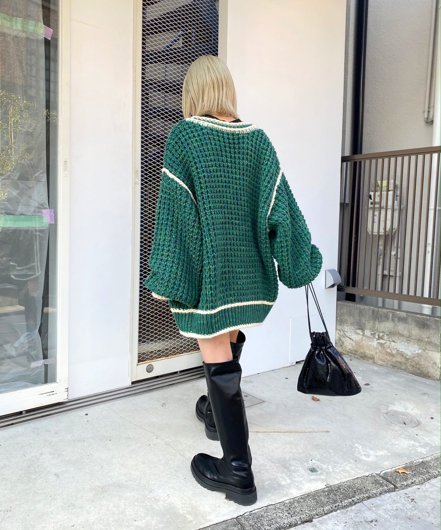 秋冬に映える、混ざりあう様々なカラー×パイピングがポイントのビッグシルエットカーディガン
