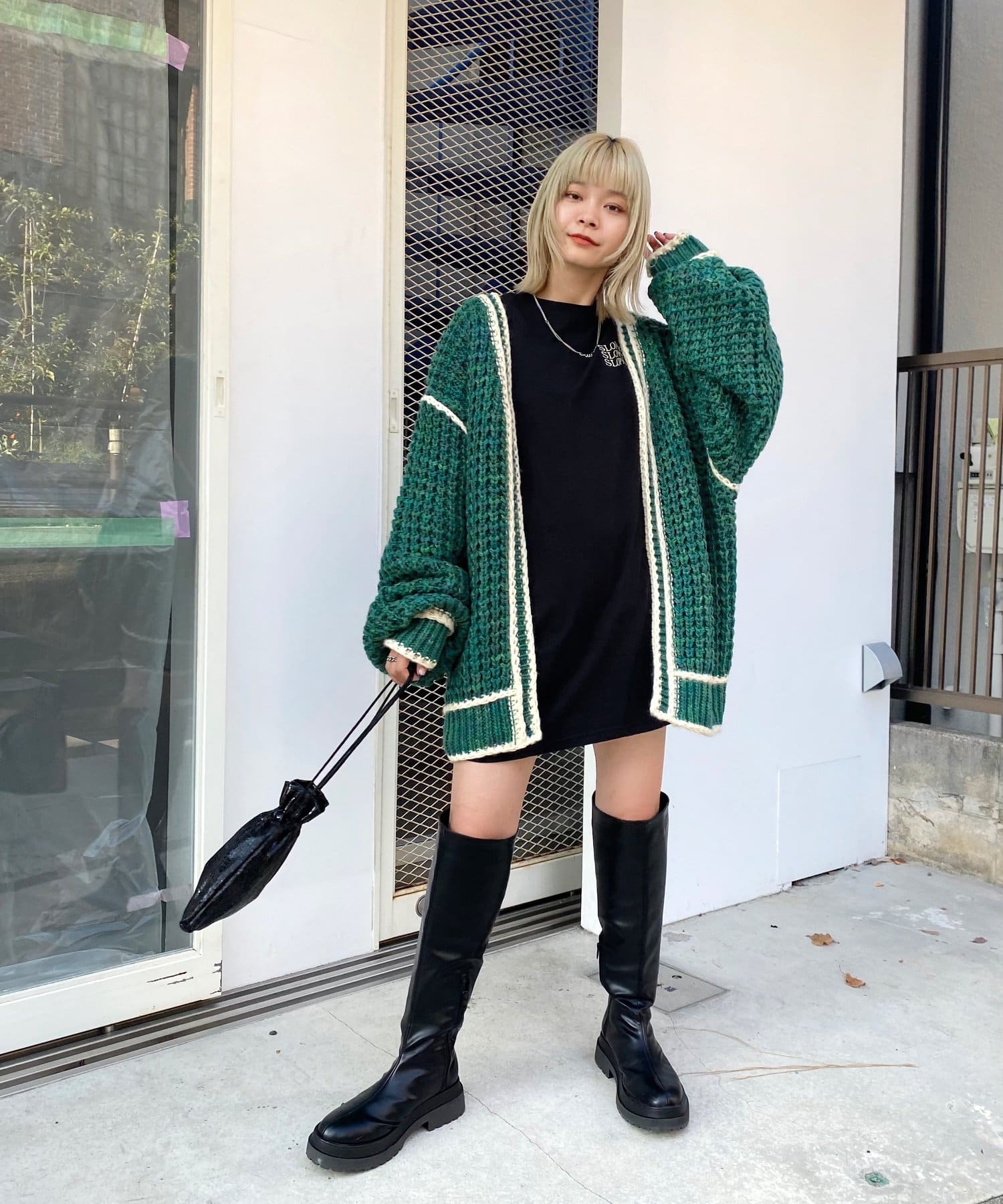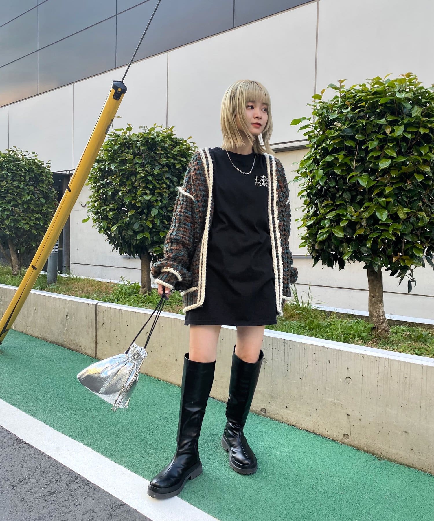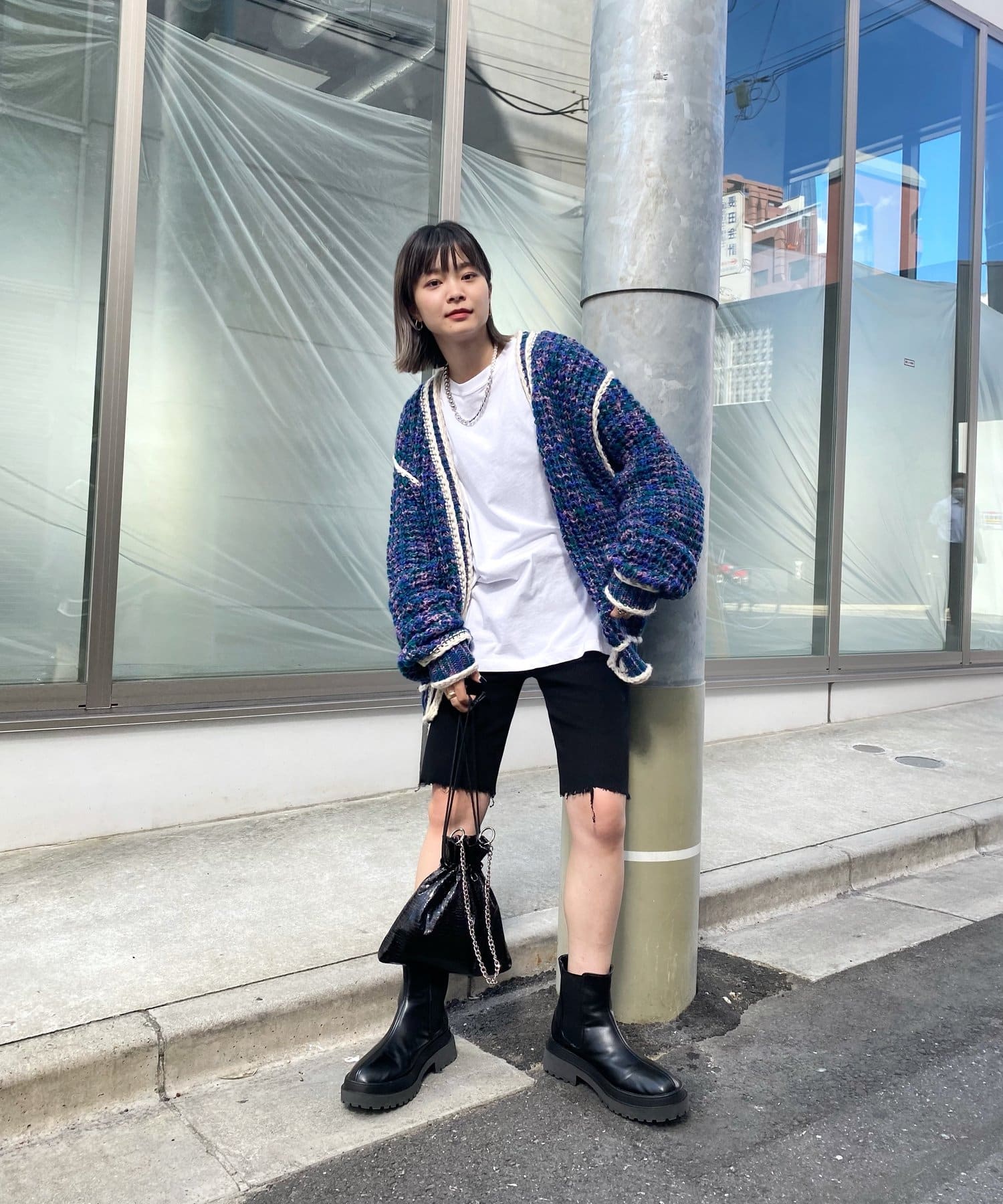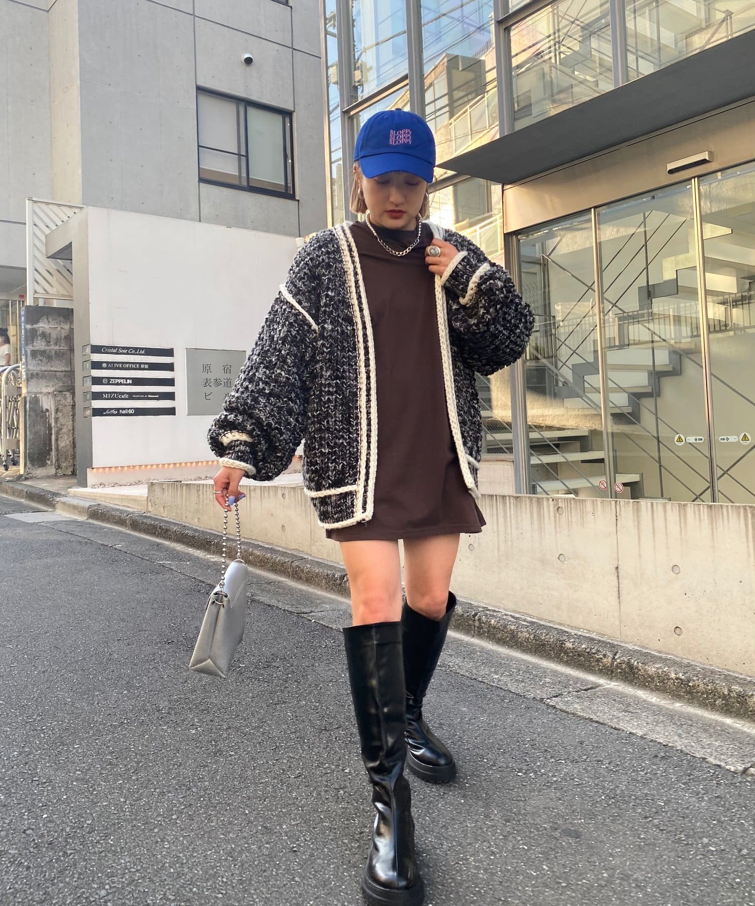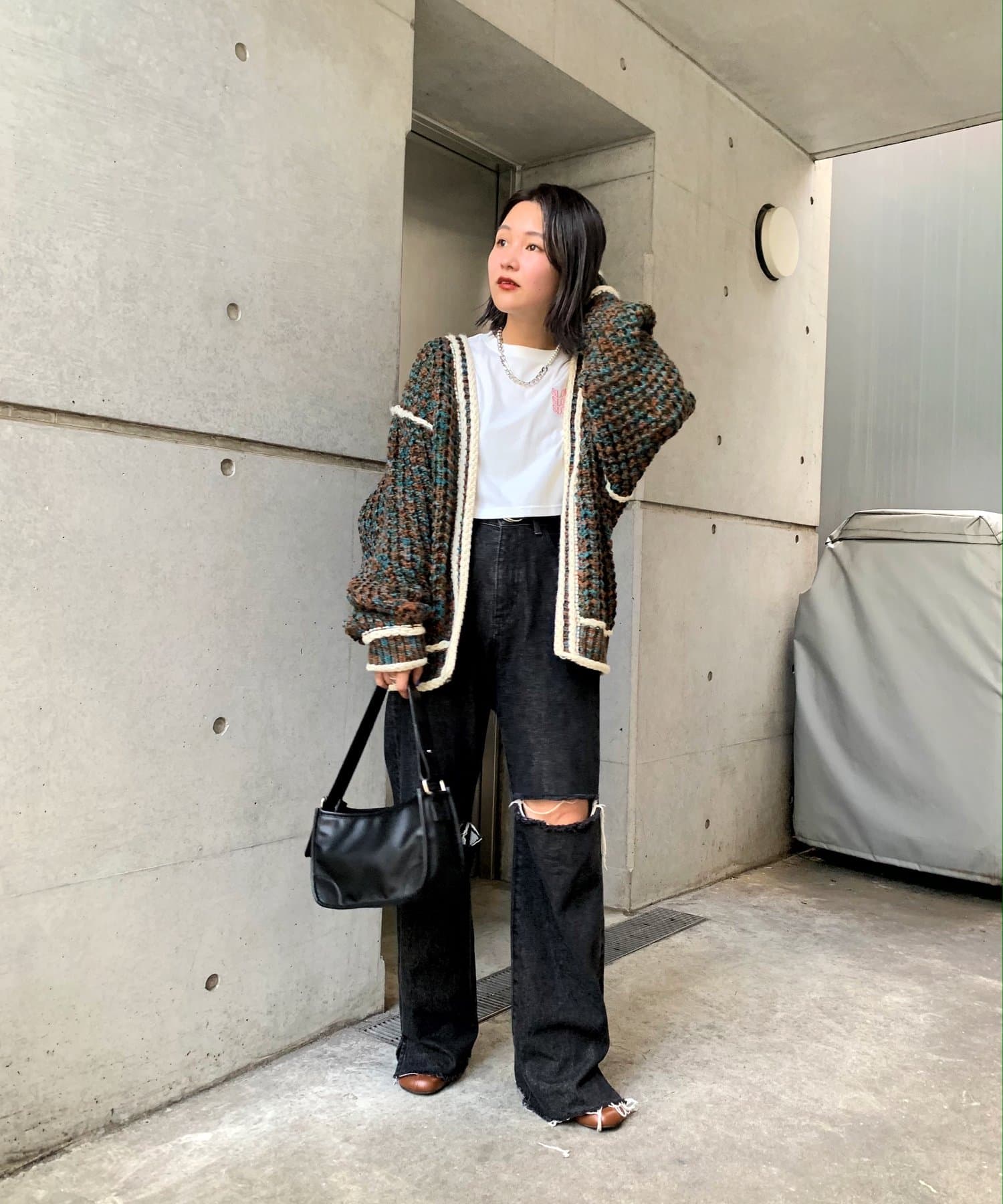 秋冬に映える、混ざりあう様々なカラー×パイピングがポイントのビッグシルエットカーディガン