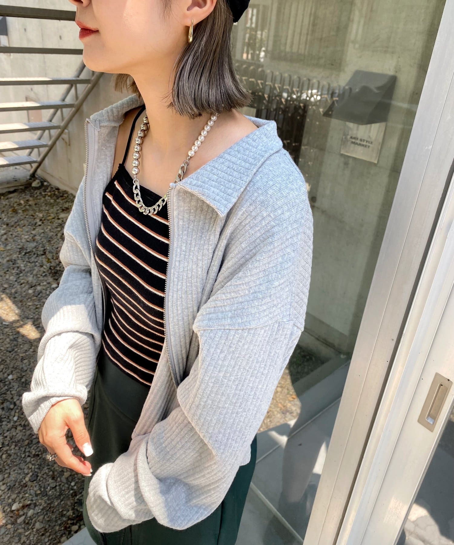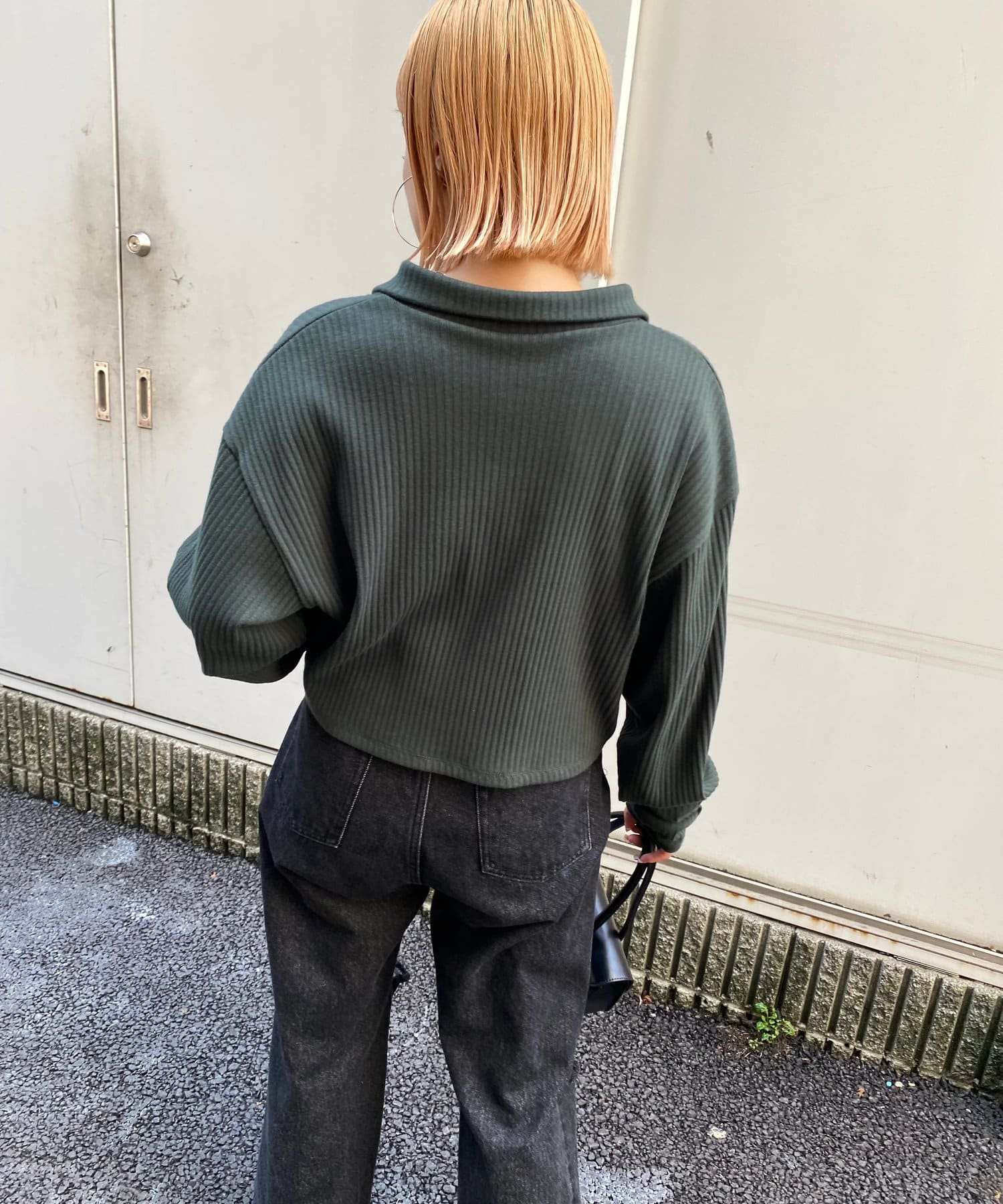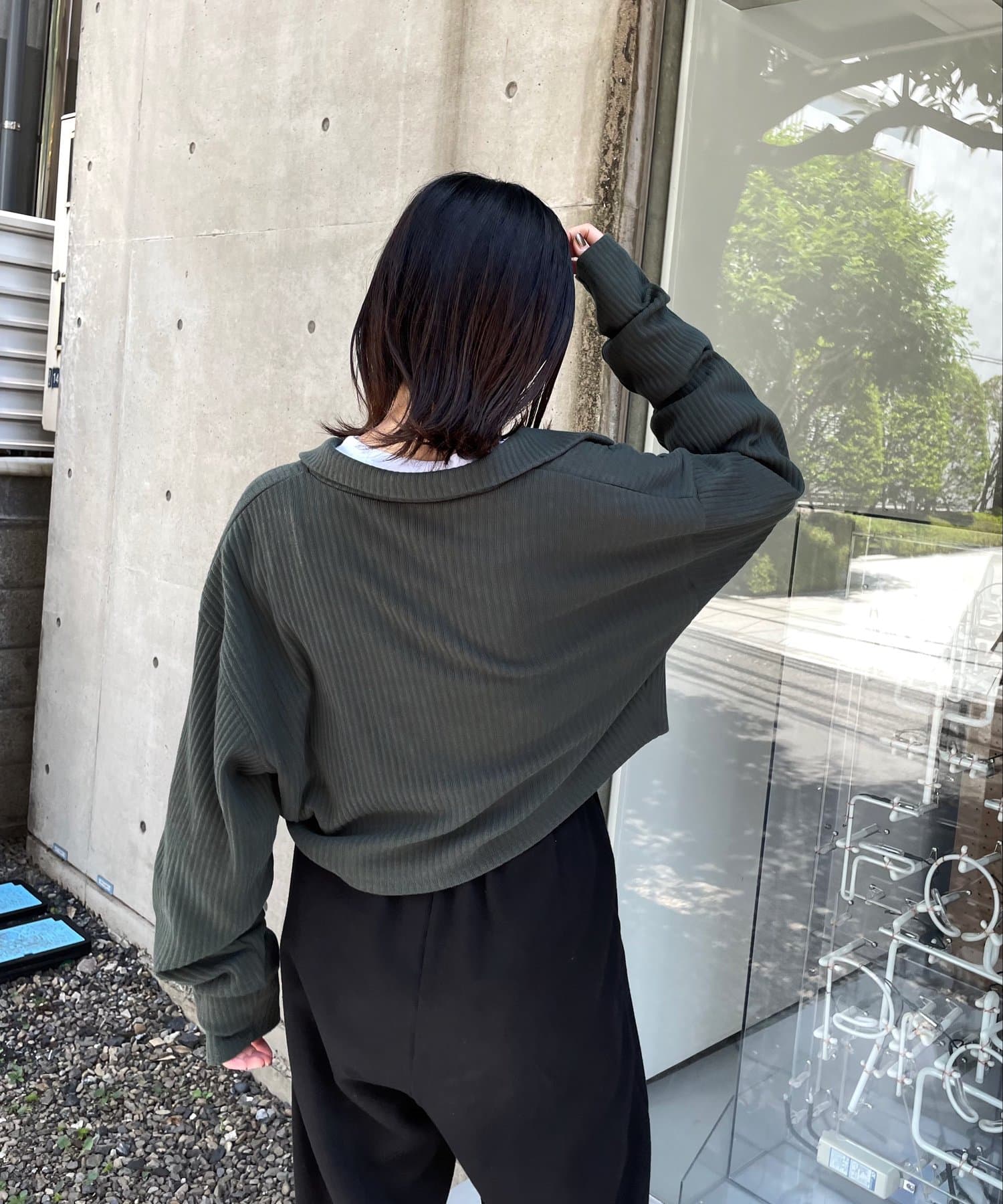 ・シンプルなシルエットだからこそ、リブがストライプの模様のように見え、縦ラインを強調します。