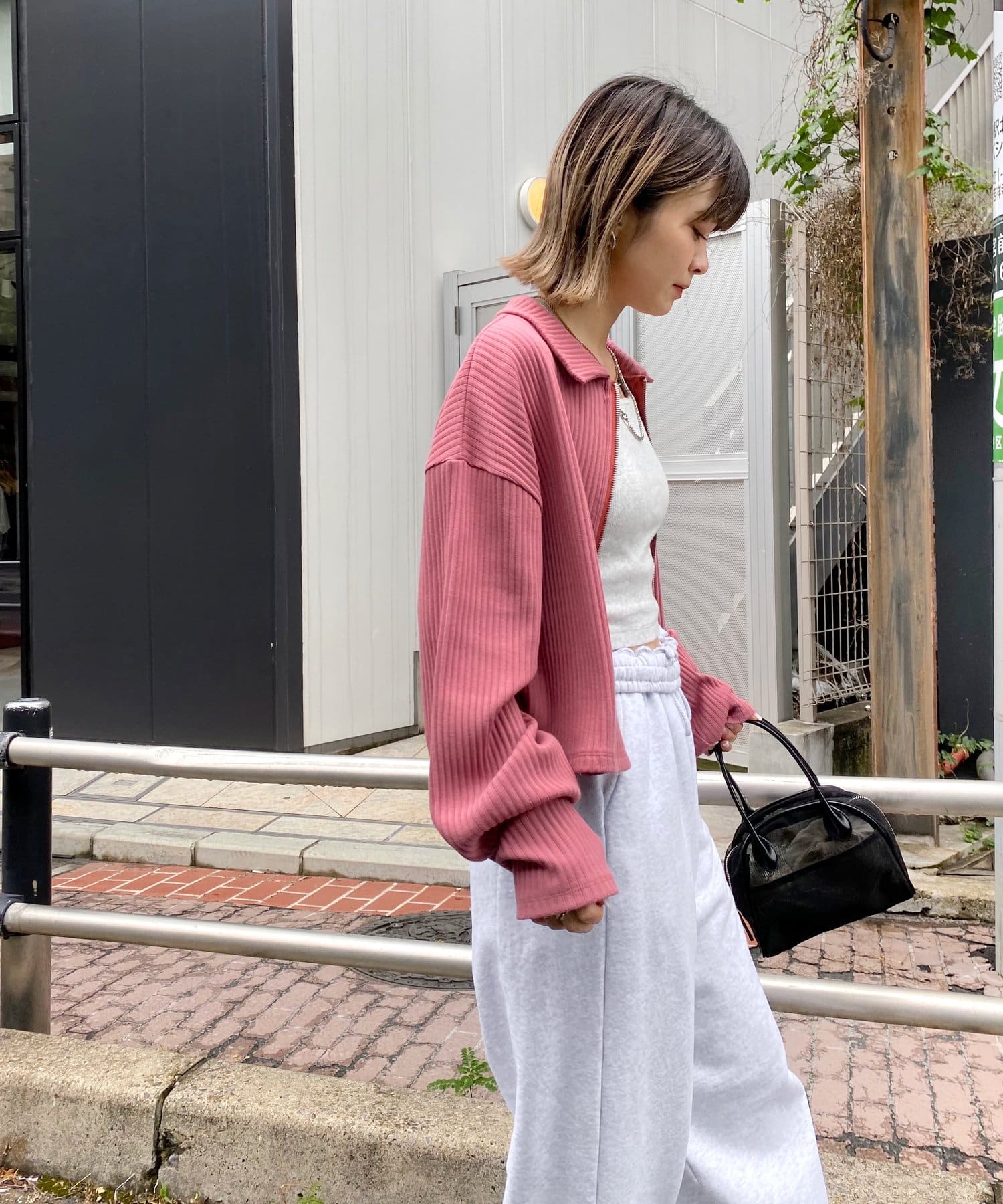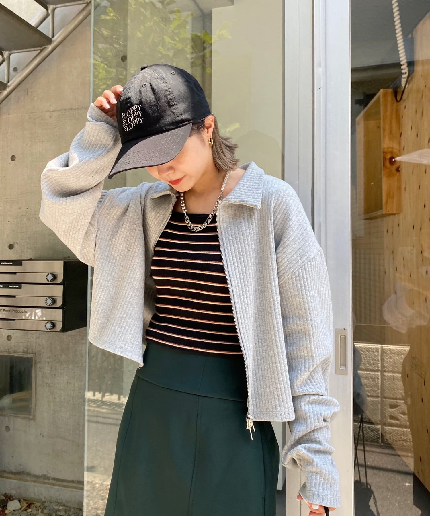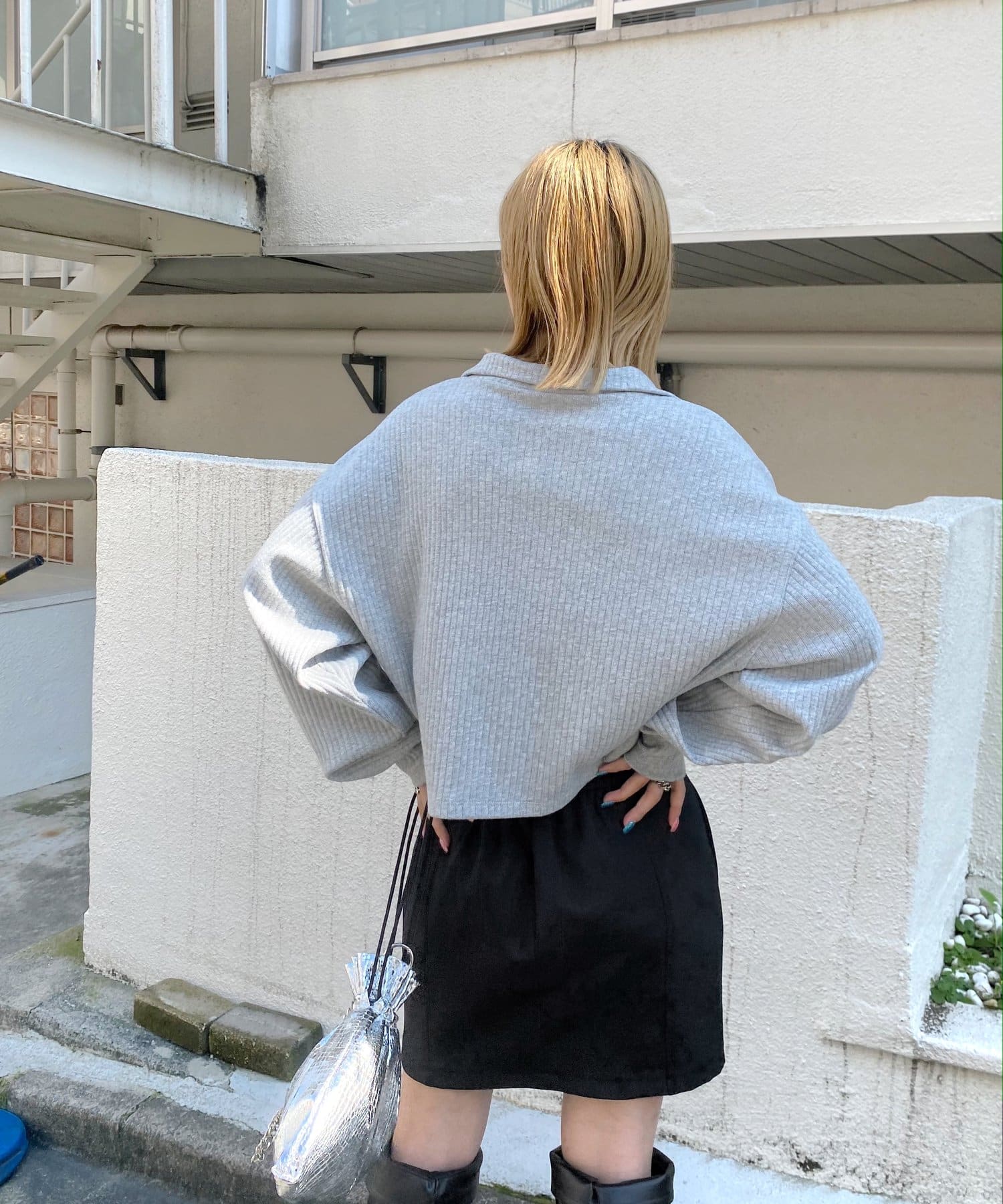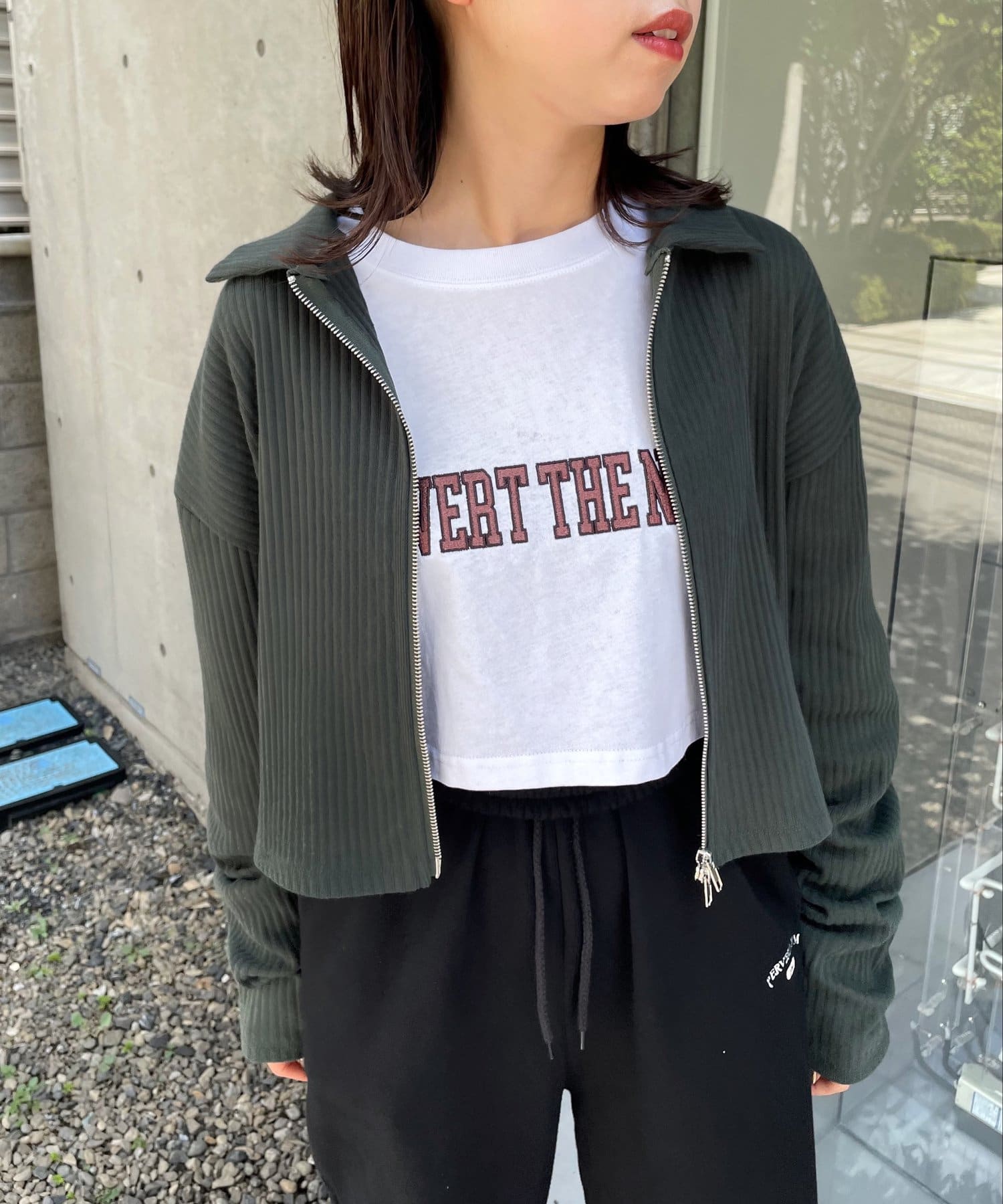 ・シンプルなシルエットだからこそ、リブがストライプの模様のように見え、縦ラインを強調します。