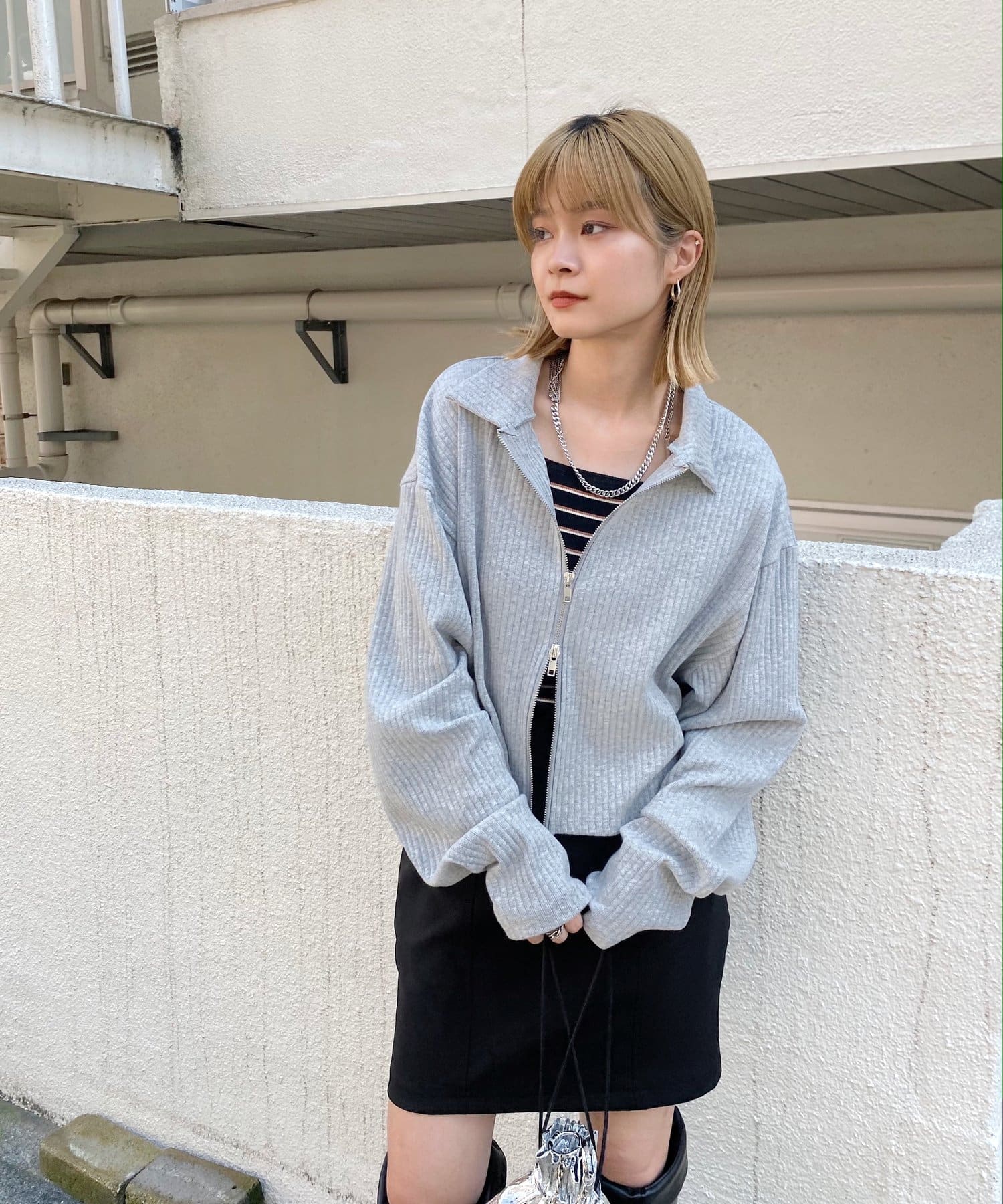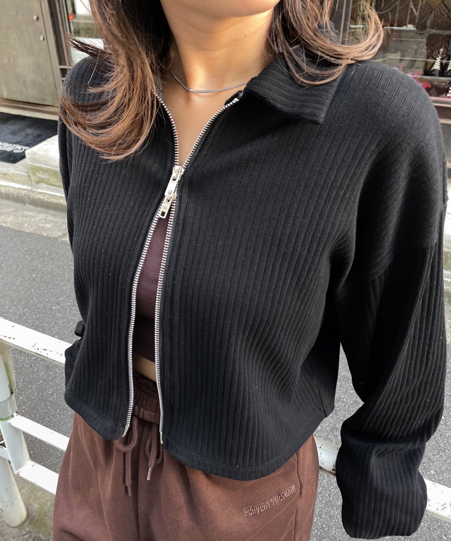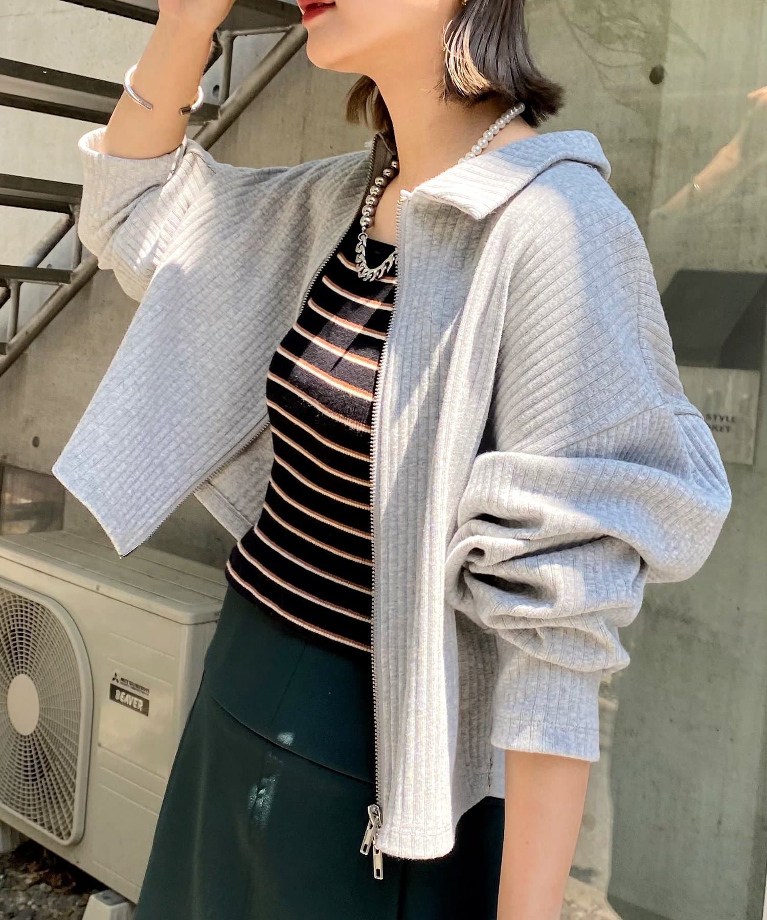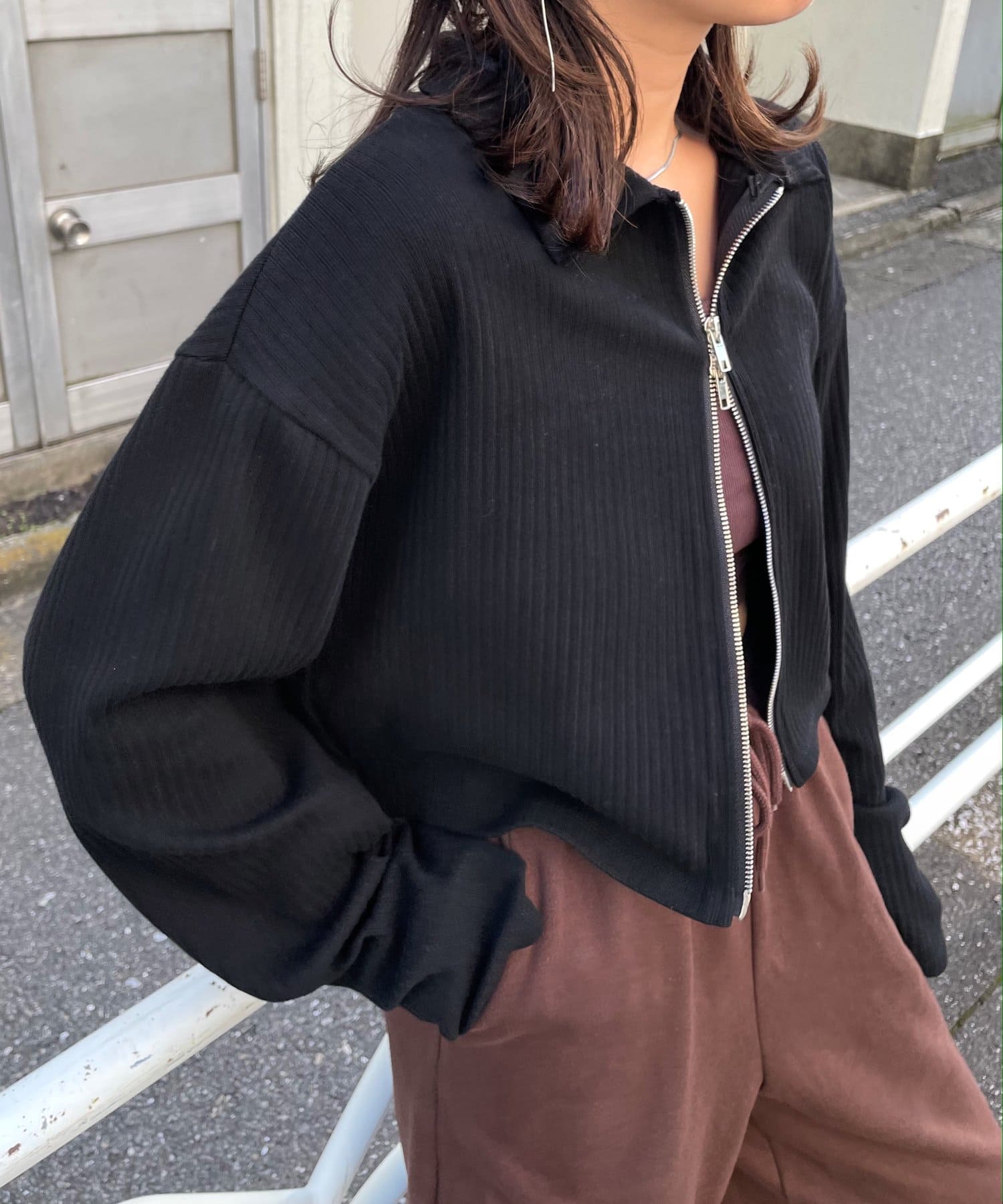 袖は長めなのがかわいいしファスナーを開けても閉めても真ん中だけ閉めるのも可愛くてめちゃ使える!