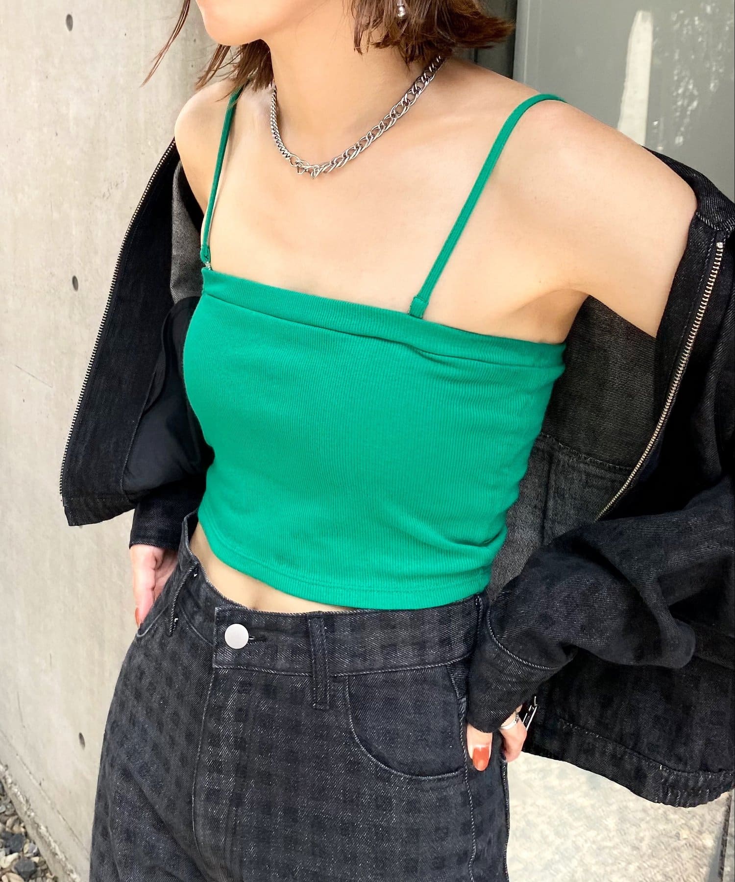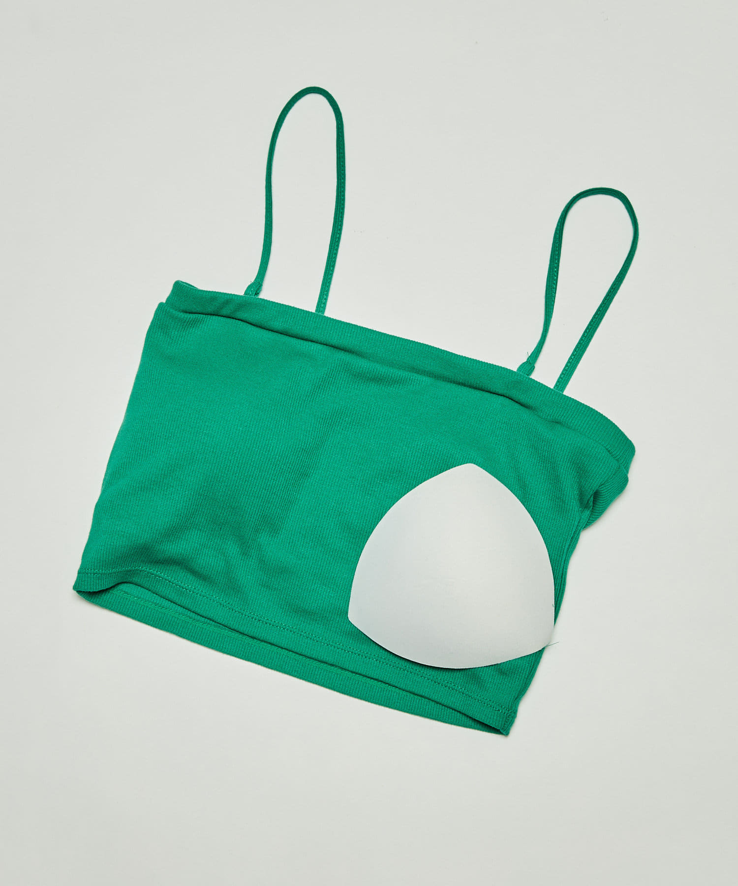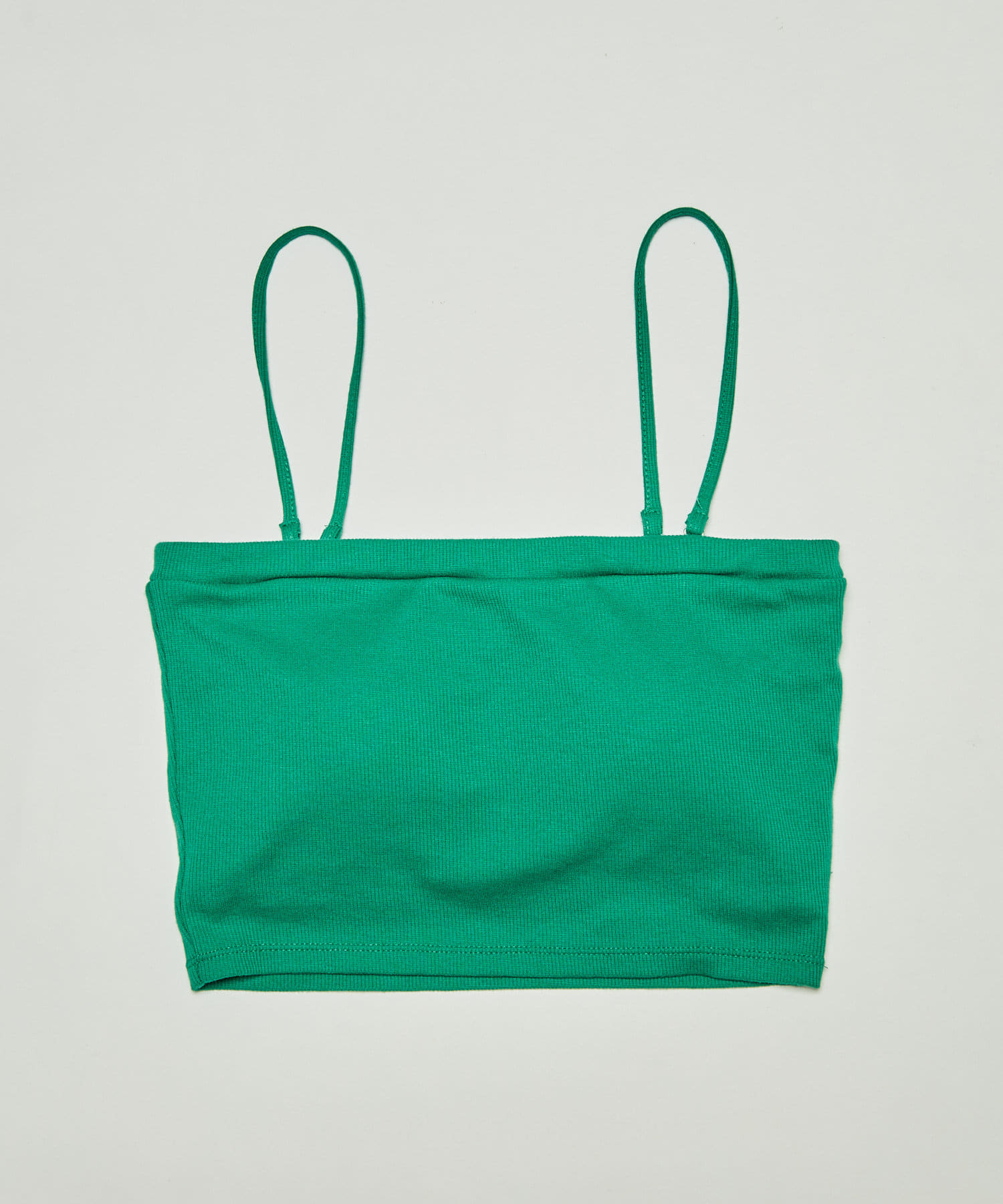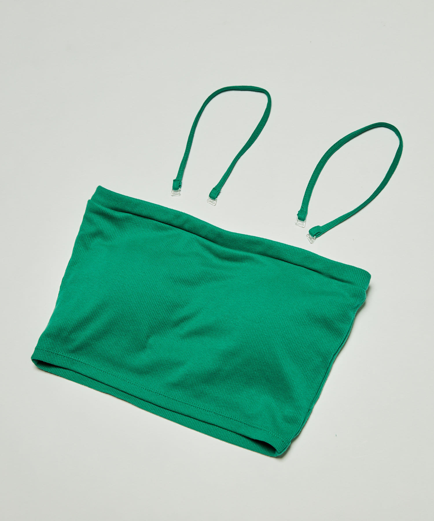 新色グリーン追加!取り外し可能なストラップでアレンジ可能!カップ付きのリブチューブトップ