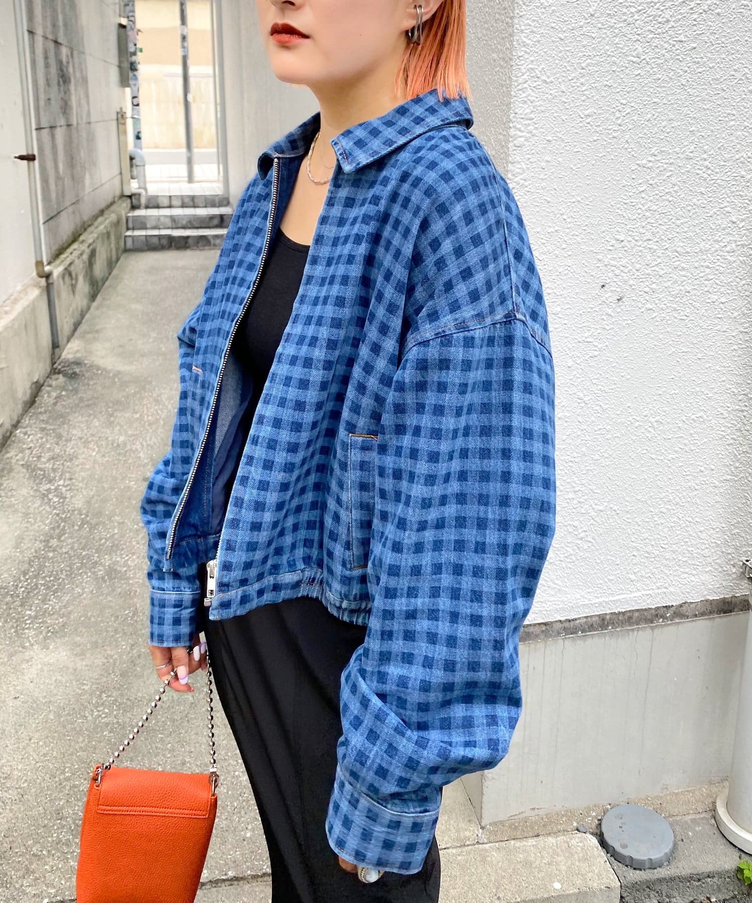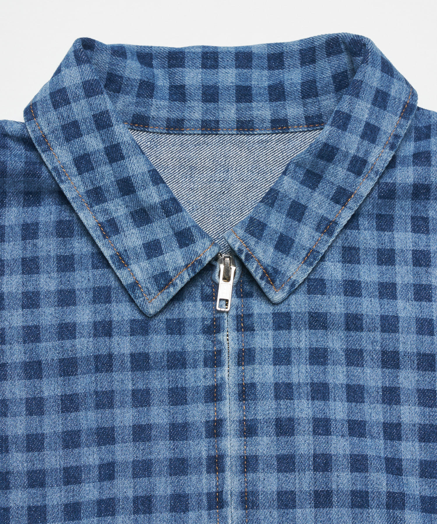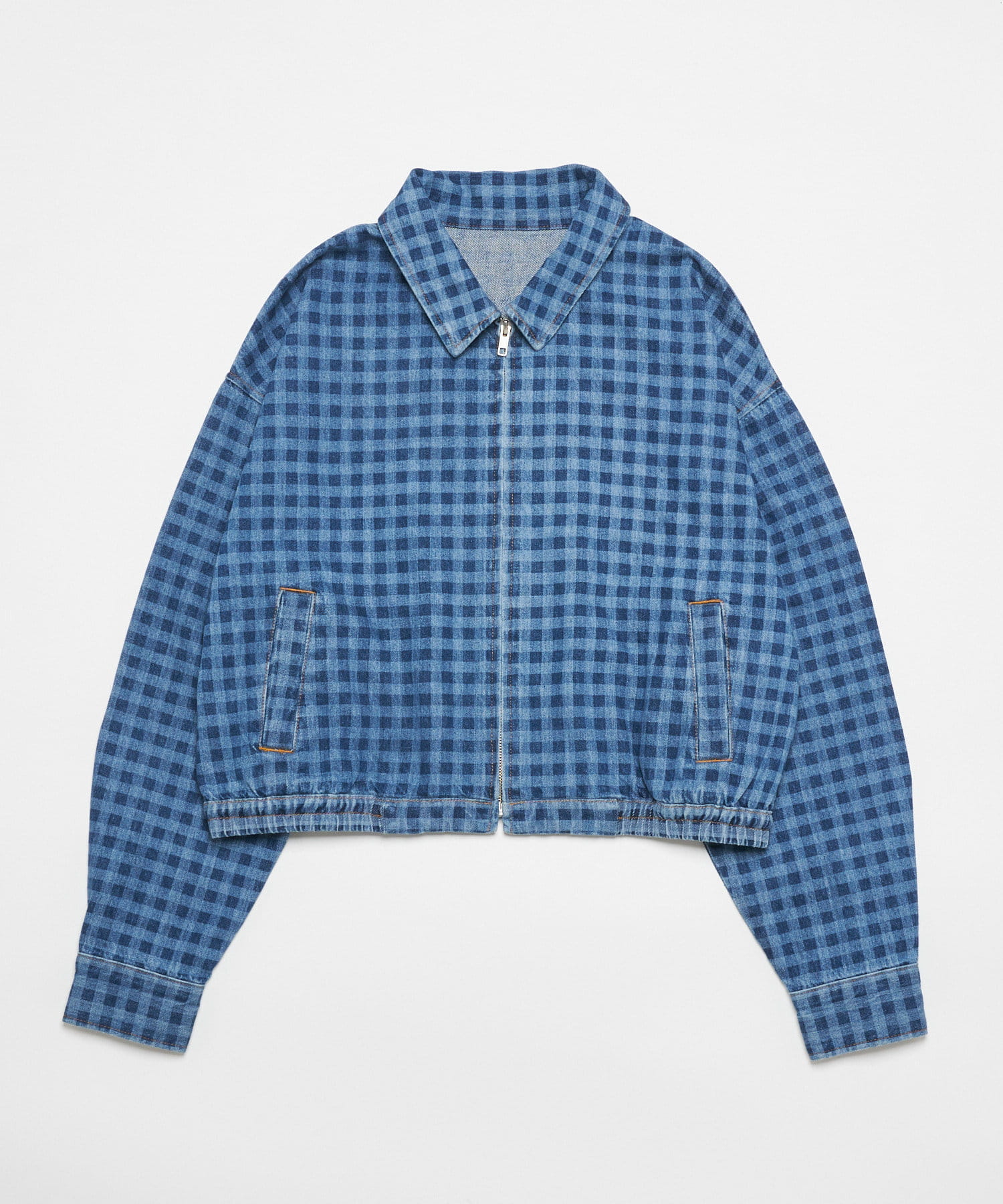 デニムのカジュアル感×襟付ききちんと感の欲張りアウター!チェック柄デニムブルゾン