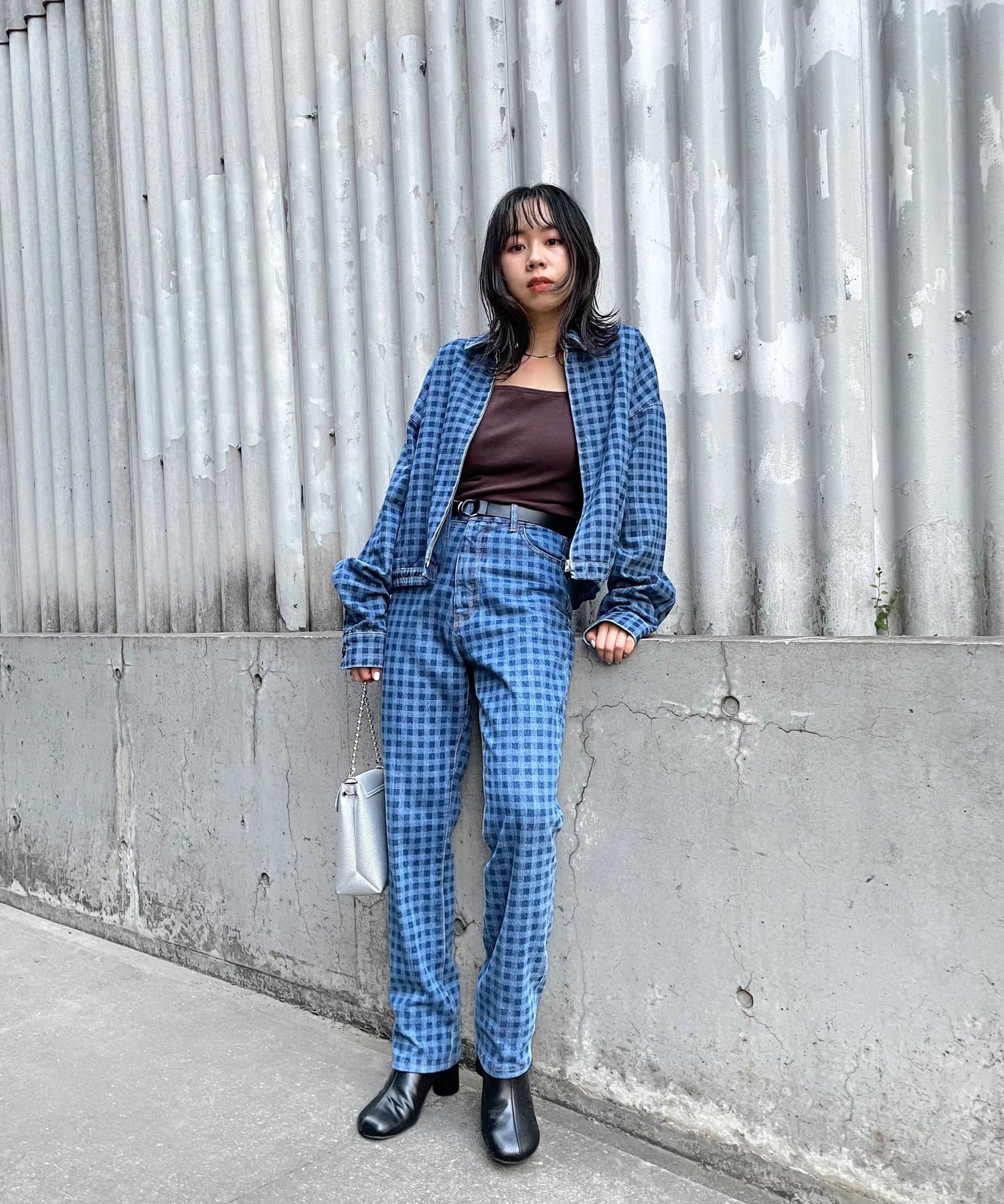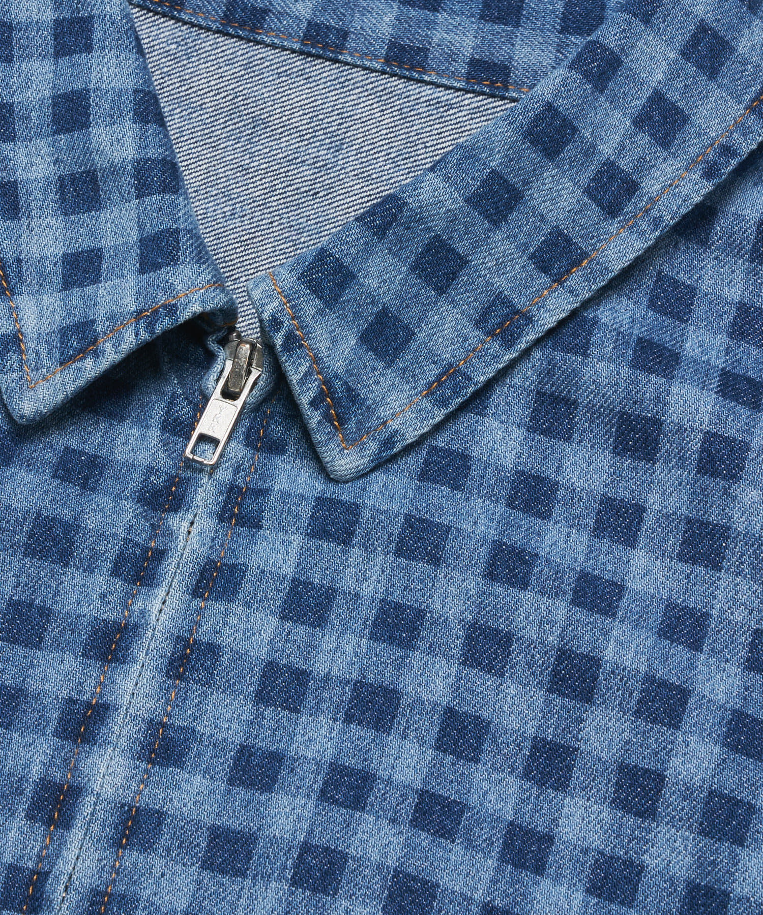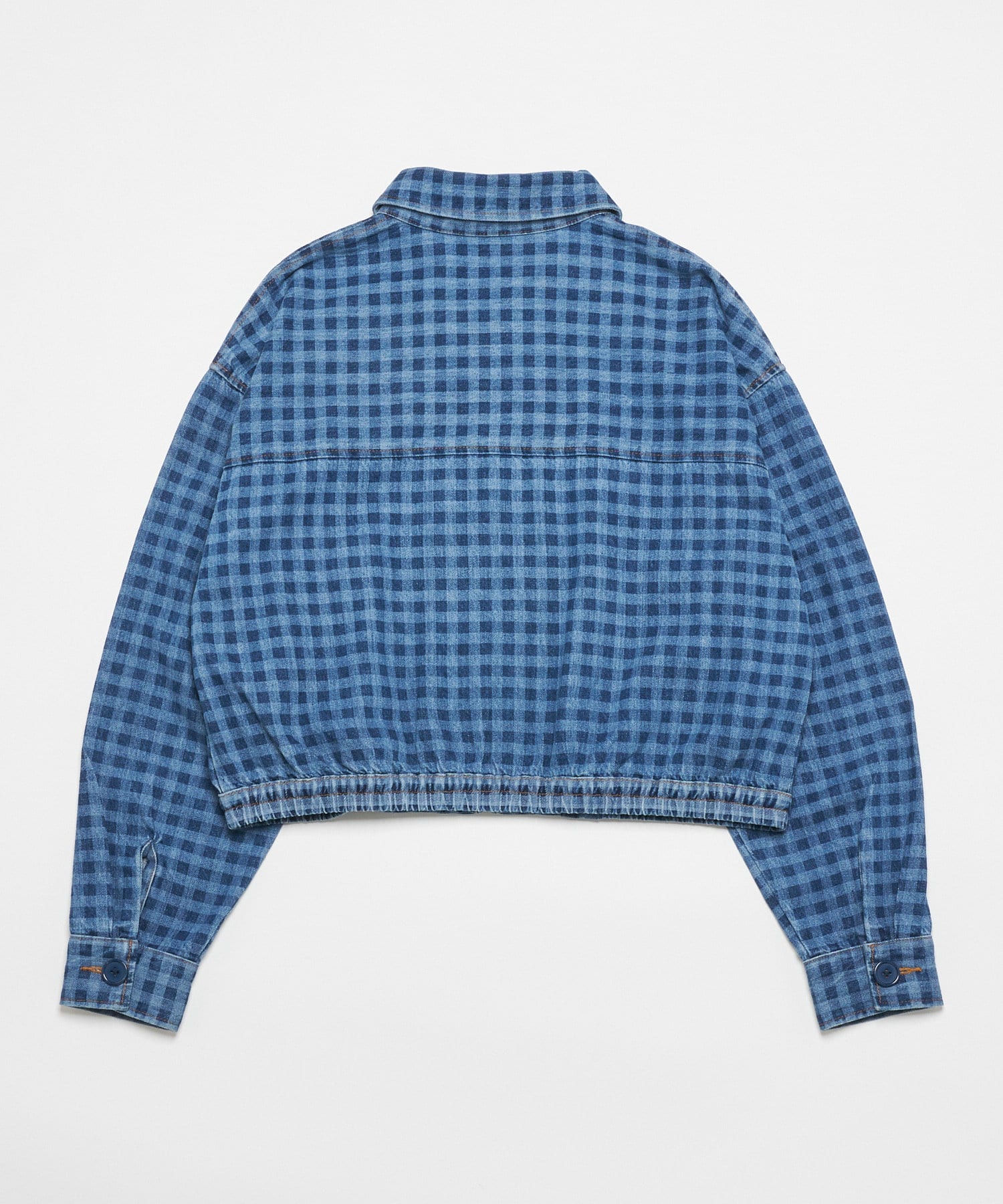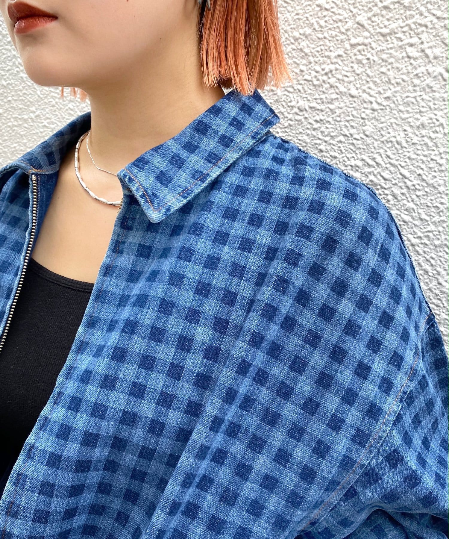 デニムのカジュアル感×襟付ききちんと感の欲張りアウター!チェック柄デニムブルゾン