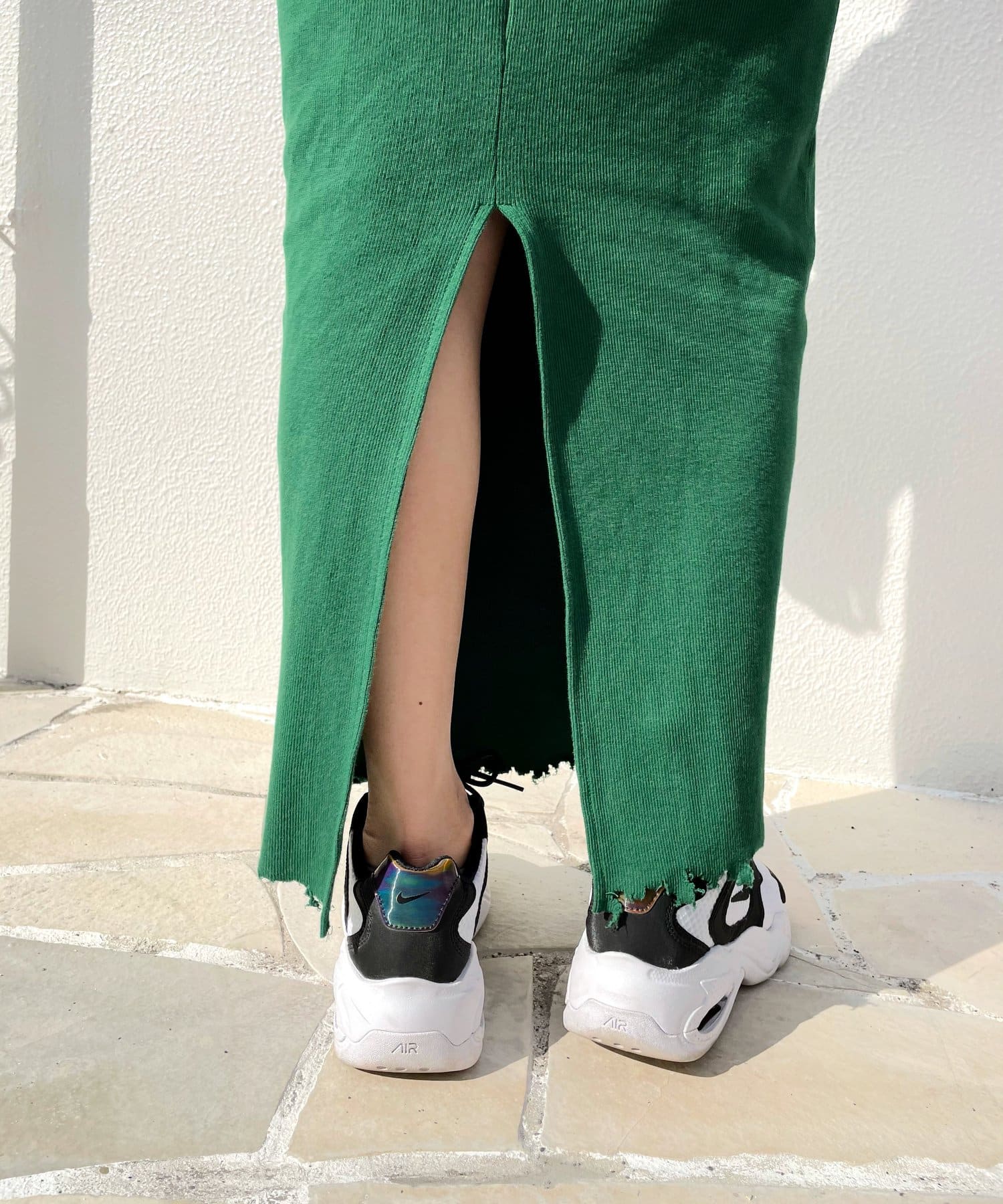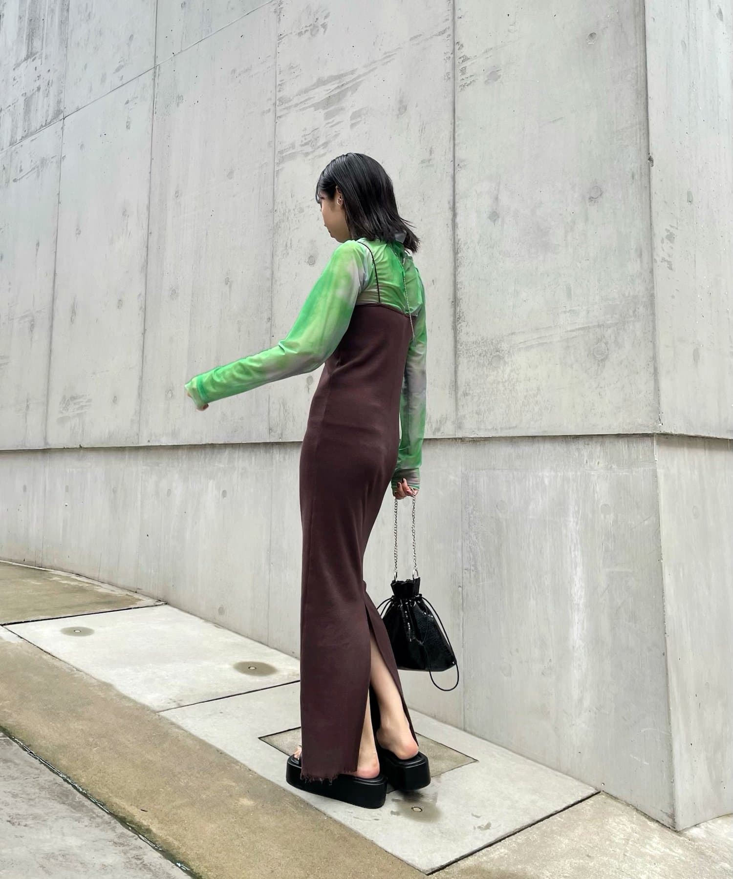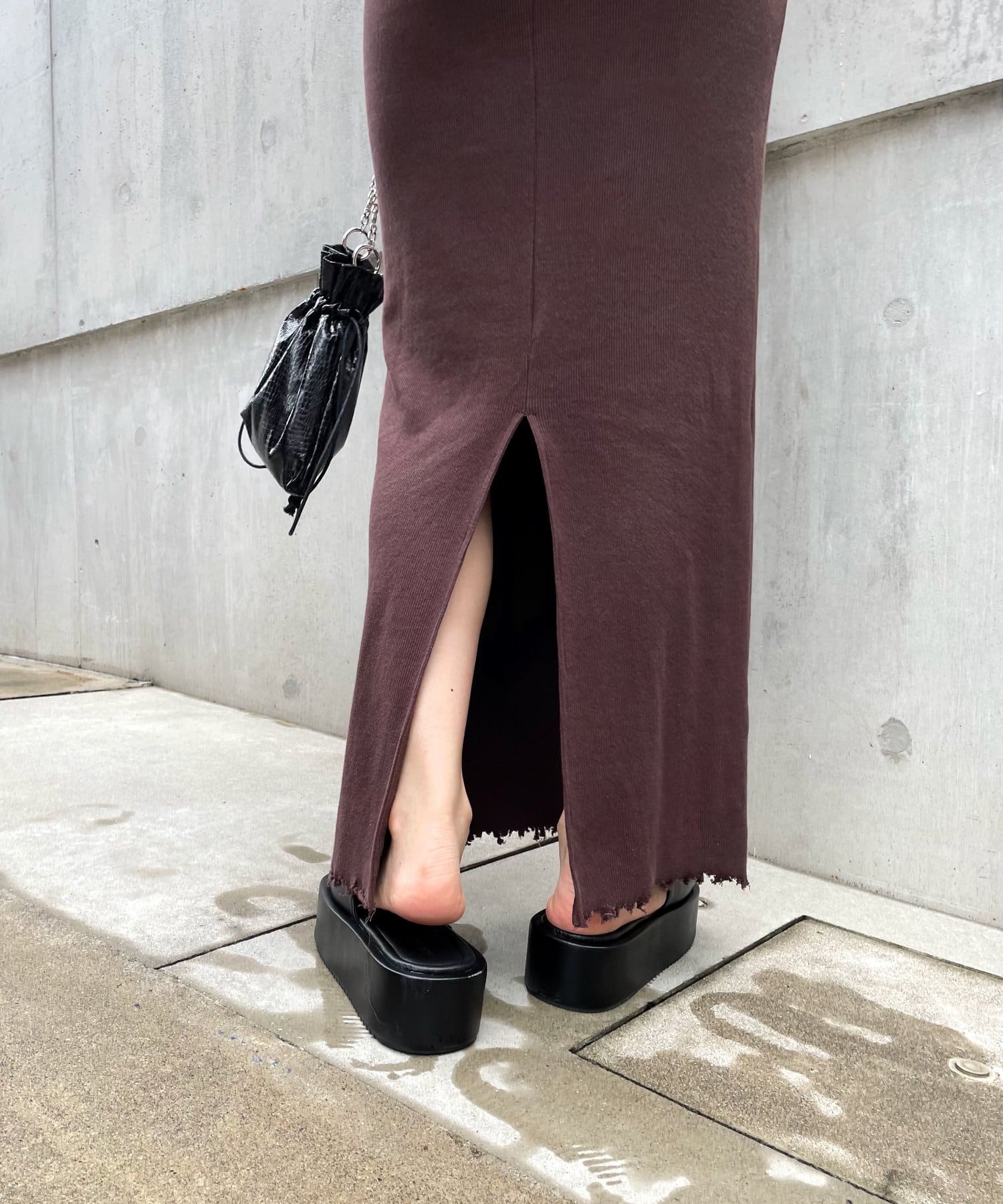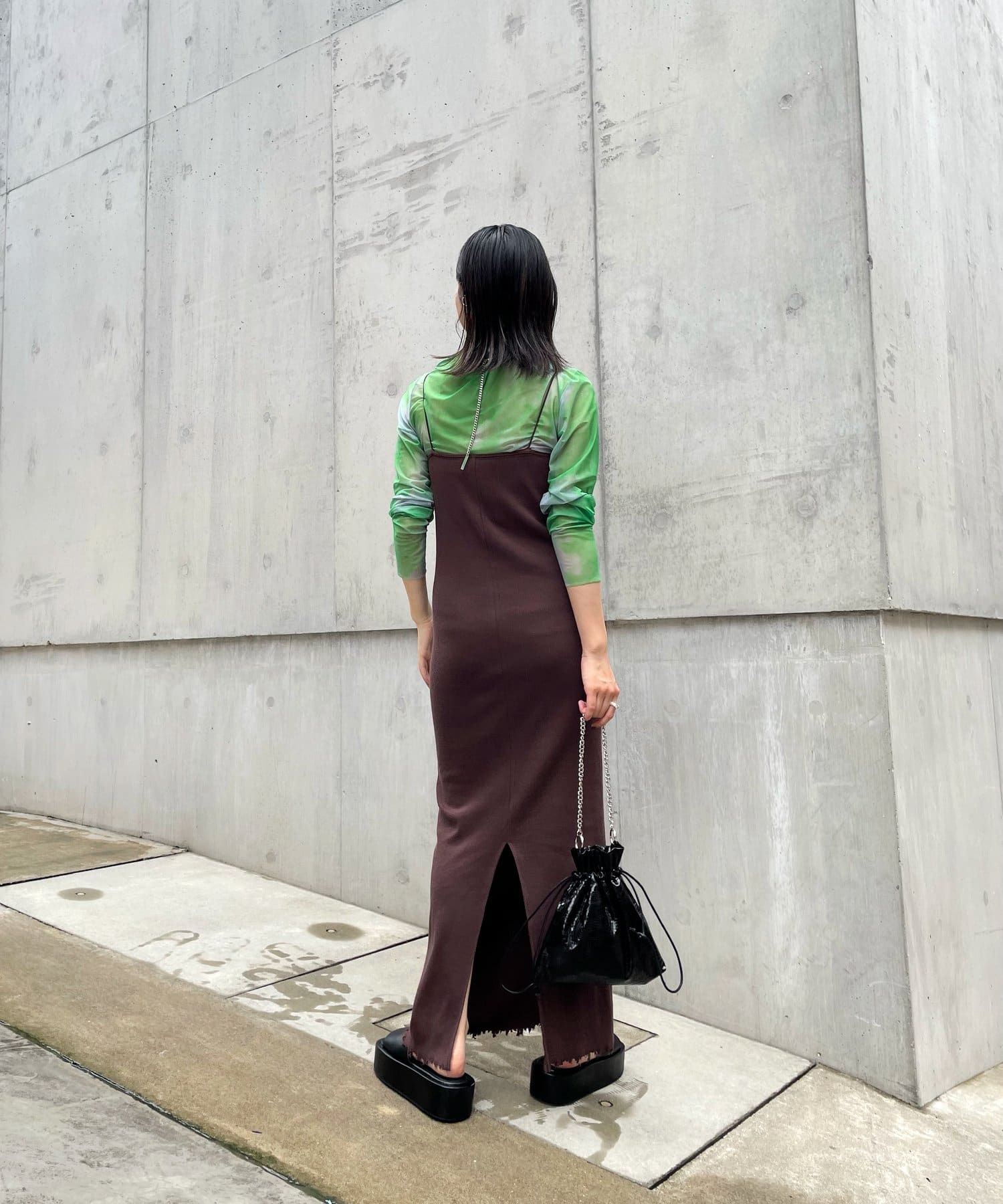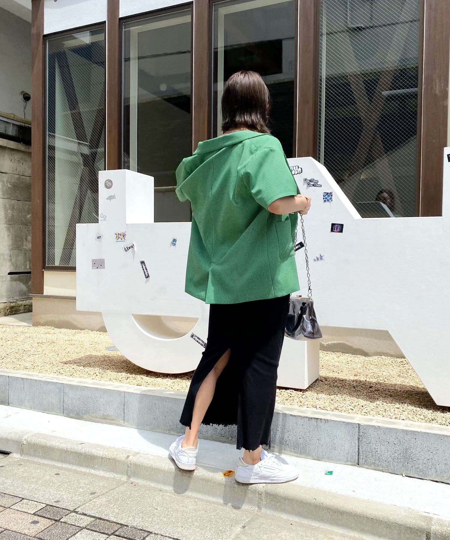 ・Iラインを強調する丈感が細身に魅せます。また、後ろのスリットによる肌見せで、抜け感をプラス。