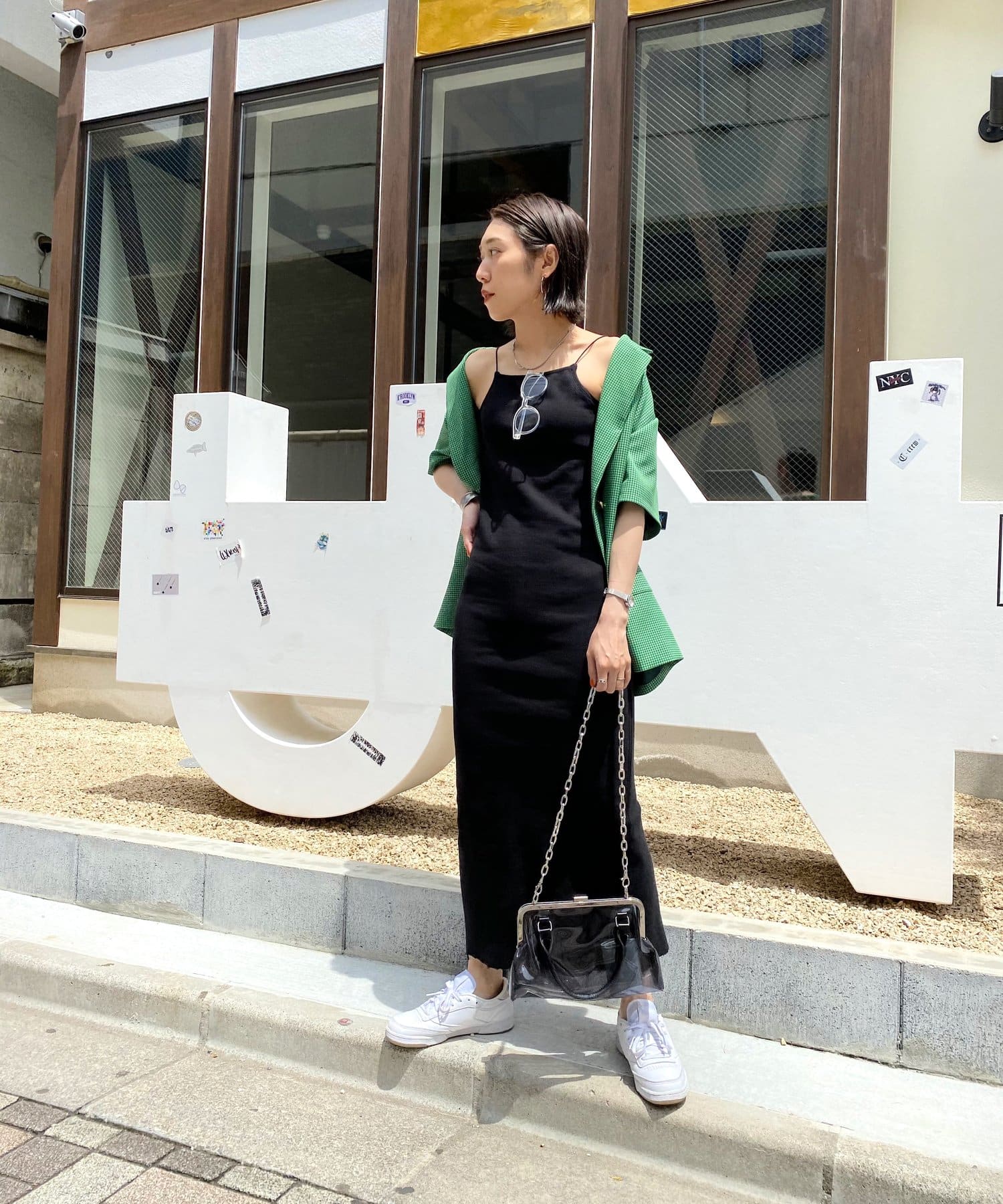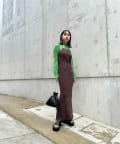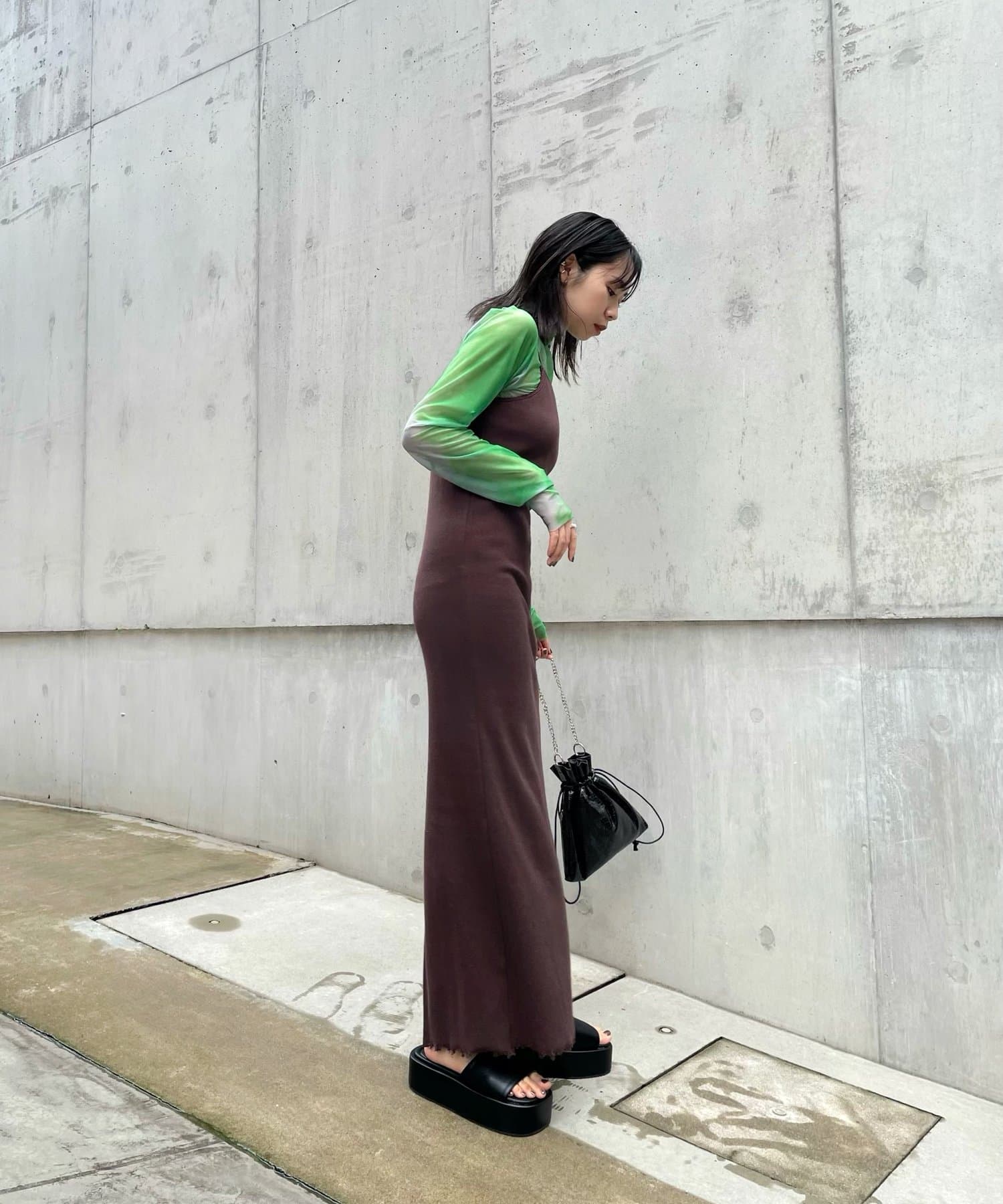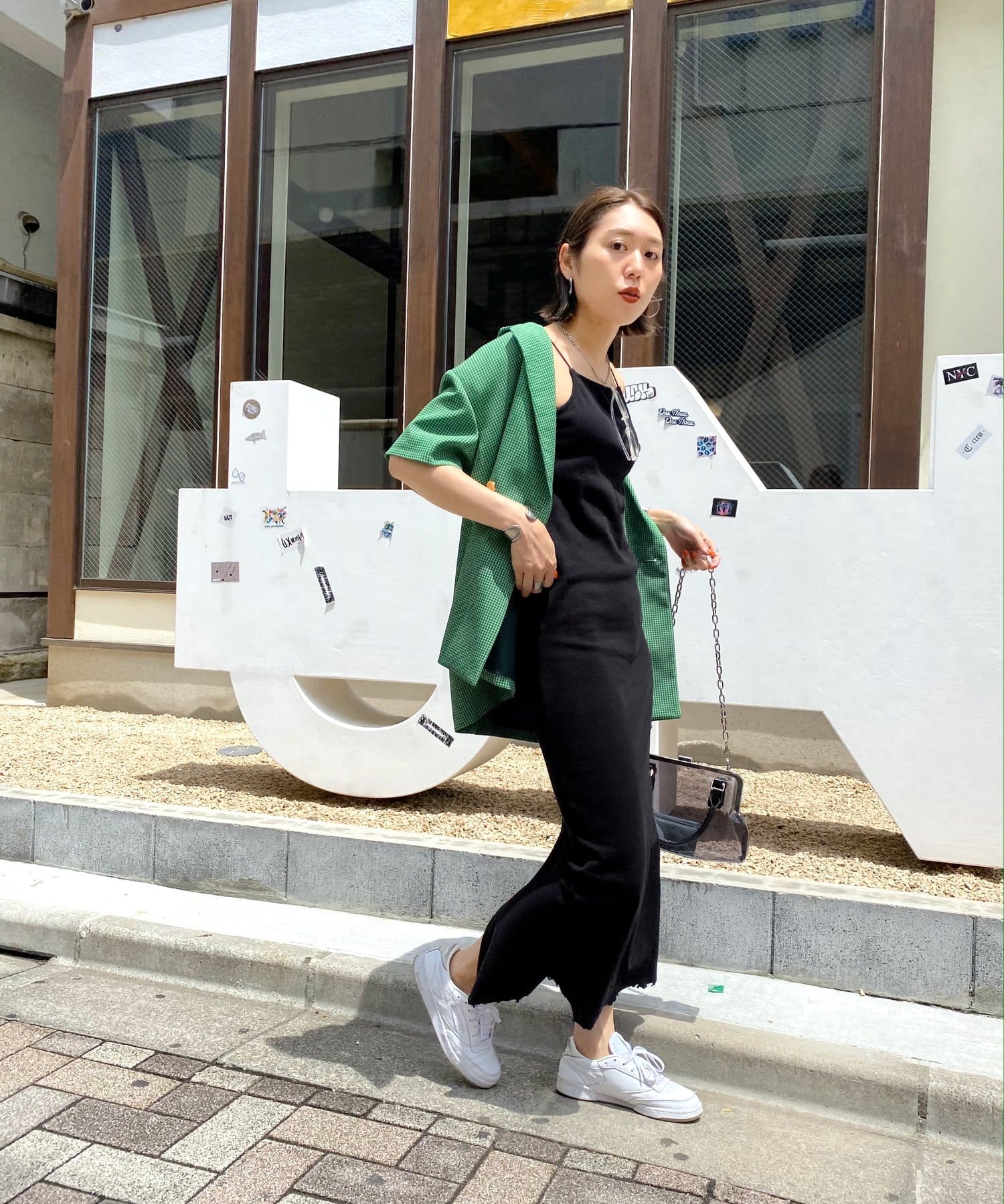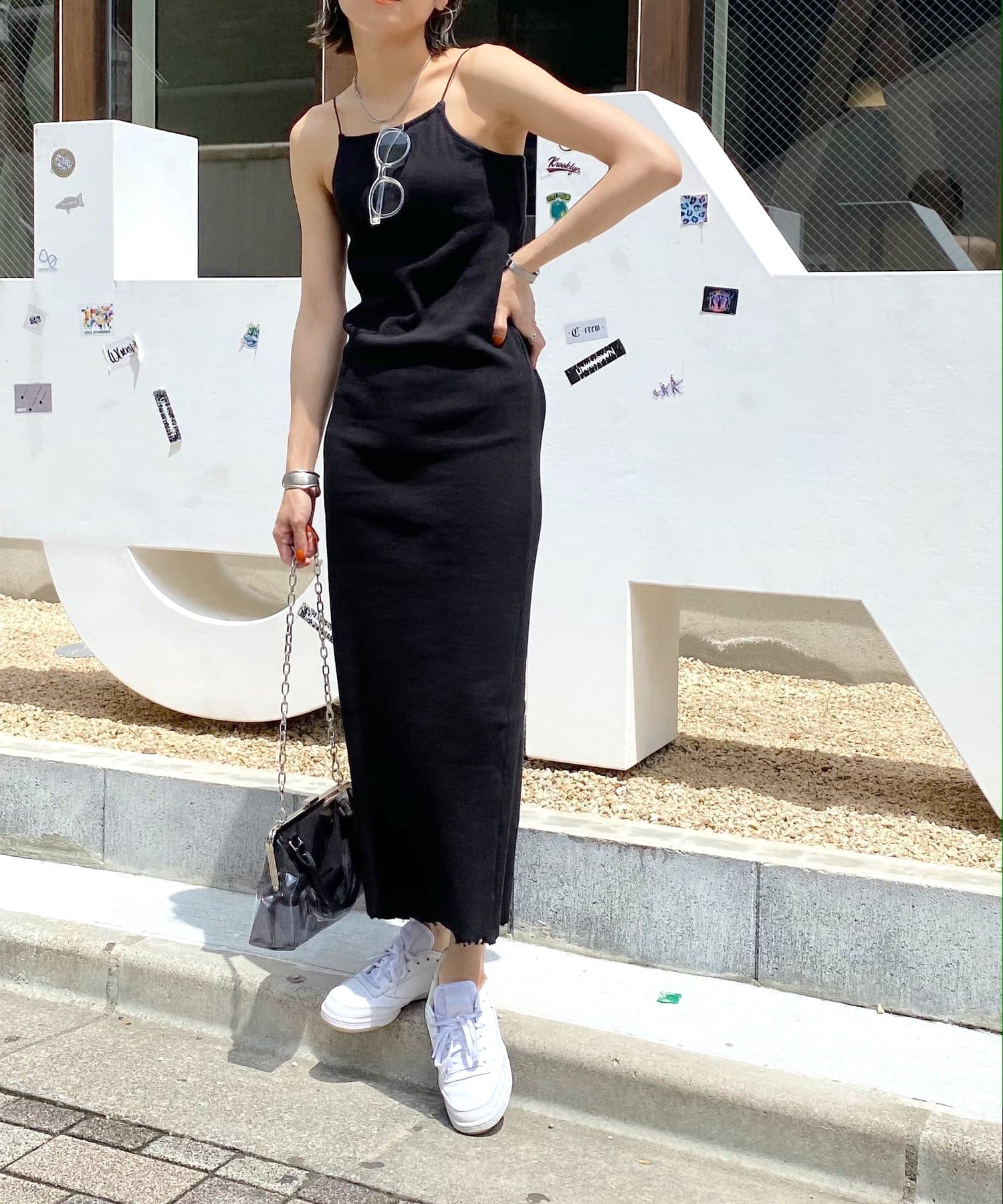 ・Iラインを強調する丈感が細身に魅せます。また、後ろのスリットによる肌見せで、抜け感をプラス。