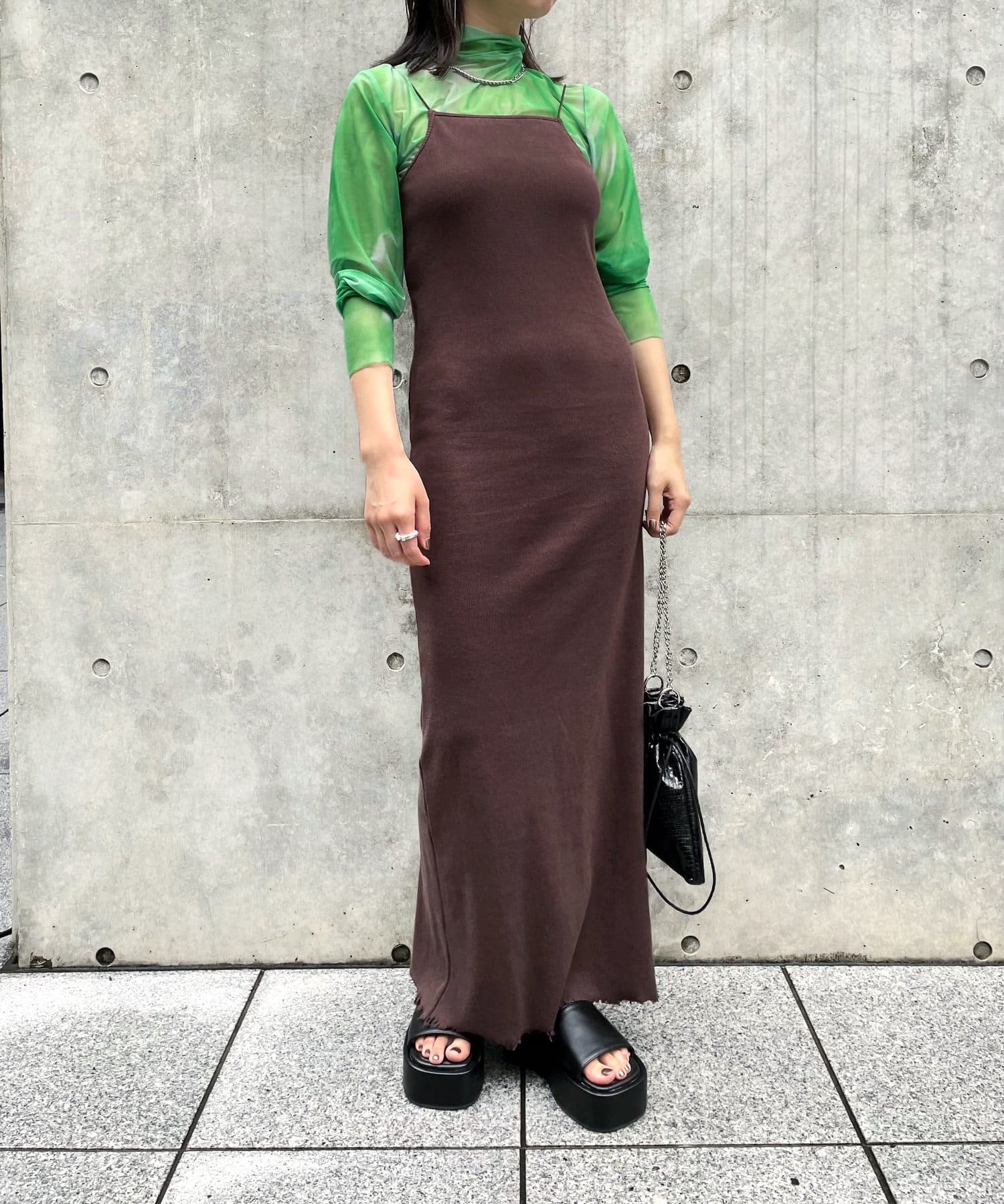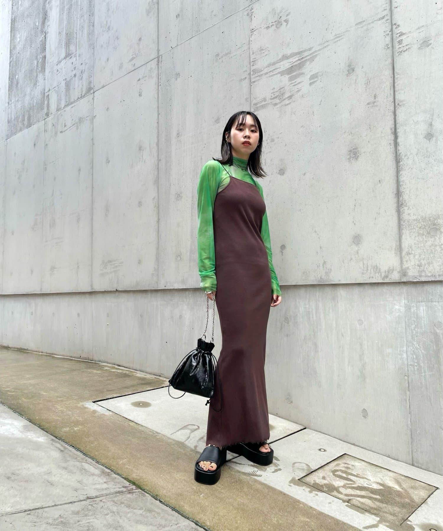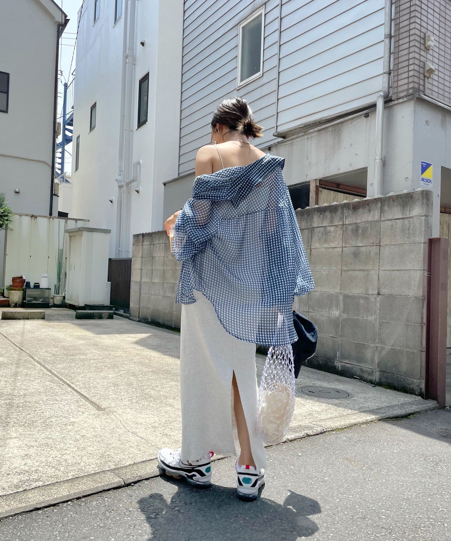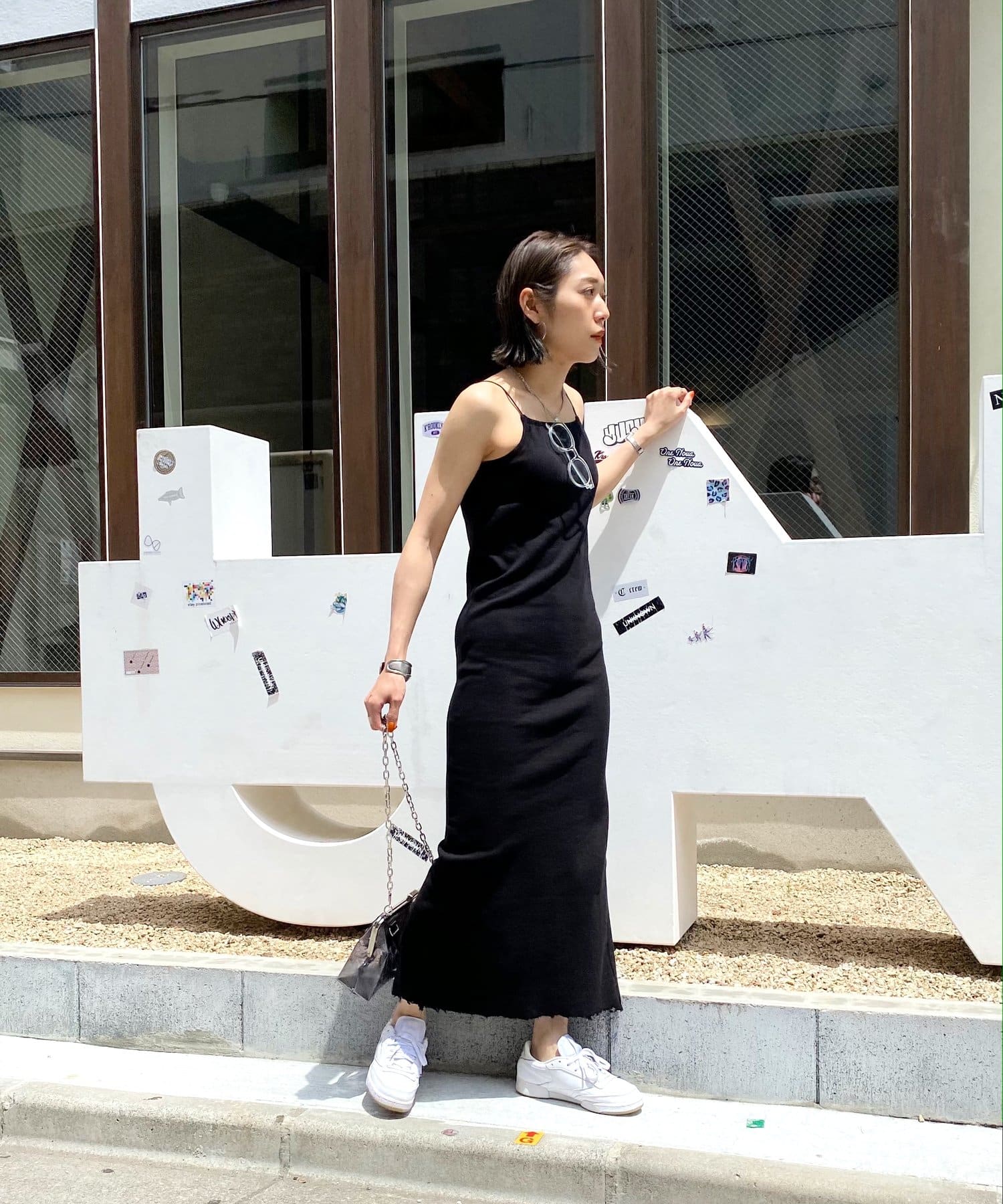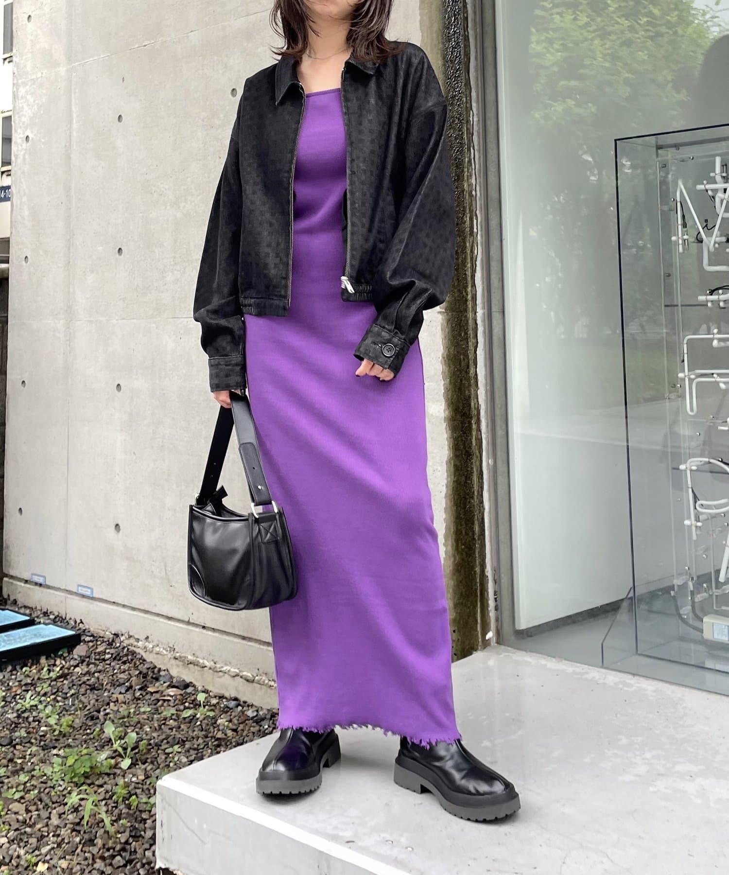 ・Iラインを強調する丈感が細身に魅せます。また、後ろのスリットによる肌見せで、抜け感をプラス。