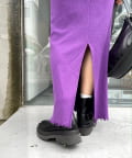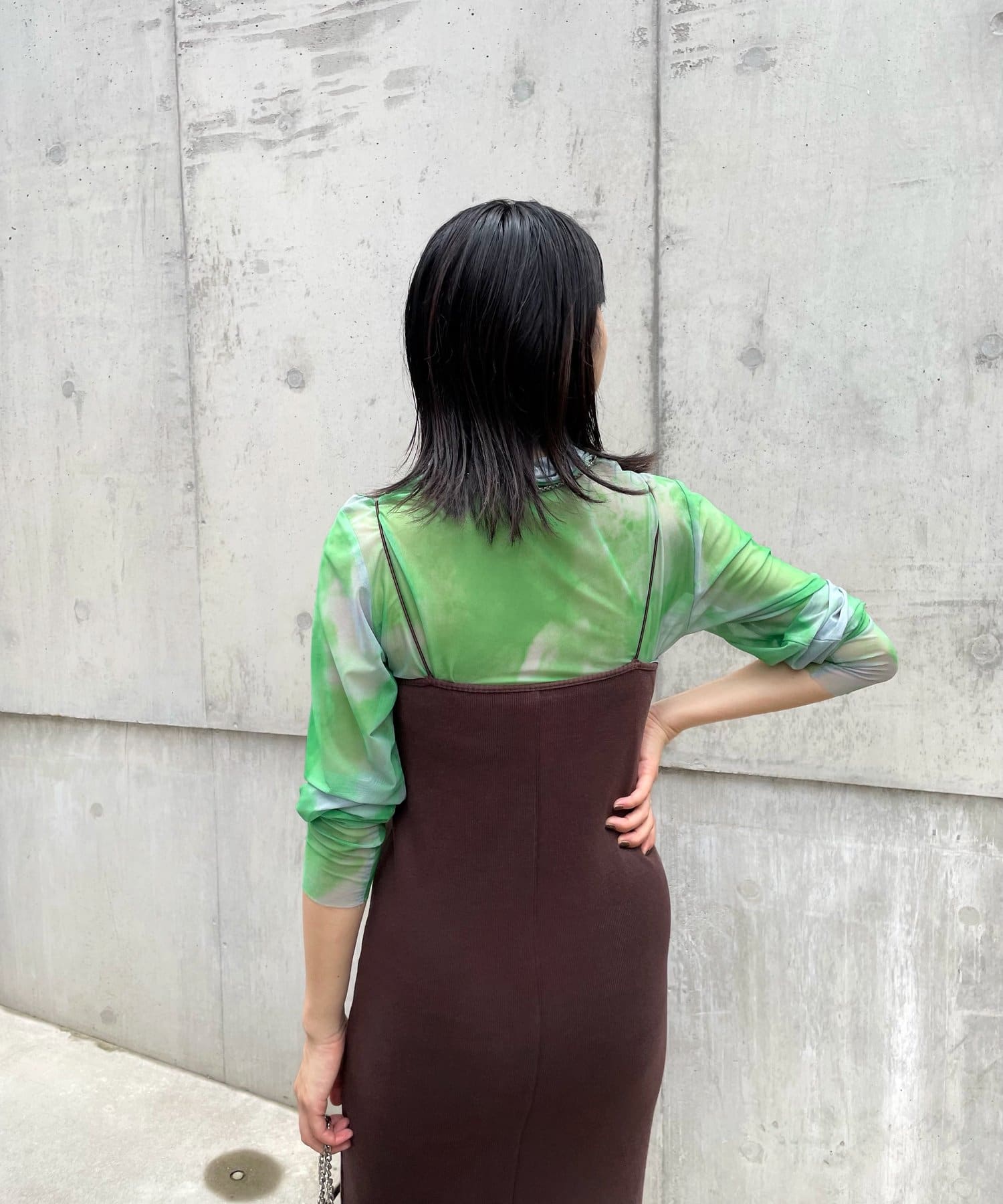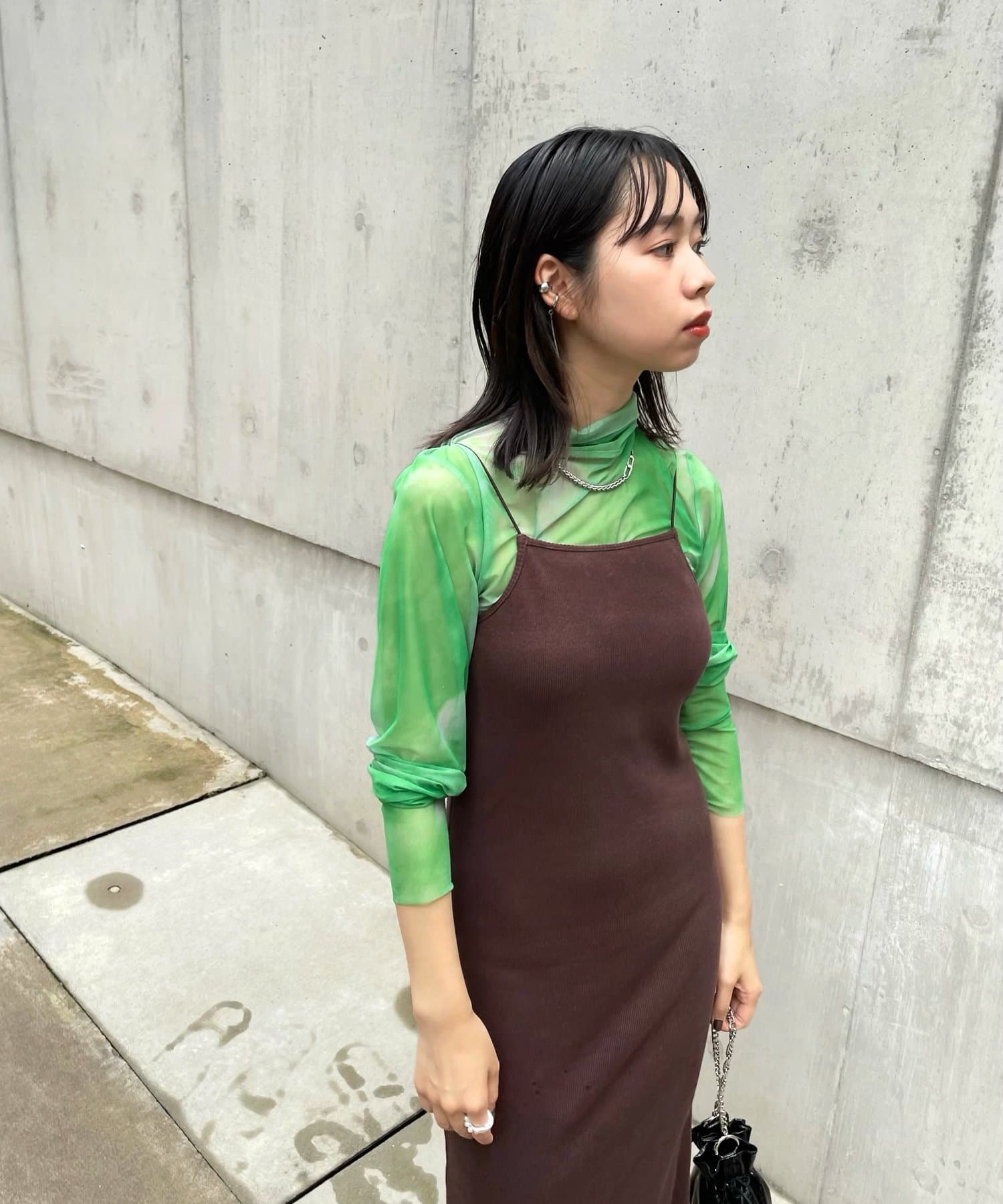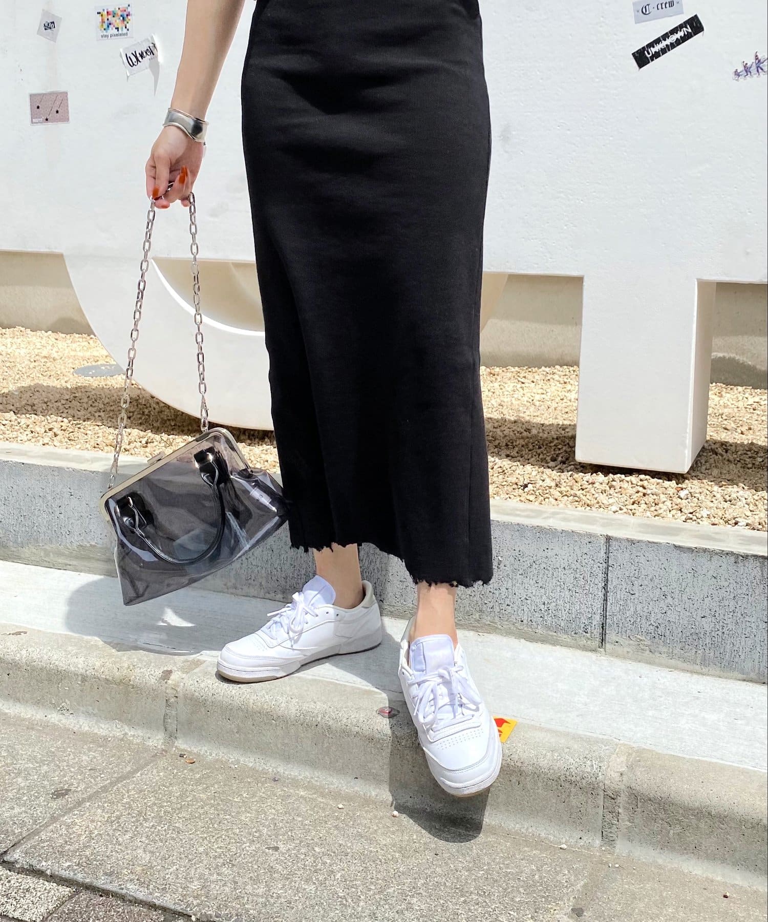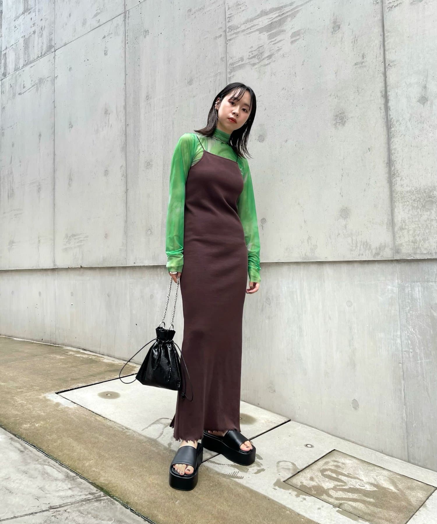 ・Iラインを強調する丈感が細身に魅せます。また、後ろのスリットによる肌見せで、抜け感をプラス。