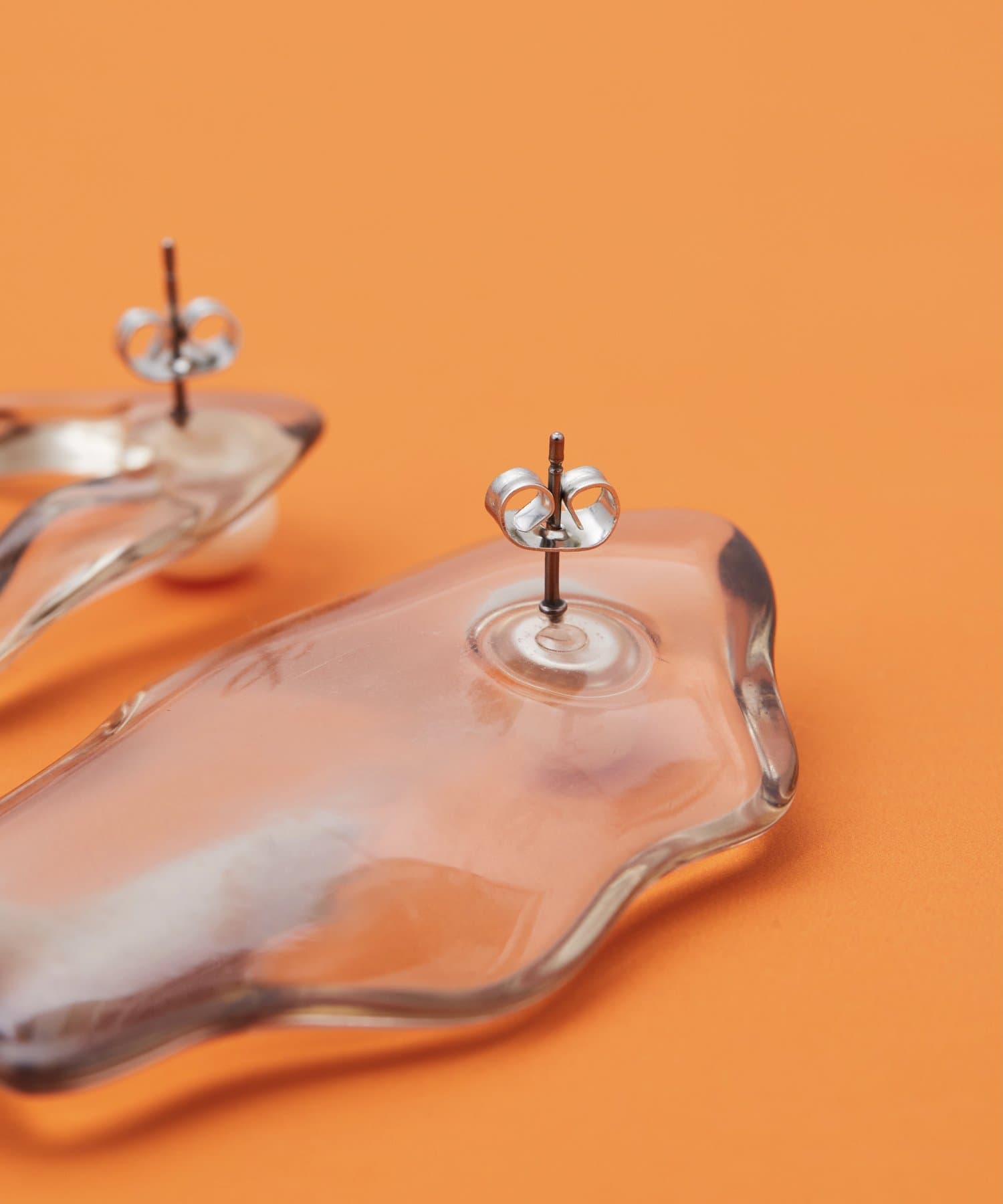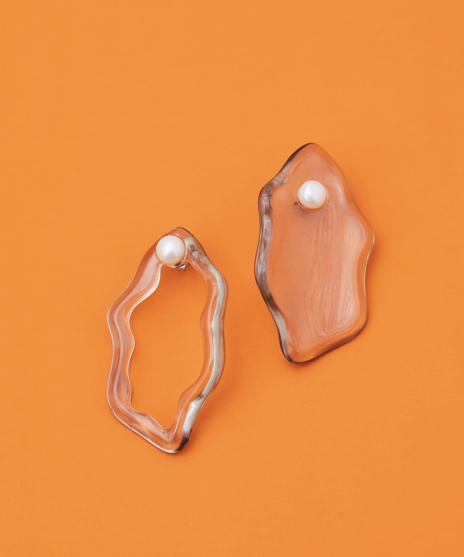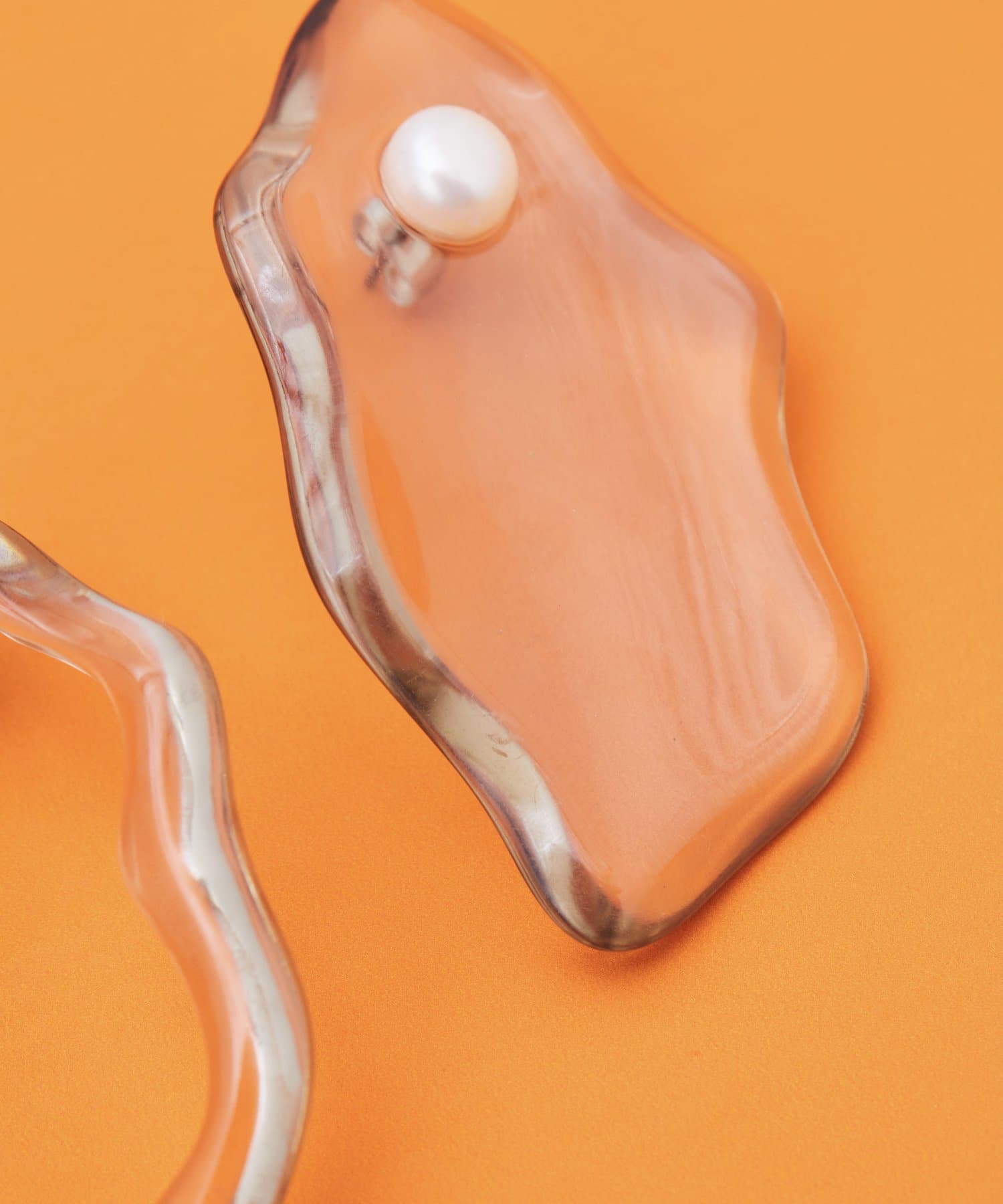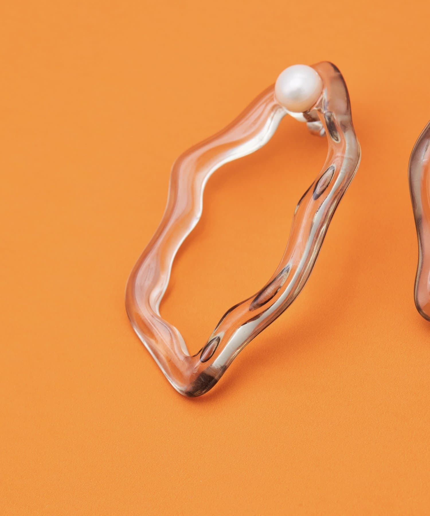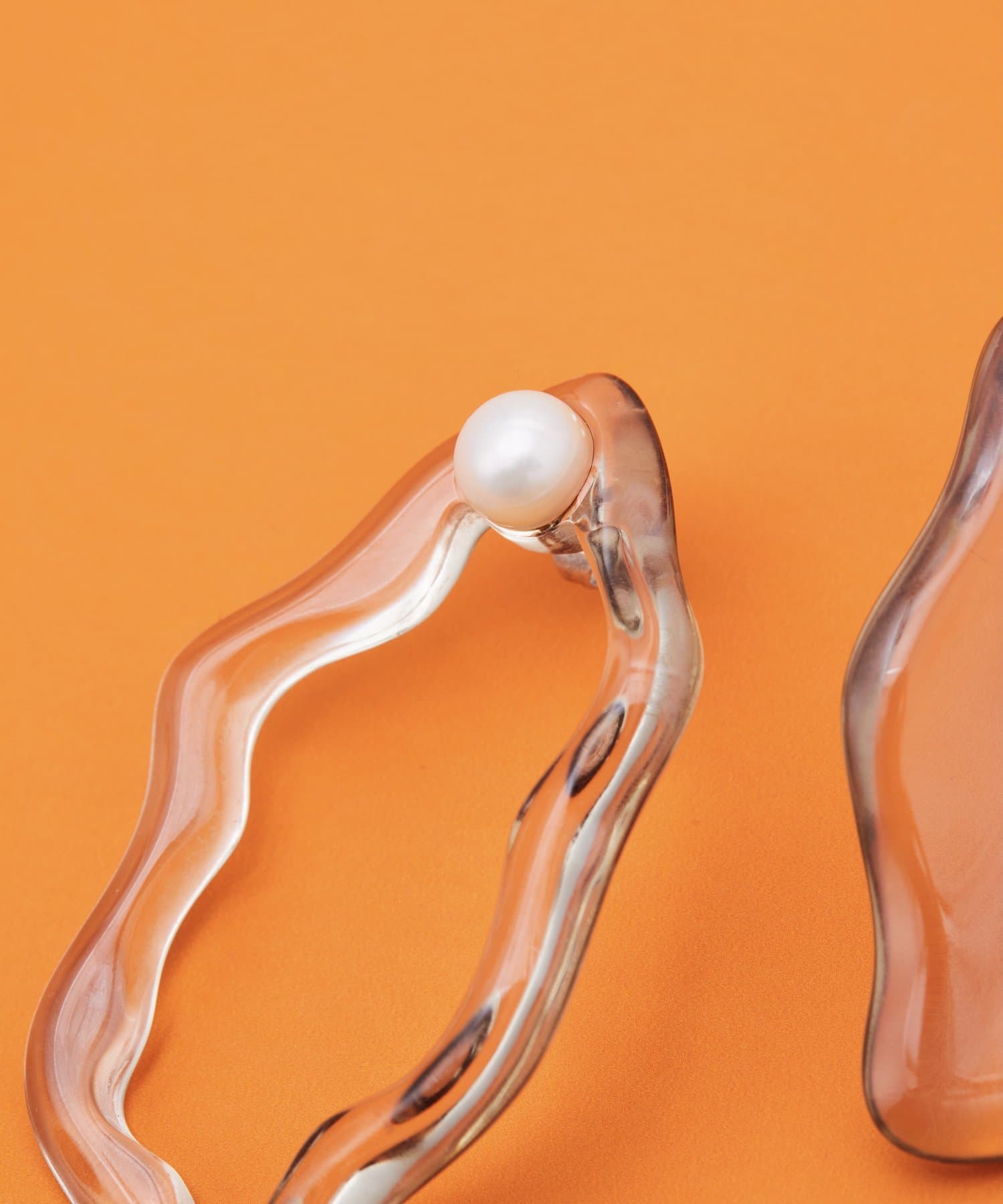 ・パールが付いていて上品な雰囲気を醸しながら、クリア部分の歪な形がどこか個性的で、コーデのアクセントに。