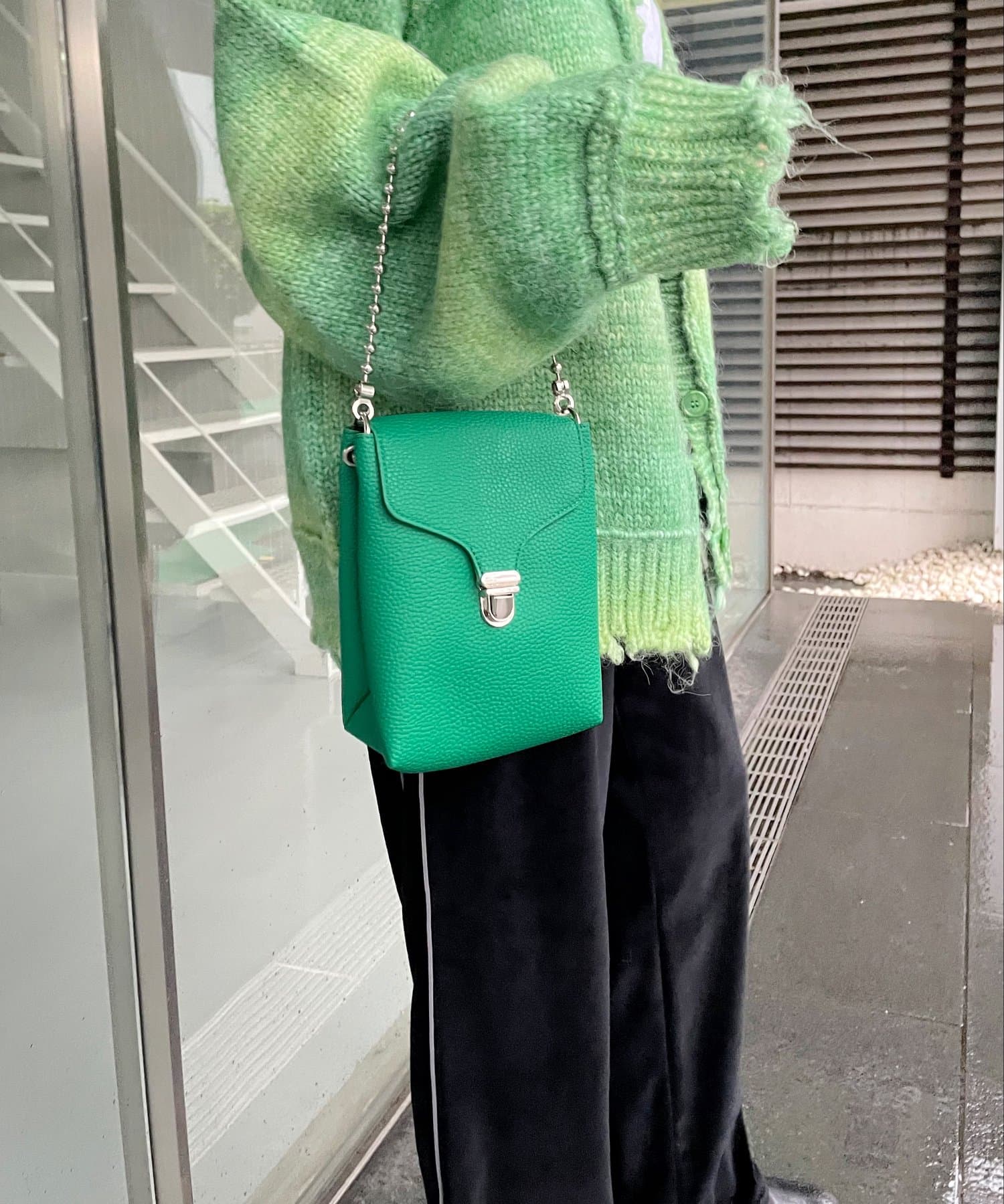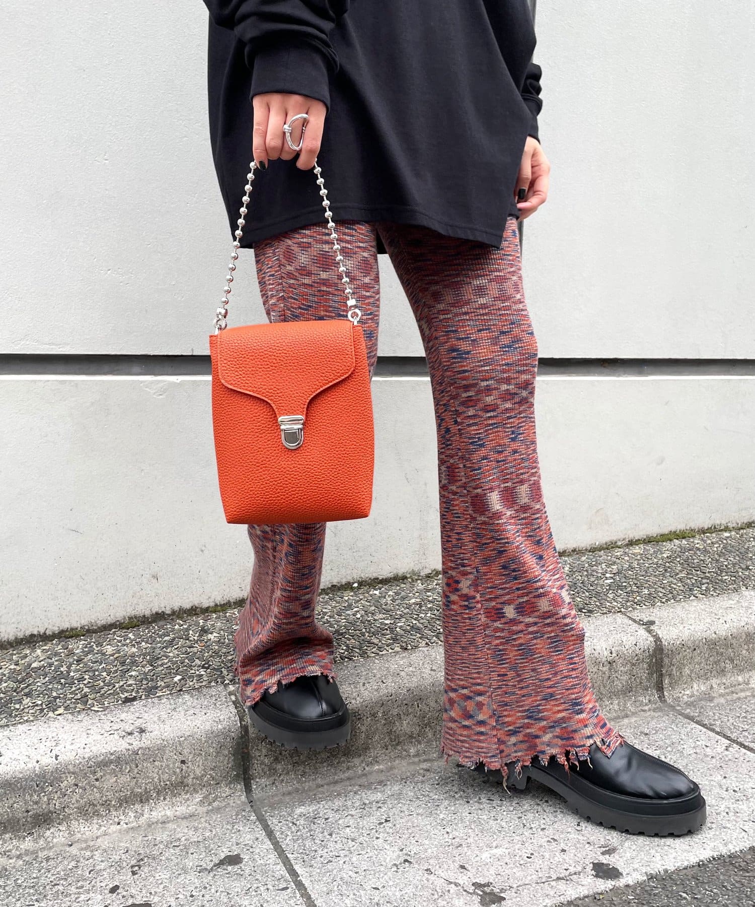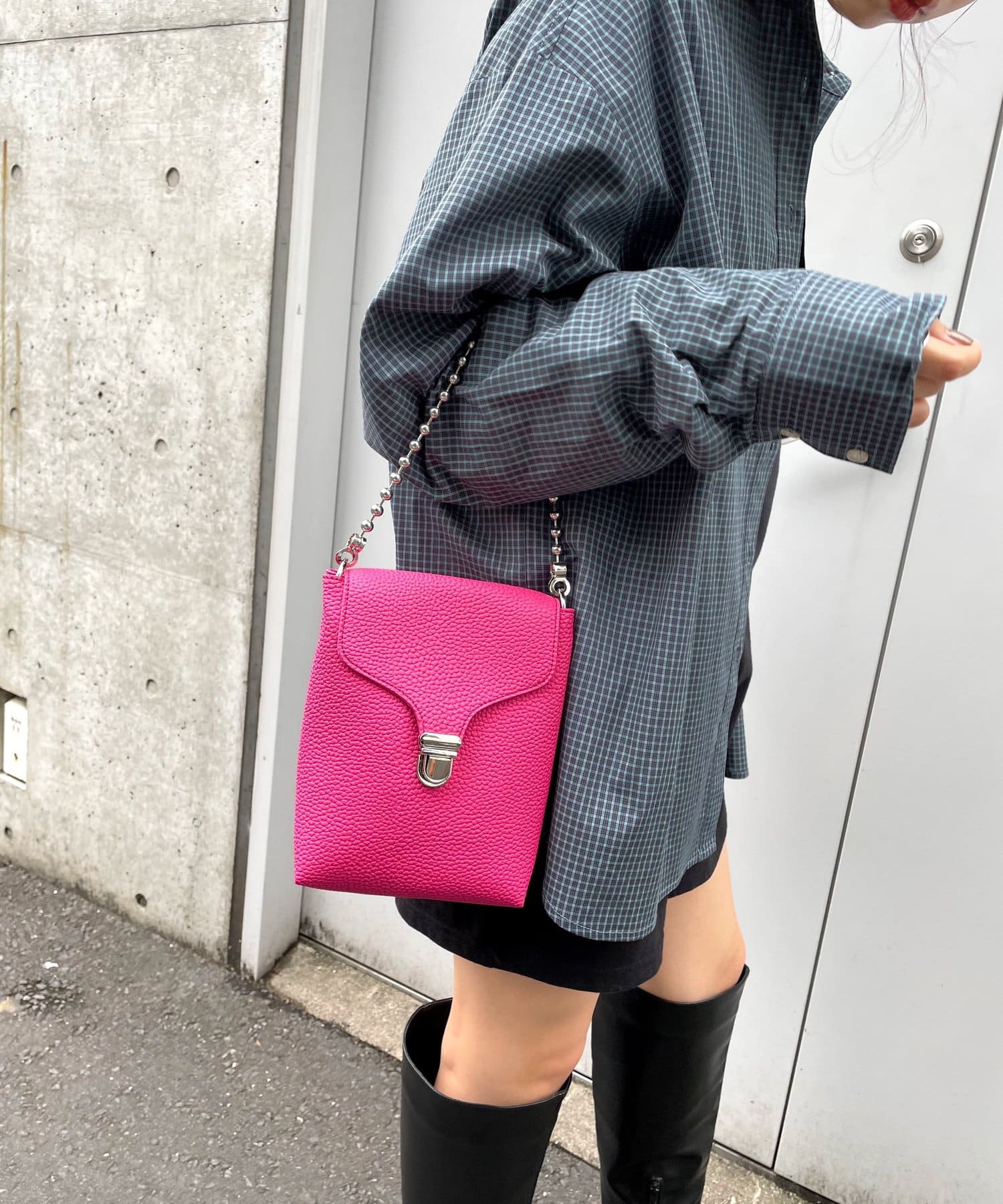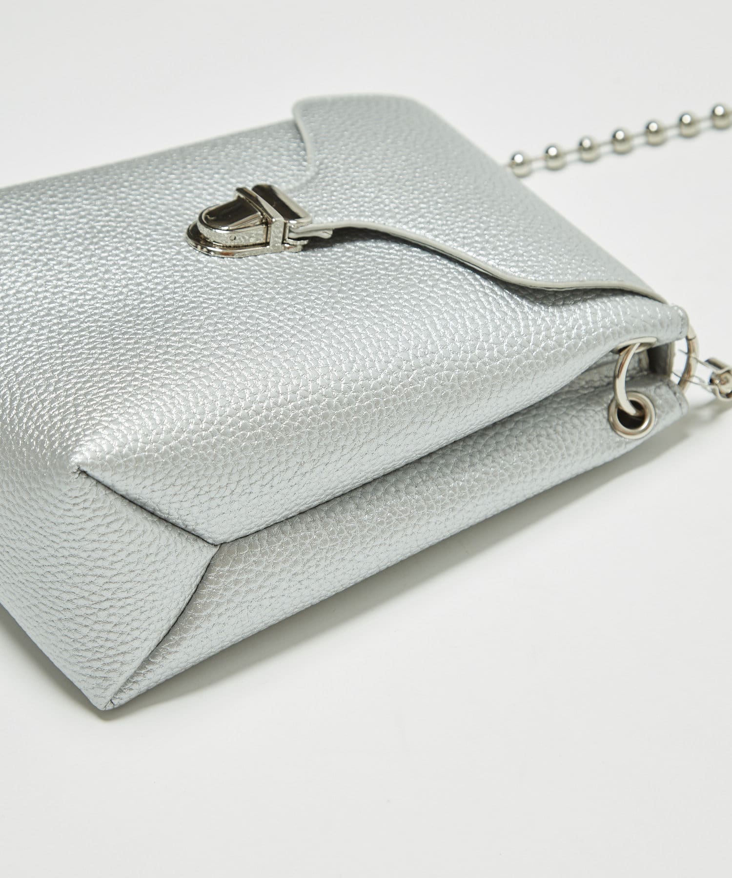 ・模様のようにも見える素材感。アクセサリーのようなチェーンと共に、小さくても存在感のあるバッグです。