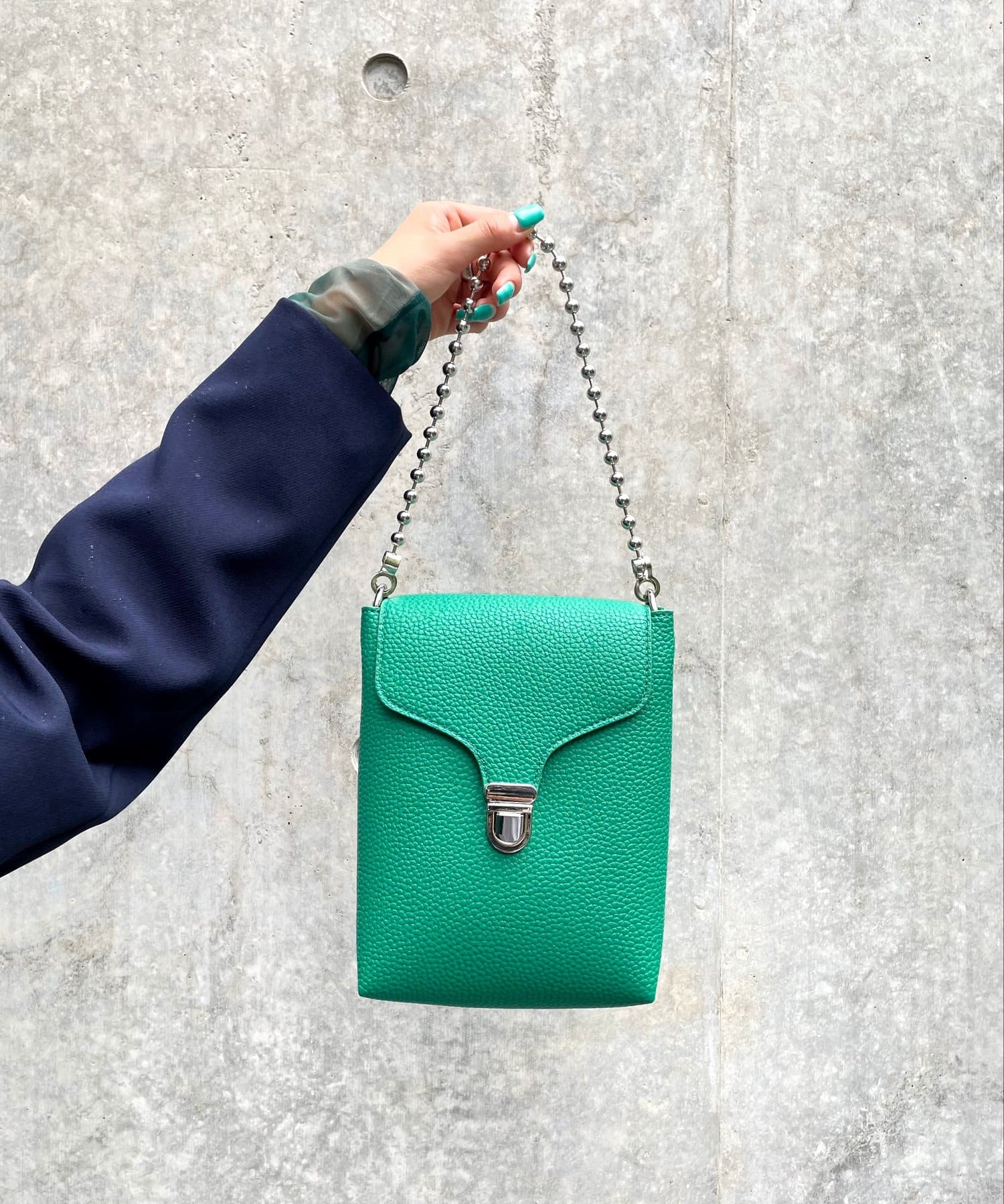アクセサリーのようなチェーンが決め手の小ぶりなバッグ
