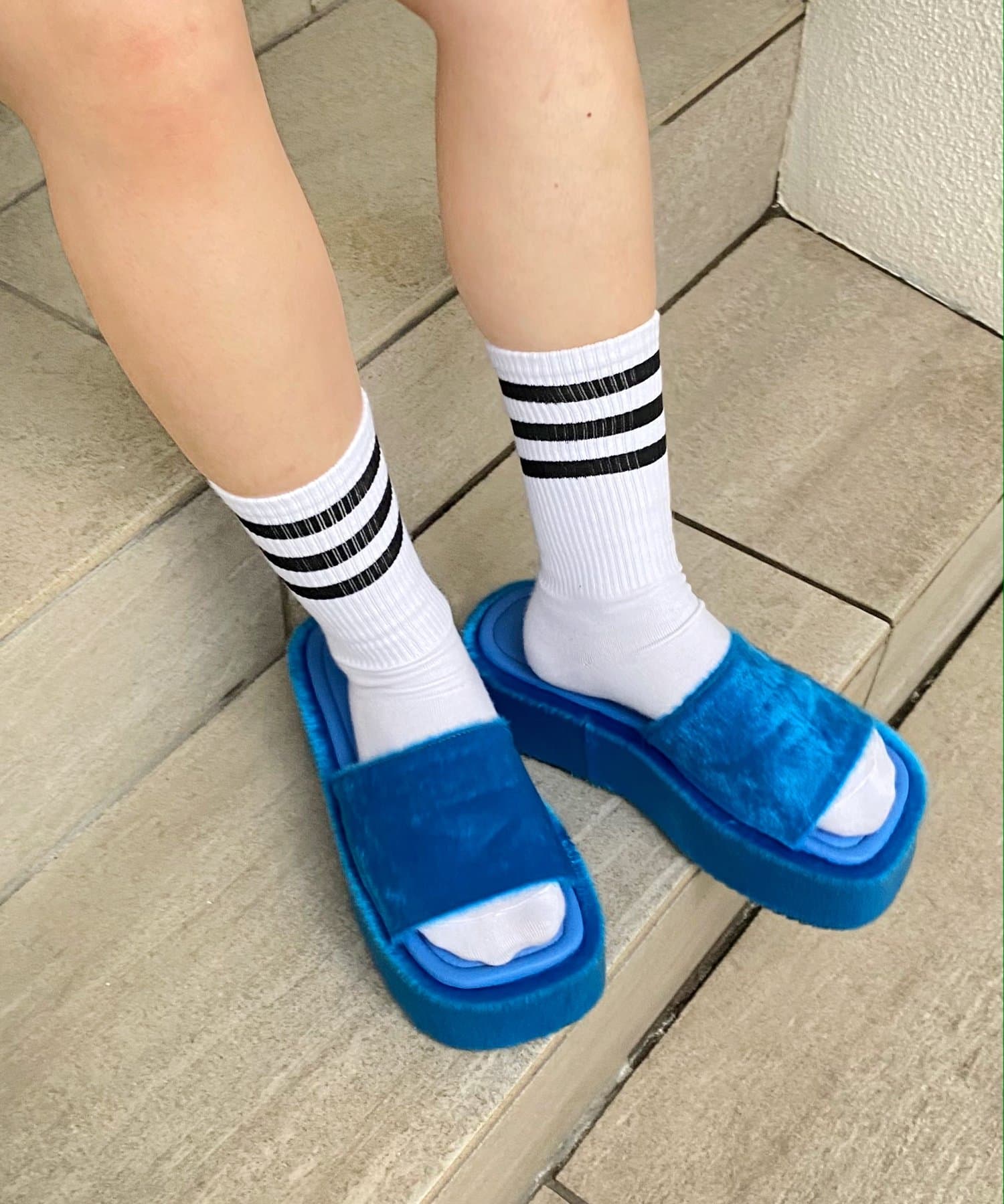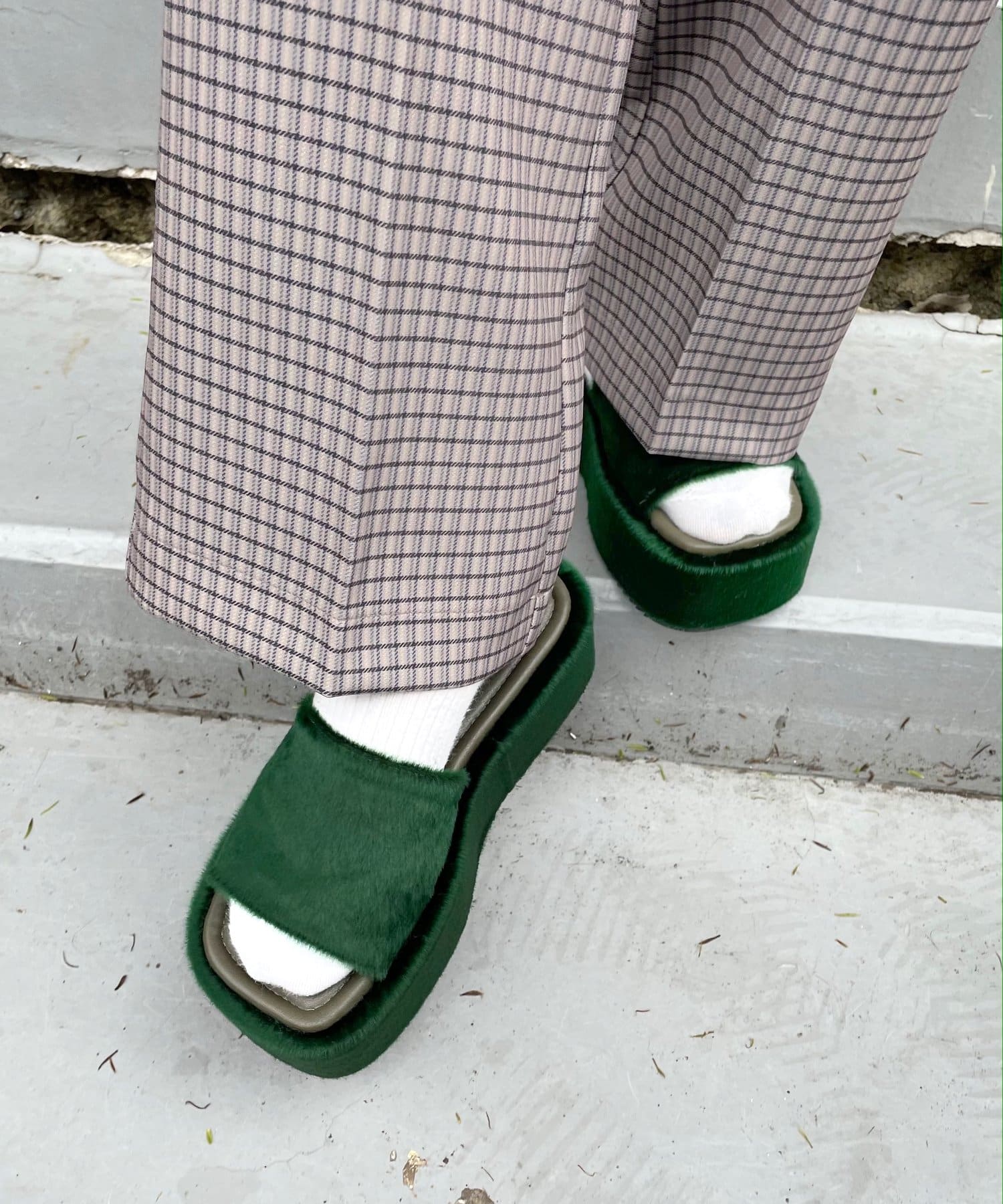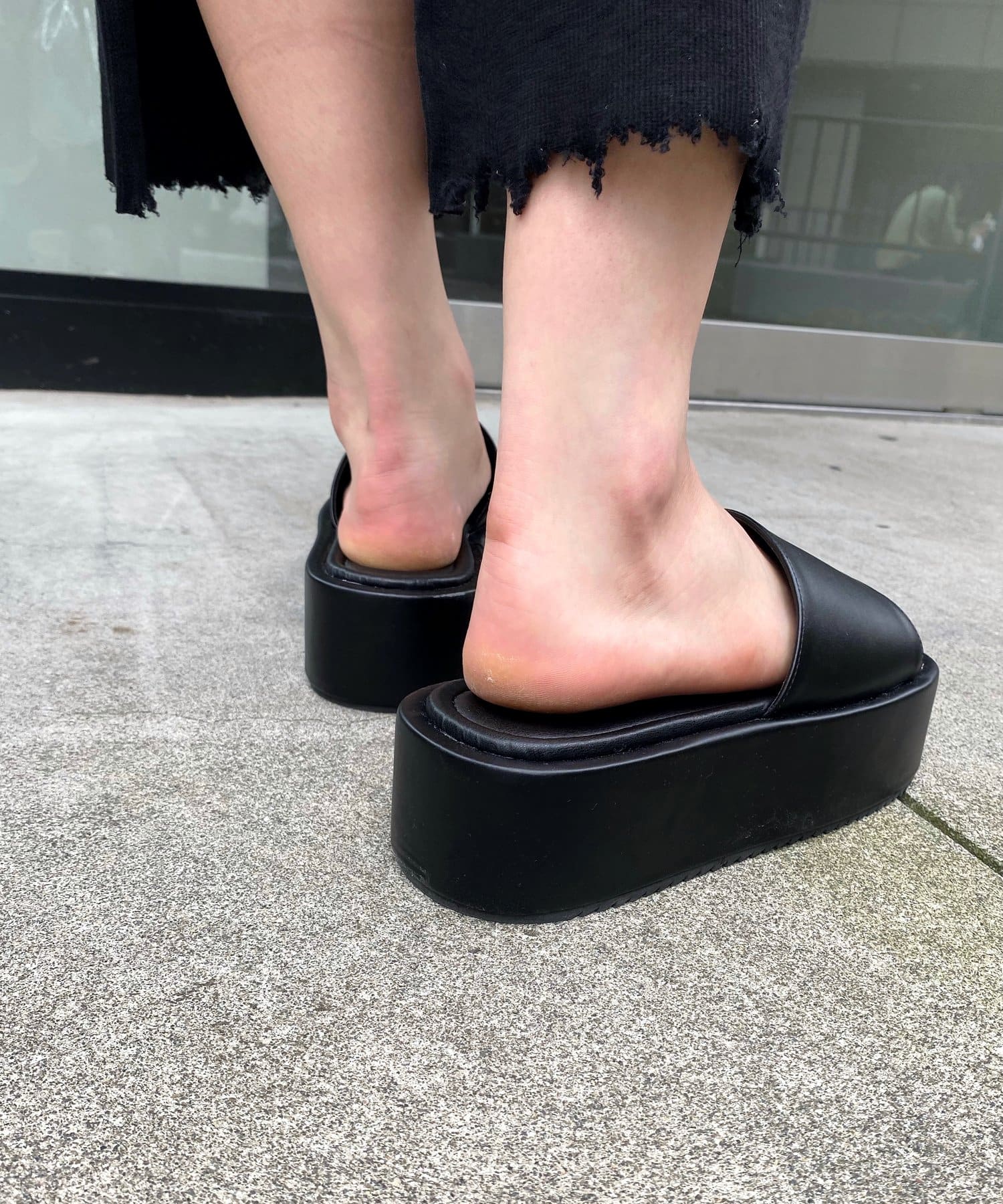 素材、カラーによって異なる顔を見せる、ボリューム感溢れるプラットフォームサンダル