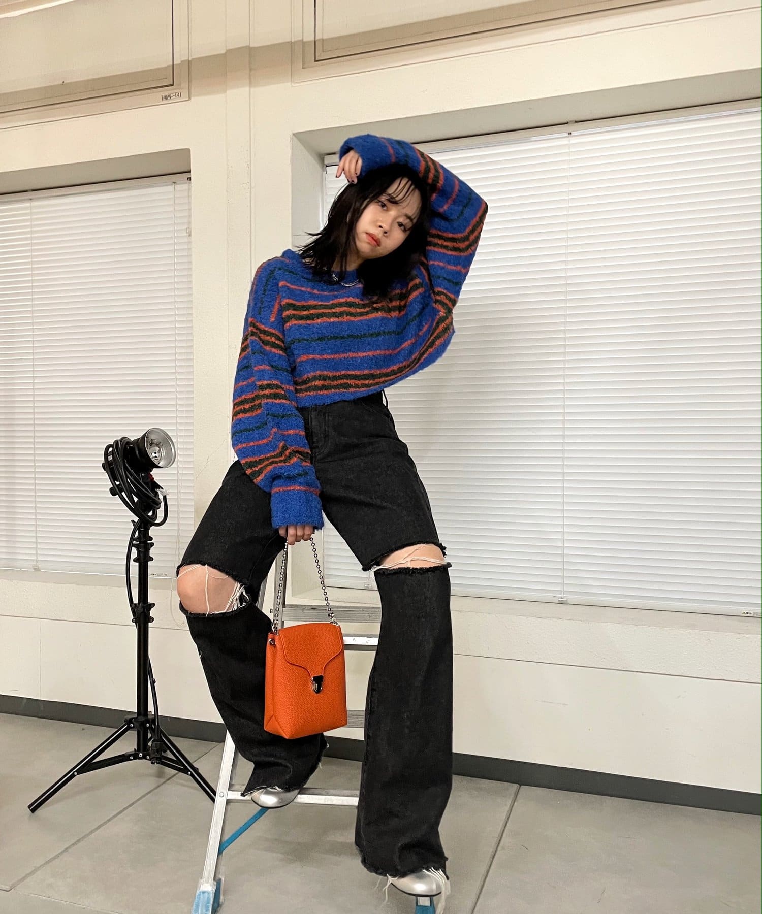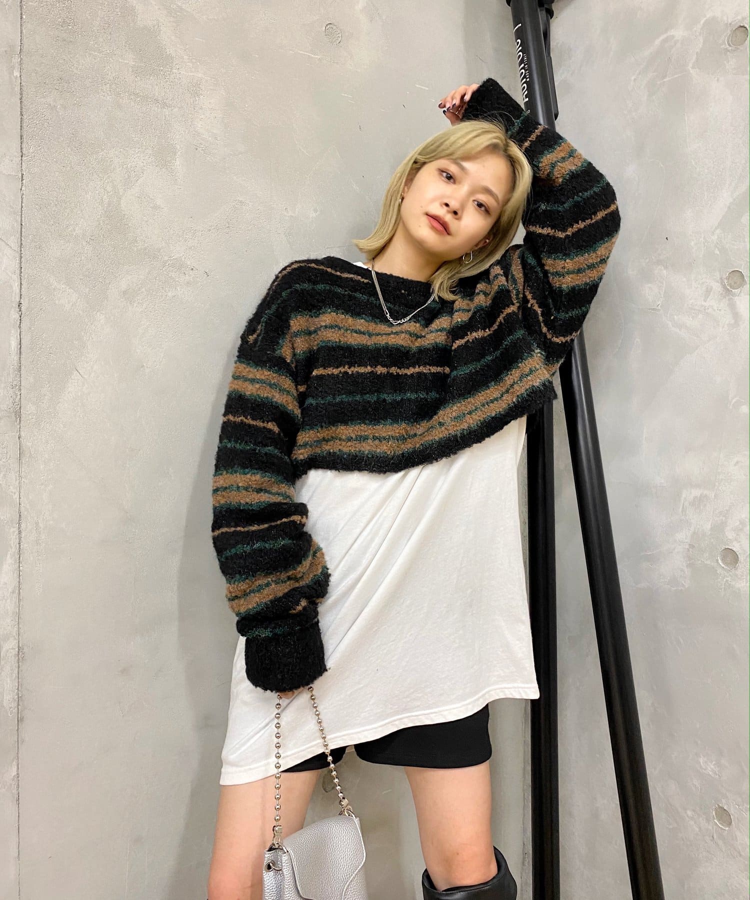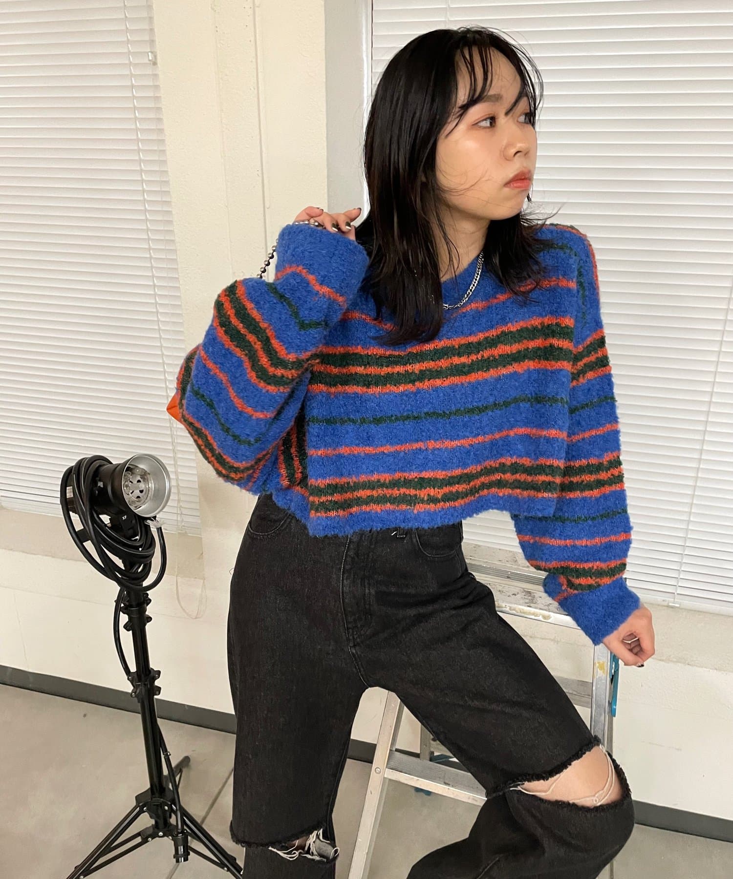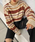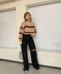 ・アクセントのあるカラー展開なので、ボーダーに使われている色とボトムや小物を合わせるとまとまりが出ます。