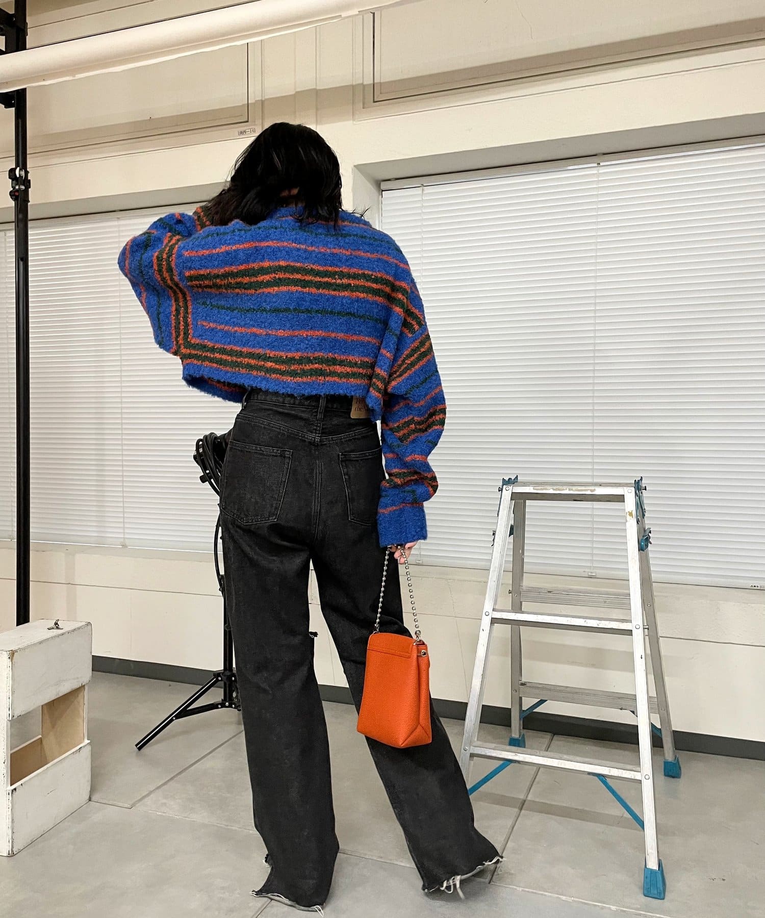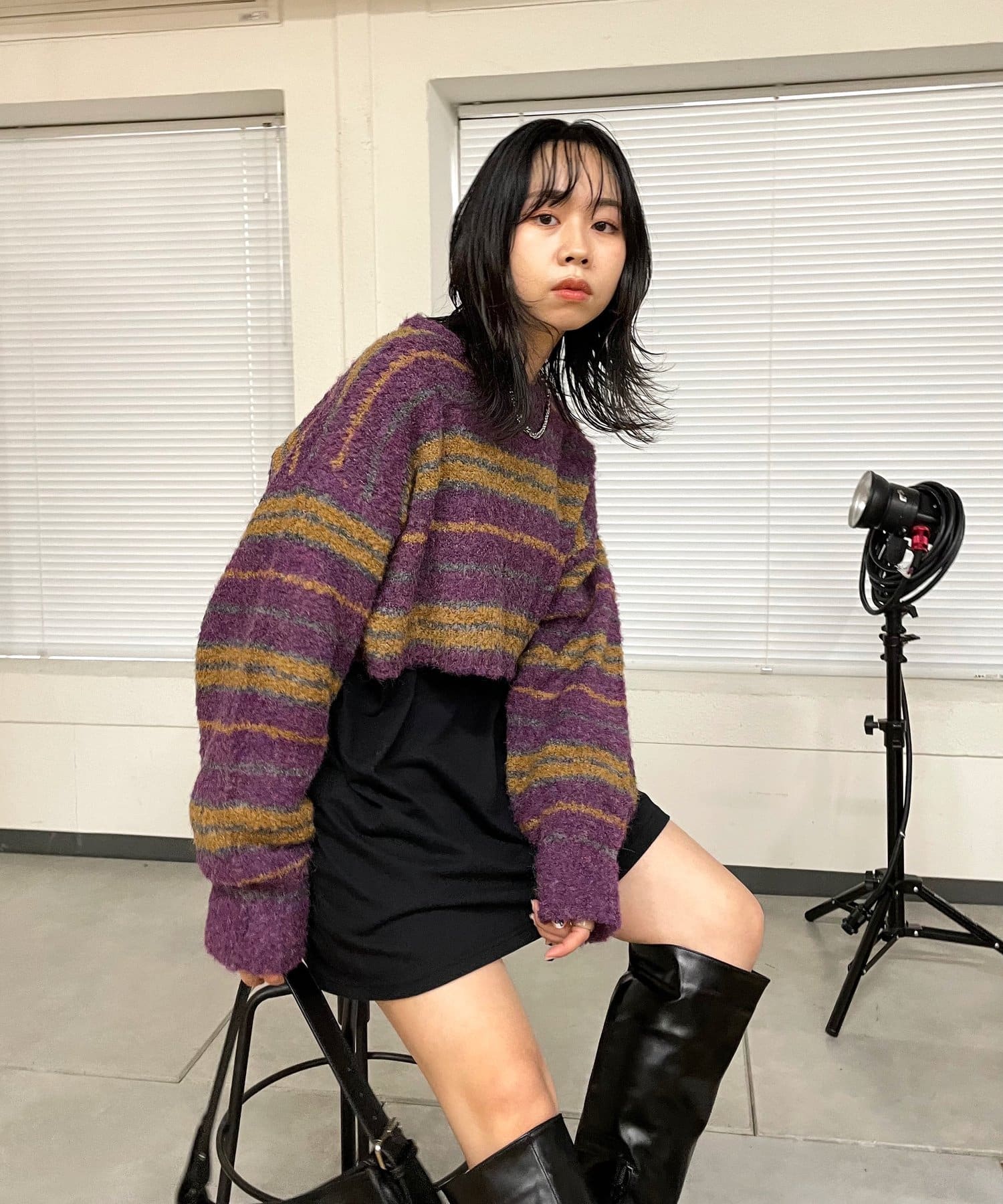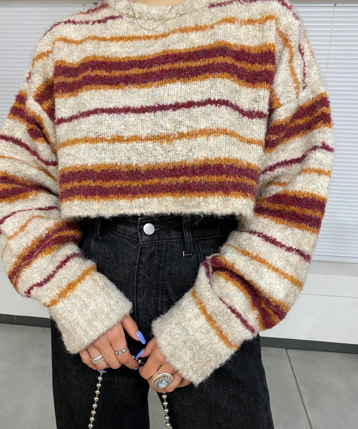 ・ショート丈の為、ハイウエストボトムは勿論、様々なボトムとバランスよく着られます。