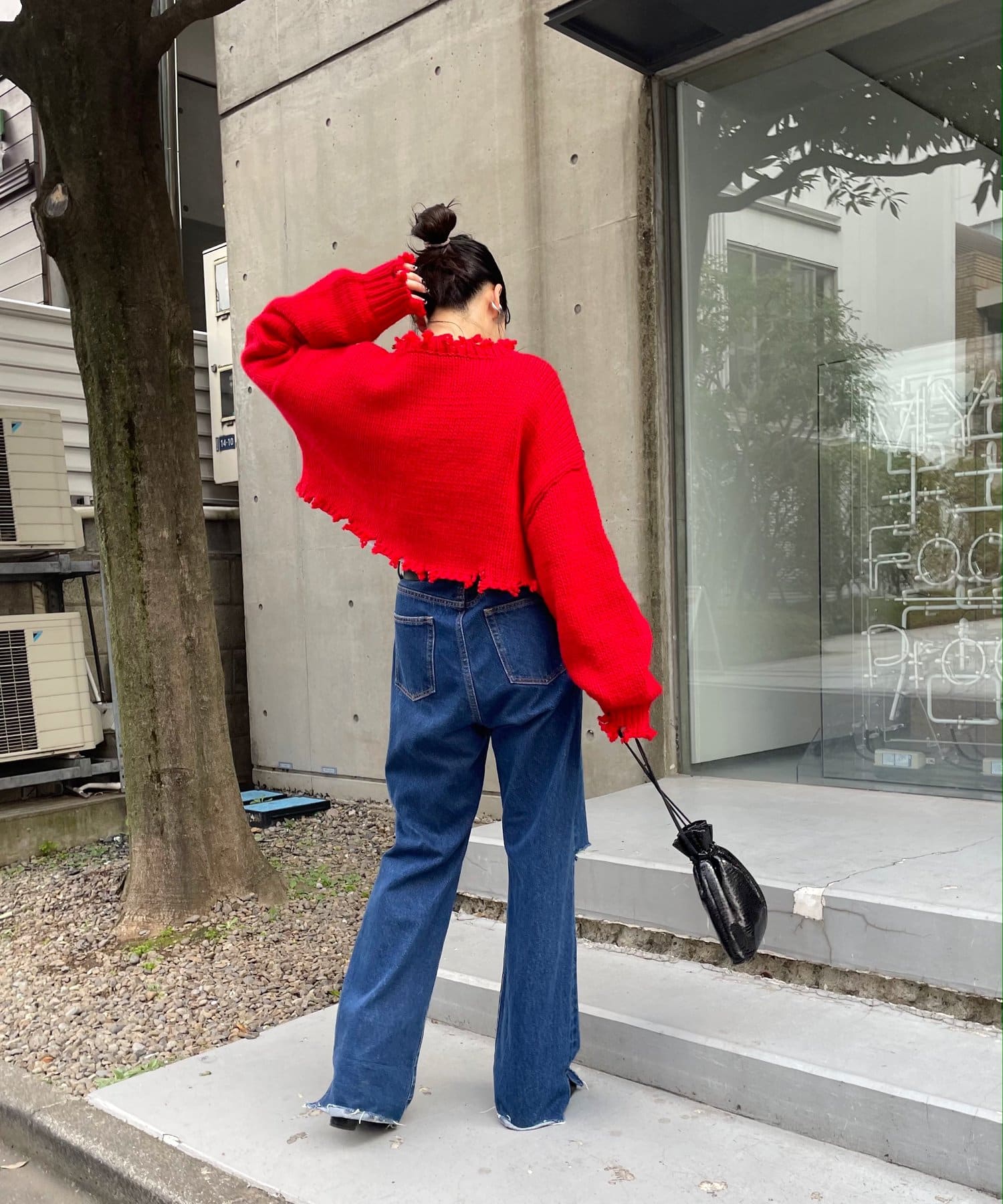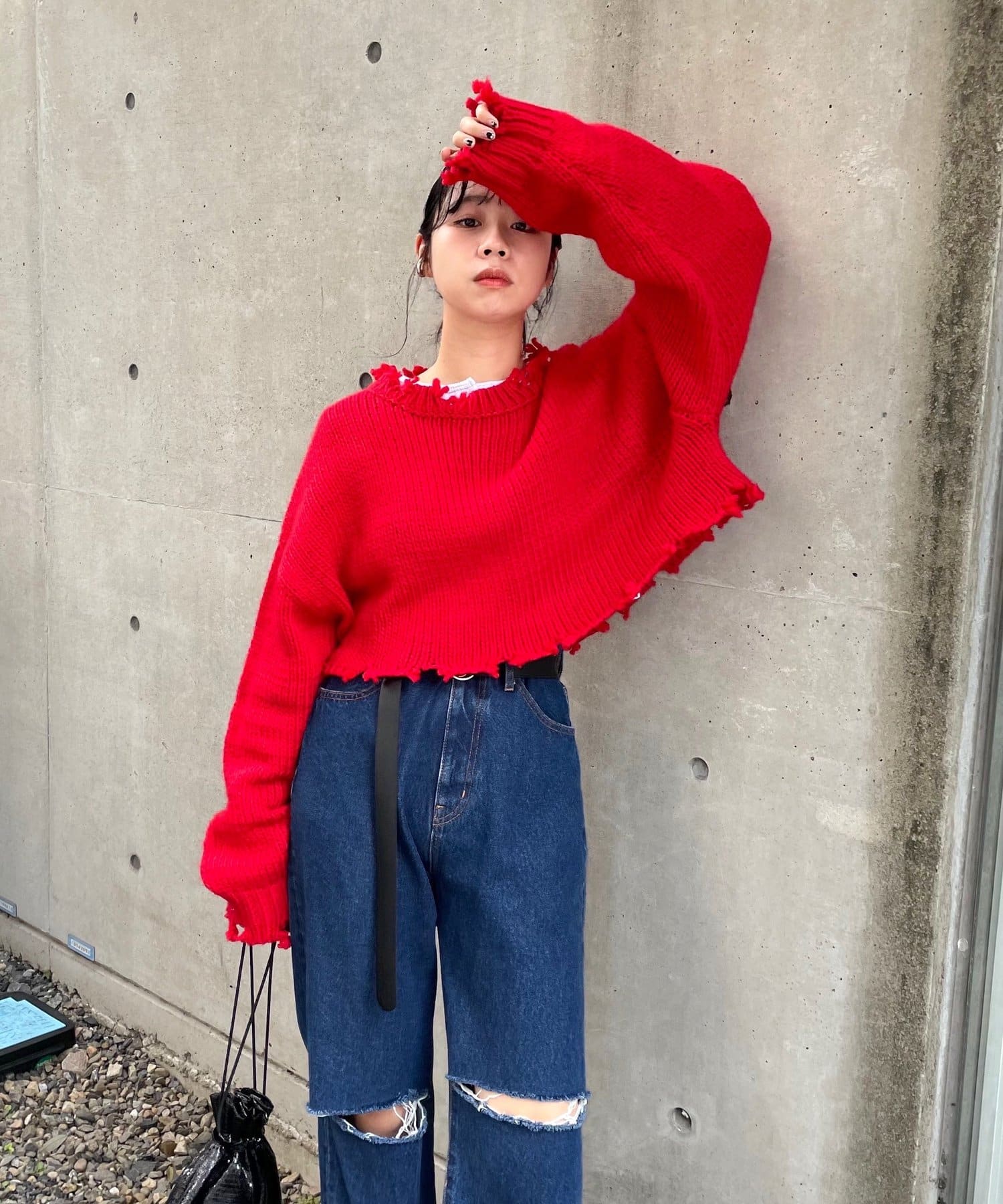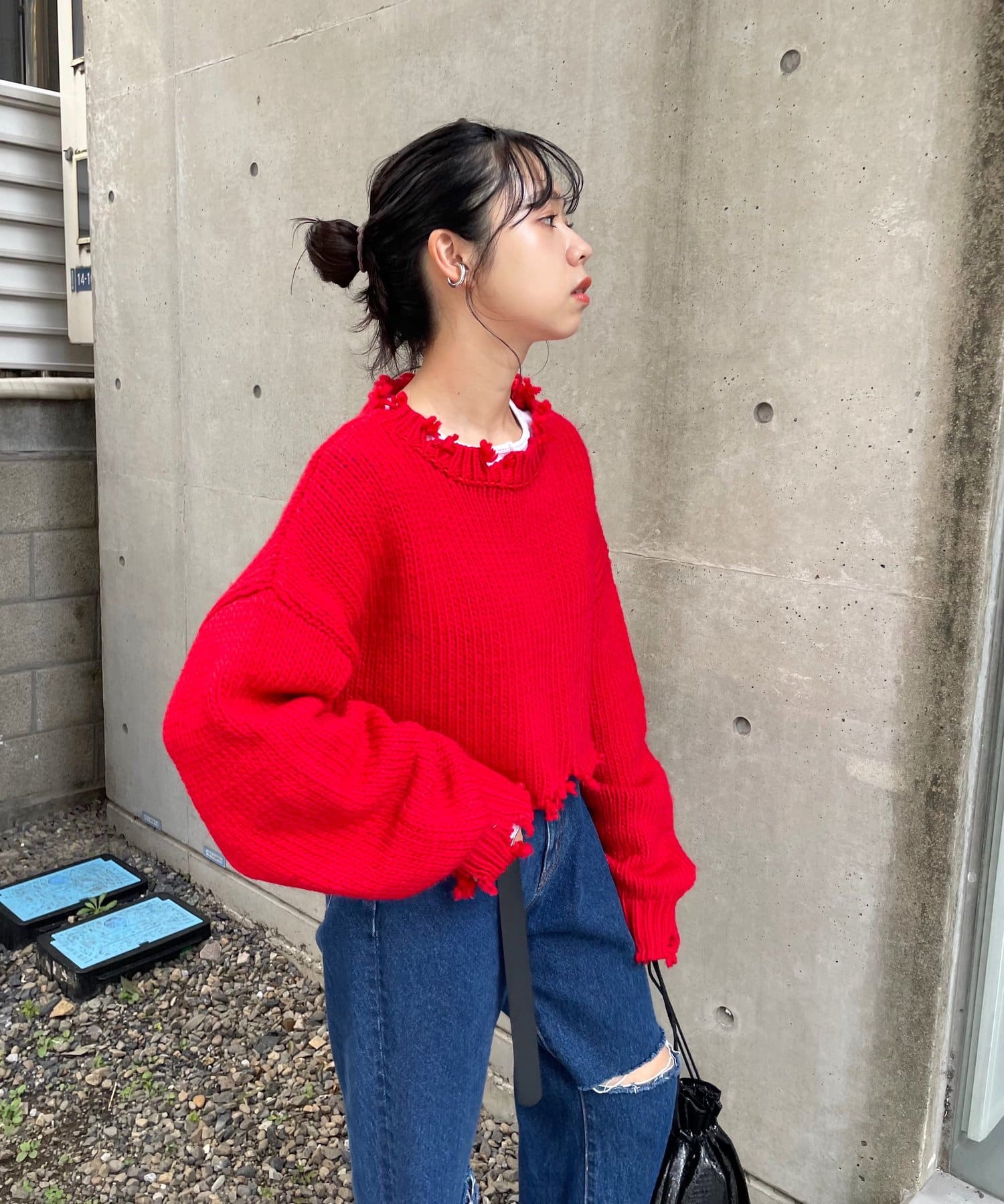 可愛い!赤もニットにダメージが入っとんも可愛くて気に入った!!