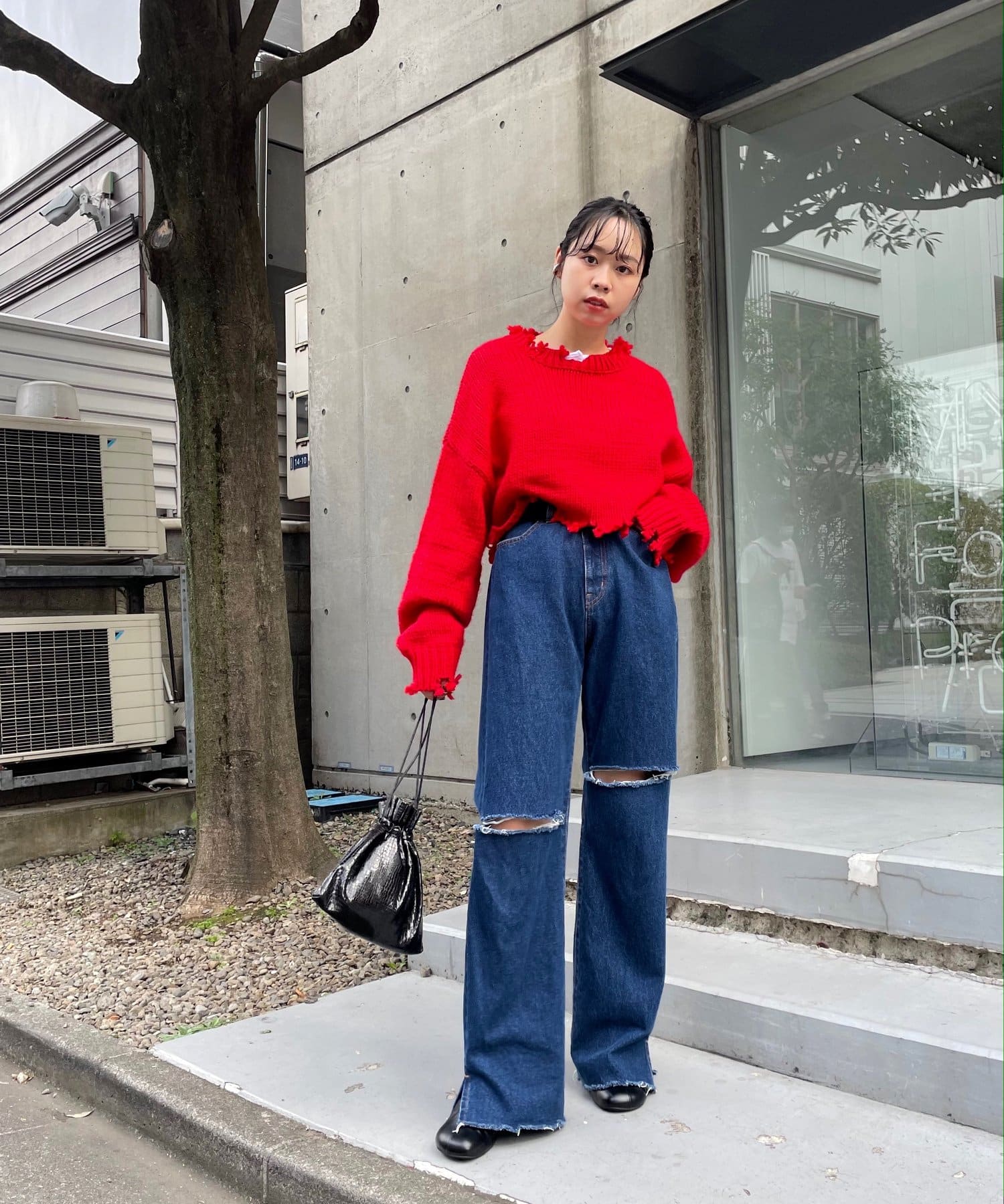 カラフル&ダメージ加工がコーデの主役に。ロービングニット