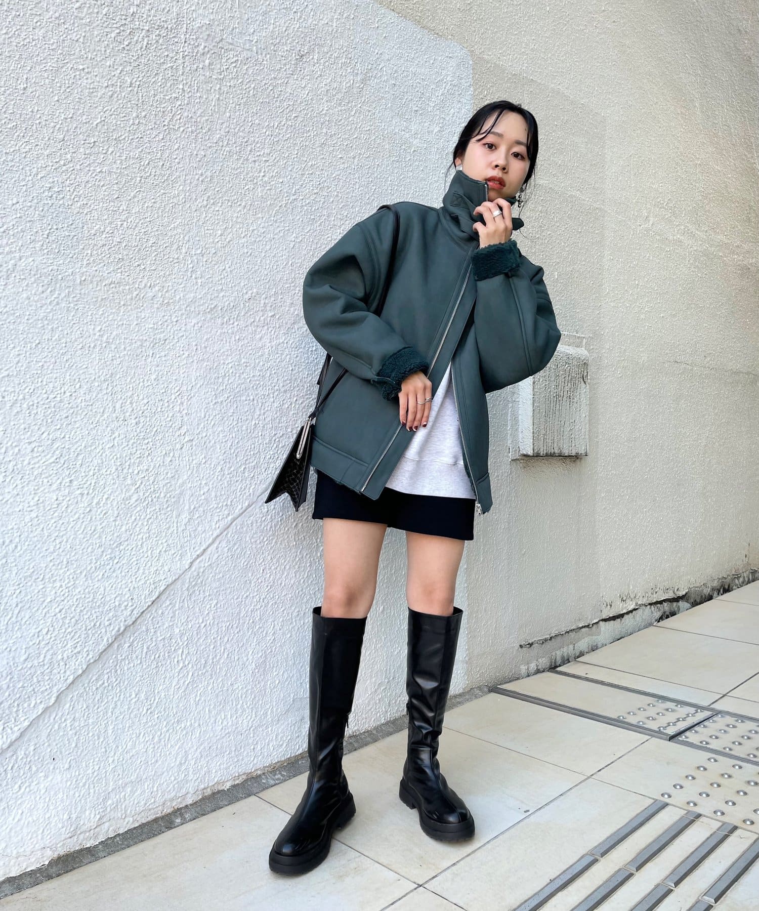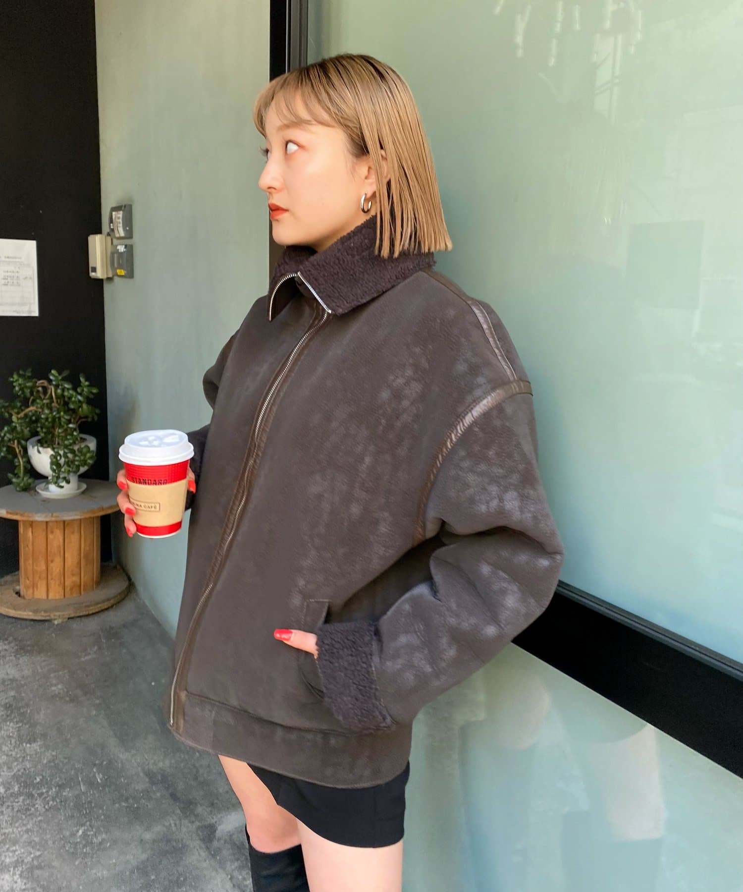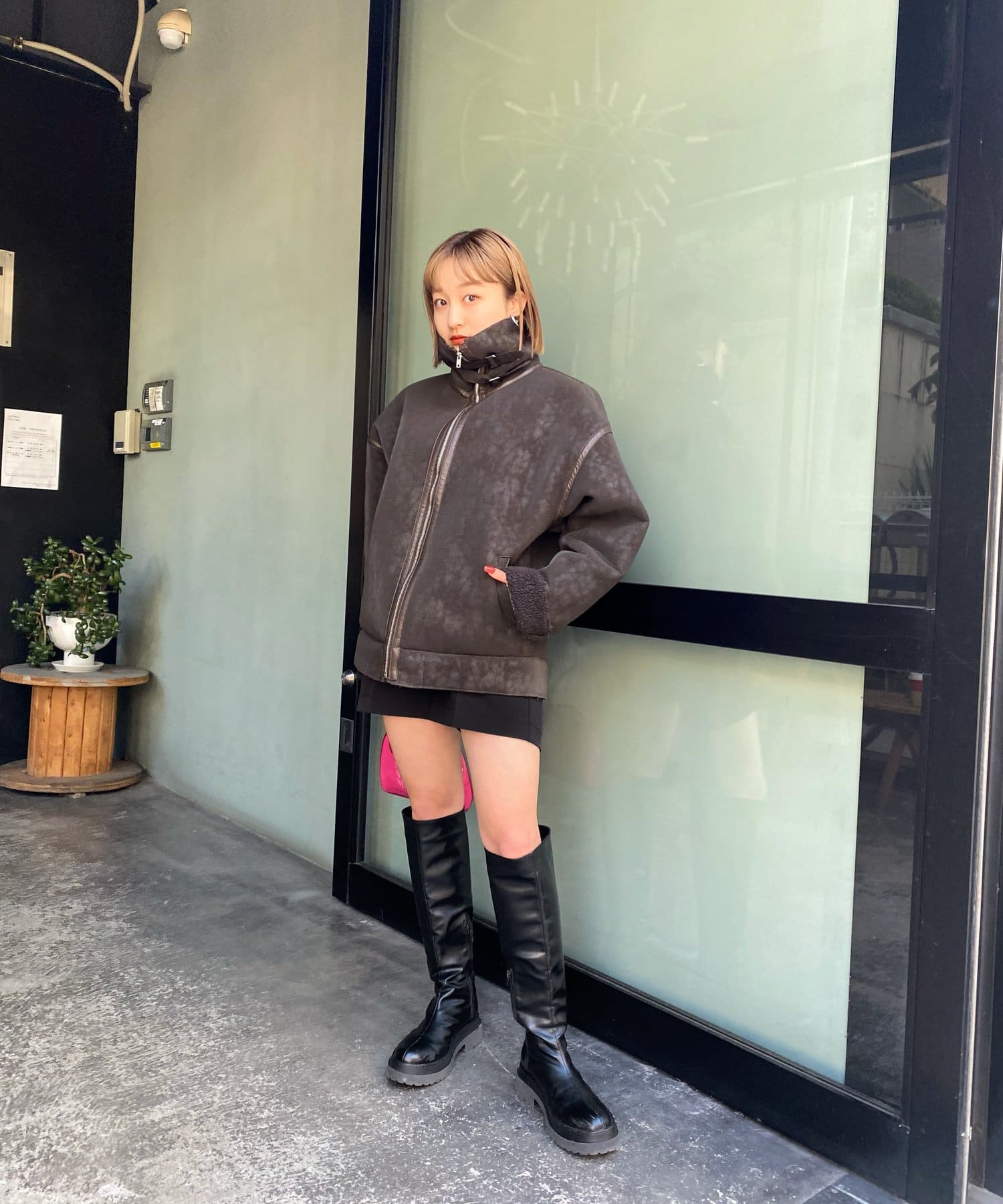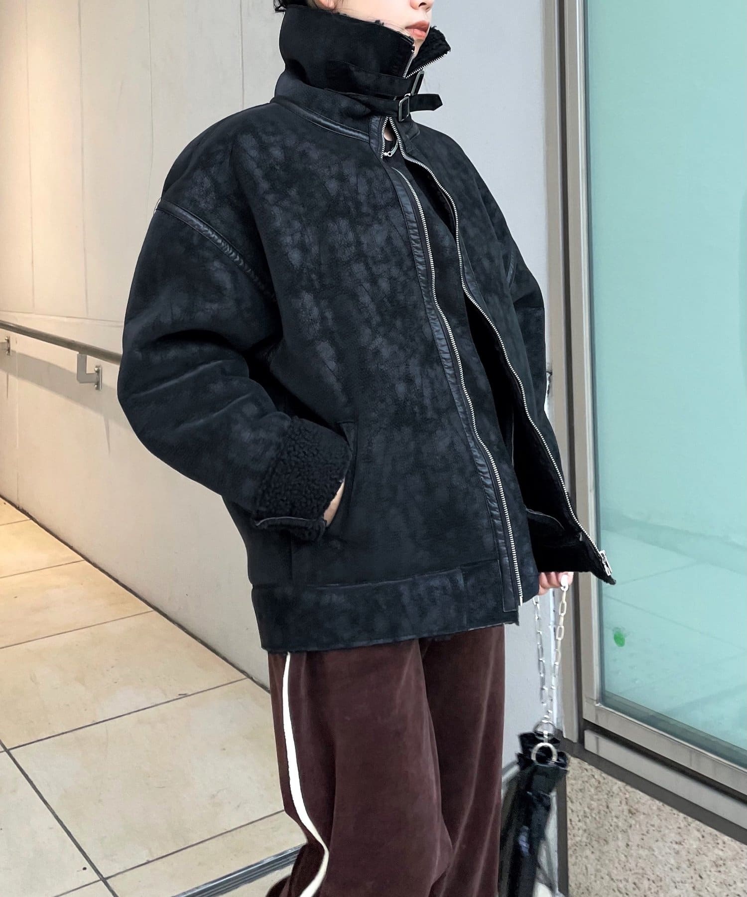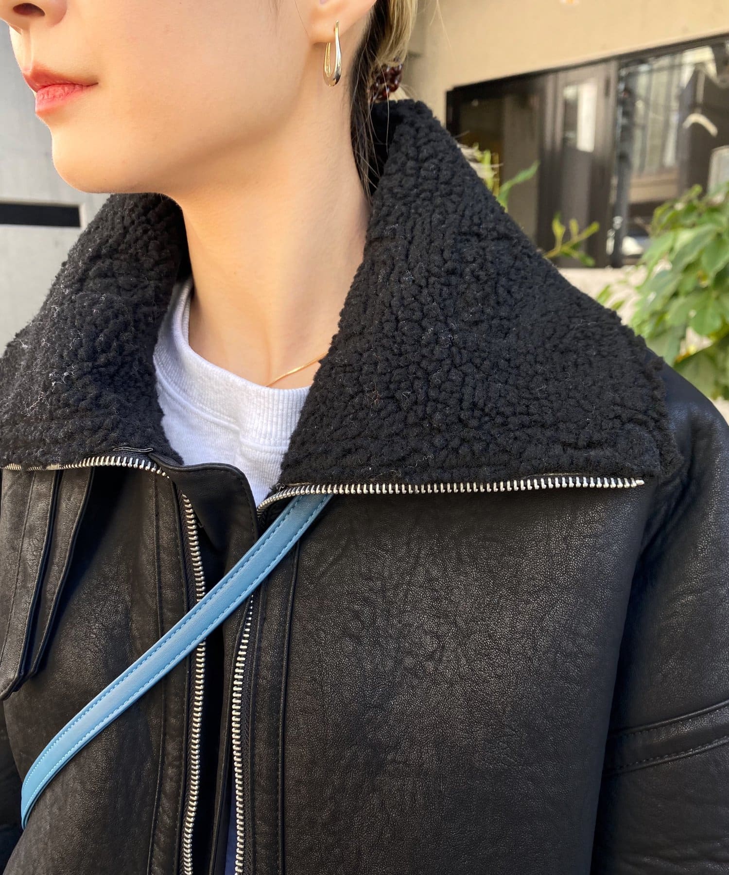 ・内側はボア、襟は端までファスナーが施されているので、防寒対策もバッチリ。