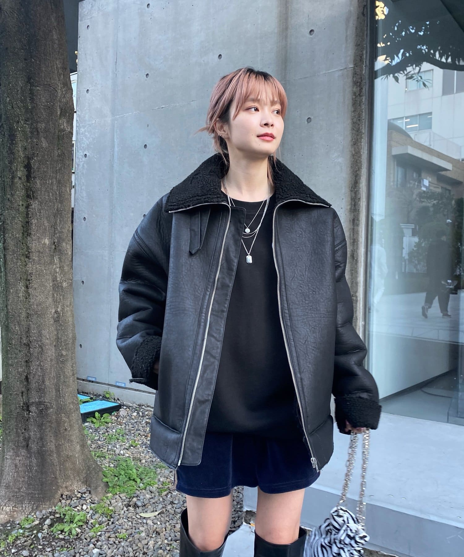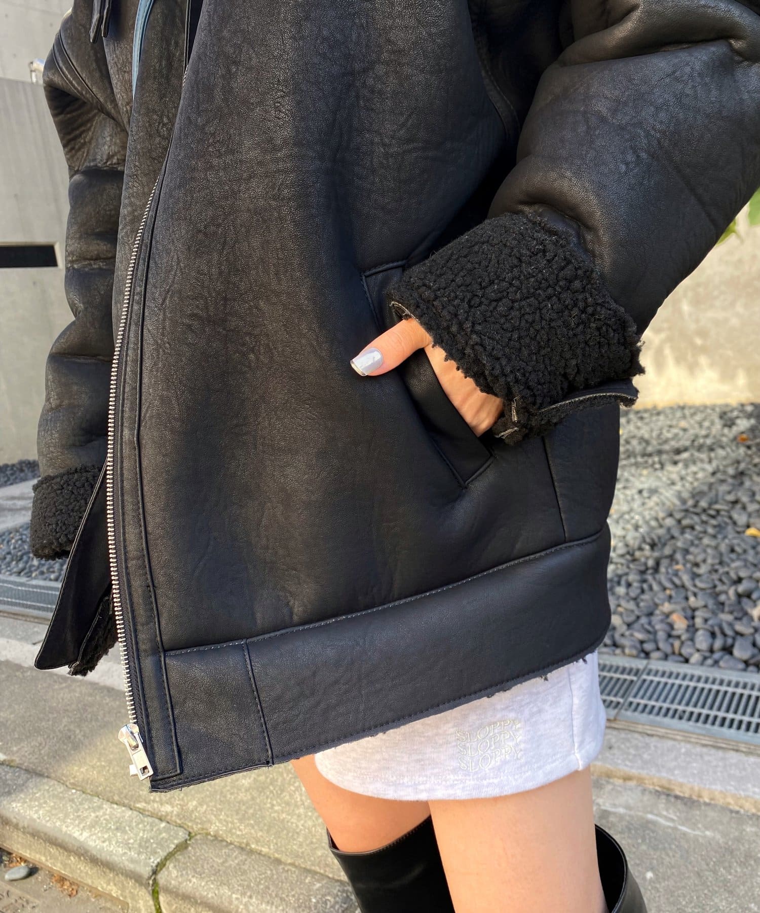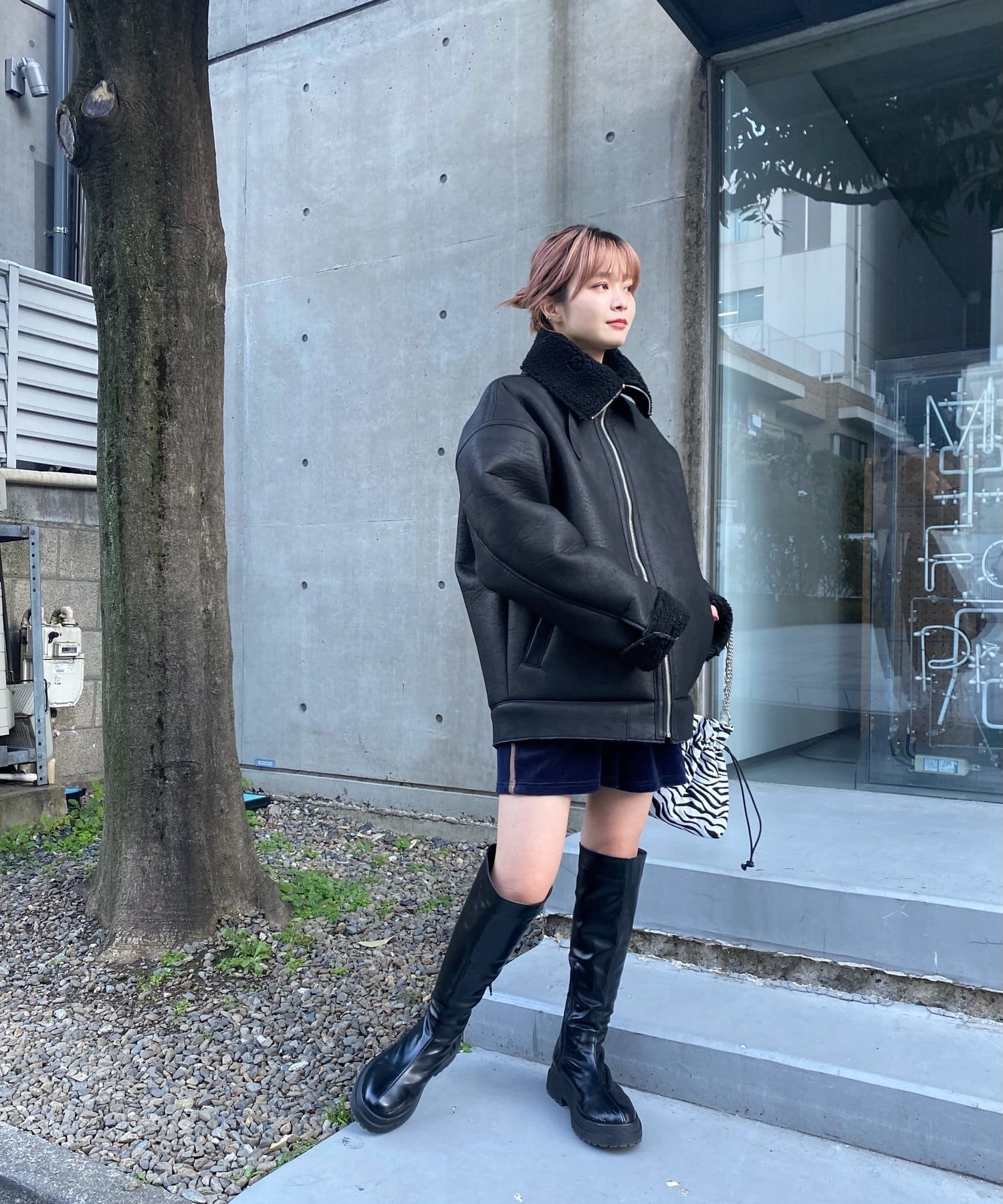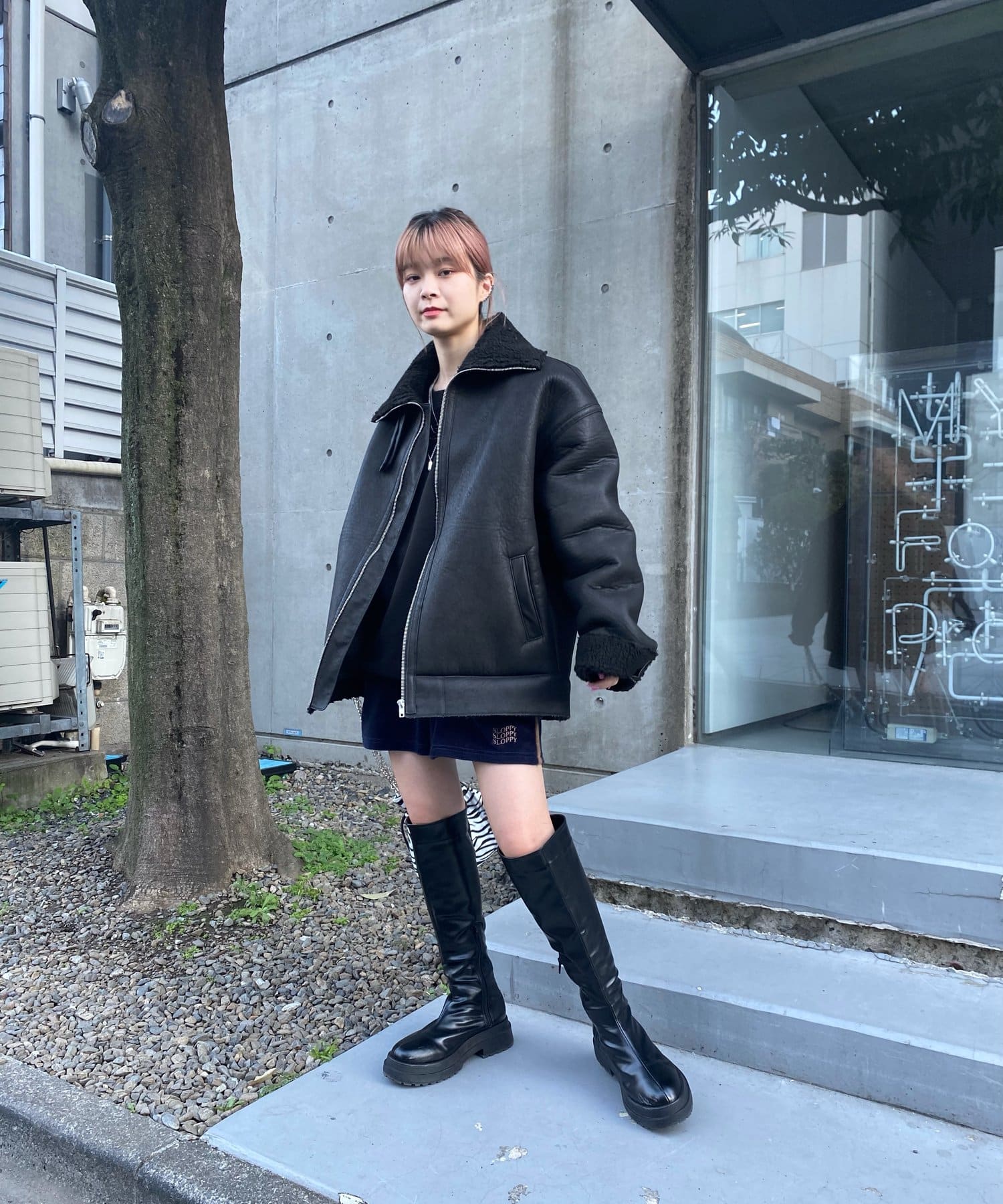 ・内側はボア、襟は端までファスナーが施されているので、防寒対策もバッチリ。