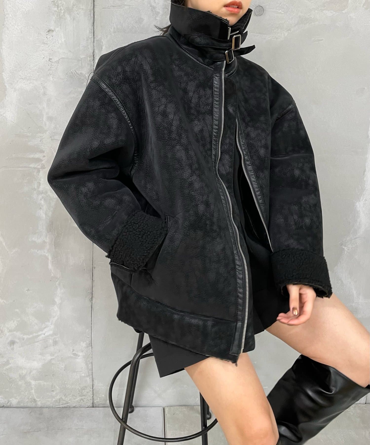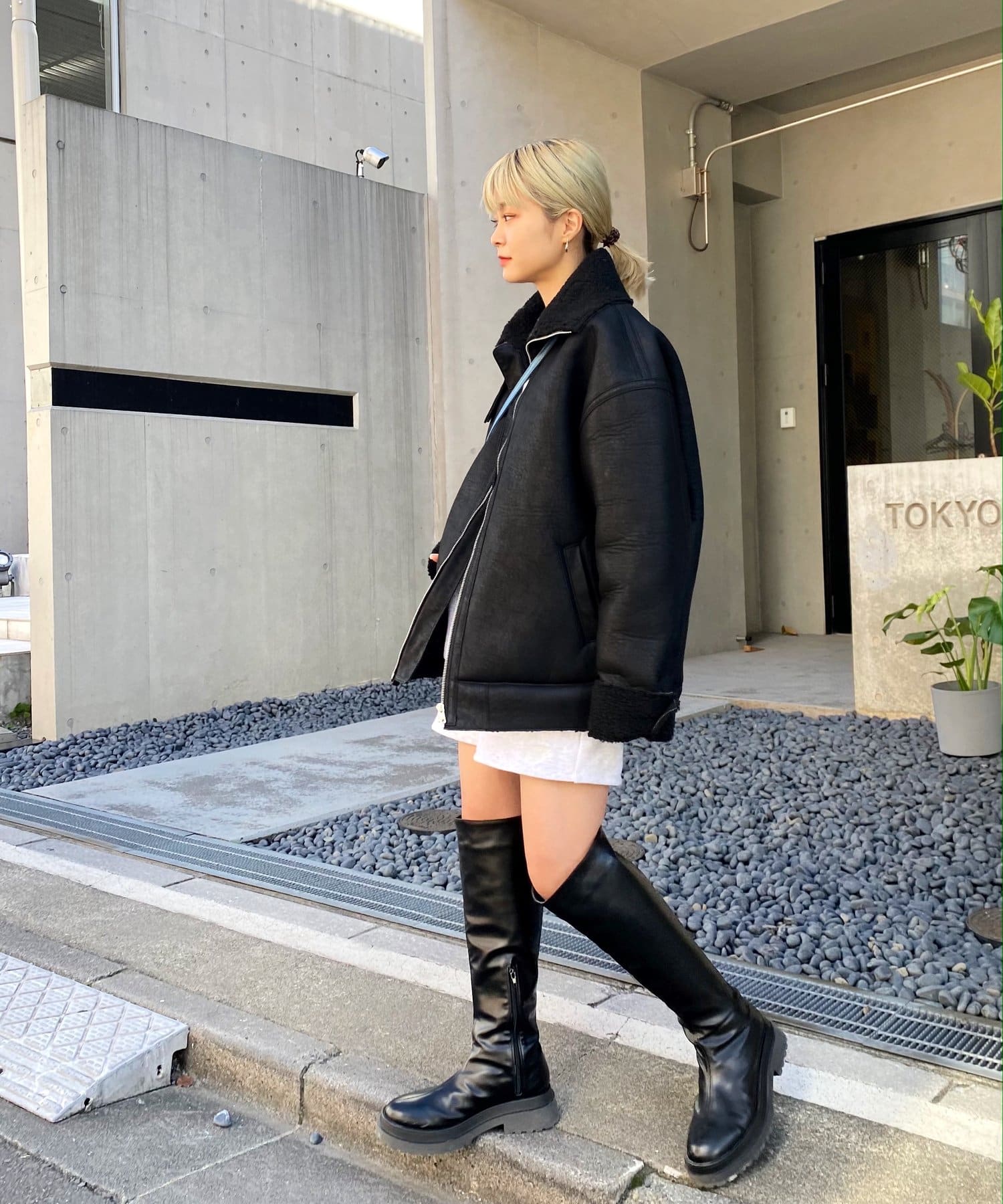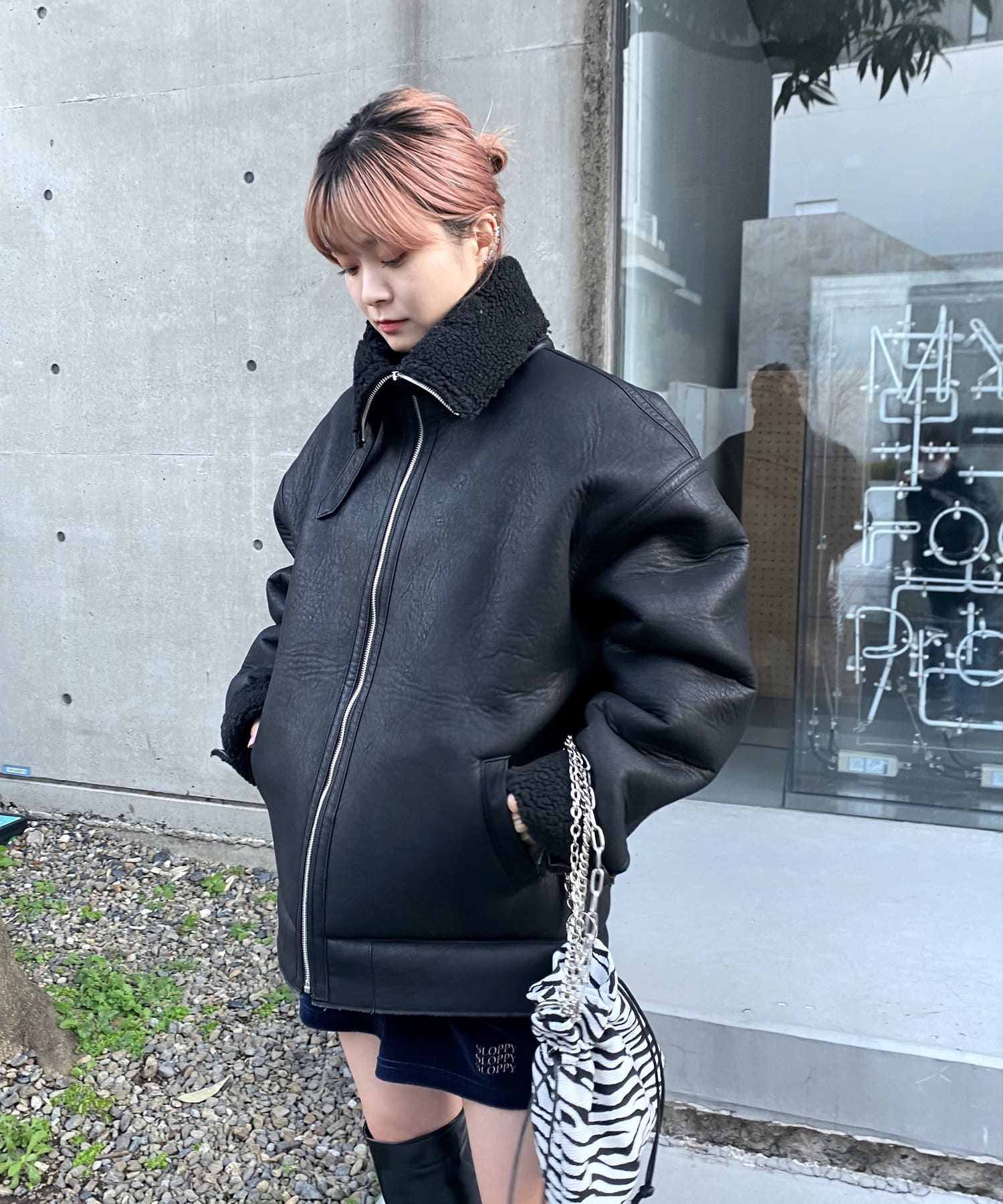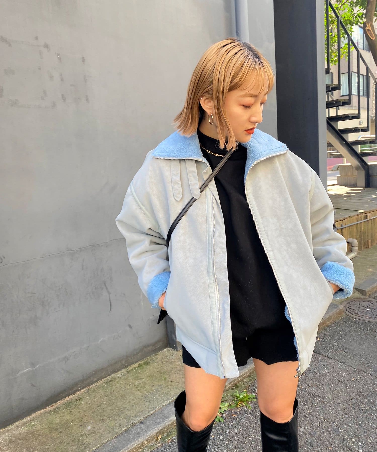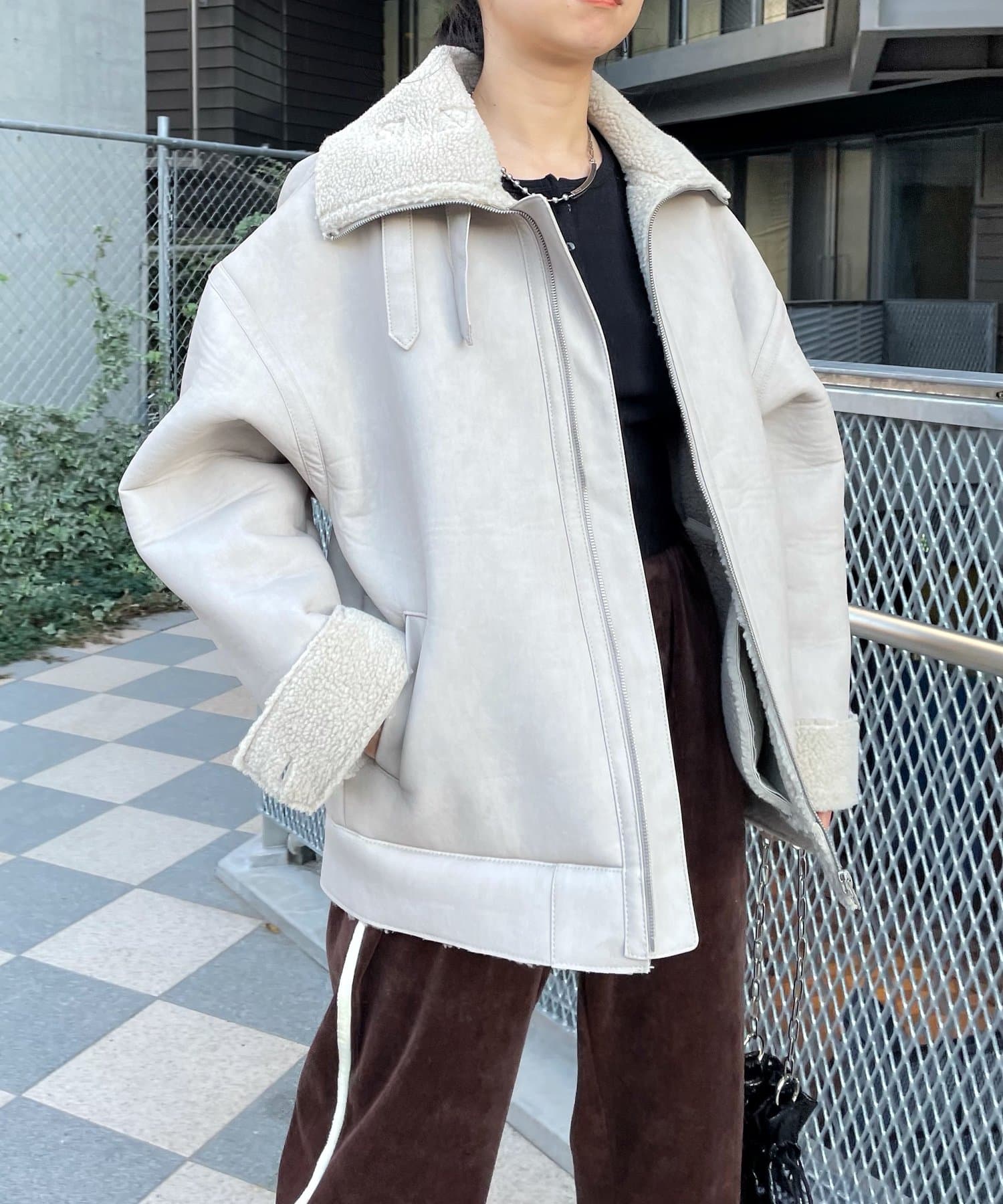 ・内側はボア、襟は端までファスナーが施されているので、防寒対策もバッチリ。