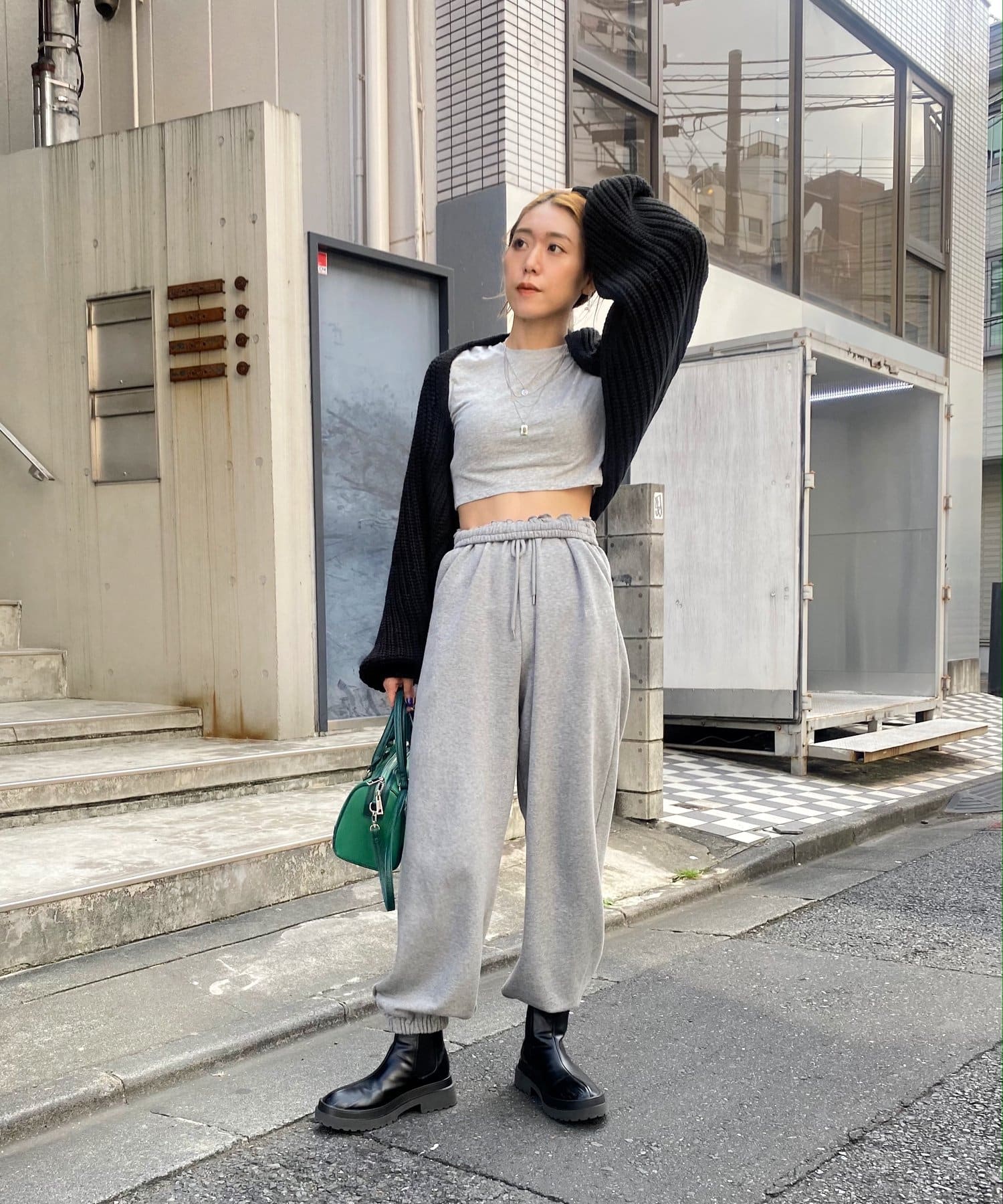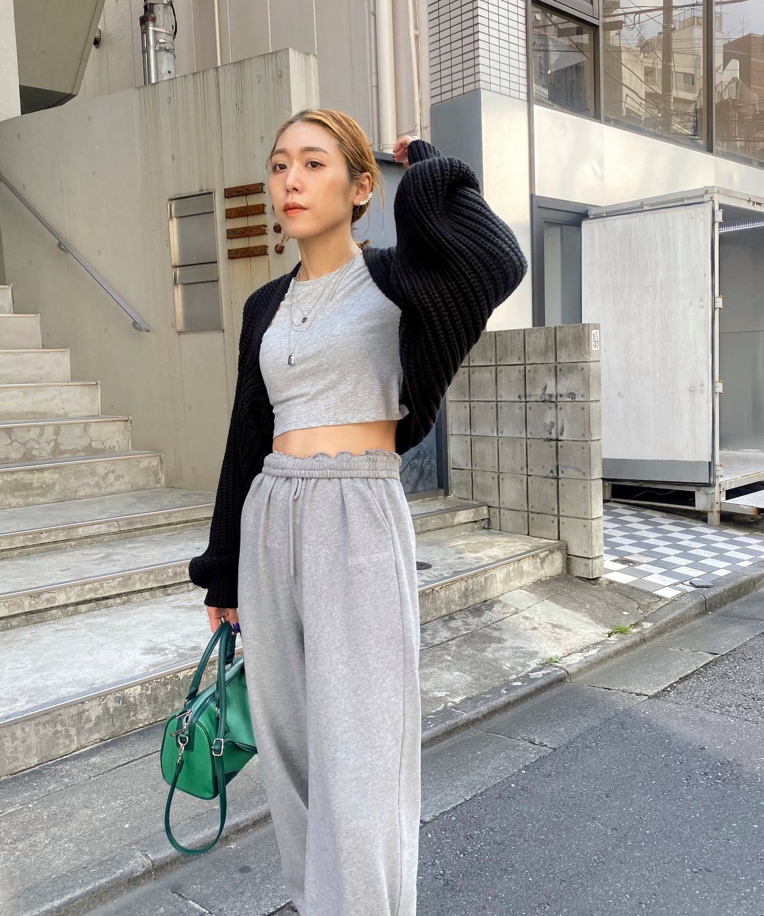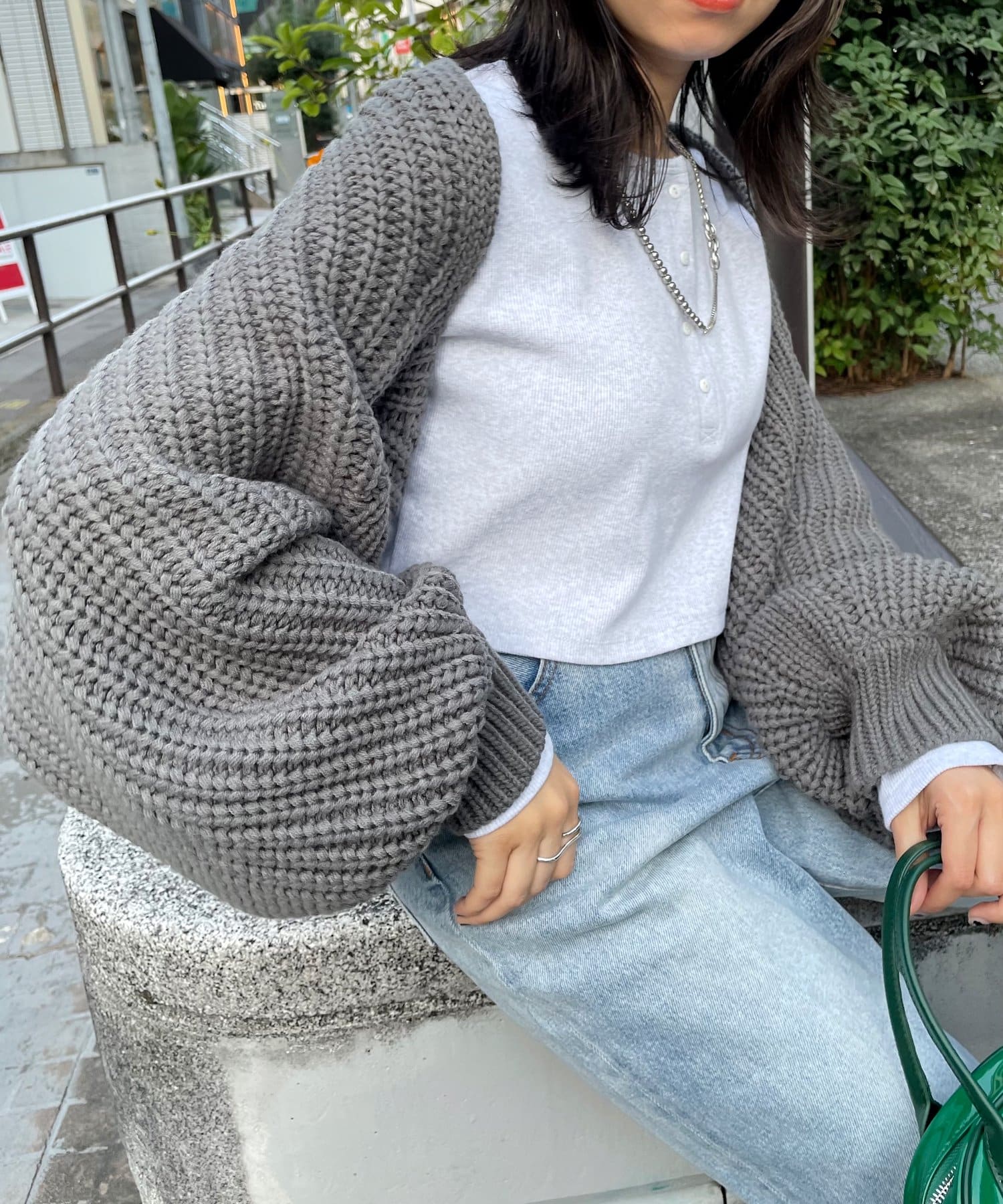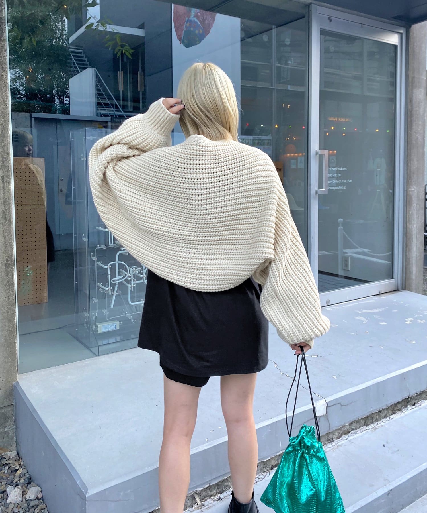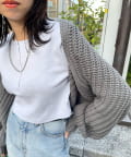 まるでラグラントップスのようなコーデに。ボレロカーディガン