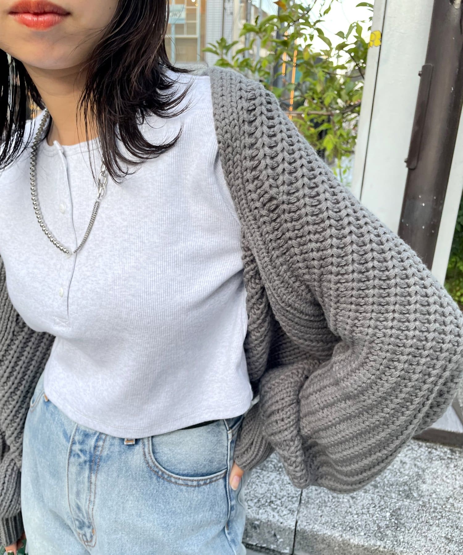 ・インナーに合わせて、ラグラントップス風を楽しめます。