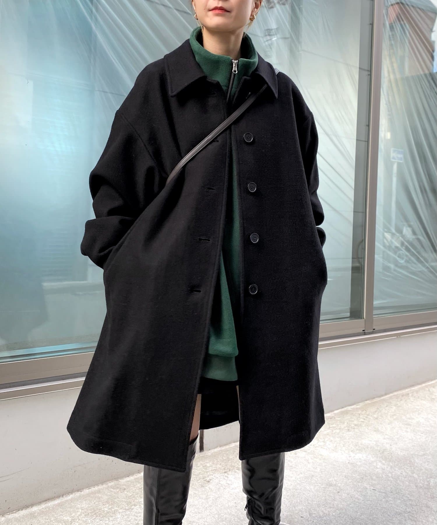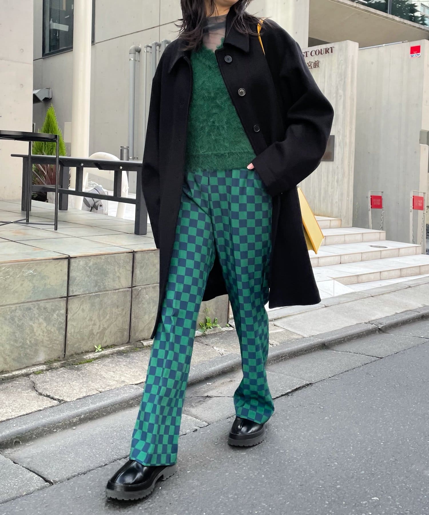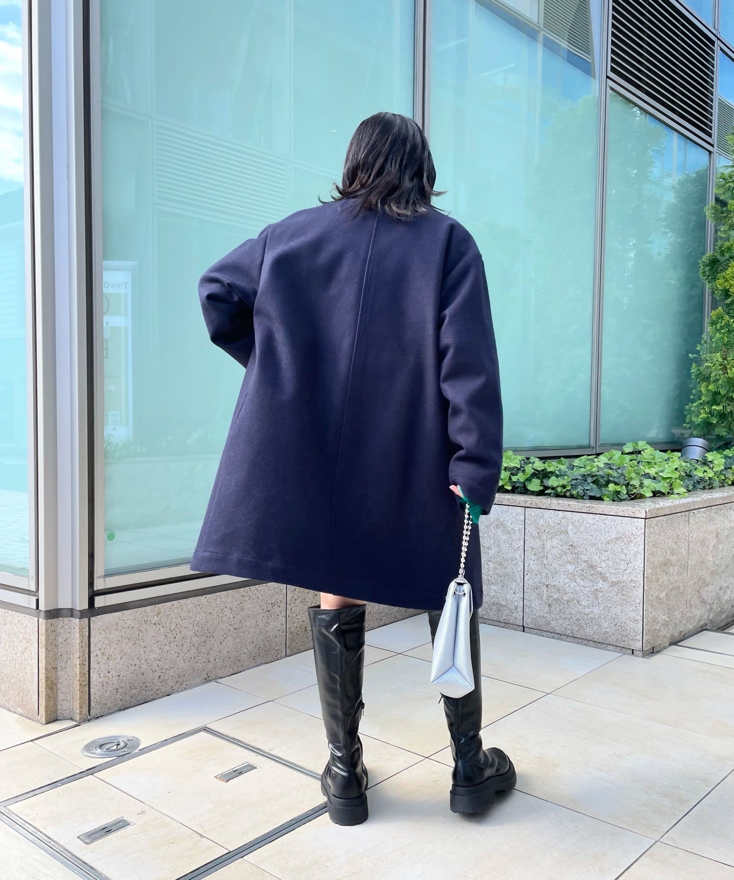 ・ビッグシルエットのトップスを重ねても難なく着られるサイズ感。