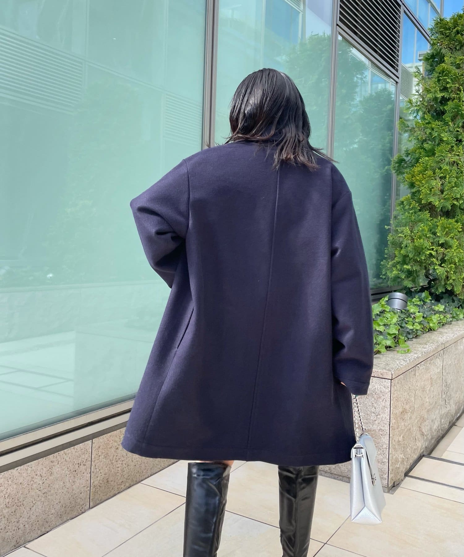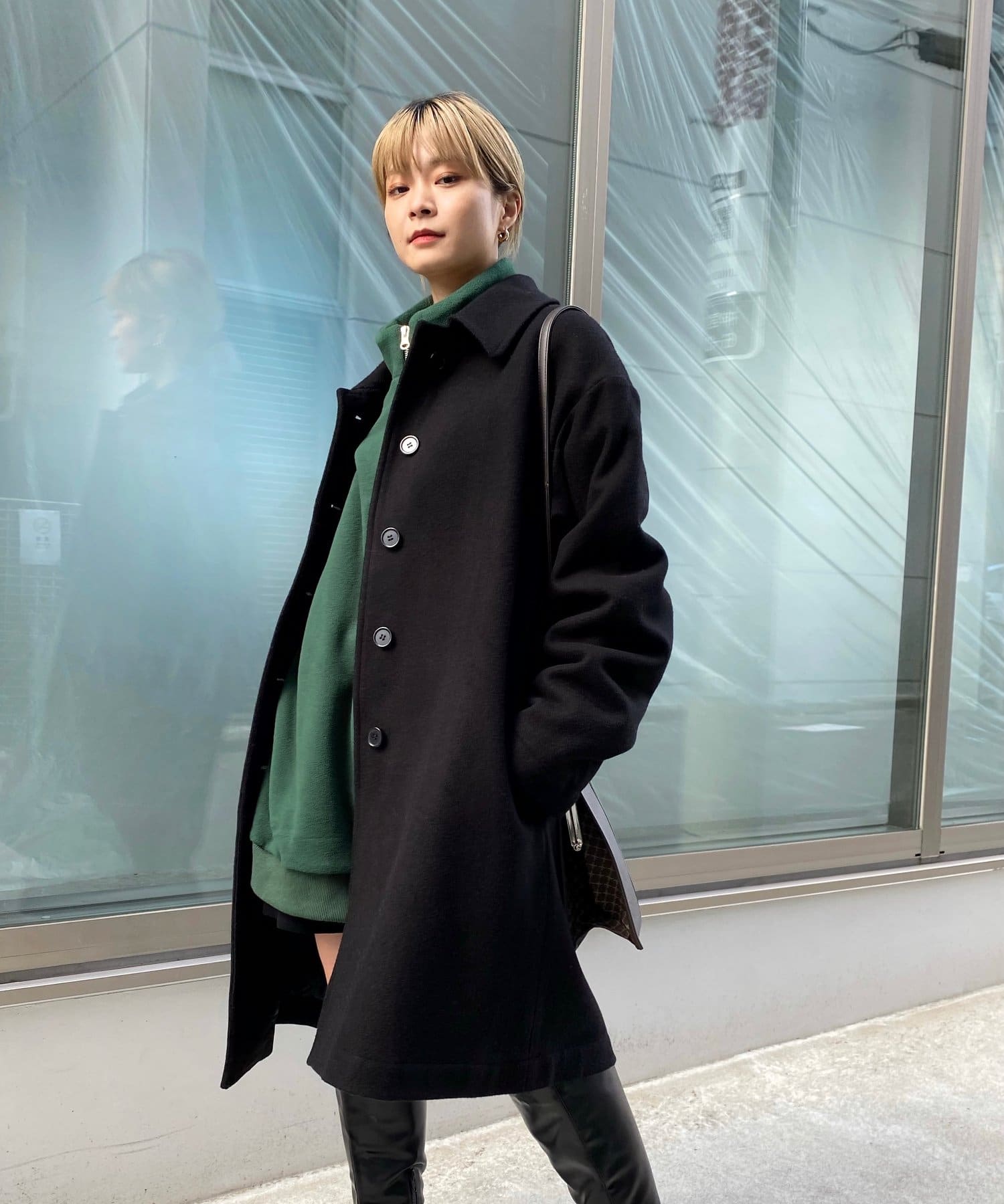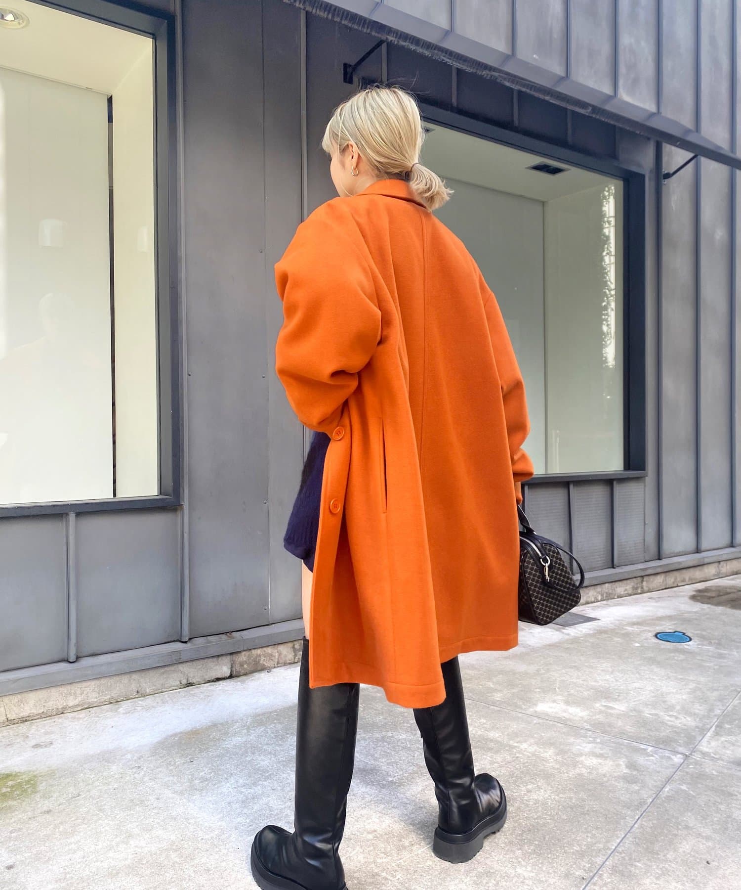 ・ビッグシルエットのトップスを重ねても難なく着られるサイズ感。