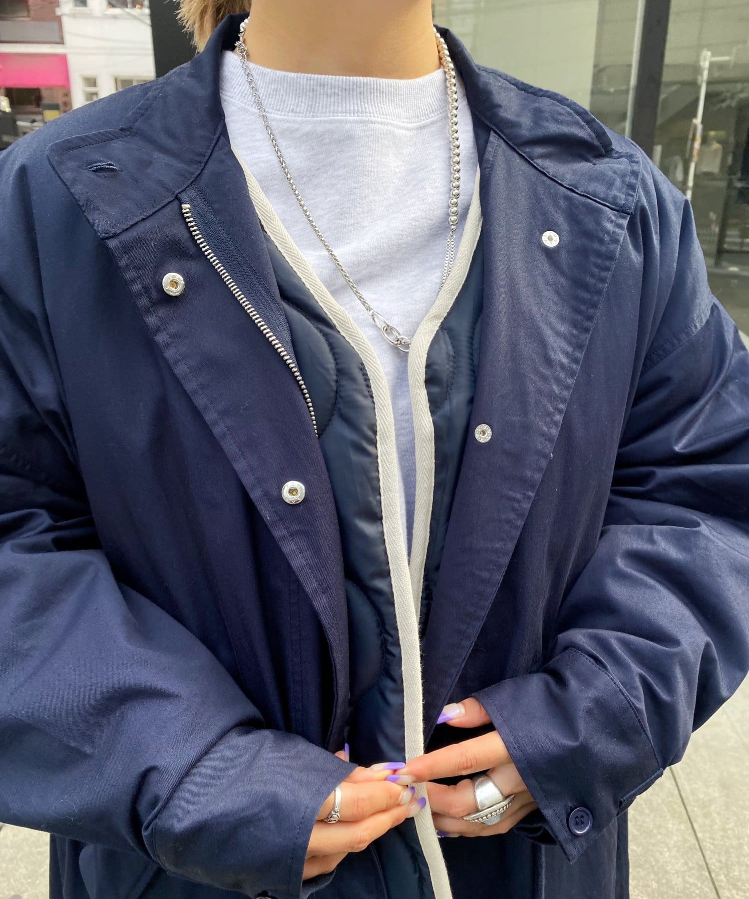 セットで着ても単体で着ても◎。ビッグなモッズコート