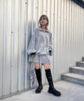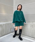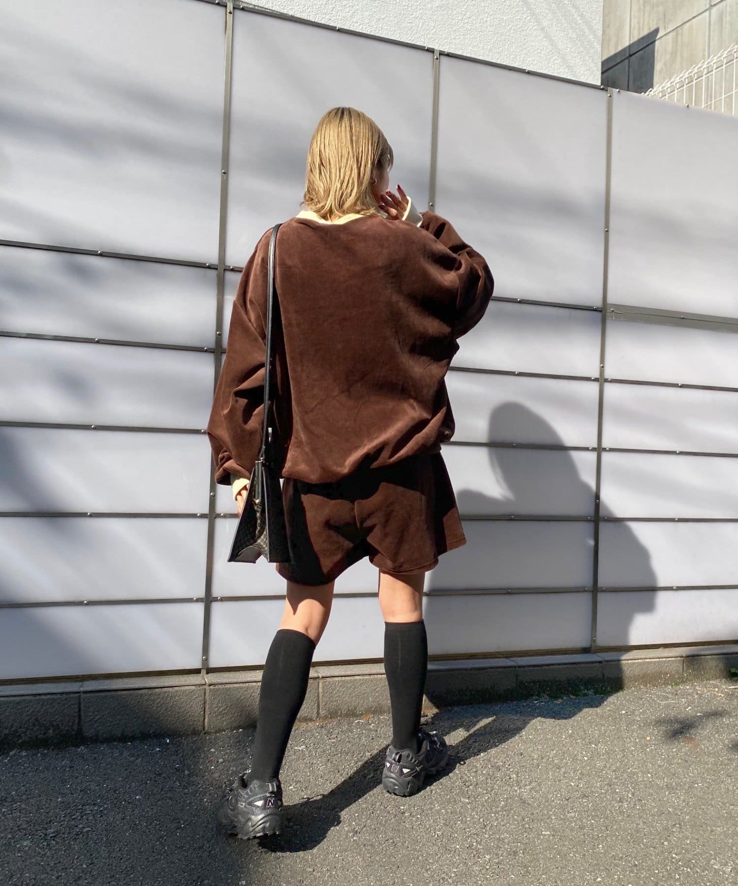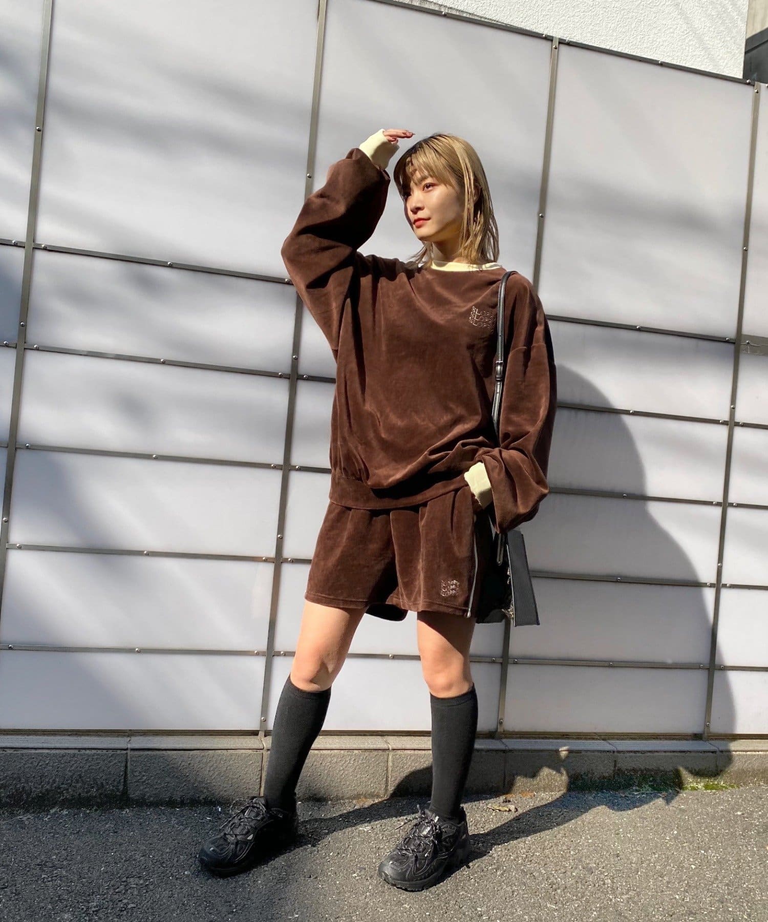 ・同素材のトップスとのセットアップスタイルがオススメ。