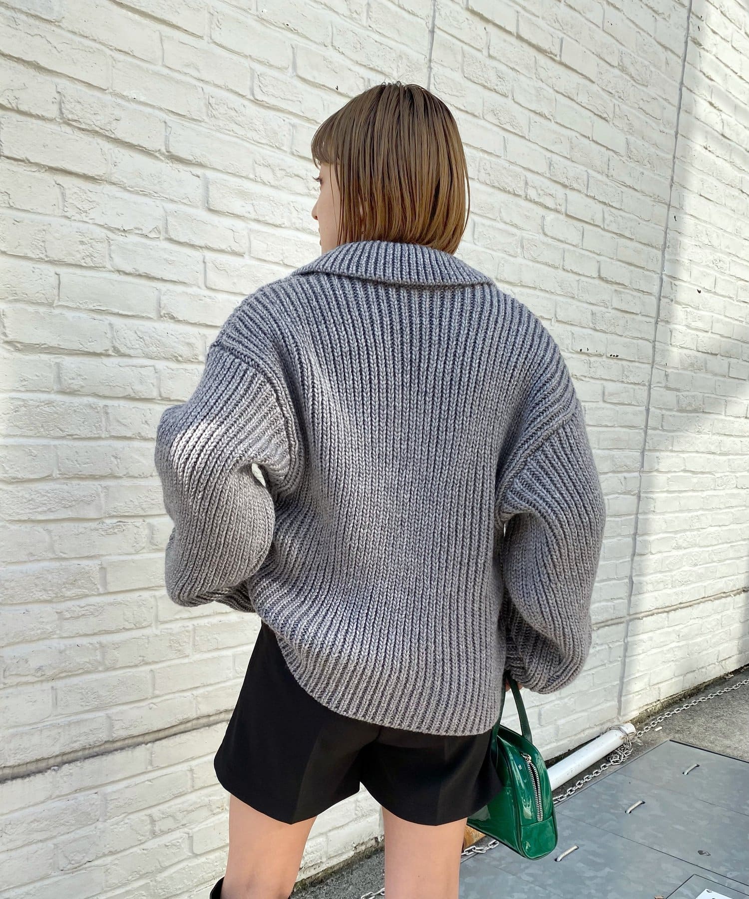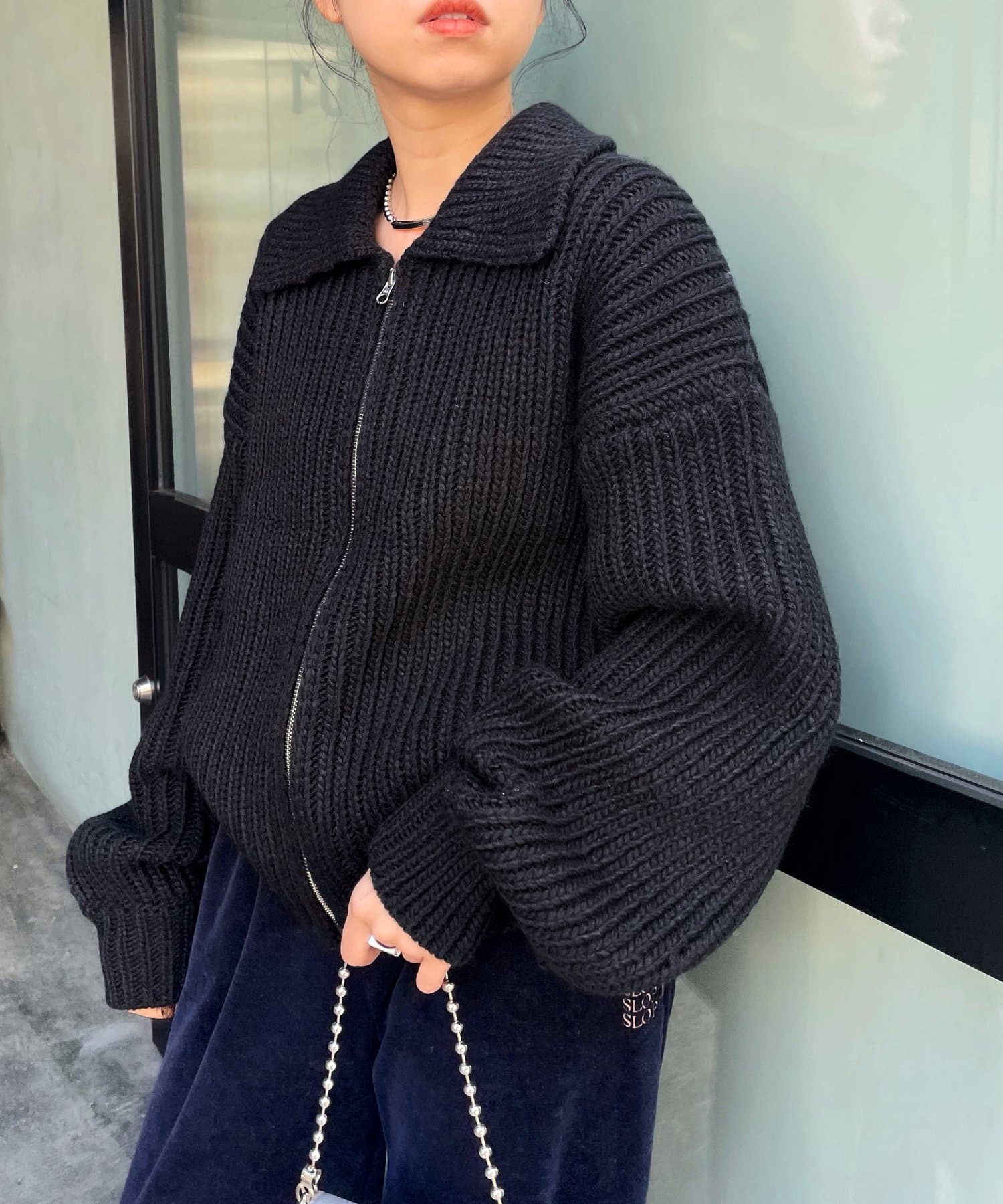 ・カジュアルなニット地に、スマート感のある大きめな襟で、幅広いコーディネートに◎。