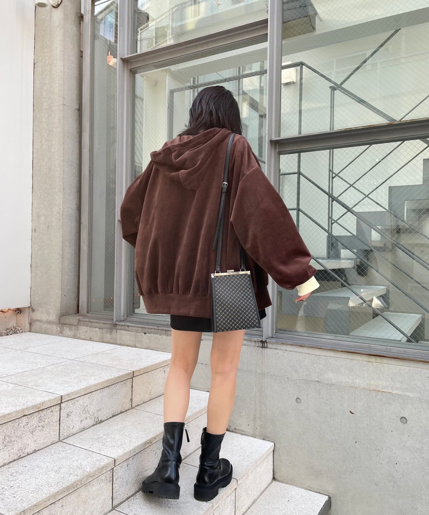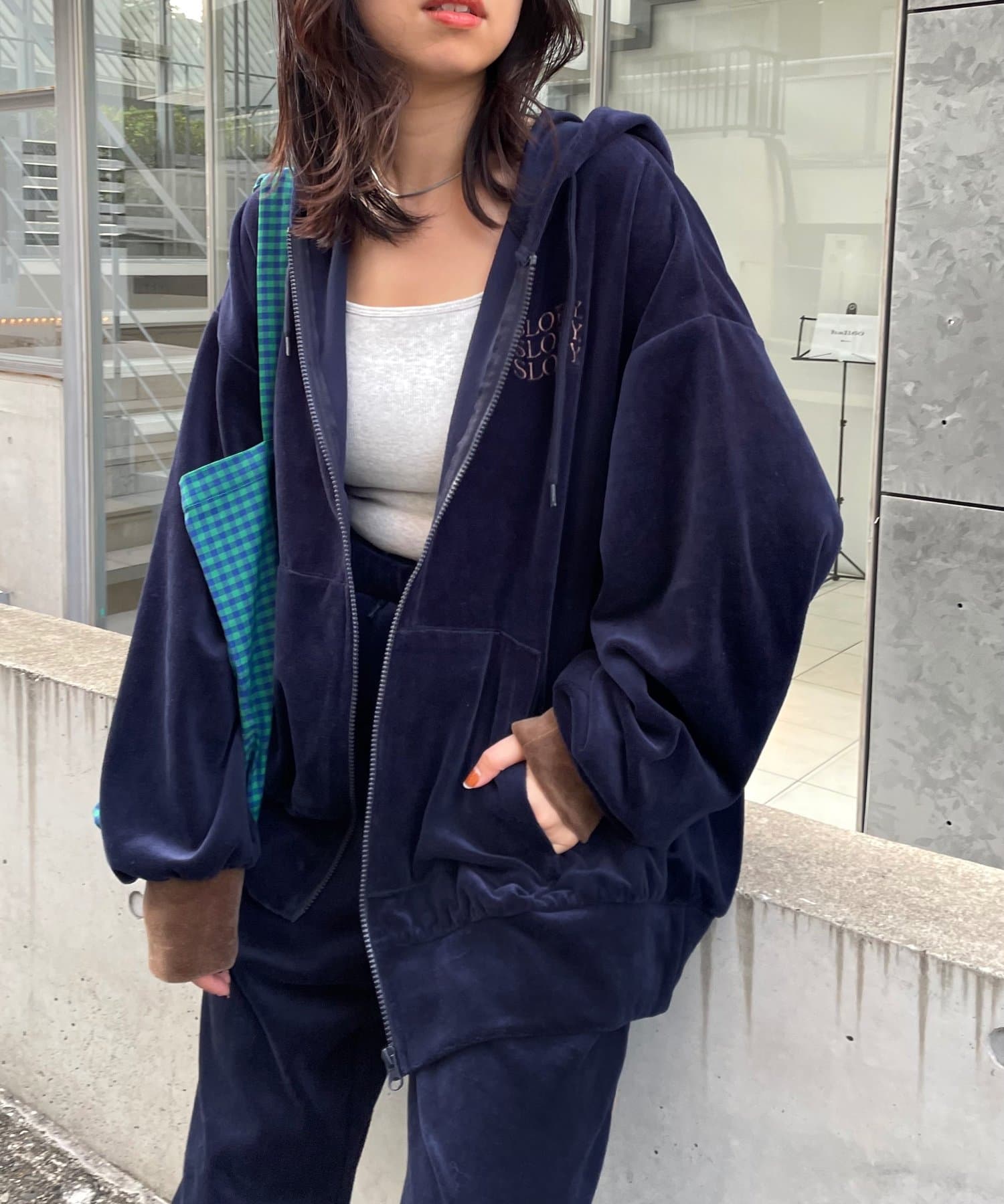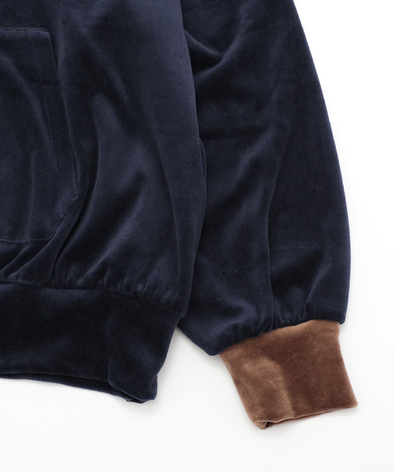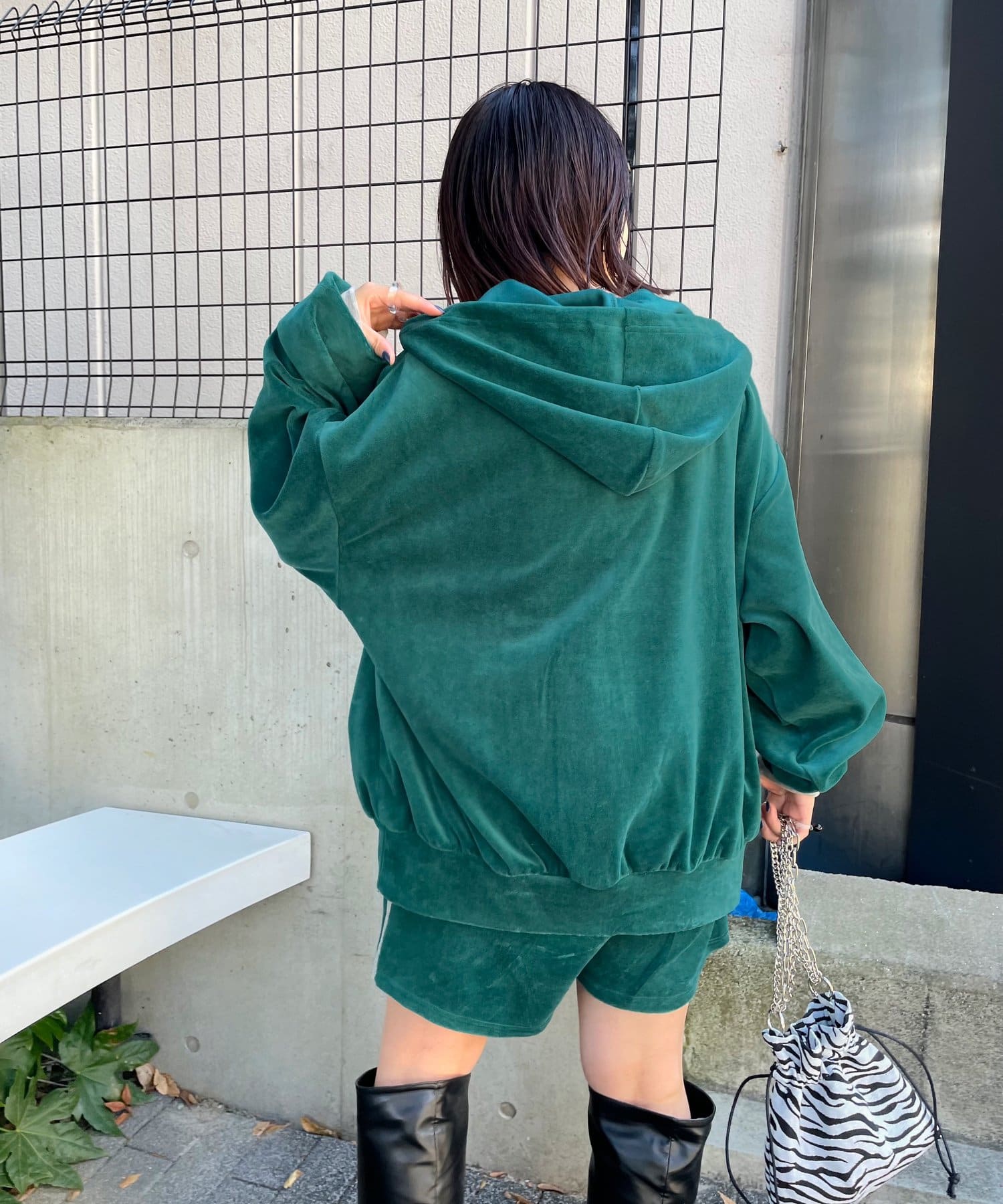 ・着心地の良いベロア素材を使用。光沢感はお出かけ着にも◎、リラックス感はルームウェアにも◎。