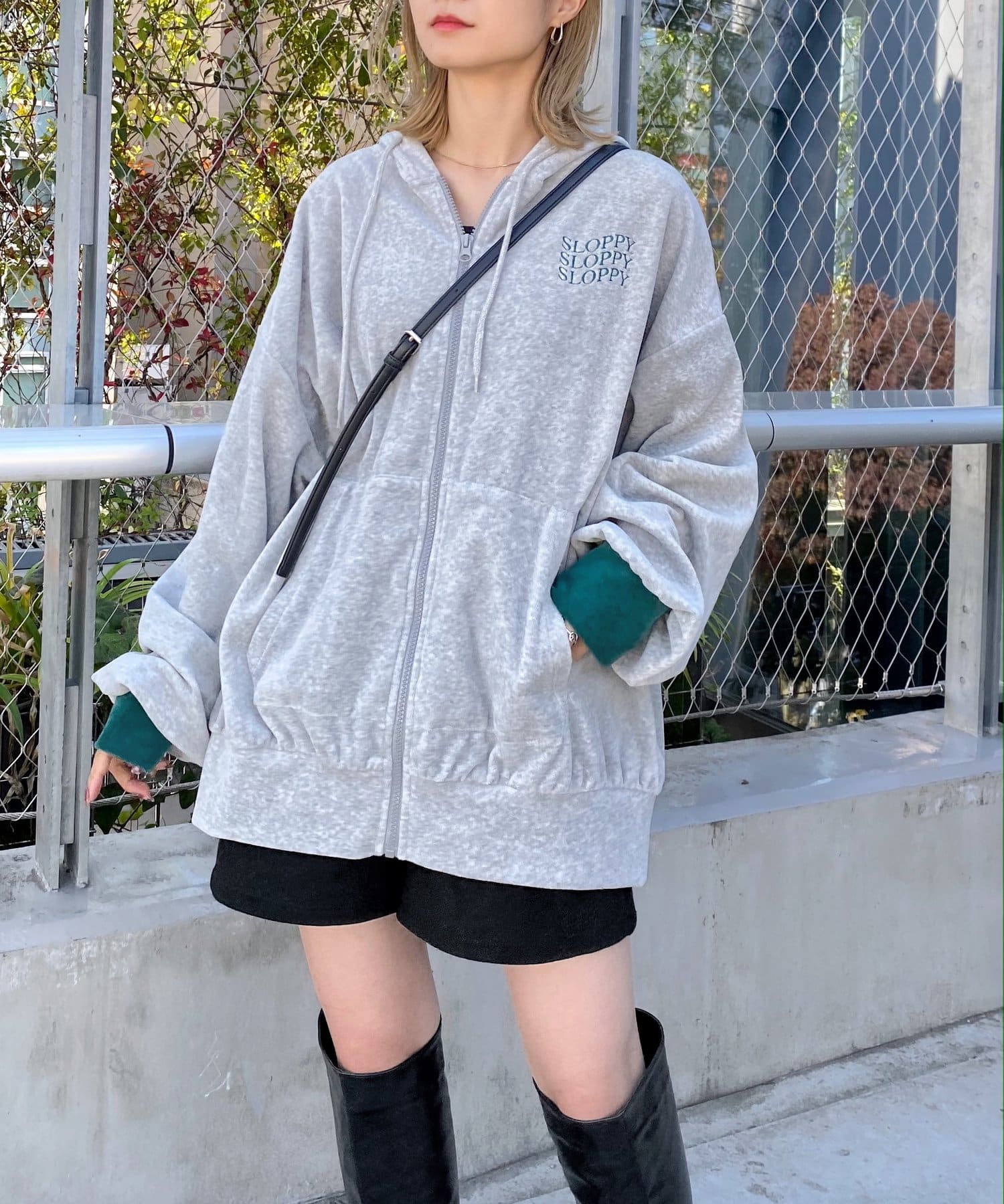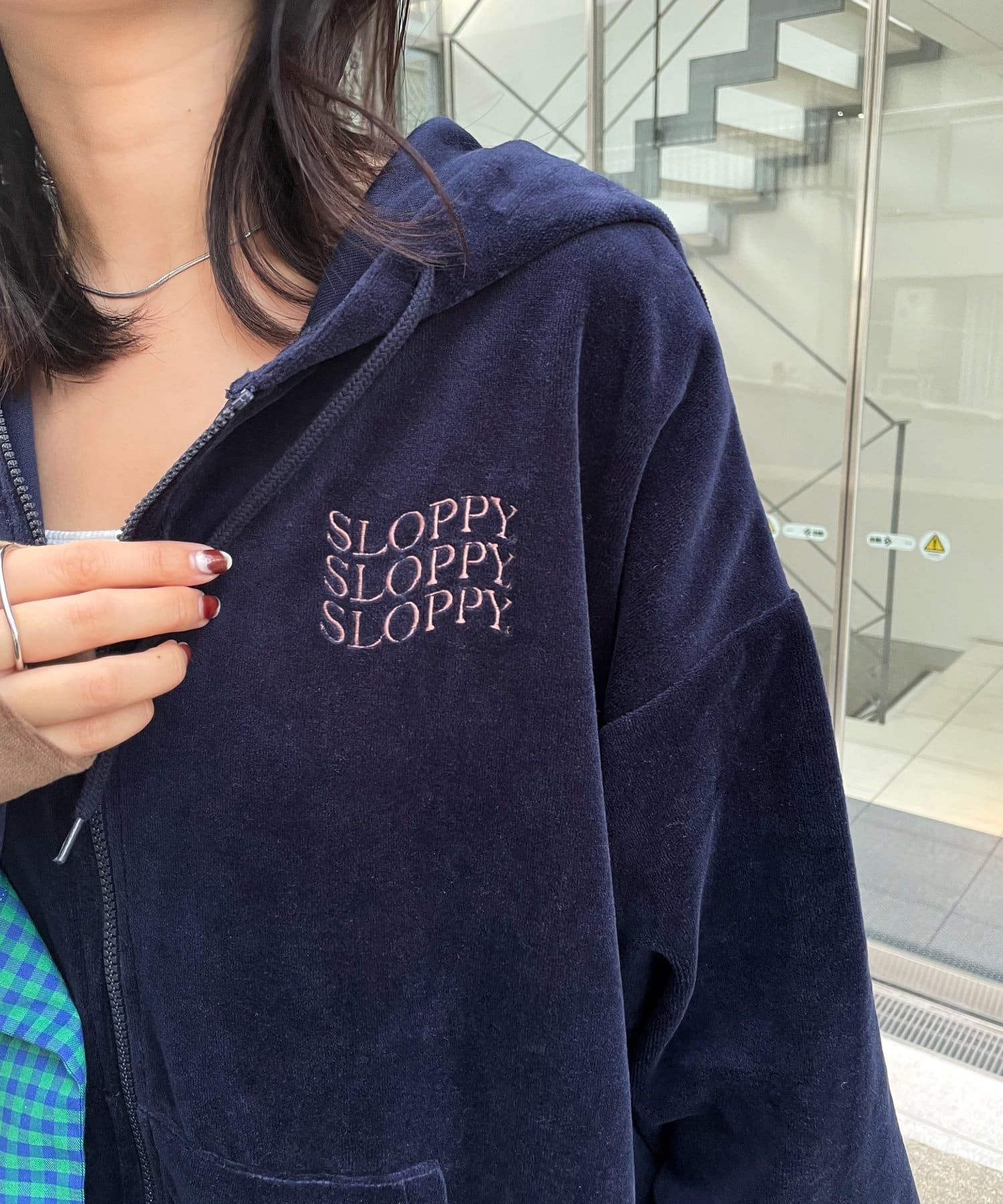 ・胸元の“SLOPPY”刺繍ロゴは、ブランドテーマを感じさせるウェーブで表現。